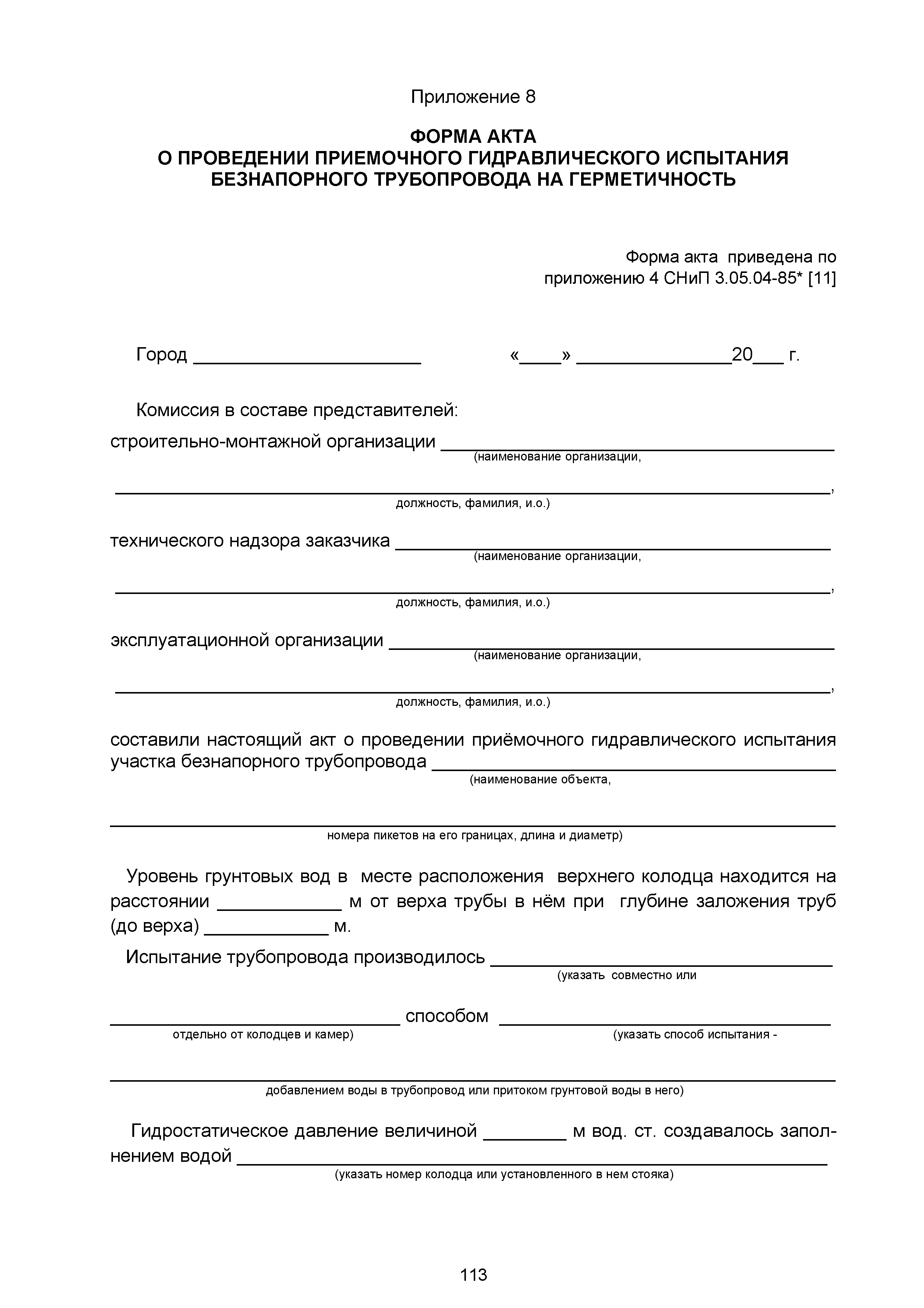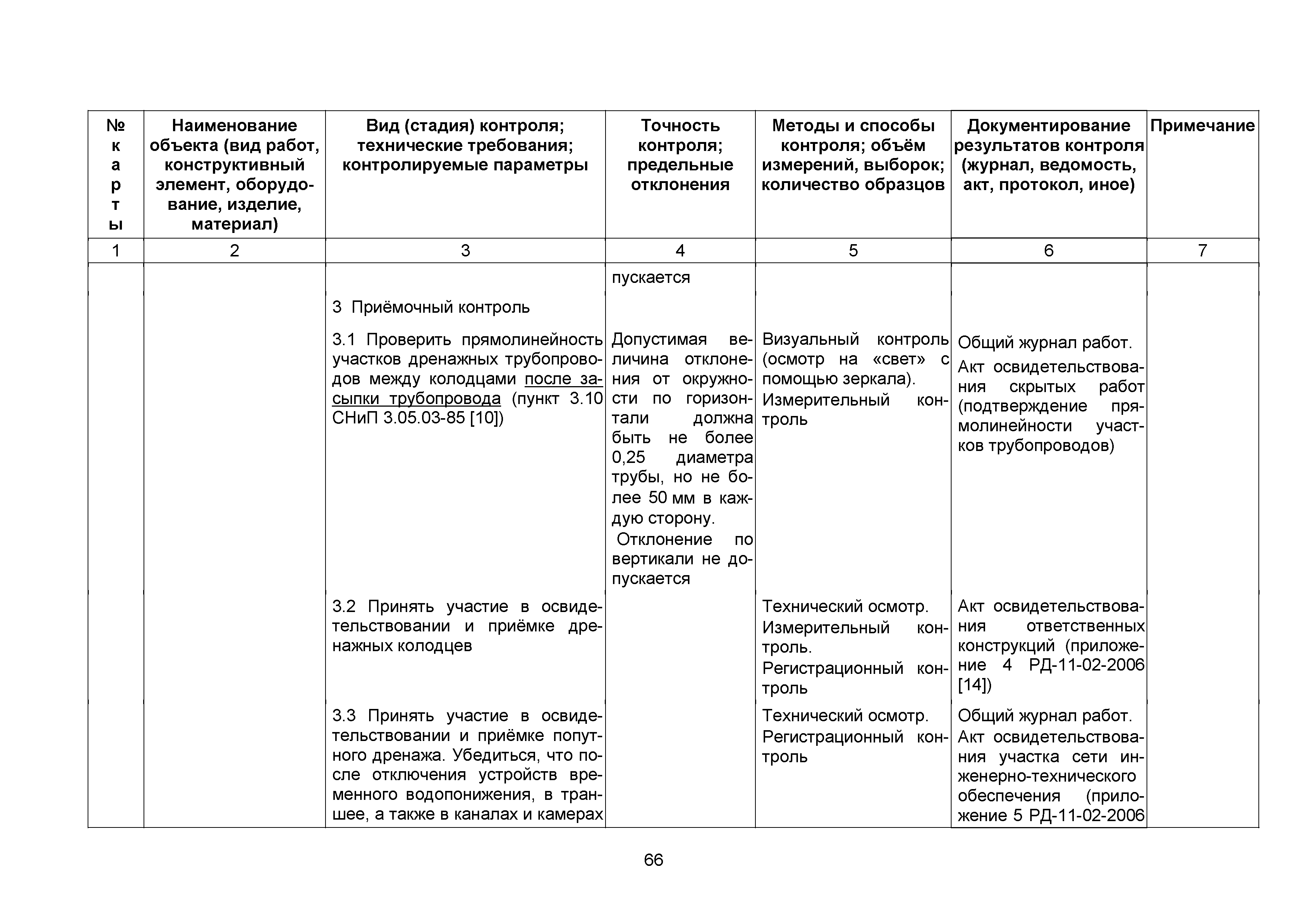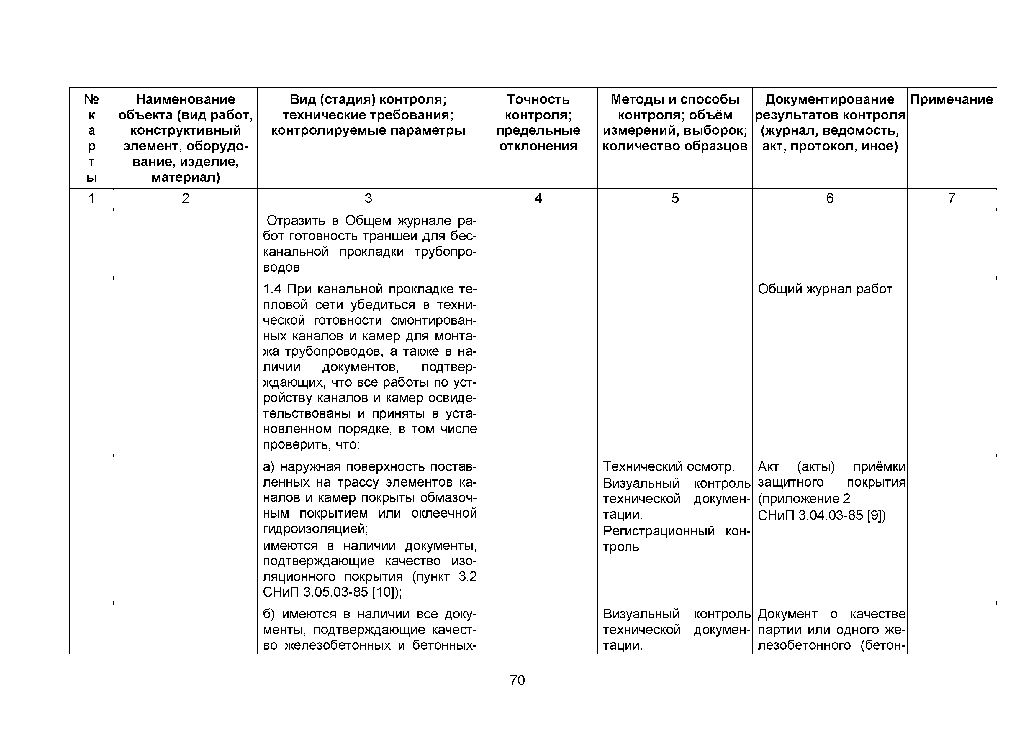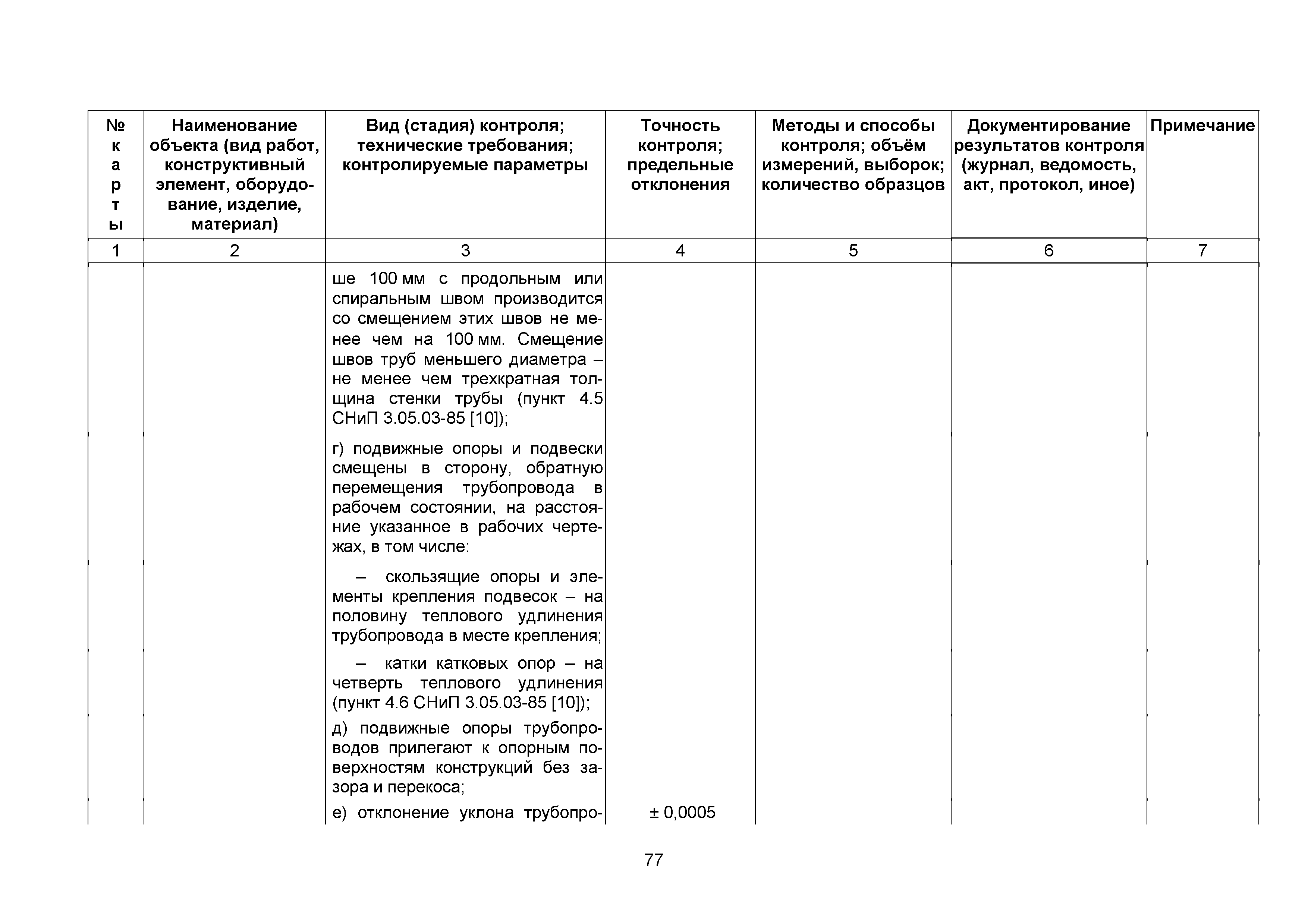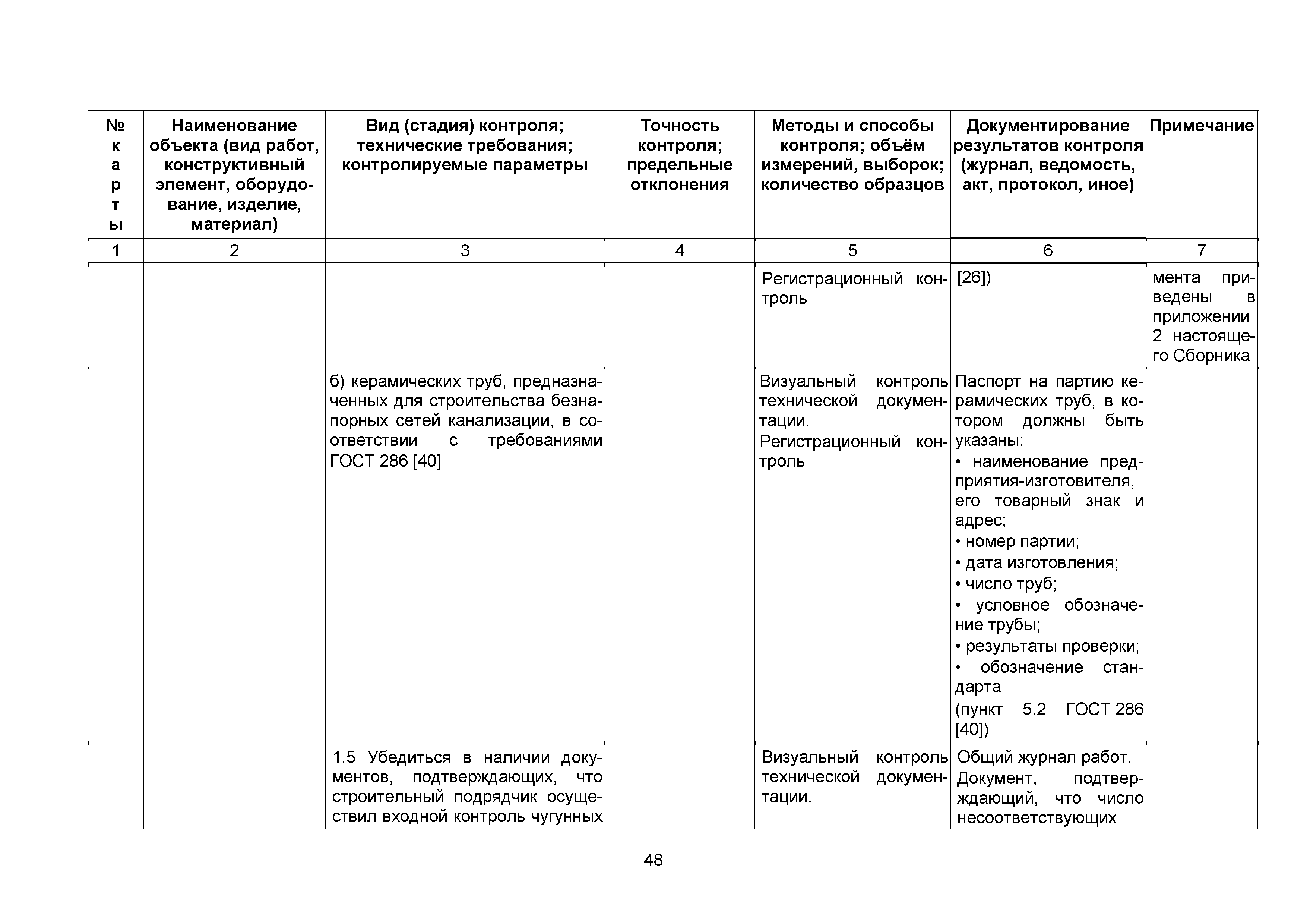 Сборник 10. Технологические карты на осуществление контроля качества работ при устройстве сетей инженерно-технического обеспечения (к Практическому пособию по организации и осуществлению строительного контроля заказчика (технического надзора) за строительством объектов капитального строительства)| Статус: | справочные материалы, мп, тпр | | Название рус.: | Сборник 10. Технологические карты на осуществление контроля качества работ при устройстве сетей инженерно-технического обеспечения (к Практическому пособию по организации и осуществлению строительного контроля заказчика (технического надзора) за строительством объектов капитального строительства) | | Дата добавления в базу: | 01.09.2013 | | Дата актуализации: | 01.01.2021 | | Область применения: | Сборник предназначен для специалистов служб заказчика (застройщика), осуществляющих технический надзор за строительством объектов капитального строительства, и может быть полезен для иных субъектов инвестиционной деятельности (проектировщиков, строительных подрядчиков), принимающих участие в разработке и реализации инвестиционных проектов. | | Оглавление: | 1. Область применения 2. Нормативные ссылки 3. Термины и определения 4. Общие положения 5. Требование к производству сварочных работ и качеству сварных соединений 6. Испытание трубопроводов на прочность и герметичность Приложение 1. Нормативные требования к содержанию документа о качестве стальных труб, гнутых отводов и соединительных частей, поставляемых отдельно от труб Приложение 2. Нормативные требования к содержанию документа о качестве чугунных труб Приложение 3. Технологические карты на осуществление контроля качества работ при устройстве наружных сетей инженерно-технического обеспечения Приложение 4. Виды сварных соединений, швов, а также характерные виды дефектов, выявляемых при визуальном и измерительном контроле Приложение 5. Форма Акта о проведении приемочного гидравлического испытания напорного трубопровода на прочность и герметичность Приложение 6. Форма Акта о проведении пневматического испытания напорного трубопровода на прочность и герметичность Приложение 7. Порядок проведения гидравлического испытания напорного трубопровода на прочность и герметичность Приложение 8. Форма Акта о проведении приемочного гидравлического испытания безнапорного трубопровода на герметичность Приложение 9. Форма Акта о проведении промывки и дезинфекции трубопроводов (сооружений) хозяйственно-питьевого водоснабжения Приложение 10. Форма Акта о проведении испытаний трубопроводов на прочность и герметичность Приложение 11. Форма Акта о проведении промывки (продувки) трубопроводов Приложение 12. Нормативные требования к геометрическим размерам и к качеству поверхности стальных труб Приложение 13. Форма Акта о проведении растяжки компенсаторов Приложение 14. Нормативные требования к показателям внешнего вида поверхности керамических труб Приложение 15. Нормативные требования к глубине заделки стыковых соединений чугунных напорных и керамических труб Библиография | | Разработан: | ОАО Центринвестпроект
