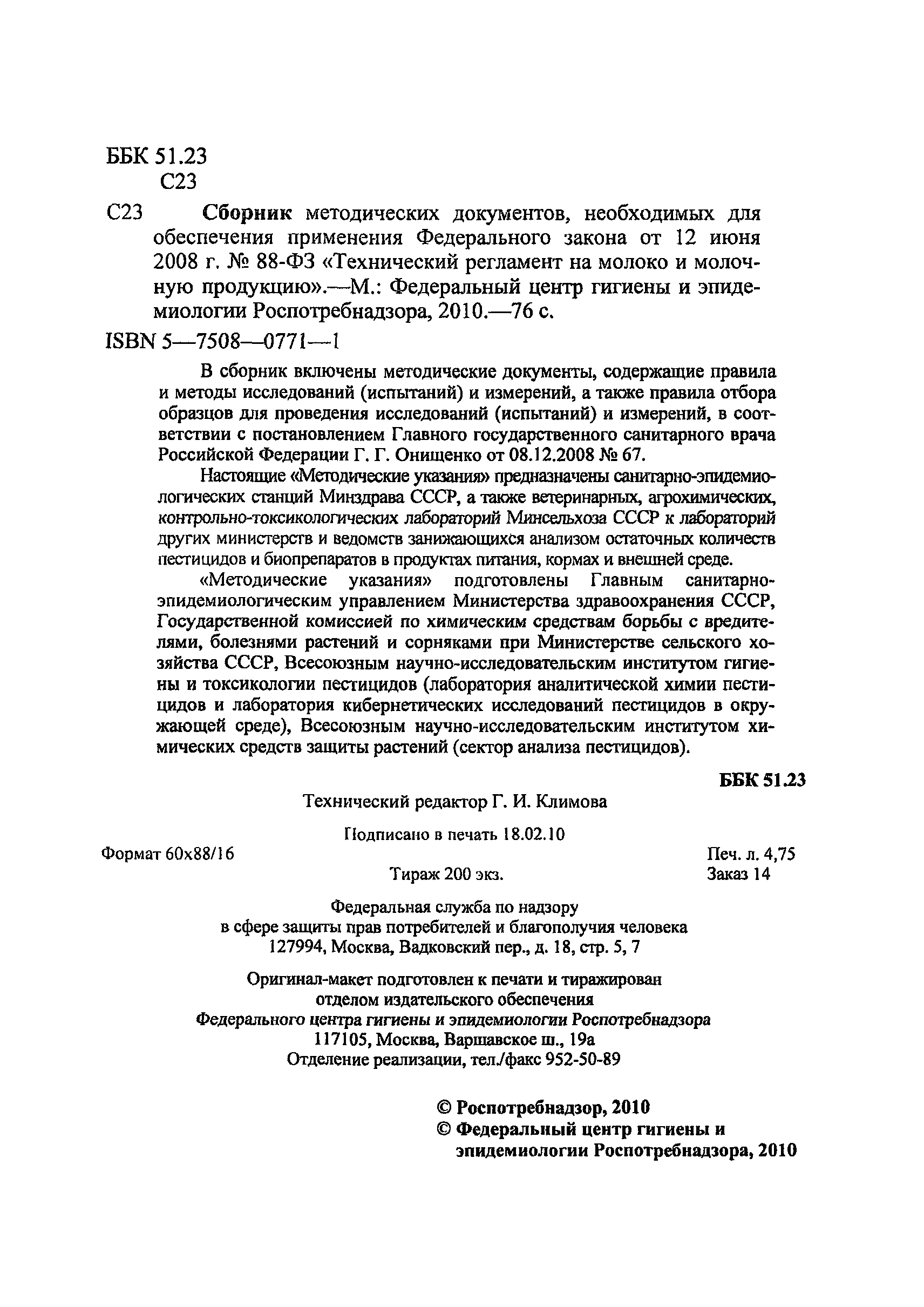 | | Издан: | Роспотребнадзор (2010 г. (Сборник.))