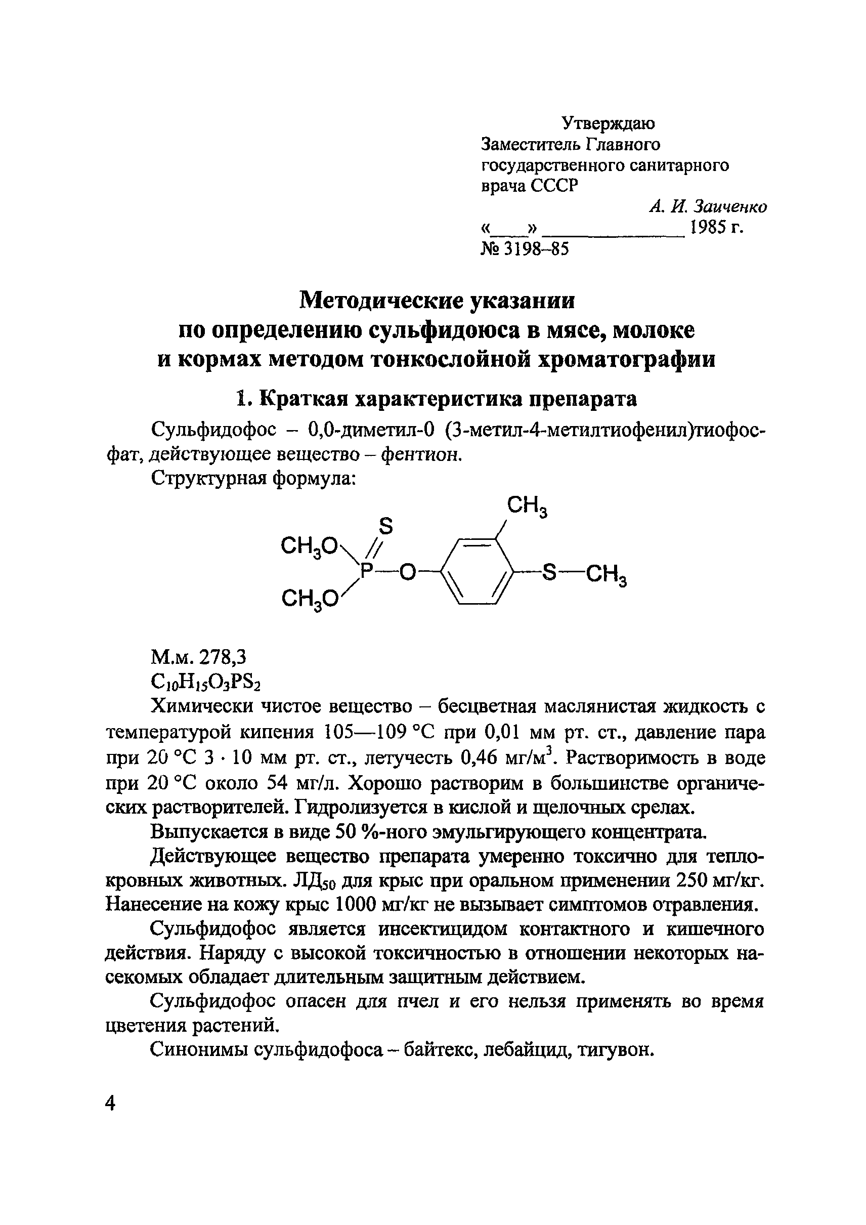 | | Утверждён: | Зам. Главного Государственного санитарного врача СССР (USSR Deputy Chief Public Health Officer 3198-85)