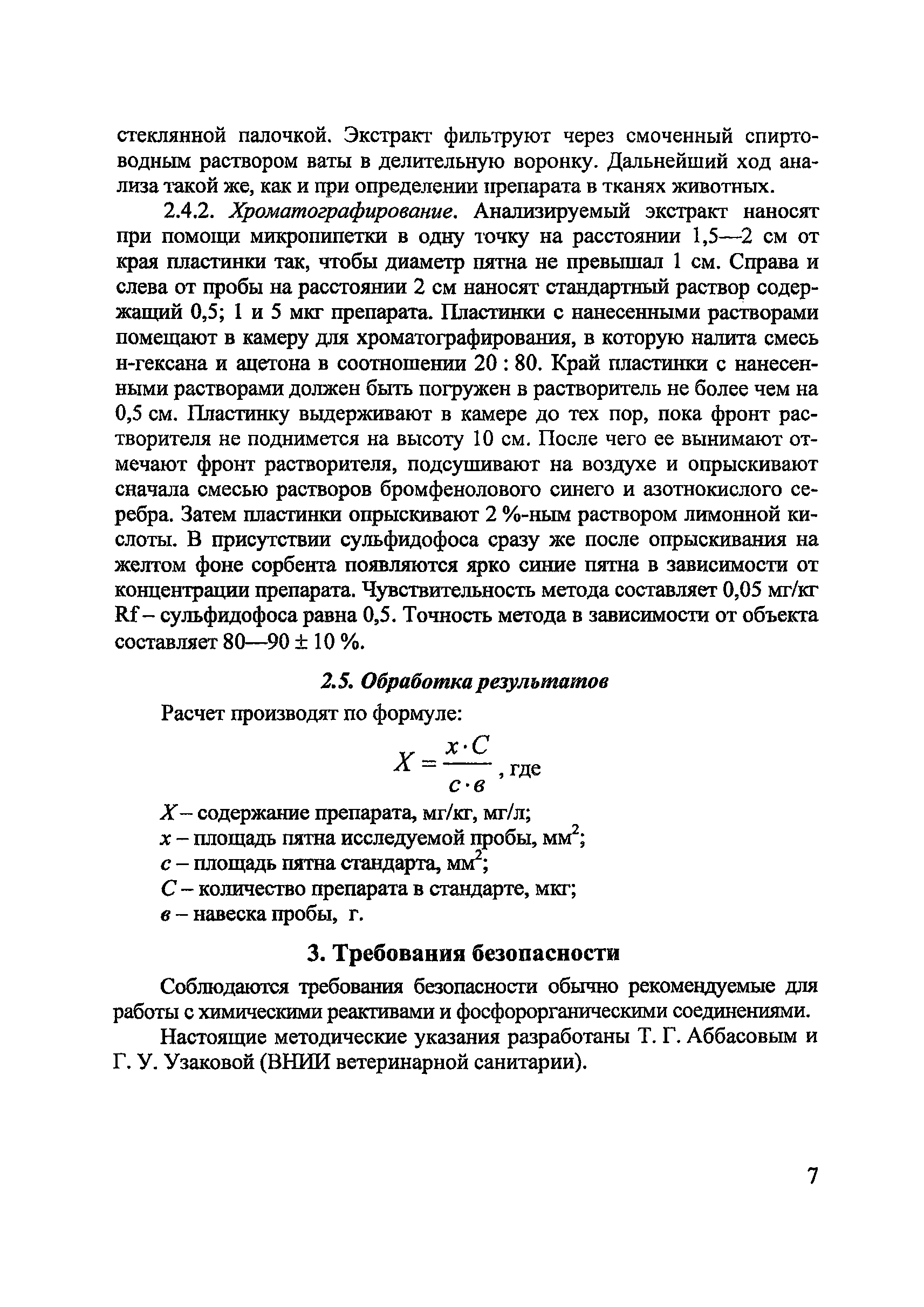 Методические указания по определению сульфидофоса в мясе, молоке и кормах методом тонкослойной хроматографии| Статус: | действует | | Название рус.: | Методические указания по определению сульфидофоса в мясе, молоке и кормах методом тонкослойной хроматографии | | Дата добавления в базу: | 01.09.2013 | | Дата актуализации: | 01.01.2021 | | Разработан: | ВНИИ ветеринарной санитарии