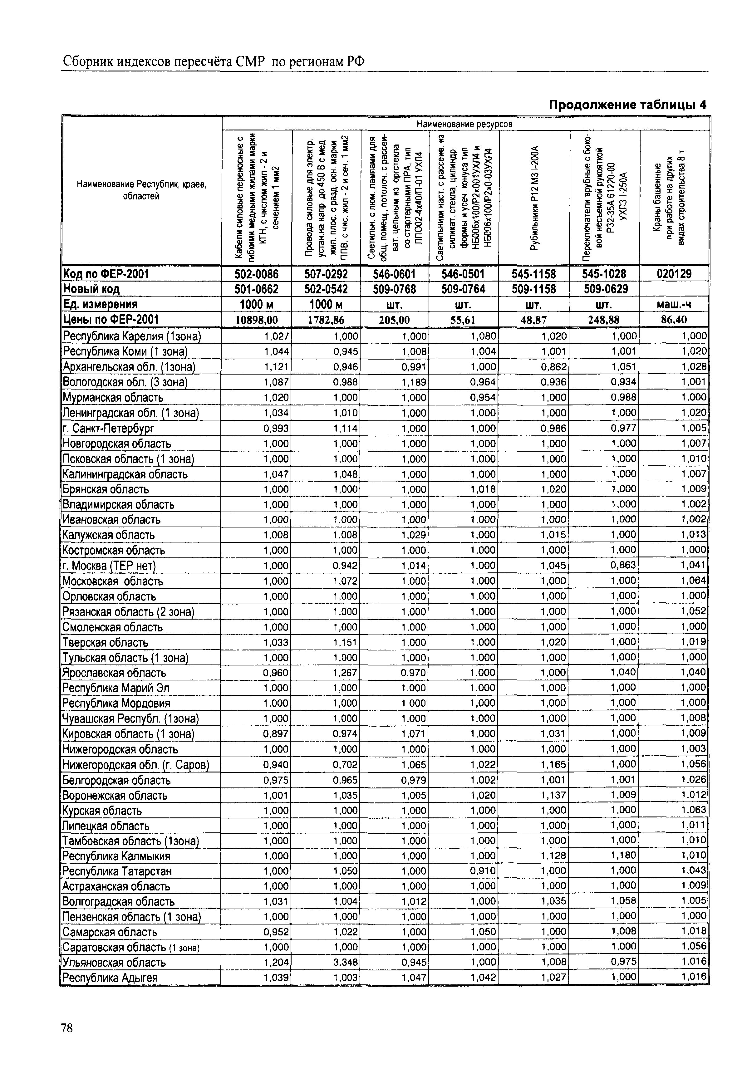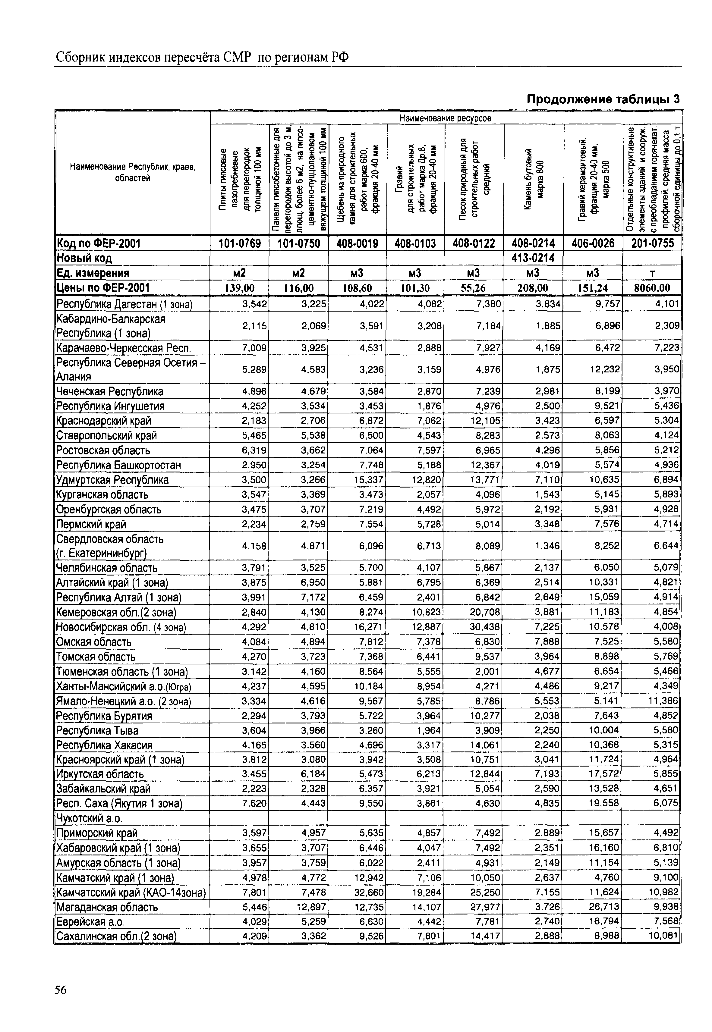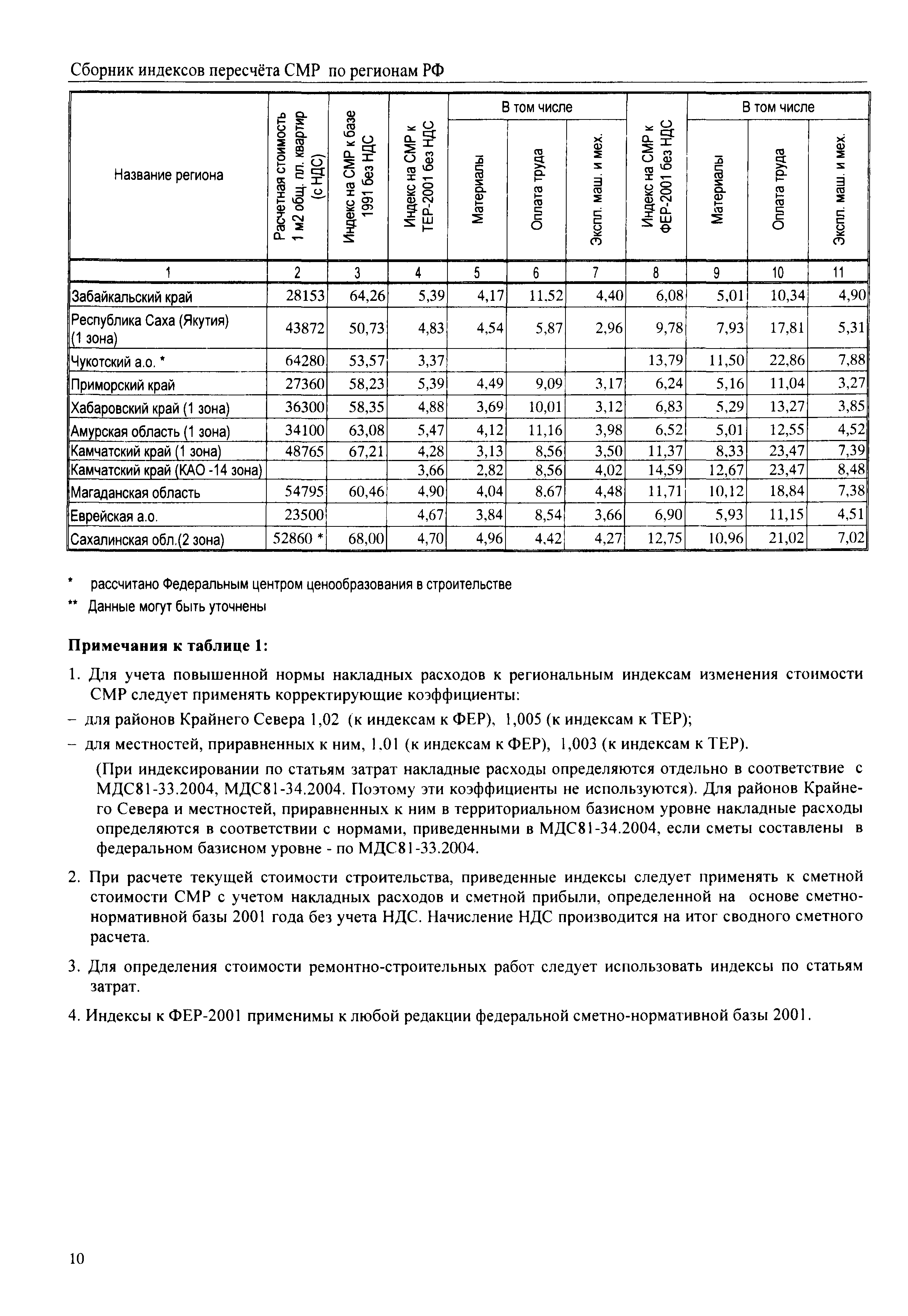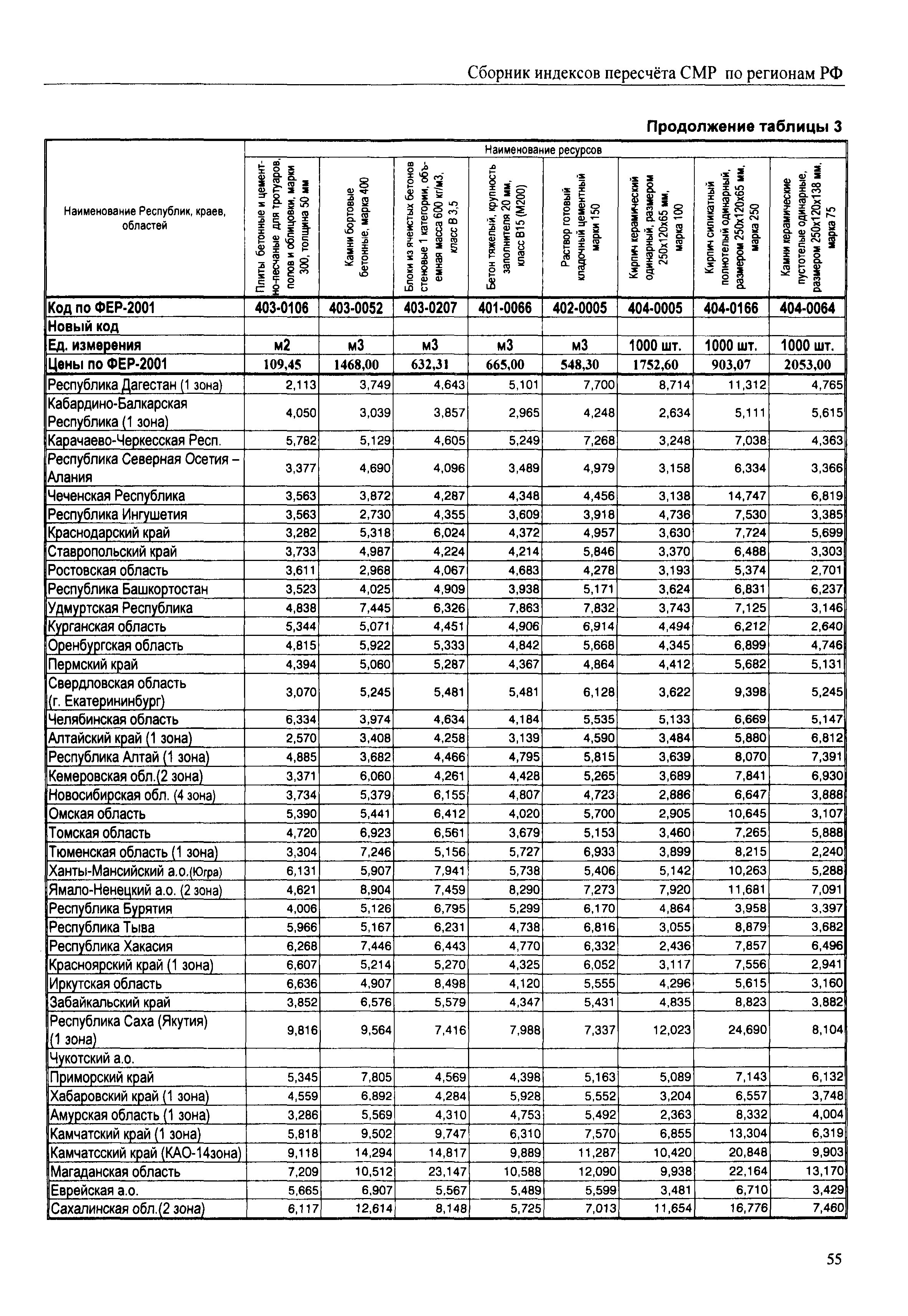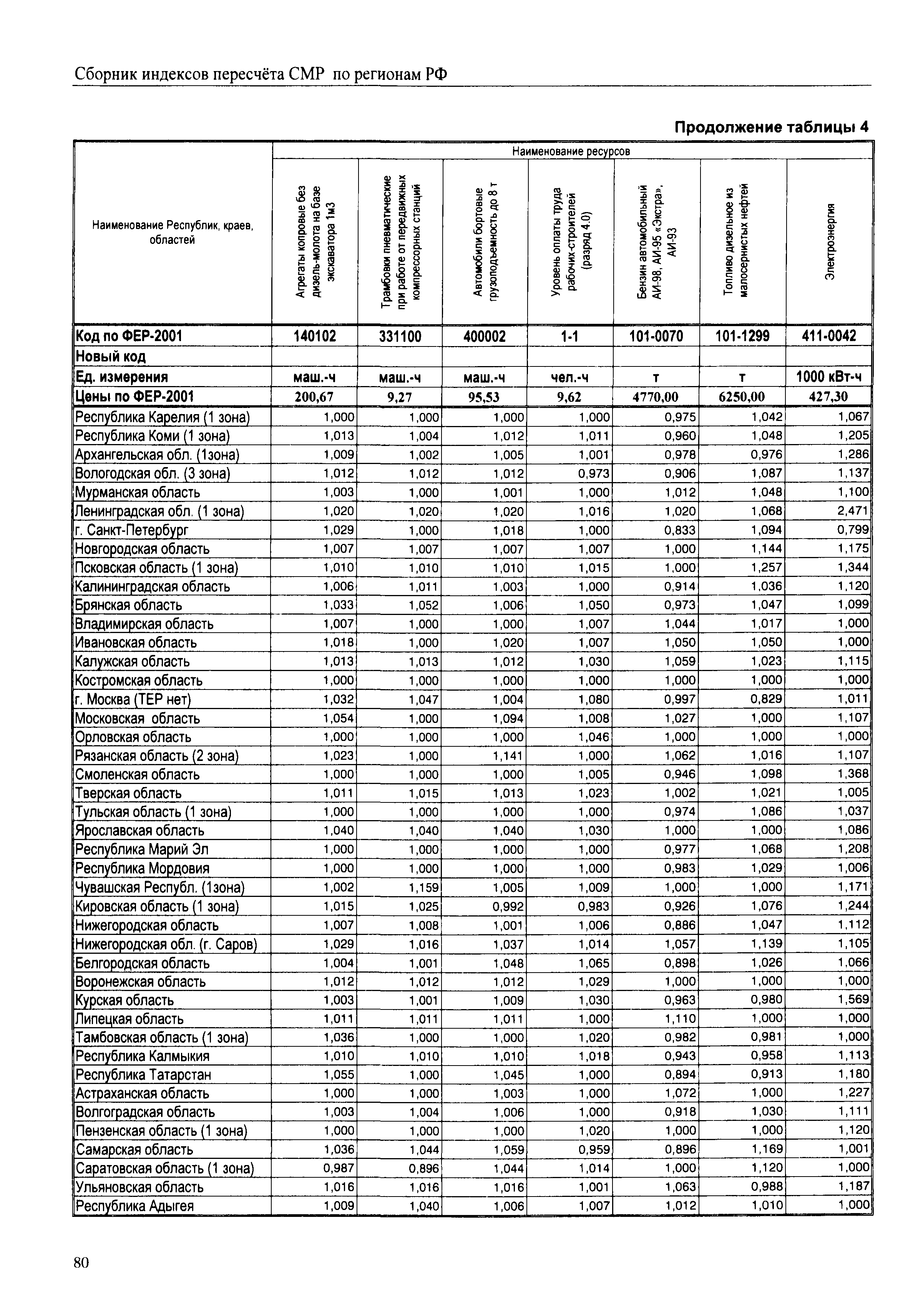 Межрегиональный сборник индексов пересчета сметной стоимости строительно-монтажных работ по субъектам Российской Федерации на I квартал 2010 г.| Статус: | не действует | | Название рус.: | Межрегиональный сборник индексов пересчета сметной стоимости строительно-монтажных работ по субъектам Российской Федерации на I квартал 2010 г. | | Дата добавления в базу: | 01.09.2013 | | Дата актуализации: | 01.09.2013 | | Область применения: | В сборнике приведены сводные таблицы текущих (I квартал 2010 г.) региональных цен на основные ресурсы, применяемые в строительстве, региональные индексы пересчета базисной стоимости строительно-монтажных работ, определяемой с использованием сборников новой сметно-нормативной базы (ФЕР-2001, ТЕР-2001), в территориальный текущий уровень. Индексы разработаны по единой методике, на основании отчетных данных региональных органов по ценообразованию в строительстве о стоимости строительных ресурсов, применяемых в регионе. | | Оглавление: | Общая часть Техническая часть (к таблицам 1, 2, 3, 4) Цены на строительную продукцию в I квартале 2010 г. Анализ роста индексов и стоимости 1 м2 по субъектам Российской Федерации в I квартале 2010 г. – таблица А Расчетная стоимость 1 м2 общей площади квартир и индексы изменения стоимости строительства по субъектам Российской Федерации за I квартал 2010 г. – Таблица 1 Сметная стоимость строительных ресурсов (без НДС) в руб. - Таблица 2 Индексы на отдельные виды ресурсов (к заложенным в ФЕР-2001) - Таблица 3 Индексы роста стоимости строительных ресурсов к предыдущему кварталу - Таблица 4 Региональные индексы к ФЕР-2001 по основным видам объектов строительства - Таблица 5 Индексы на оборудование за I квартал 2010 г. Индексы на прочие работы и затраты за I квартал 2010 г. |