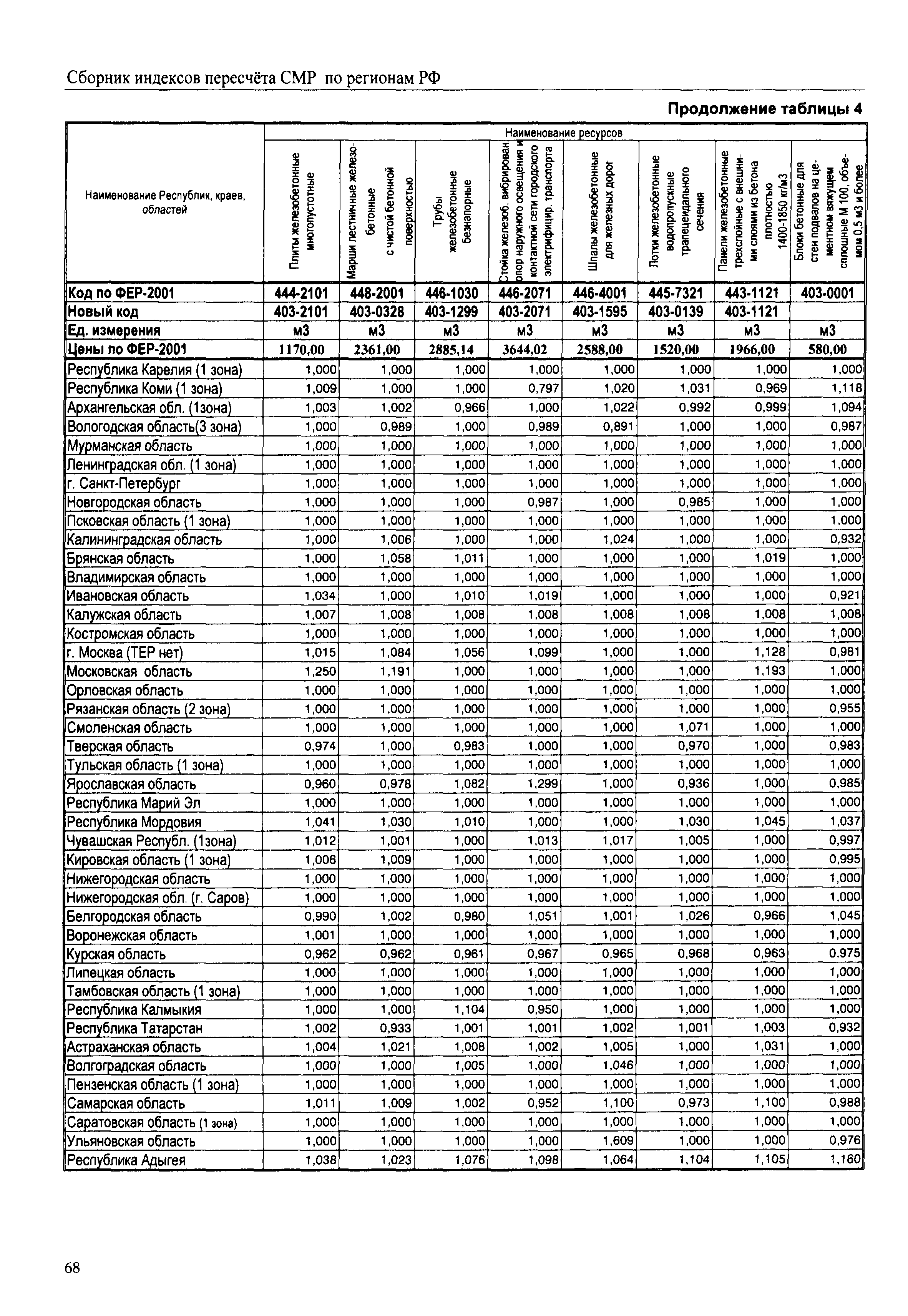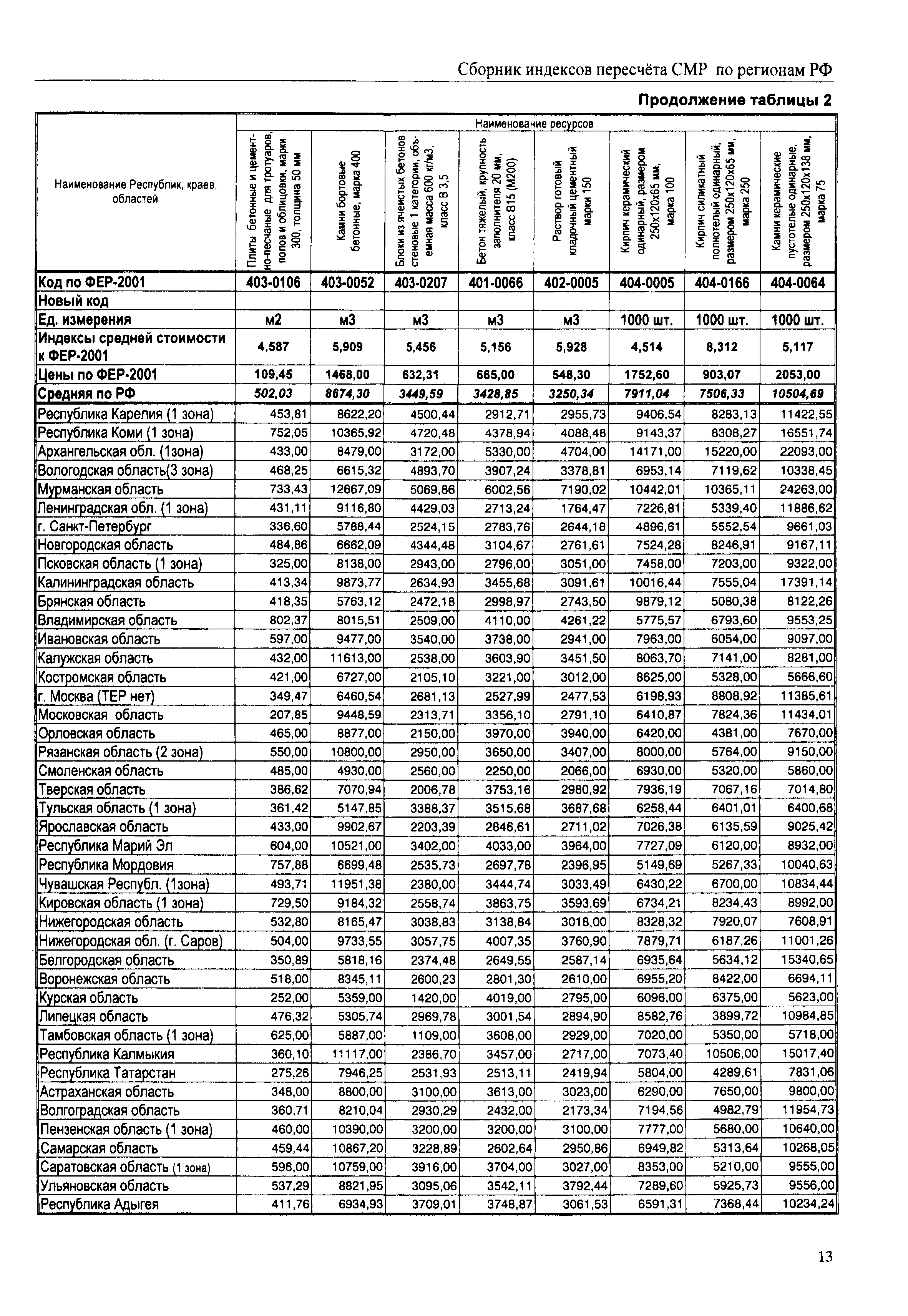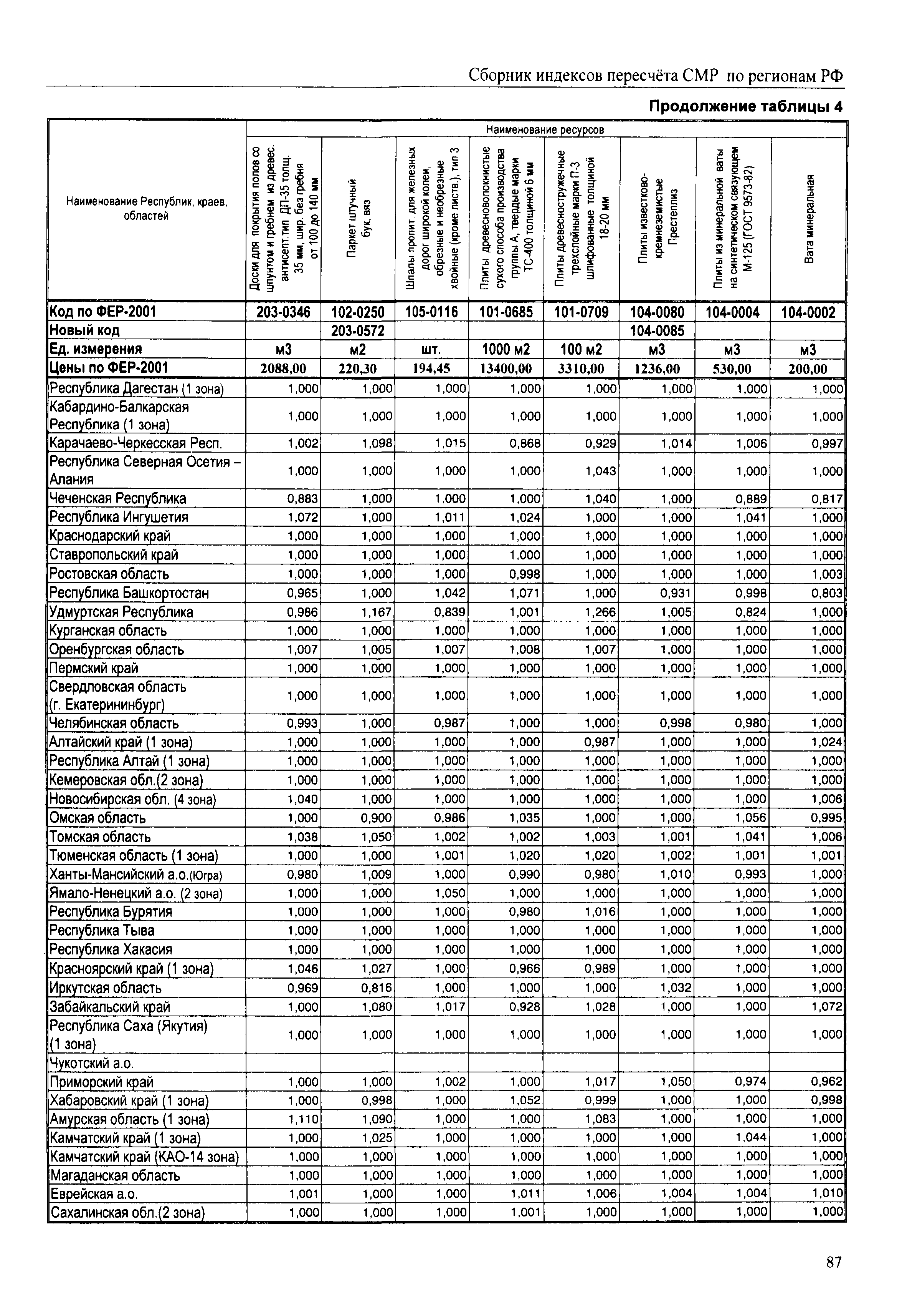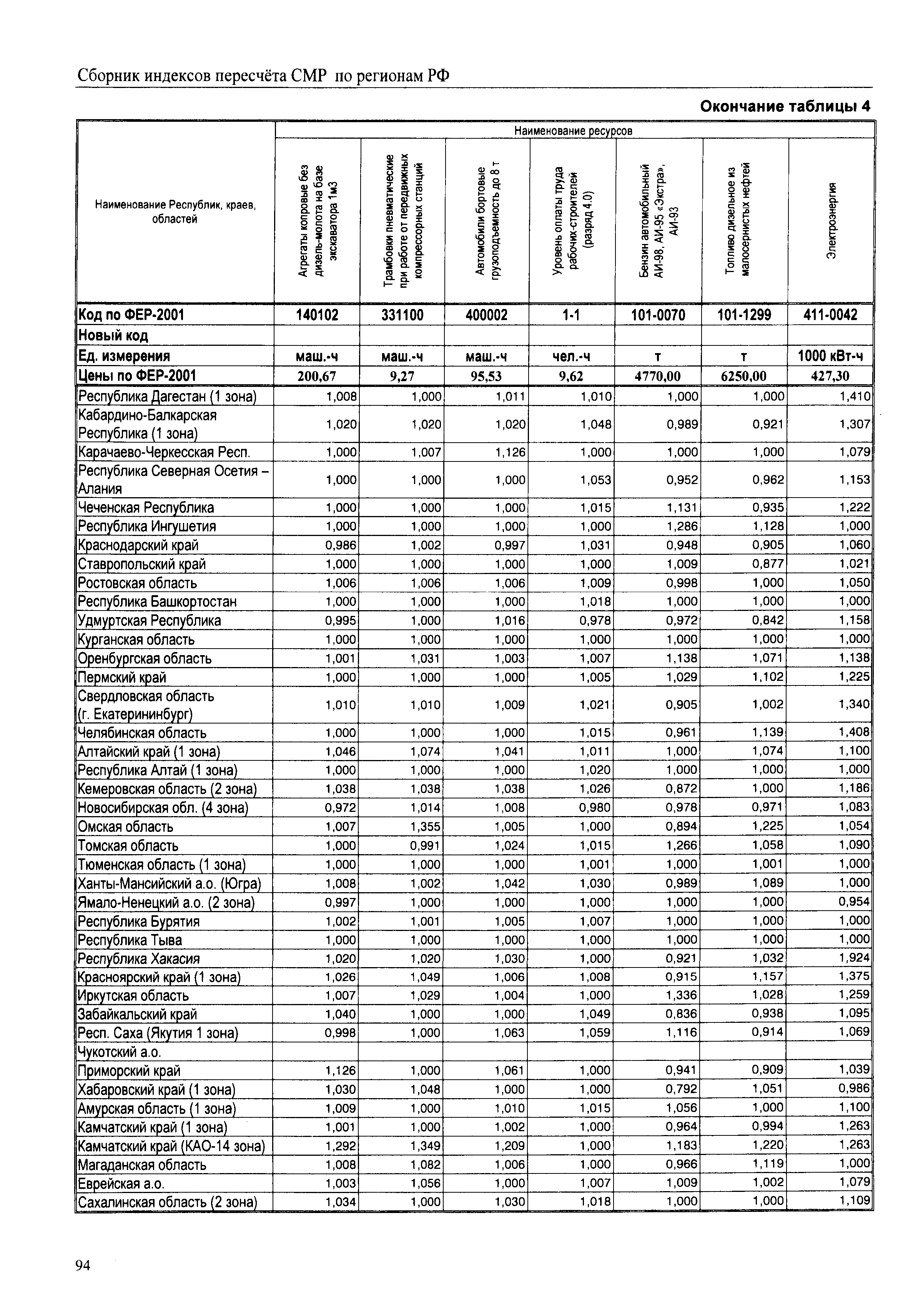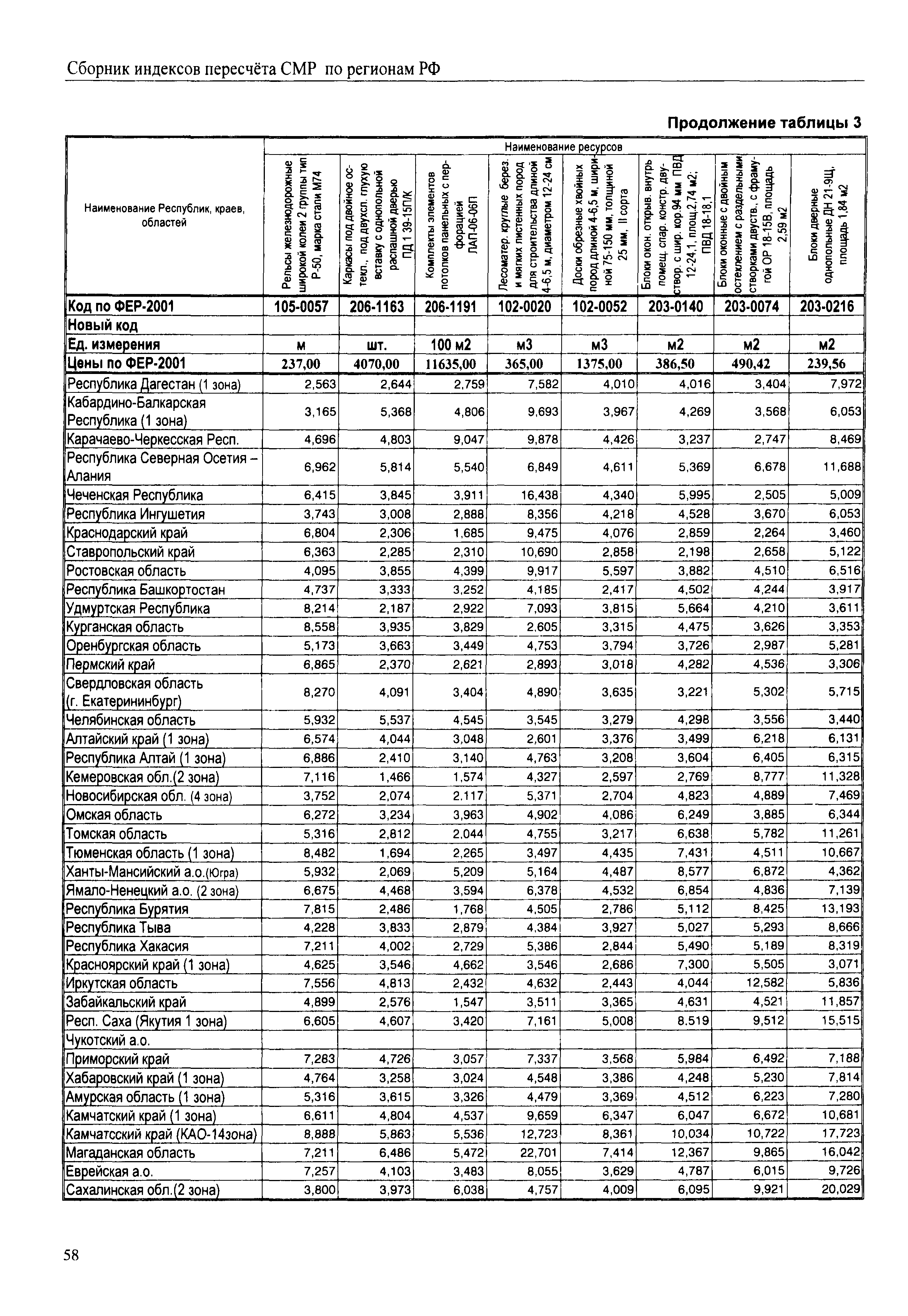Межрегиональный сборник индексов пересчета сметной стоимости строительно-монтажных работ по субъектам Российской Федерации на I квартал 2010 г.| Статус: | не действует | | Название рус.: | Межрегиональный сборник индексов пересчета сметной стоимости строительно-монтажных работ по субъектам Российской Федерации на I квартал 2010 г. | | Дата добавления в базу: | 01.09.2013 | | Дата актуализации: | 01.09.2013 | | Область применения: | В сборнике приведены сводные таблицы текущих (I квартал 2010 г.) региональных цен на основные ресурсы, применяемые в строительстве, региональные индексы пересчета базисной стоимости строительно-монтажных работ, определяемой с использованием сборников новой сметно-нормативной базы (ФЕР-2001, ТЕР-2001), в территориальный текущий уровень. Индексы разработаны по единой методике, на основании отчетных данных региональных органов по ценообразованию в строительстве о стоимости строительных ресурсов, применяемых в регионе. | | Оглавление: | Общая часть Техническая часть (к таблицам 1, 2, 3, 4) Цены на строительную продукцию в I квартале 2010 г. Анализ роста индексов и стоимости 1 м2 по субъектам Российской Федерации в I квартале 2010 г. – таблица А Расчетная стоимость 1 м2 общей площади квартир и индексы изменения стоимости строительства по субъектам Российской Федерации за I квартал 2010 г. – Таблица 1 Сметная стоимость строительных ресурсов (без НДС) в руб. - Таблица 2 Индексы на отдельные виды ресурсов (к заложенным в ФЕР-2001) - Таблица 3 Индексы роста стоимости строительных ресурсов к предыдущему кварталу - Таблица 4 Региональные индексы к ФЕР-2001 по основным видам объектов строительства - Таблица 5 Индексы на оборудование за I квартал 2010 г. Индексы на прочие работы и затраты за I квартал 2010 г. |
