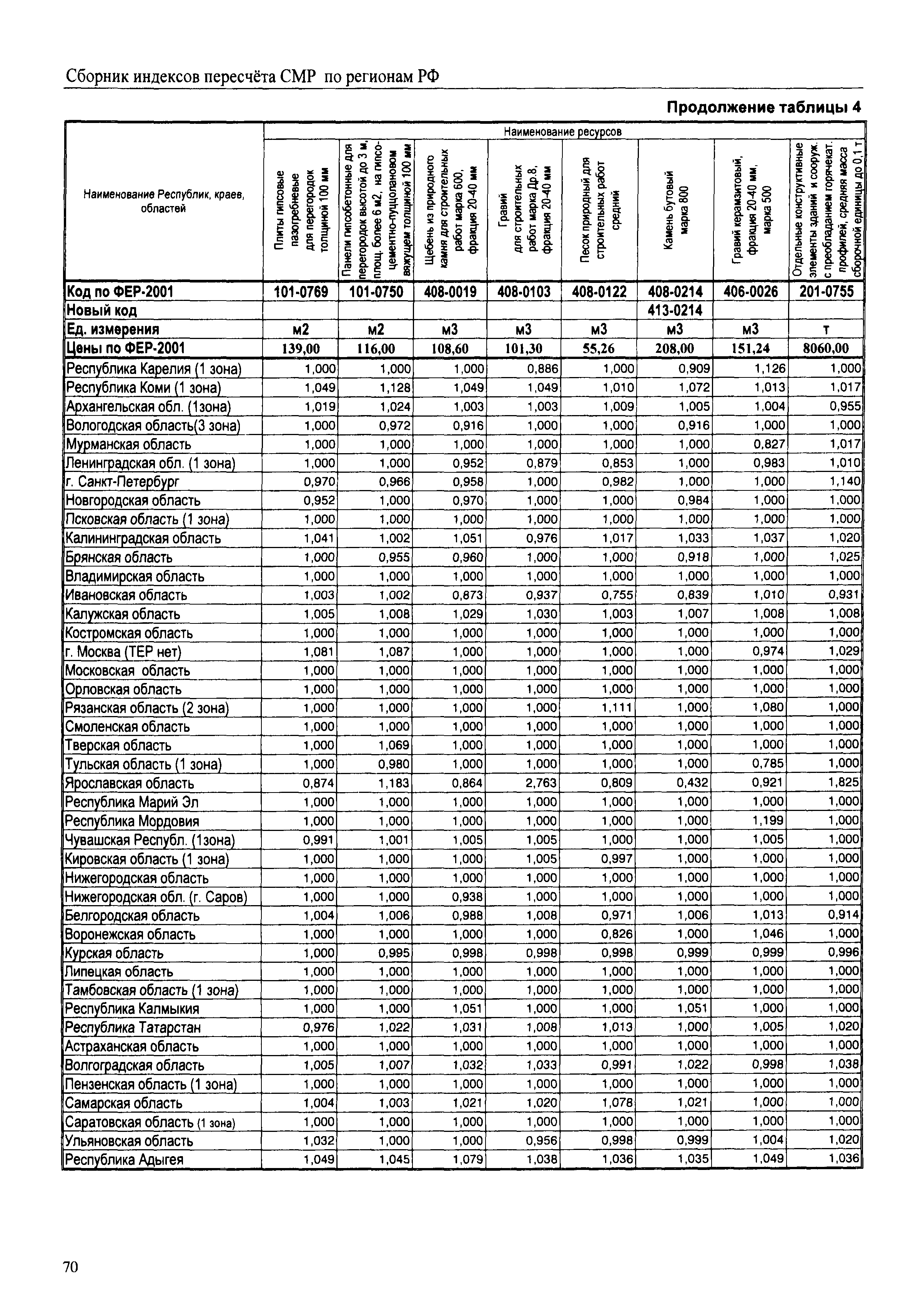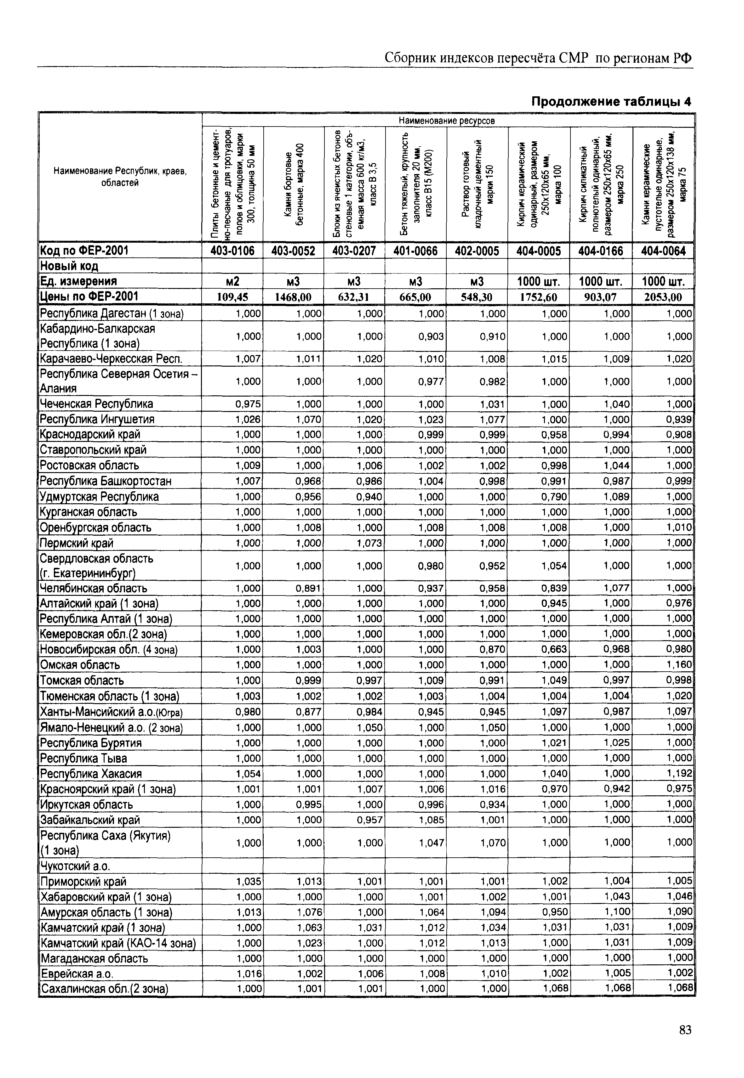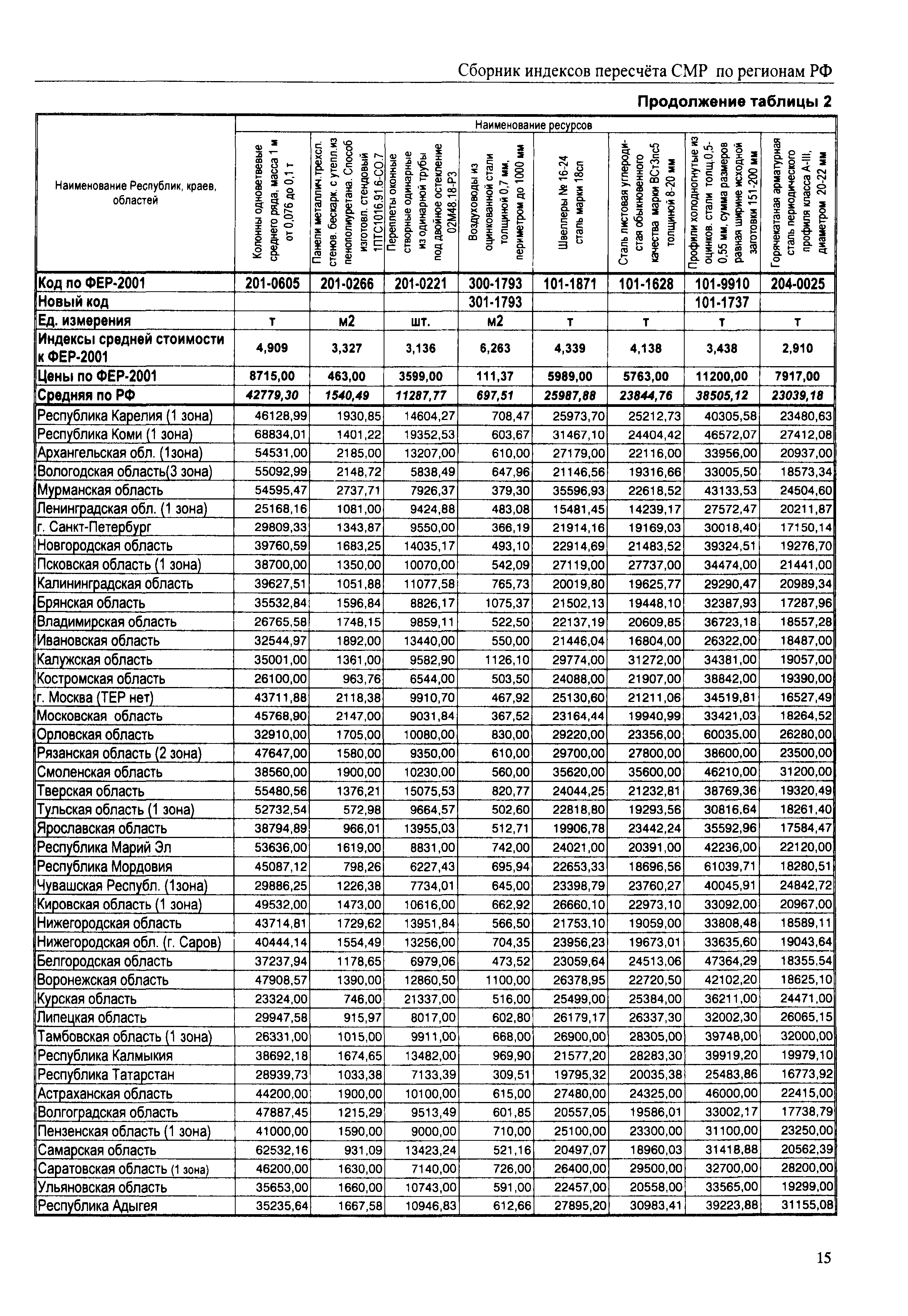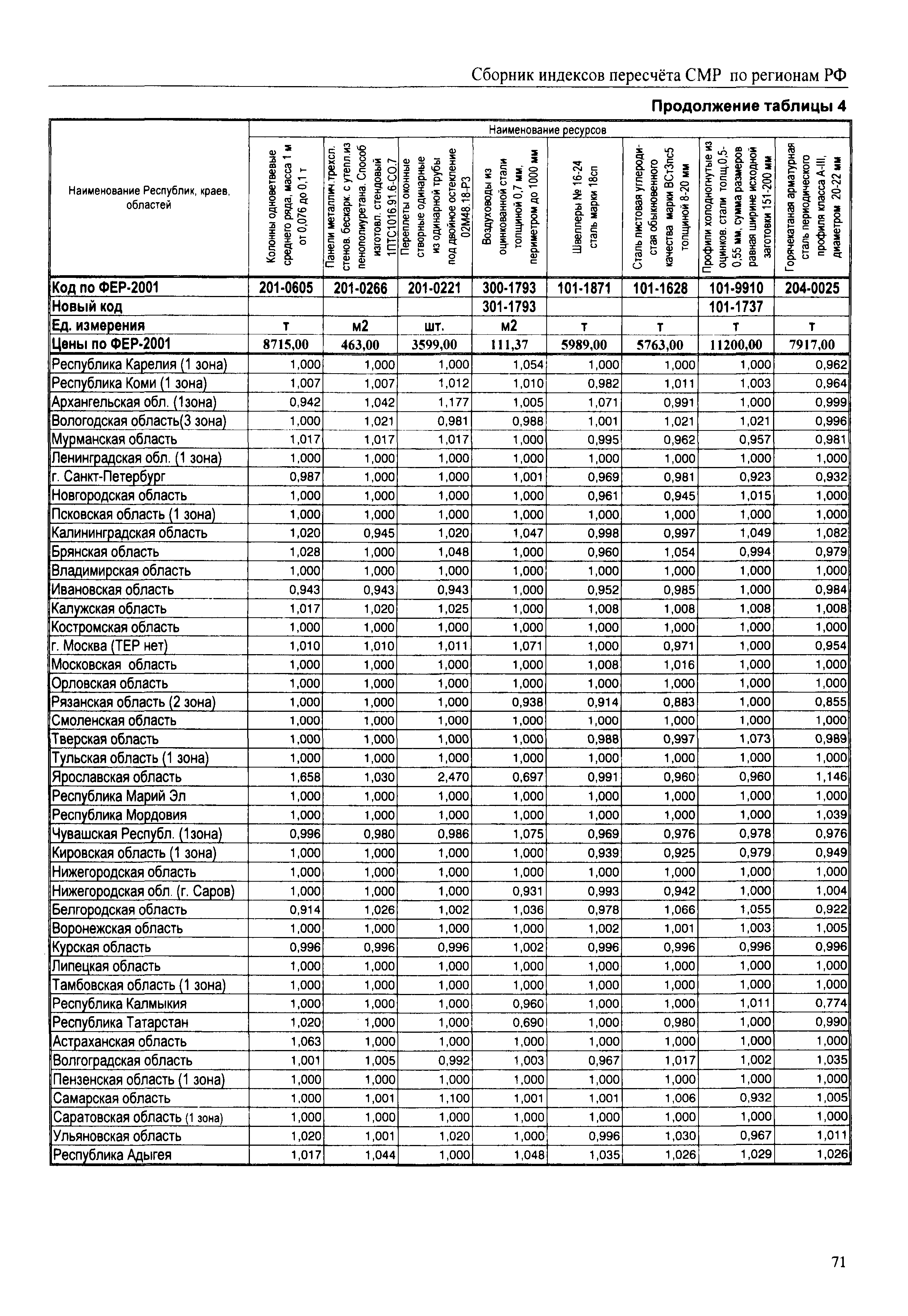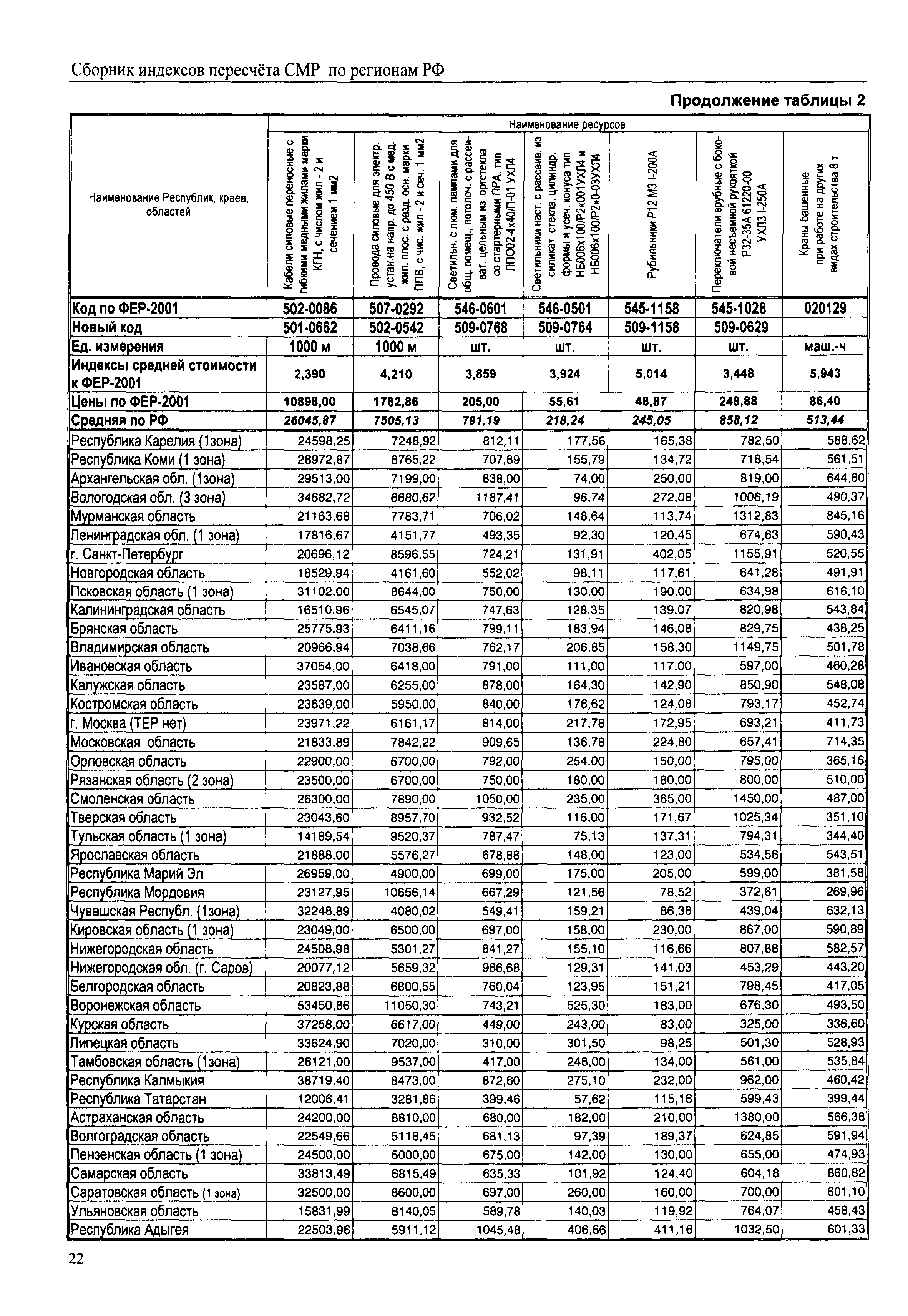 Межрегиональный сборник индексов пересчета сметной стоимости строительно-монтажных работ по субъектам Российской Федерации на I квартал 2010 г.| Статус: | не действует | | Название рус.: | Межрегиональный сборник индексов пересчета сметной стоимости строительно-монтажных работ по субъектам Российской Федерации на I квартал 2010 г. | | Дата добавления в базу: | 01.09.2013 | | Дата актуализации: | 01.09.2013 | | Область применения: | В сборнике приведены сводные таблицы текущих (I квартал 2010 г.) региональных цен на основные ресурсы, применяемые в строительстве, региональные индексы пересчета базисной стоимости строительно-монтажных работ, определяемой с использованием сборников новой сметно-нормативной базы (ФЕР-2001, ТЕР-2001), в территориальный текущий уровень. Индексы разработаны по единой методике, на основании отчетных данных региональных органов по ценообразованию в строительстве о стоимости строительных ресурсов, применяемых в регионе. | | Оглавление: | Общая часть Техническая часть (к таблицам 1, 2, 3, 4) Цены на строительную продукцию в I квартале 2010 г. Анализ роста индексов и стоимости 1 м2 по субъектам Российской Федерации в I квартале 2010 г. – таблица А Расчетная стоимость 1 м2 общей площади квартир и индексы изменения стоимости строительства по субъектам Российской Федерации за I квартал 2010 г. – Таблица 1 Сметная стоимость строительных ресурсов (без НДС) в руб. - Таблица 2 Индексы на отдельные виды ресурсов (к заложенным в ФЕР-2001) - Таблица 3 Индексы роста стоимости строительных ресурсов к предыдущему кварталу - Таблица 4 Региональные индексы к ФЕР-2001 по основным видам объектов строительства - Таблица 5 Индексы на оборудование за I квартал 2010 г. Индексы на прочие работы и затраты за I квартал 2010 г. |