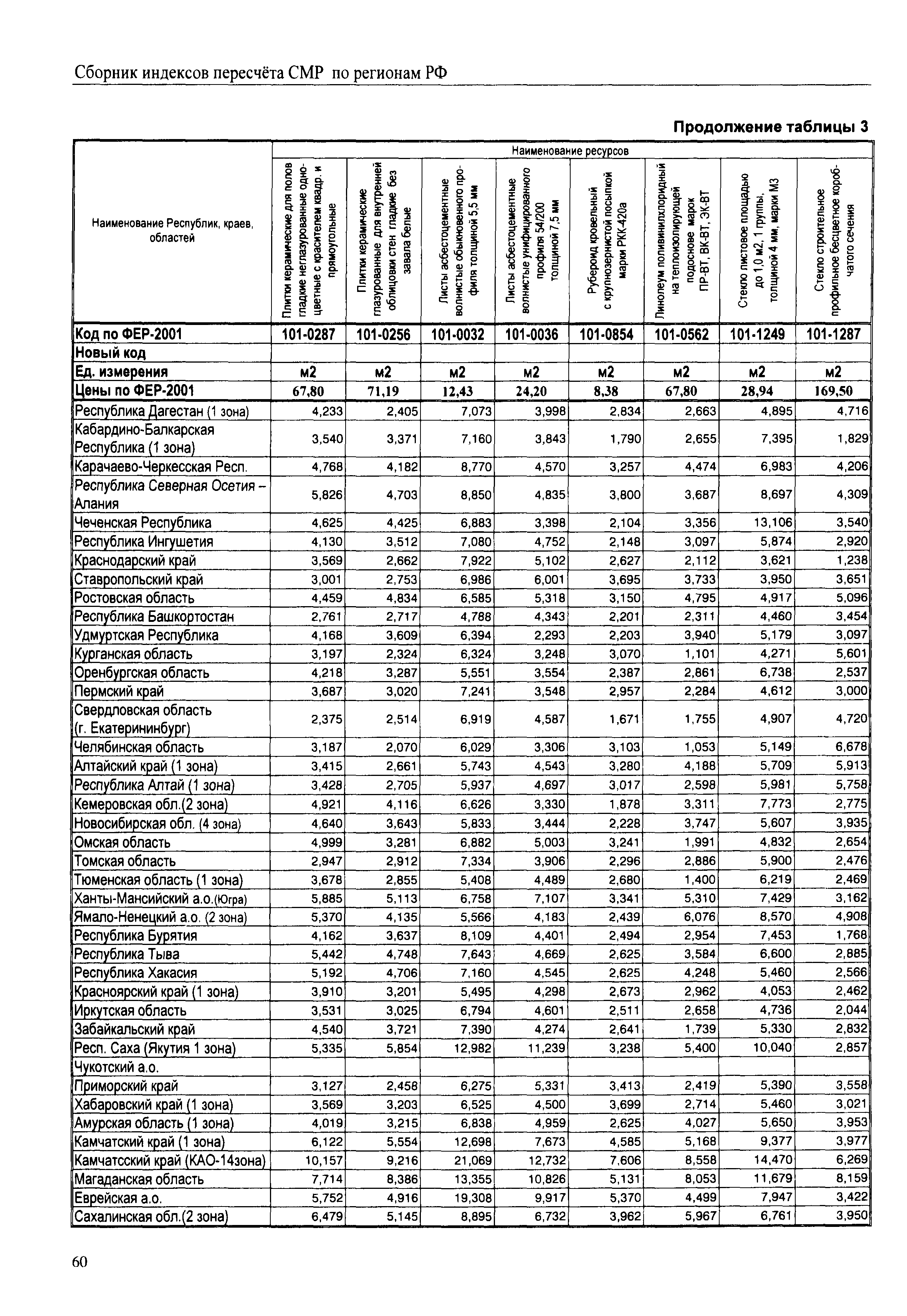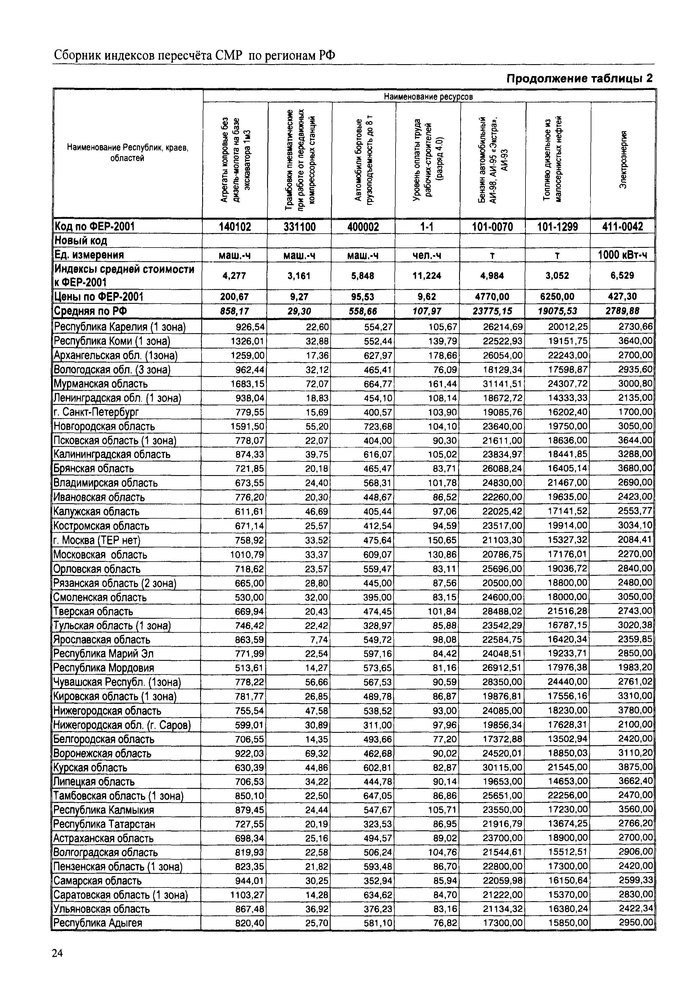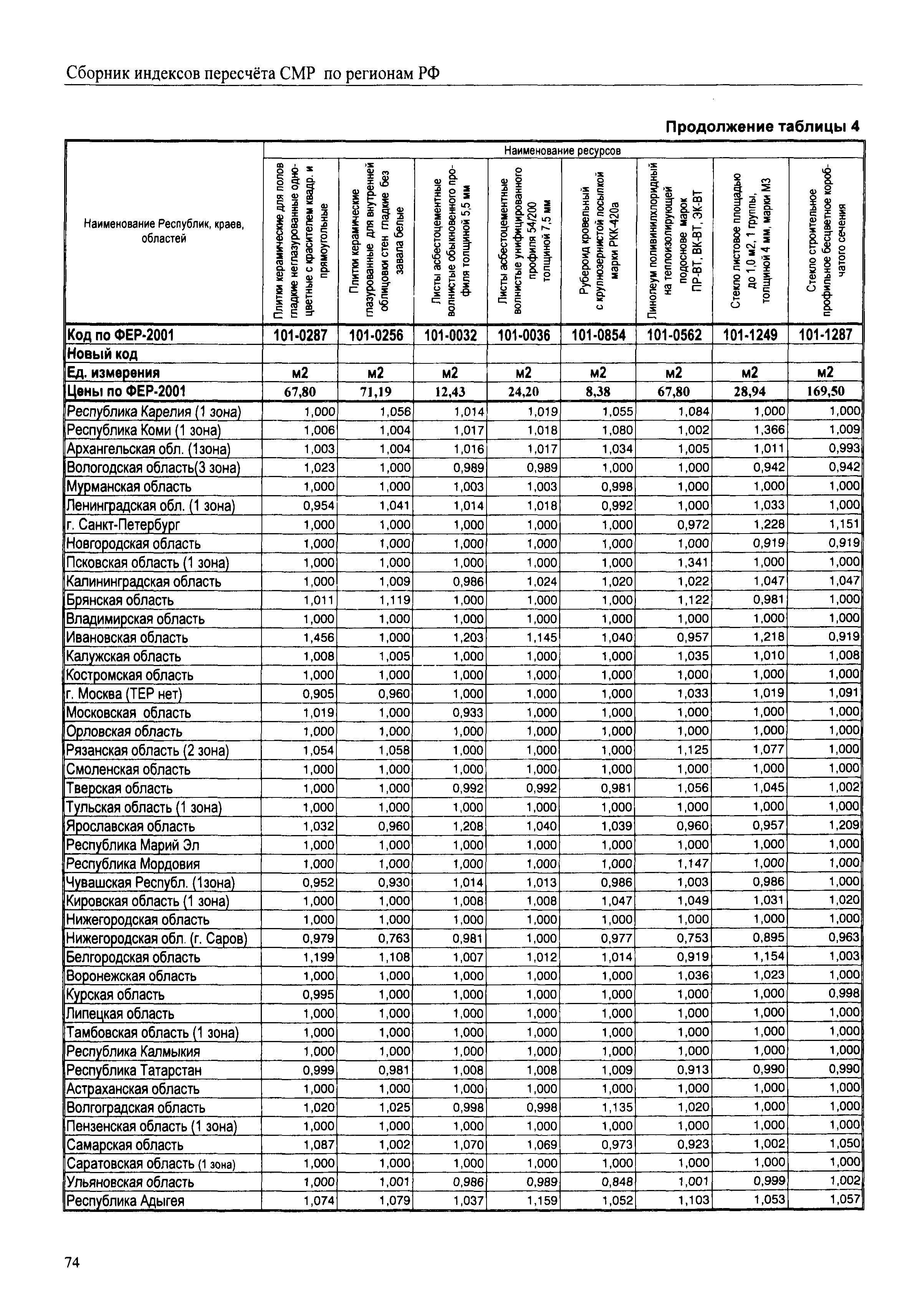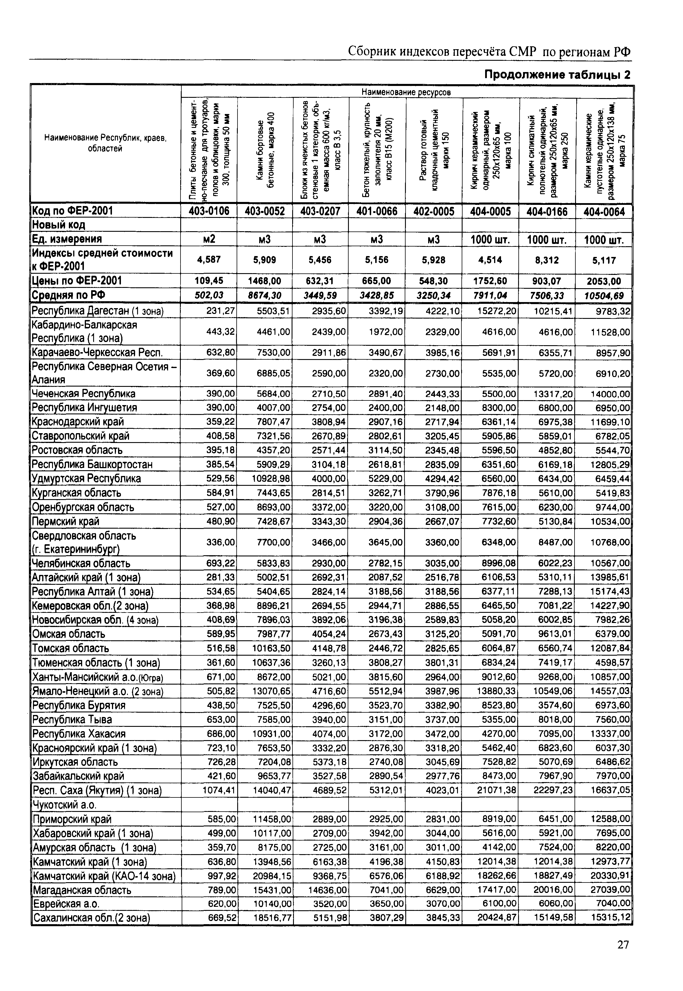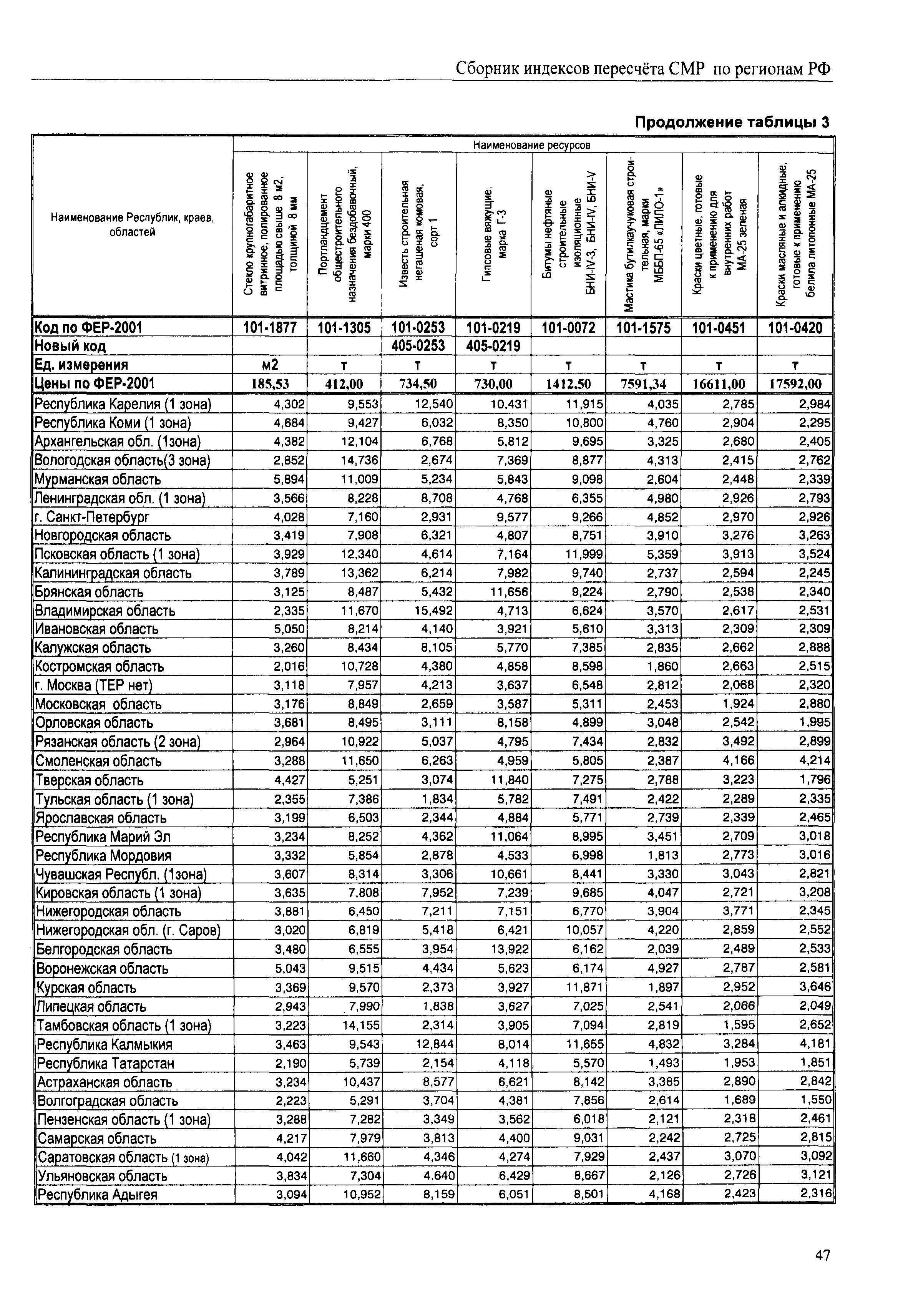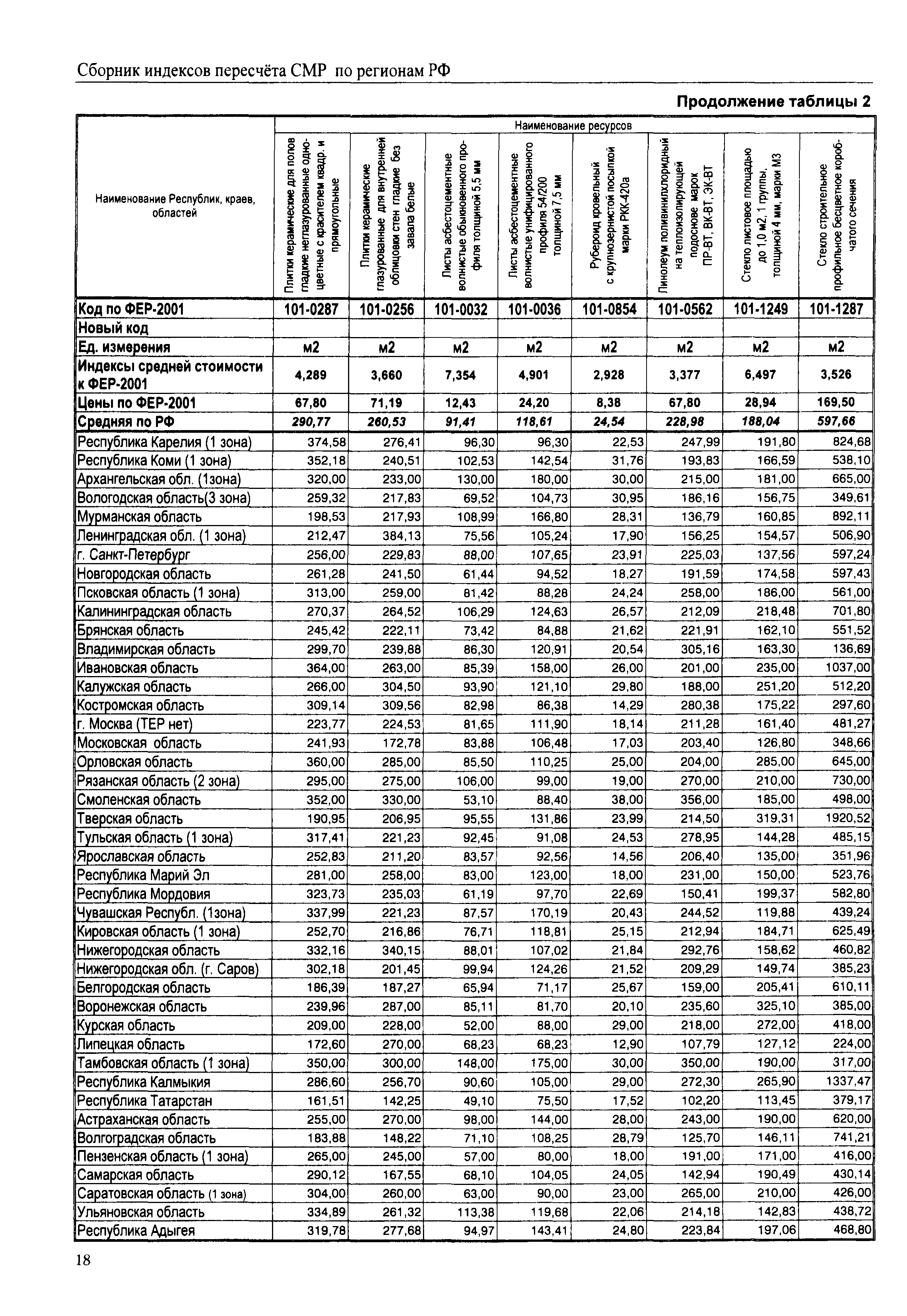 Межрегиональный сборник индексов пересчета сметной стоимости строительно-монтажных работ по субъектам Российской Федерации на I квартал 2010 г.| Статус: | не действует | | Название рус.: | Межрегиональный сборник индексов пересчета сметной стоимости строительно-монтажных работ по субъектам Российской Федерации на I квартал 2010 г. | | Дата добавления в базу: | 01.09.2013 | | Дата актуализации: | 01.09.2013 | | Область применения: | В сборнике приведены сводные таблицы текущих (I квартал 2010 г.) региональных цен на основные ресурсы, применяемые в строительстве, региональные индексы пересчета базисной стоимости строительно-монтажных работ, определяемой с использованием сборников новой сметно-нормативной базы (ФЕР-2001, ТЕР-2001), в территориальный текущий уровень. Индексы разработаны по единой методике, на основании отчетных данных региональных органов по ценообразованию в строительстве о стоимости строительных ресурсов, применяемых в регионе. | | Оглавление: | Общая часть Техническая часть (к таблицам 1, 2, 3, 4) Цены на строительную продукцию в I квартале 2010 г. Анализ роста индексов и стоимости 1 м2 по субъектам Российской Федерации в I квартале 2010 г. – таблица А Расчетная стоимость 1 м2 общей площади квартир и индексы изменения стоимости строительства по субъектам Российской Федерации за I квартал 2010 г. – Таблица 1 Сметная стоимость строительных ресурсов (без НДС) в руб. - Таблица 2 Индексы на отдельные виды ресурсов (к заложенным в ФЕР-2001) - Таблица 3 Индексы роста стоимости строительных ресурсов к предыдущему кварталу - Таблица 4 Региональные индексы к ФЕР-2001 по основным видам объектов строительства - Таблица 5 Индексы на оборудование за I квартал 2010 г. Индексы на прочие работы и затраты за I квартал 2010 г. |