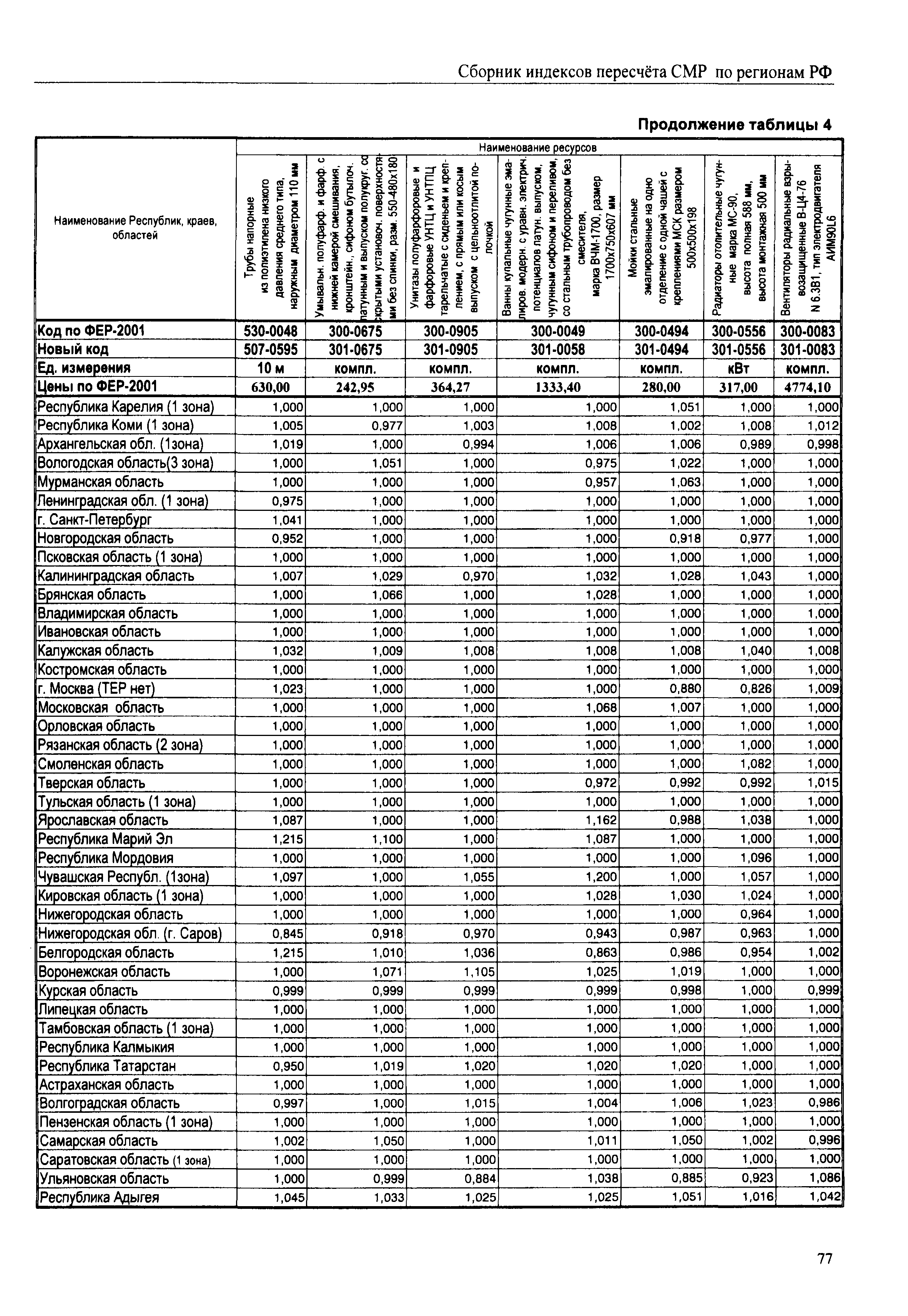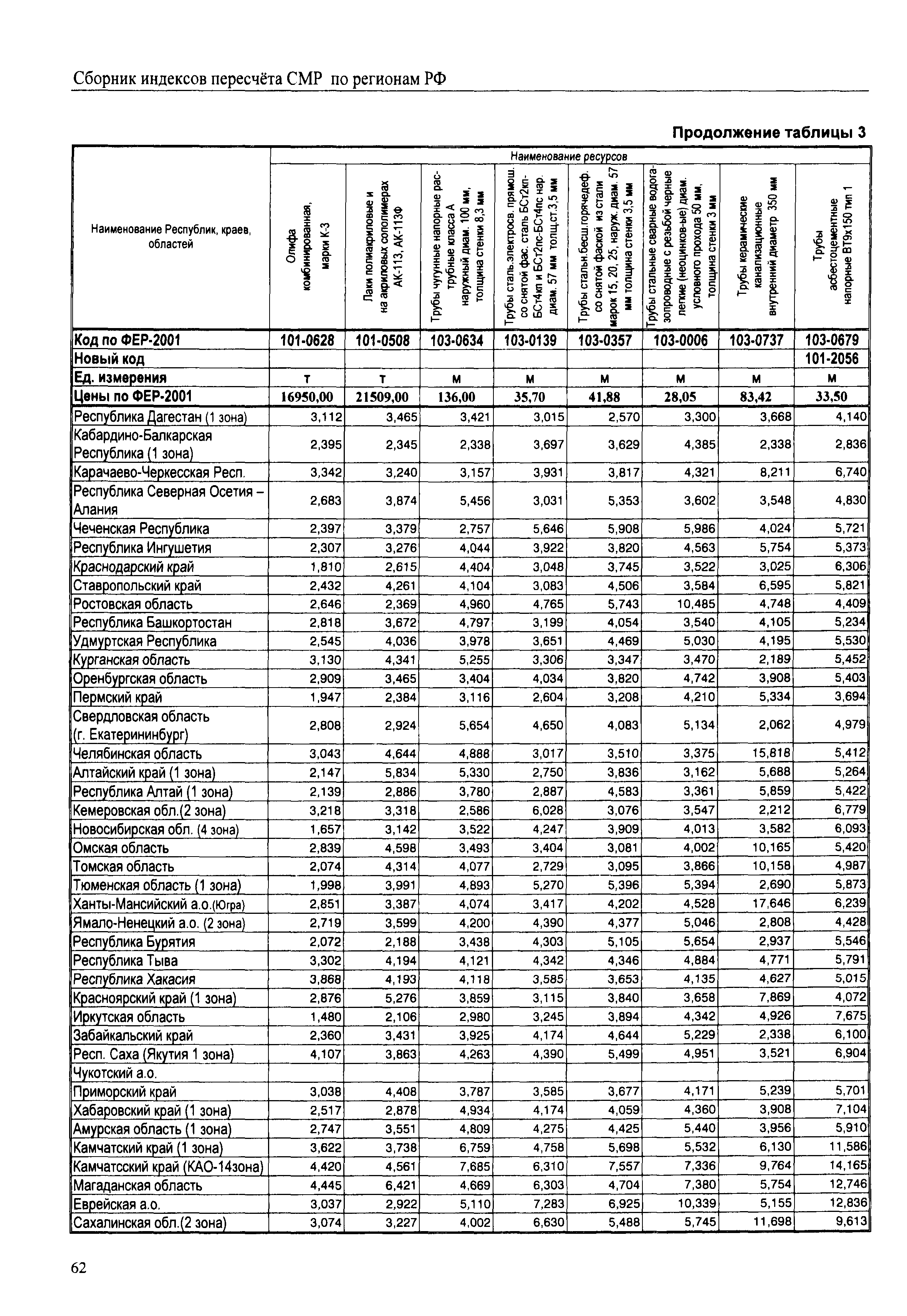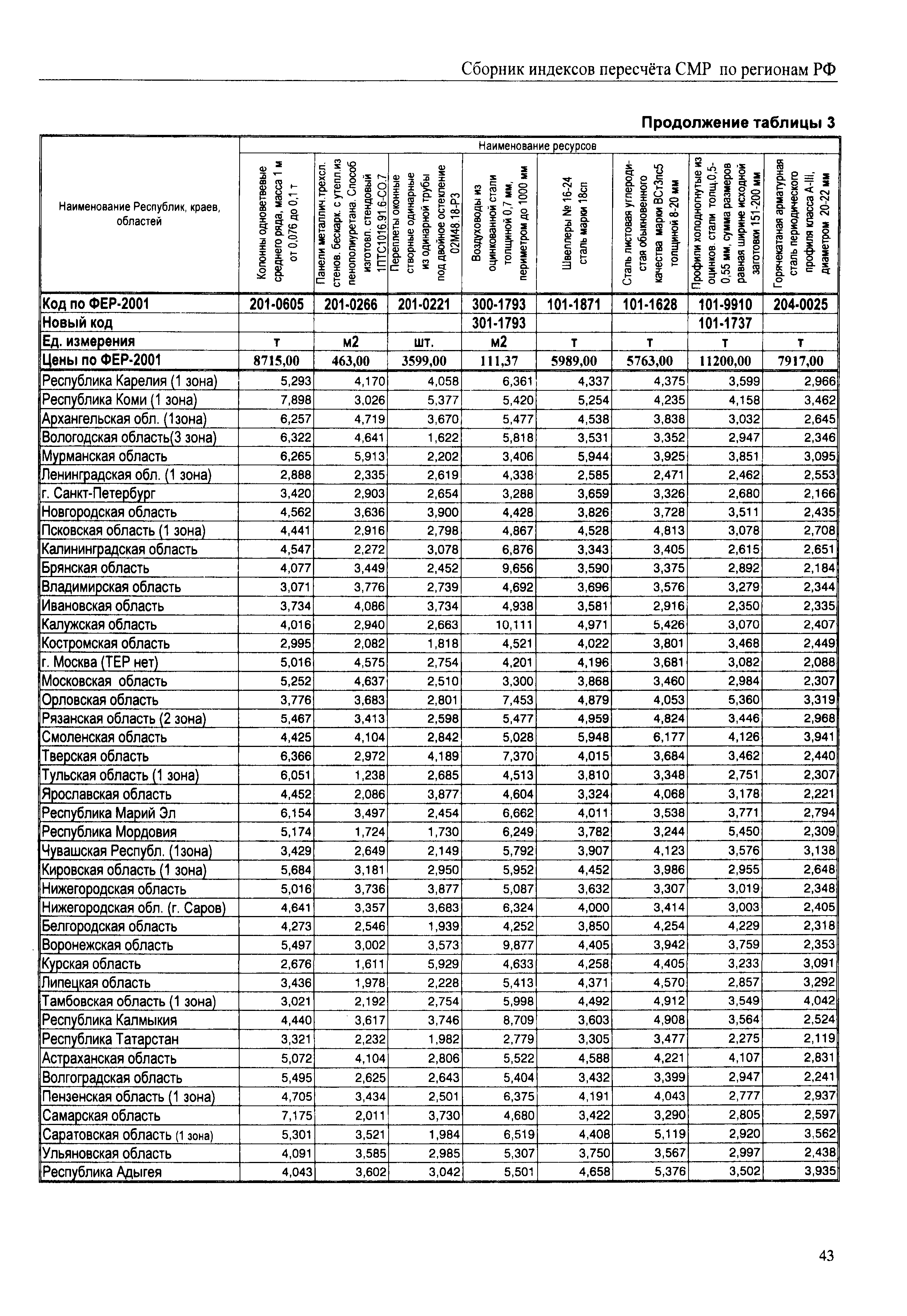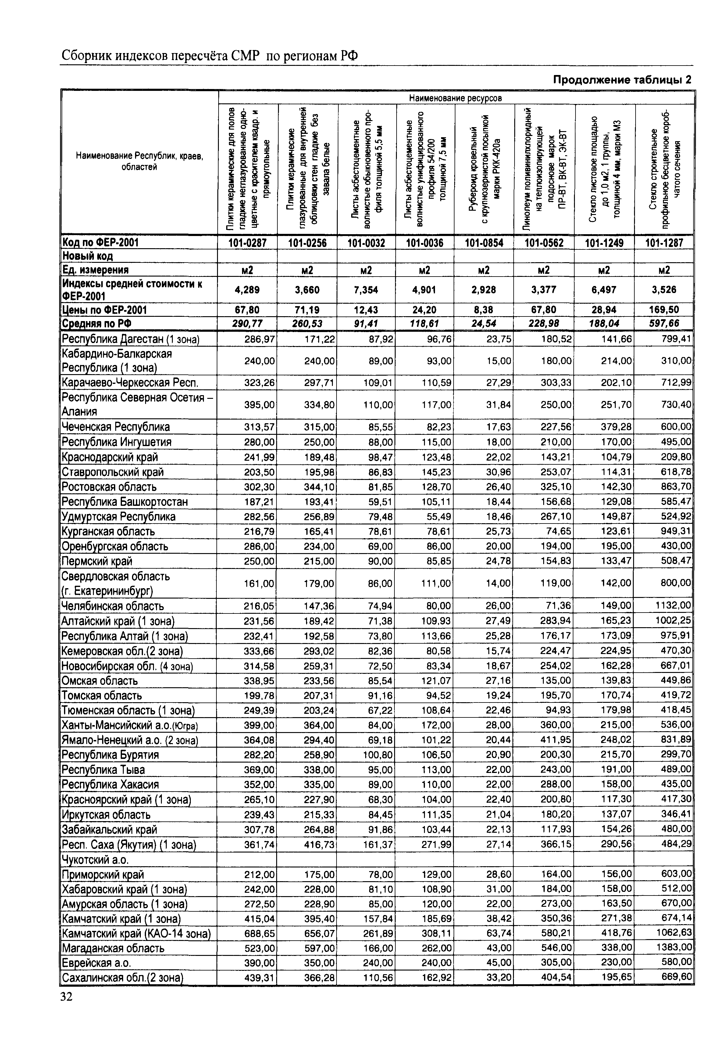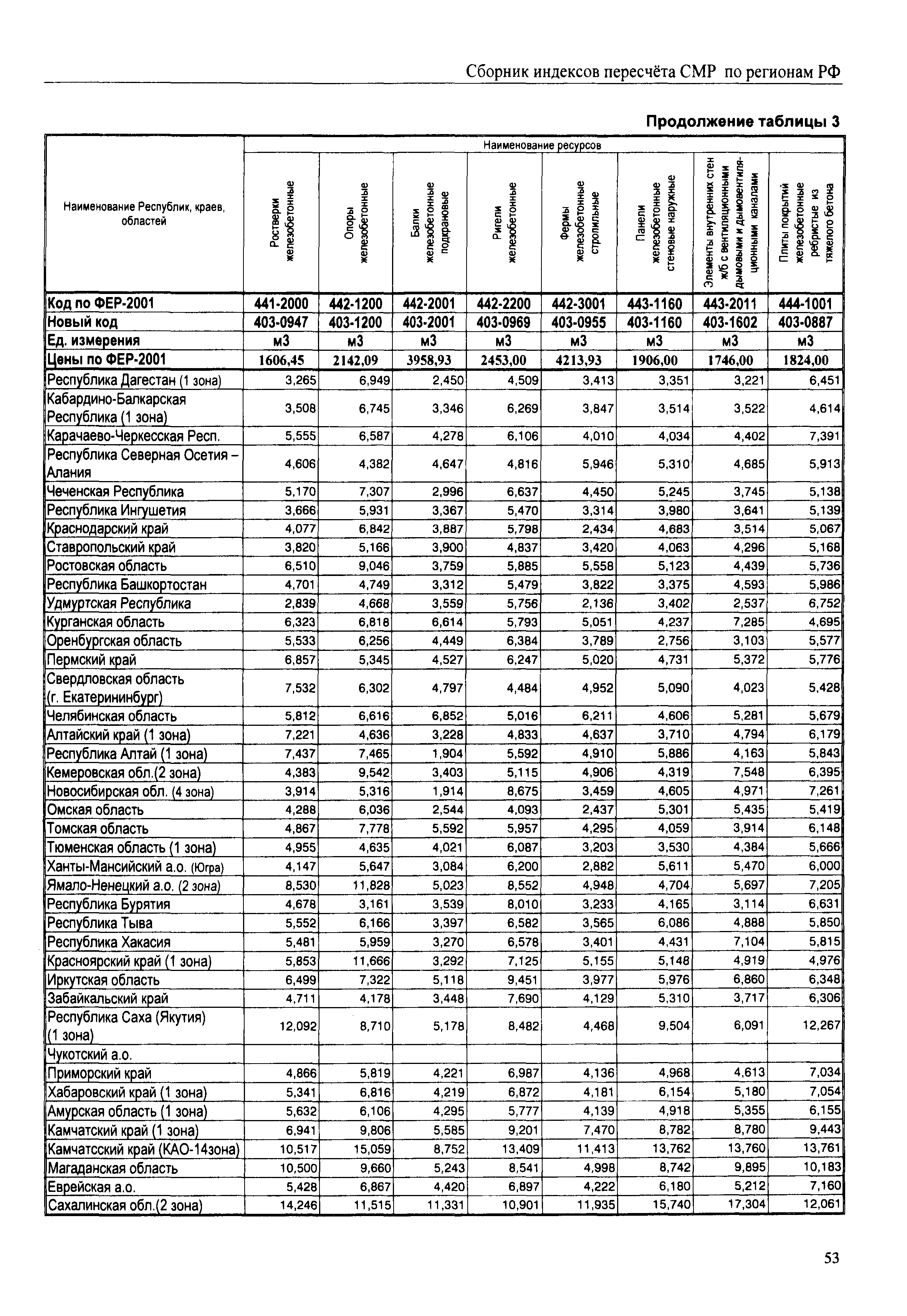 Межрегиональный сборник индексов пересчета сметной стоимости строительно-монтажных работ по субъектам Российской Федерации на I квартал 2010 г.| Статус: | не действует | | Название рус.: | Межрегиональный сборник индексов пересчета сметной стоимости строительно-монтажных работ по субъектам Российской Федерации на I квартал 2010 г. | | Дата добавления в базу: | 01.09.2013 | | Дата актуализации: | 01.09.2013 | | Область применения: | В сборнике приведены сводные таблицы текущих (I квартал 2010 г.) региональных цен на основные ресурсы, применяемые в строительстве, региональные индексы пересчета базисной стоимости строительно-монтажных работ, определяемой с использованием сборников новой сметно-нормативной базы (ФЕР-2001, ТЕР-2001), в территориальный текущий уровень. Индексы разработаны по единой методике, на основании отчетных данных региональных органов по ценообразованию в строительстве о стоимости строительных ресурсов, применяемых в регионе. | | Оглавление: | Общая часть Техническая часть (к таблицам 1, 2, 3, 4) Цены на строительную продукцию в I квартале 2010 г. Анализ роста индексов и стоимости 1 м2 по субъектам Российской Федерации в I квартале 2010 г. – таблица А Расчетная стоимость 1 м2 общей площади квартир и индексы изменения стоимости строительства по субъектам Российской Федерации за I квартал 2010 г. – Таблица 1 Сметная стоимость строительных ресурсов (без НДС) в руб. - Таблица 2 Индексы на отдельные виды ресурсов (к заложенным в ФЕР-2001) - Таблица 3 Индексы роста стоимости строительных ресурсов к предыдущему кварталу - Таблица 4 Региональные индексы к ФЕР-2001 по основным видам объектов строительства - Таблица 5 Индексы на оборудование за I квартал 2010 г. Индексы на прочие работы и затраты за I квартал 2010 г. |