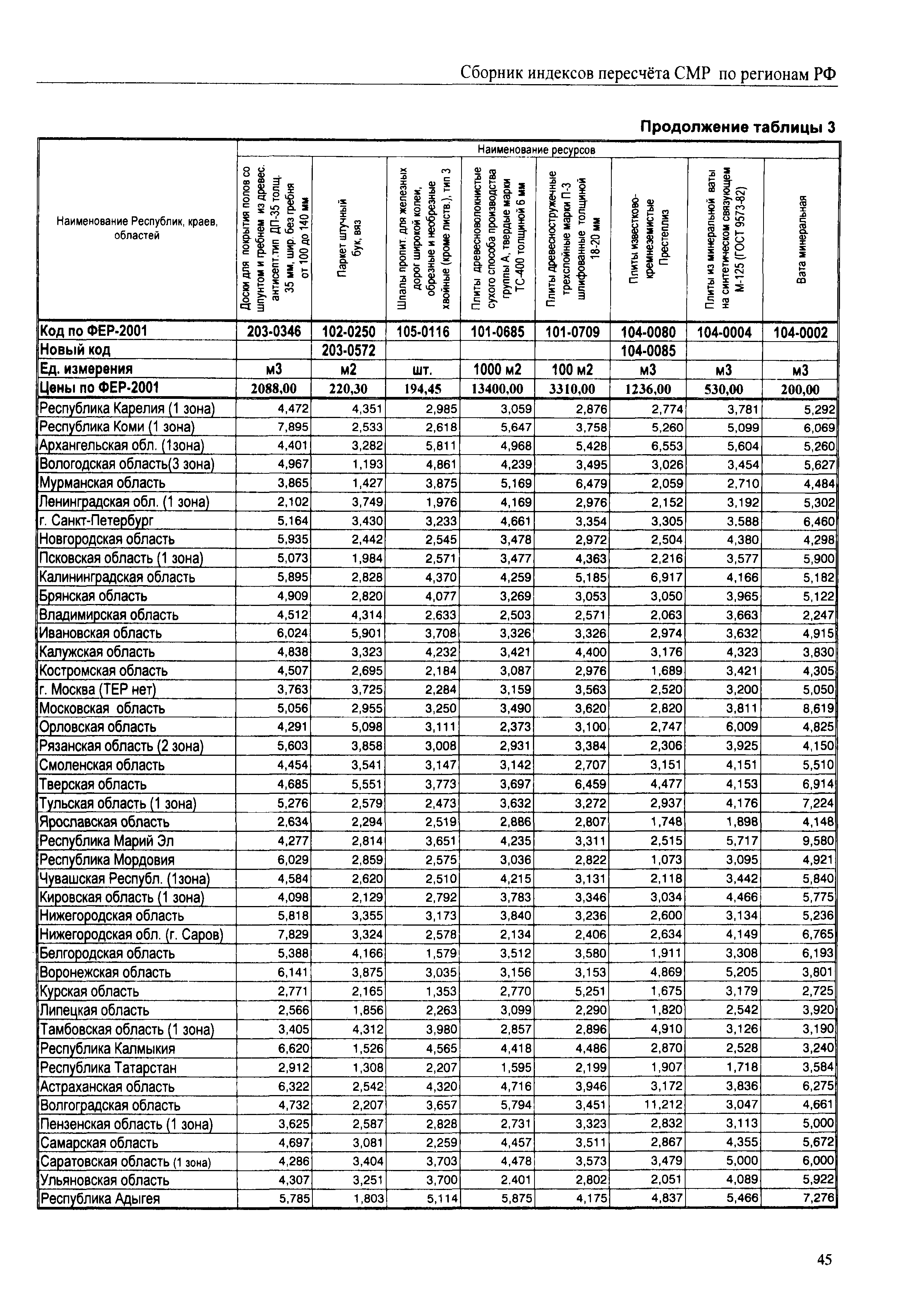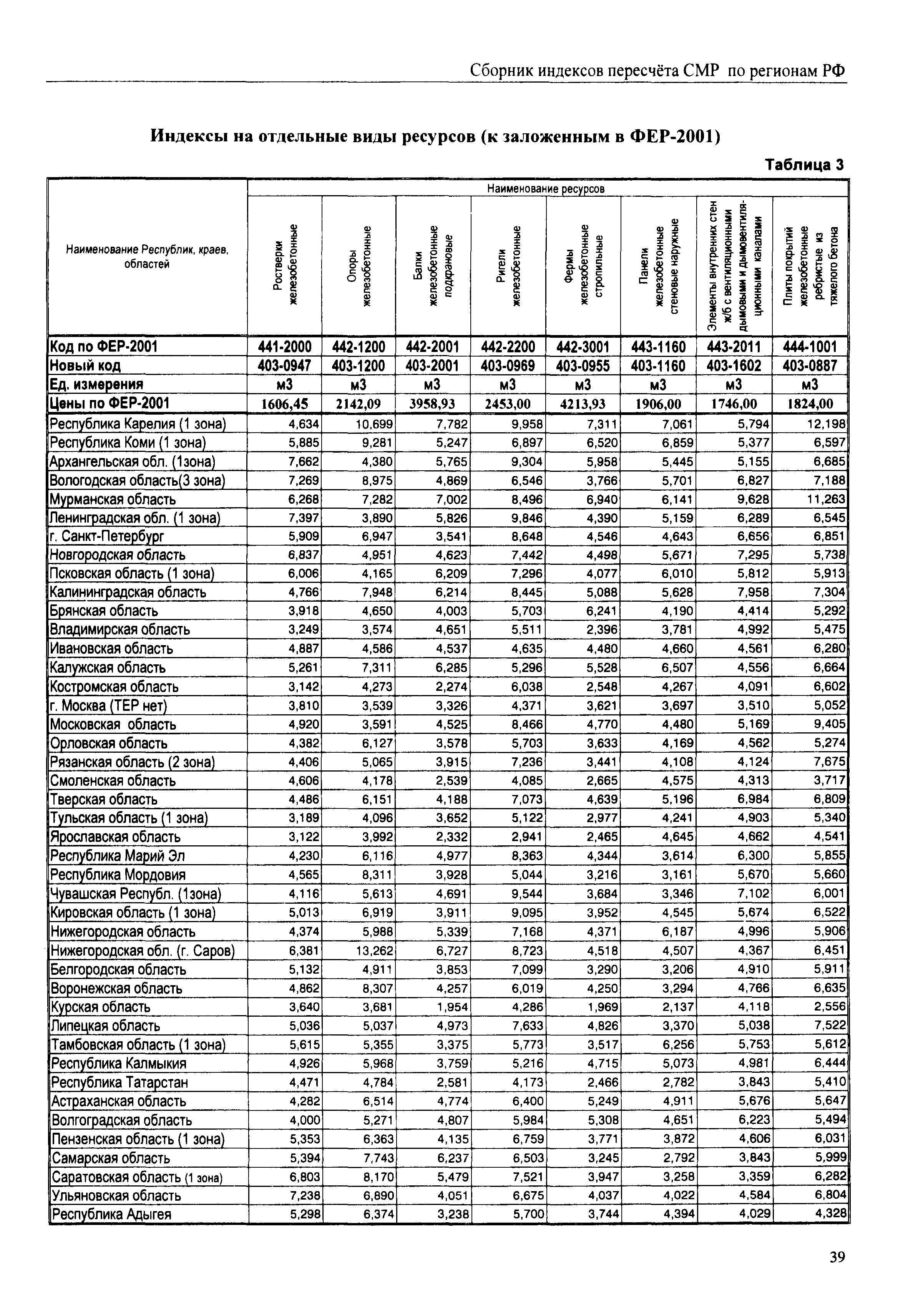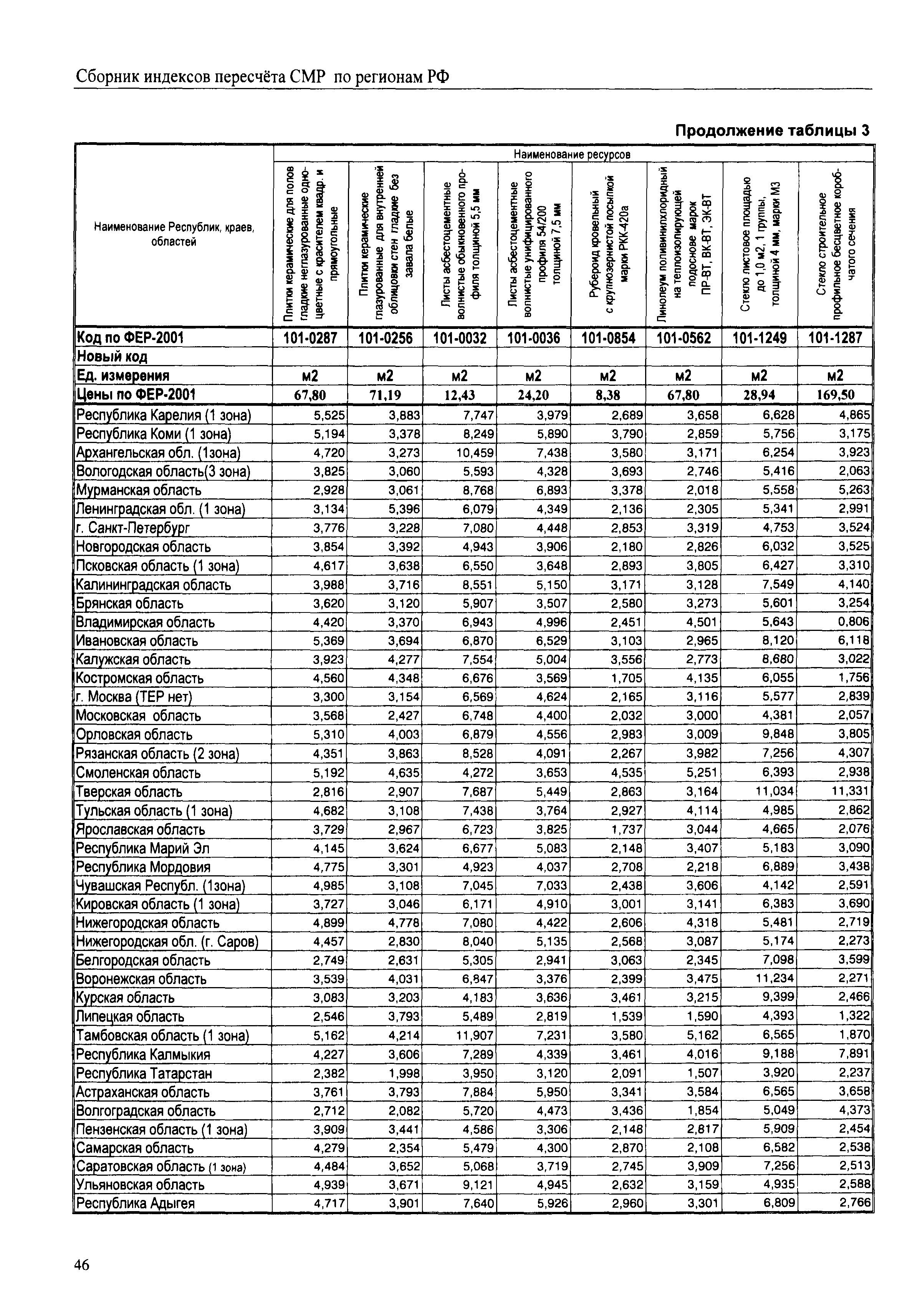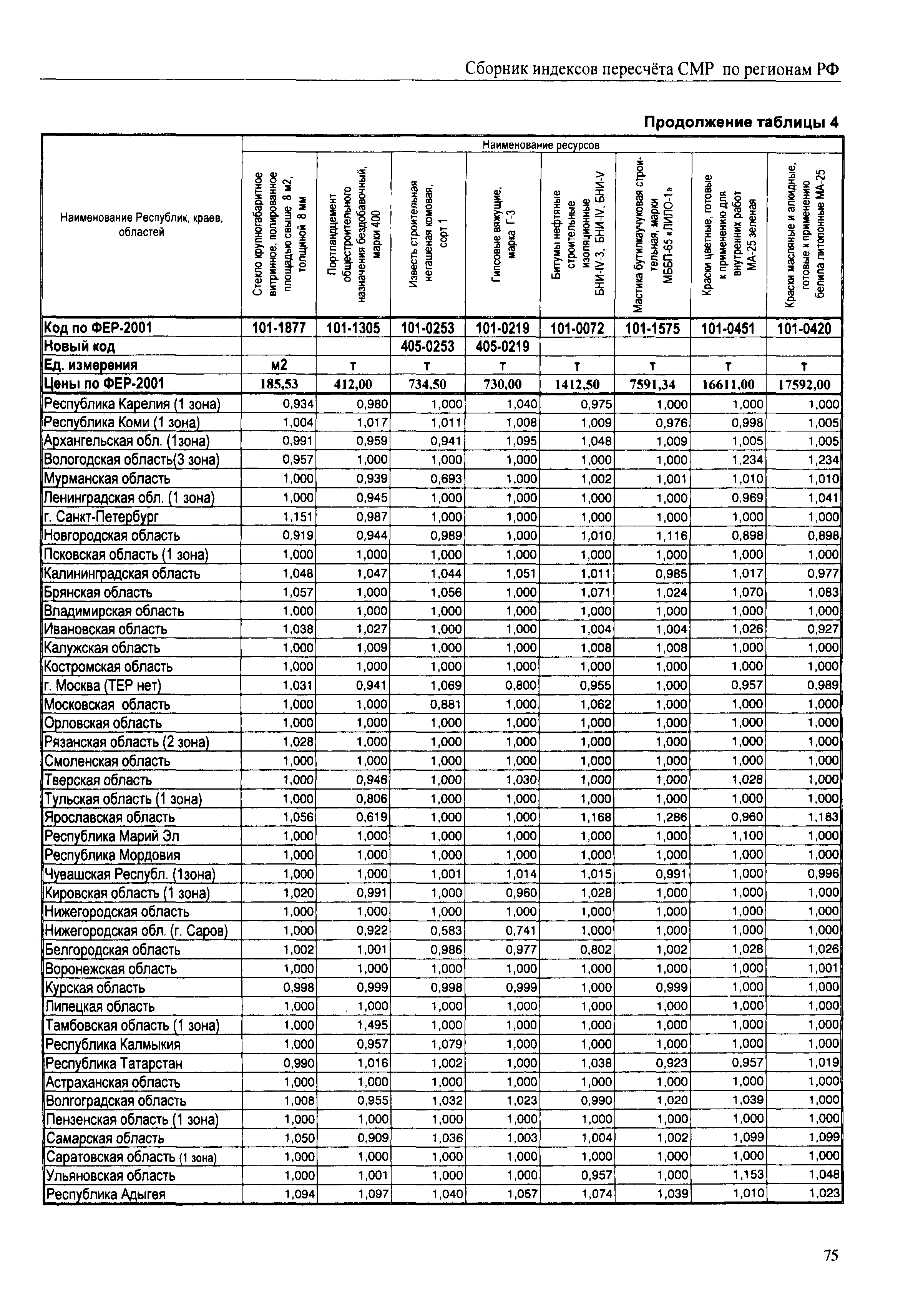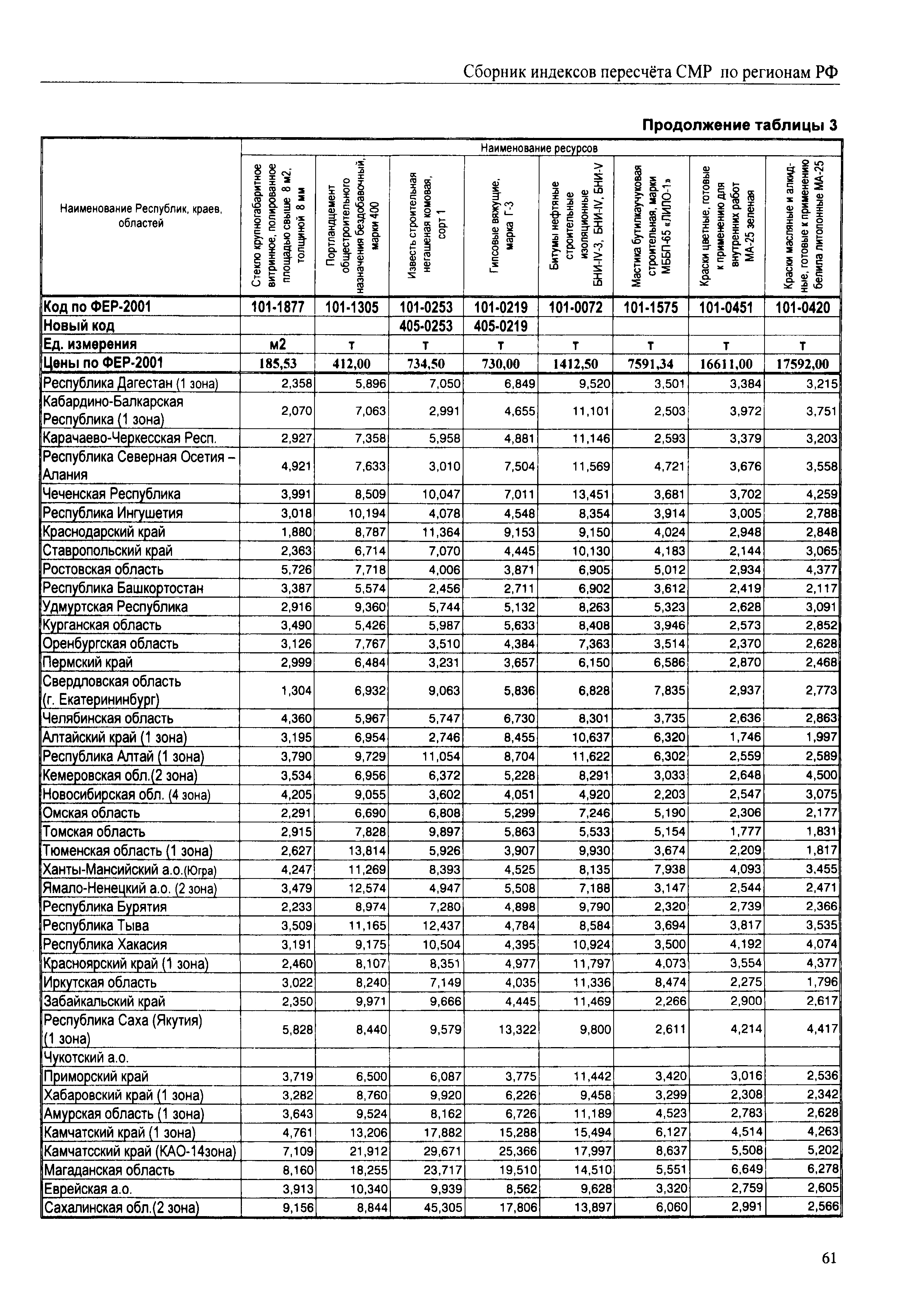 Межрегиональный сборник индексов пересчета сметной стоимости строительно-монтажных работ по субъектам Российской Федерации на I квартал 2010 г.| Статус: | не действует | | Название рус.: | Межрегиональный сборник индексов пересчета сметной стоимости строительно-монтажных работ по субъектам Российской Федерации на I квартал 2010 г. | | Дата добавления в базу: | 01.09.2013 | | Дата актуализации: | 01.09.2013 | | Область применения: | В сборнике приведены сводные таблицы текущих (I квартал 2010 г.) региональных цен на основные ресурсы, применяемые в строительстве, региональные индексы пересчета базисной стоимости строительно-монтажных работ, определяемой с использованием сборников новой сметно-нормативной базы (ФЕР-2001, ТЕР-2001), в территориальный текущий уровень. Индексы разработаны по единой методике, на основании отчетных данных региональных органов по ценообразованию в строительстве о стоимости строительных ресурсов, применяемых в регионе. | | Оглавление: | Общая часть Техническая часть (к таблицам 1, 2, 3, 4) Цены на строительную продукцию в I квартале 2010 г. Анализ роста индексов и стоимости 1 м2 по субъектам Российской Федерации в I квартале 2010 г. – таблица А Расчетная стоимость 1 м2 общей площади квартир и индексы изменения стоимости строительства по субъектам Российской Федерации за I квартал 2010 г. – Таблица 1 Сметная стоимость строительных ресурсов (без НДС) в руб. - Таблица 2 Индексы на отдельные виды ресурсов (к заложенным в ФЕР-2001) - Таблица 3 Индексы роста стоимости строительных ресурсов к предыдущему кварталу - Таблица 4 Региональные индексы к ФЕР-2001 по основным видам объектов строительства - Таблица 5 Индексы на оборудование за I квартал 2010 г. Индексы на прочие работы и затраты за I квартал 2010 г. |