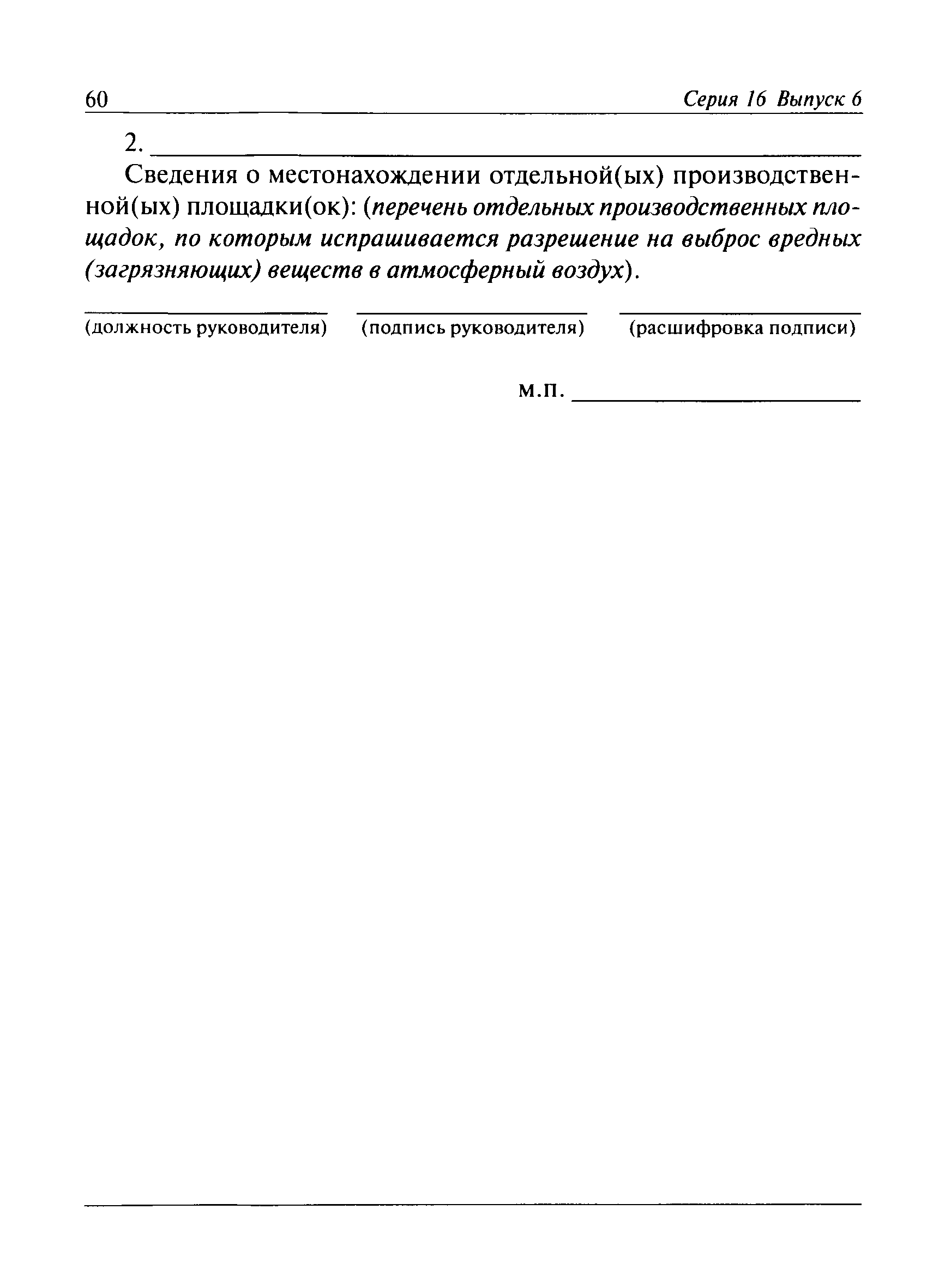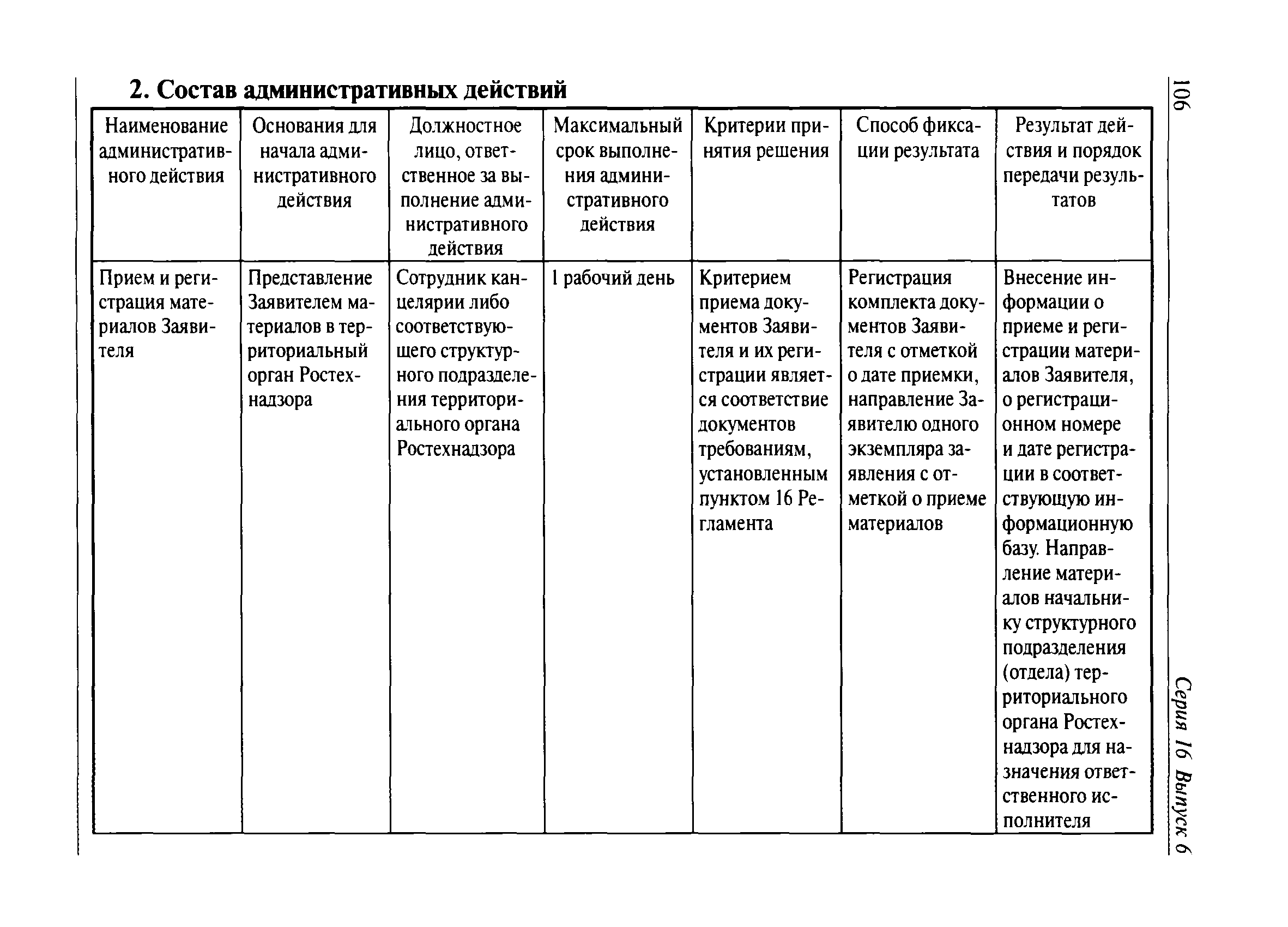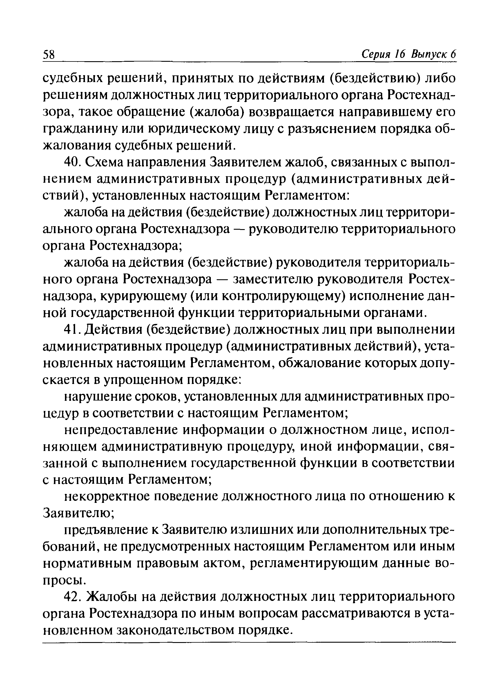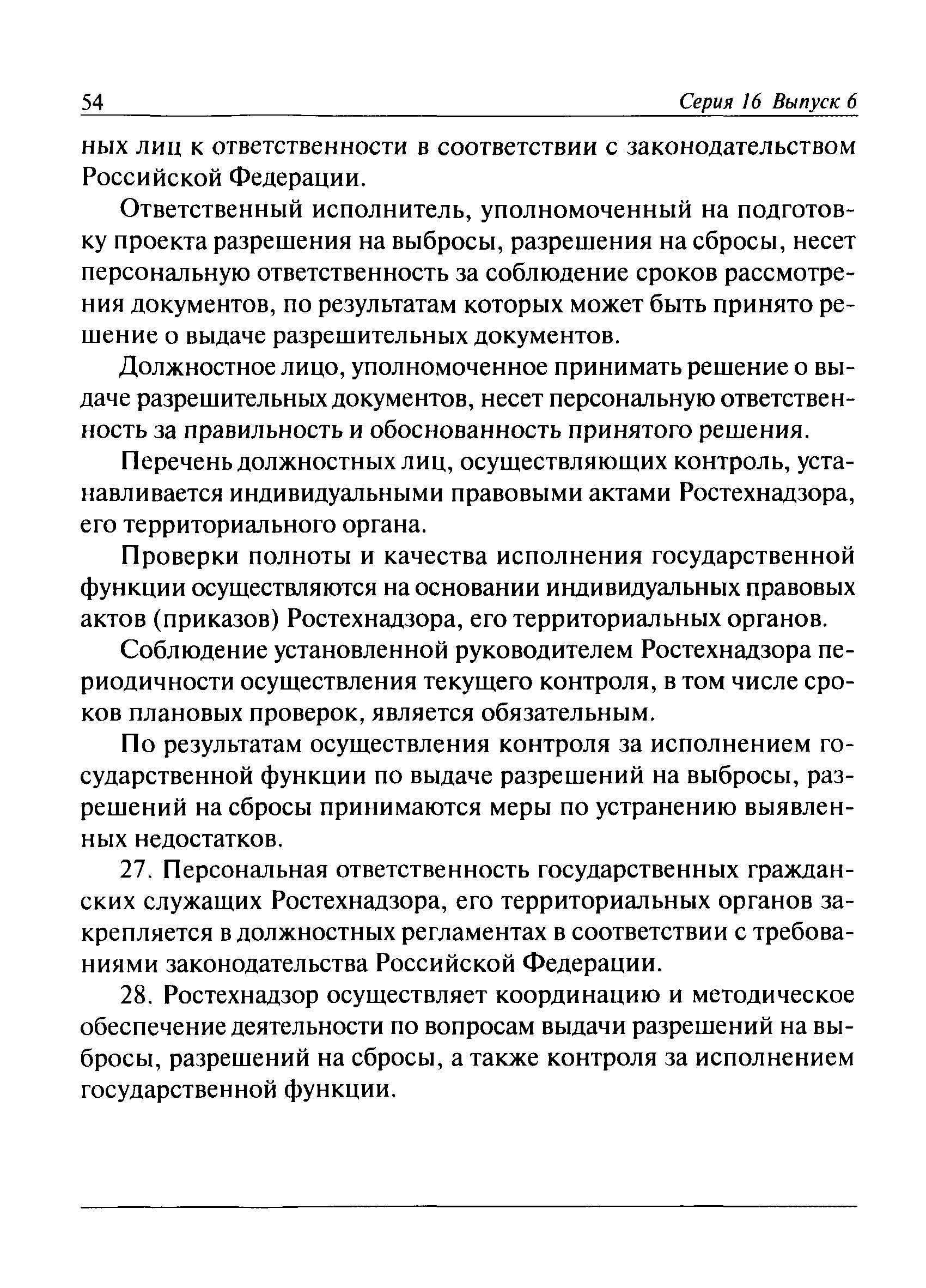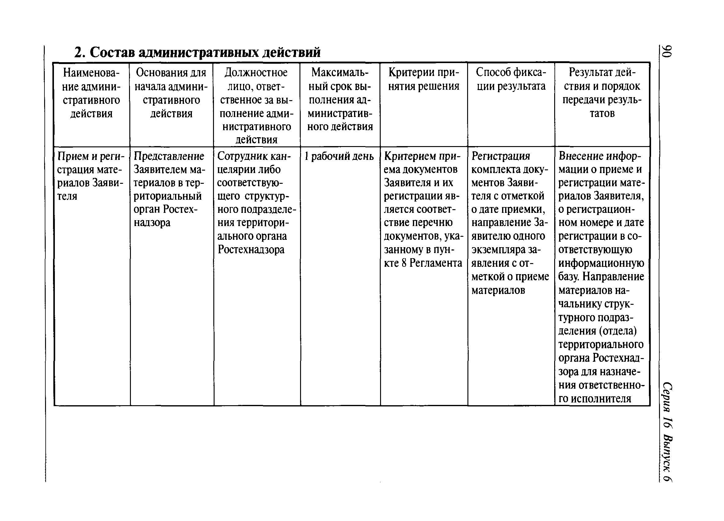 | Оглавление: | Приказ об утверждении 1. Общие положения 2. Требования к порядку исполнения государственной функции по выдаче разрешений на выбросы, сбросы загрязняющих веществ в окружающую среду 3. Административные процедуры 4. Порядок и формы контроля за исполнением государственной функции по выдаче разрешений на выбросы, сбросы загрязняющих веществ 5. Обжалование действий (бездействия) должностных лиц в ходе выполнения административных процедур при исполнении государственной функции по выдаче разрешений на выбросы, сбросы загрязняющих веществ Приложение 1. Заявление о выдаче разрешения на выбросы (разрешения на сбросы) загрязняющих веществ в окружающую среду Приложение 2. Заявление на переоформление разрешения на выбросы (разрешения на сбросы) загрязняющих веществ в окружающую среду Приложение 3. Список территориальных органов Ростехнадзора Приложение 4. План снижения выбросов загрязняющих веществ в атмосферный воздух Приложение 5. Разрешение на сброс загрязняющих веществ в окружающую среду Приложение 6. Письмо об отказе в выдаче разрешения на выбросы (разрешения на сбросы) загрязняющих веществ в окружающую среду Приложение 7. Письмо о приостановлении действия разрешения на выбросы (сбросы) загрязняющих веществ в окружающую среду Приложение 8. Письмо о возобновлении действия разрешения на выбросы (разрешения на сбросы) загрязняющих веществ в окружающую среду Приложение 9. Заявление на переоформление разрешения на выбросы (разрешения на сбросы) загрязняющих веществ в окружающую среду Приложение 10. Письмо об отказе в переоформлении разрешения на выбросы (сбросы) загрязняющих веществ в окружающую среду Приложение 11. Письмо об аннулировании разрешения на выбросы загрязняющих веществ в окружающую среду Приложение 12. Взаимосвязь административных процедур и блок-схема последовательности действий при исполнении государственной функции по выдаче разрешений на выбросы, сбросы загрязняющих веществ в окружающую среду Приложение 13. Описание последовательности и состава административных действий территориального органа Ростехнадзора при осуществлении административной процедуры по выдаче разрешения на выбросы, сбросы загрязняющих веществ в окружающую среду Приложение 14. Описание последовательности и состава административных действий территориального органа Ростехнадзора при осуществлении административной процедуры по приостановлению действия разрешения на выбросы, разрешения на сбросы Приложение 15. Описание последовательности и состава административных действий территориального органа Ростехнадзора при осуществлении административной процедуры по возобновлению действия разрешения на выбросы, разрешения на сбросы Приложение 16. Описание последовательности и состава административных действий территориального органа Ростехнадзора при осуществлении административной процедуры по переоформлению разрешения на выбросы, разрешения на сбросы Приложение 17. Описание последовательности и состава административных действий территориального органа Ростехнадзора при осуществлении административной процедуры по аннулированию разрешения на выбросы |