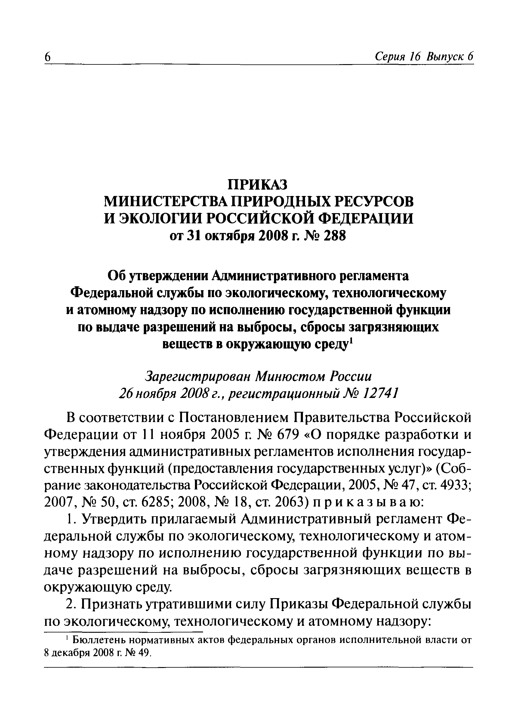 | Утверждён: | 31.10.2008 Министерство природных ресурсов и экологии Российской Федерации (288) |
