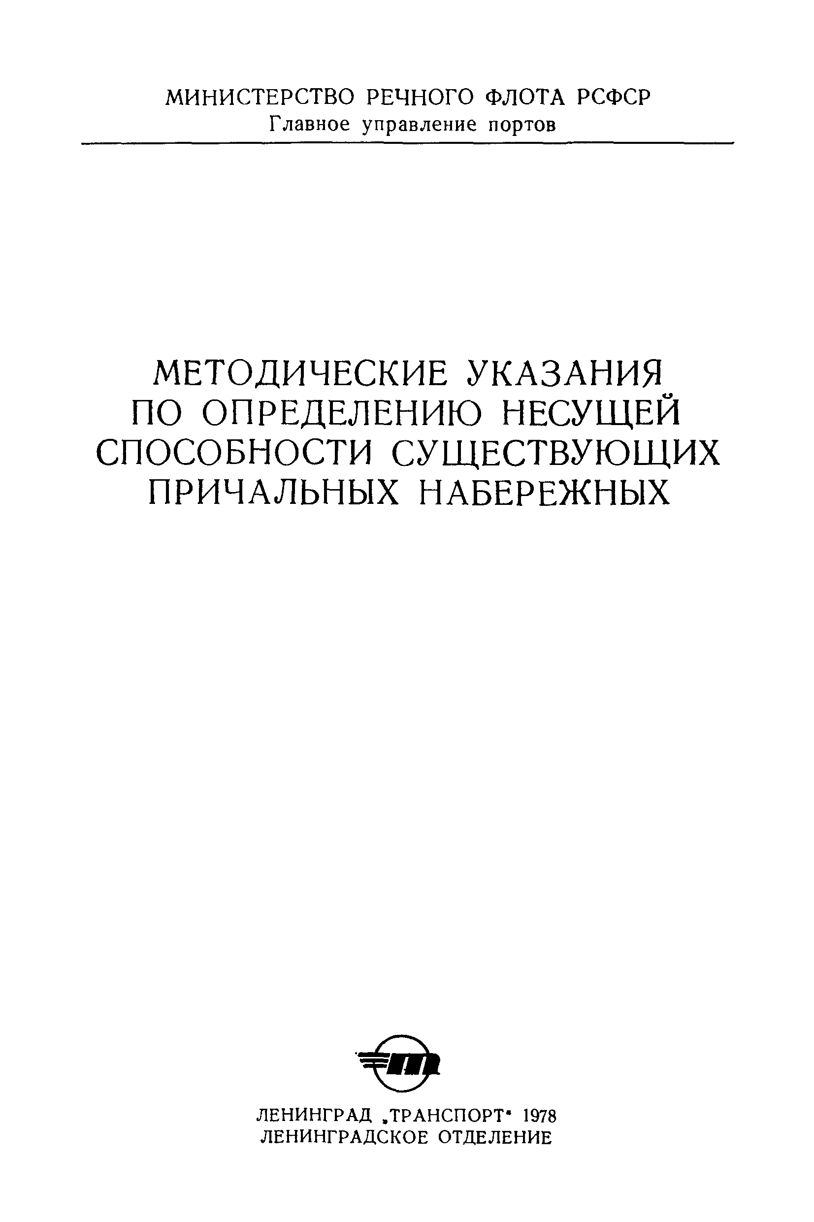 | Название рус.: | Методические указания по определению несущей способности существующих причальных набережных |