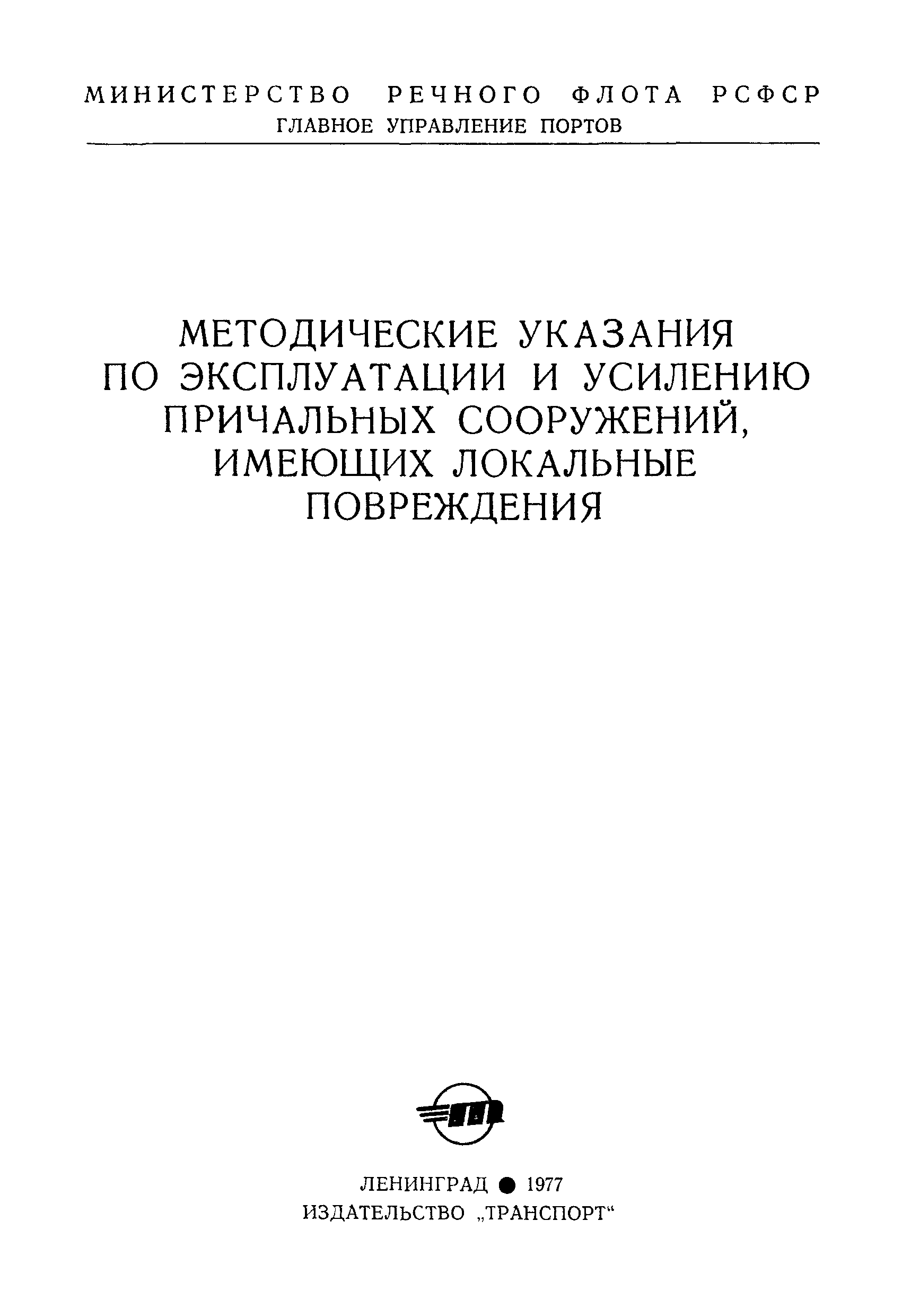 | Название рус.: | Методические указания по эксплуатации и усилению причальных сооружений, имеющих локальные повреждения |