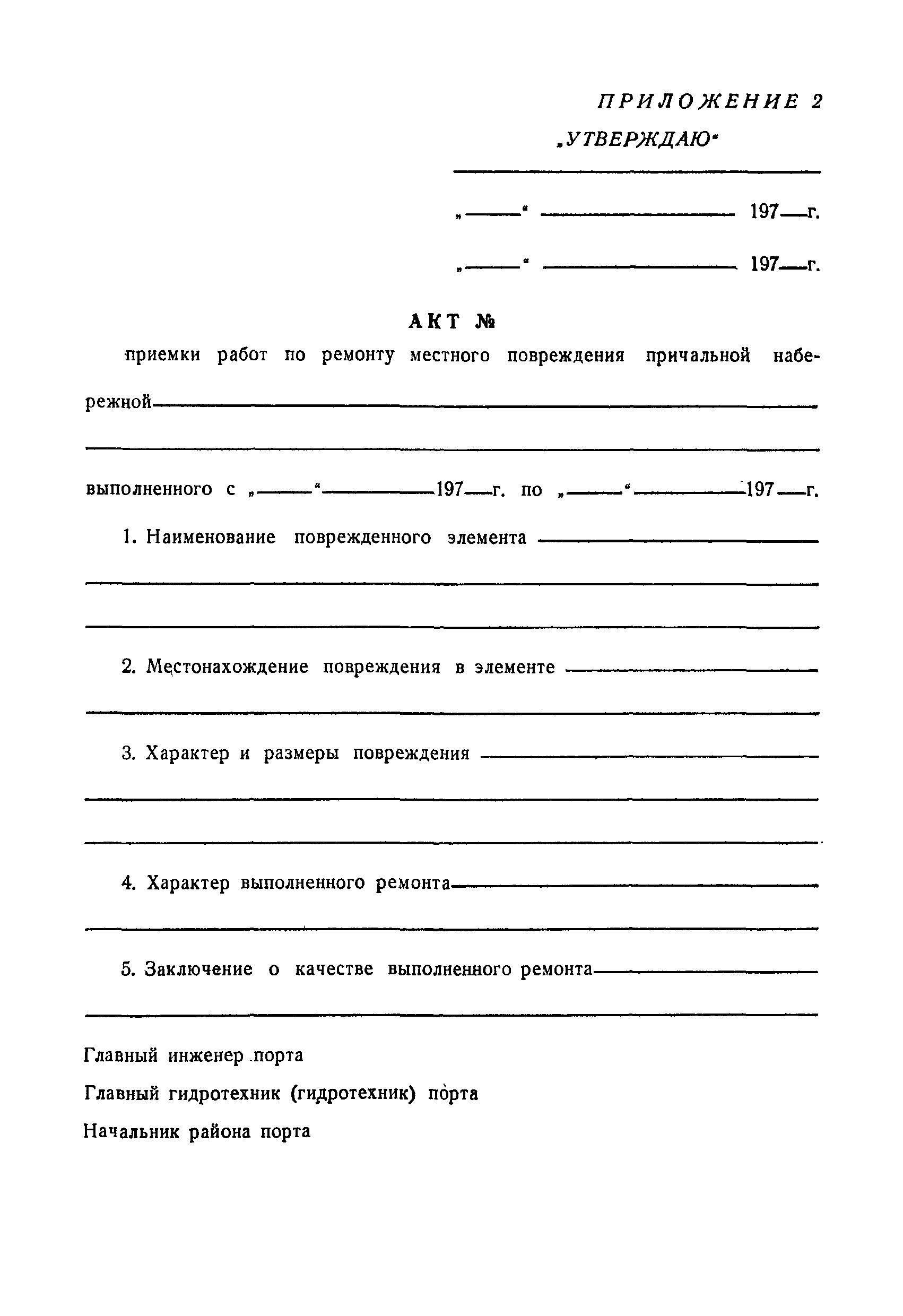 | Область применения: | Методические указания служат для установления режима эксплуатации причальных сооружений, имеющих локальные повреждения (на период до устранения повреждений). |