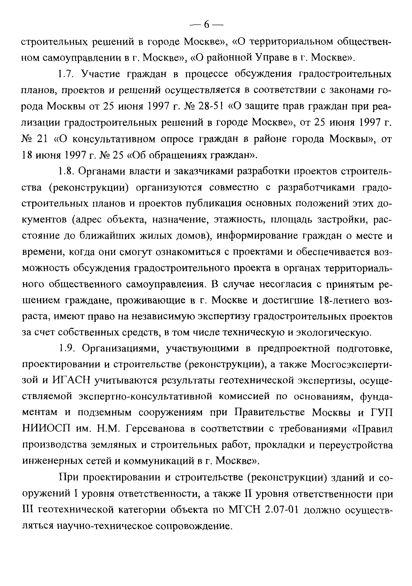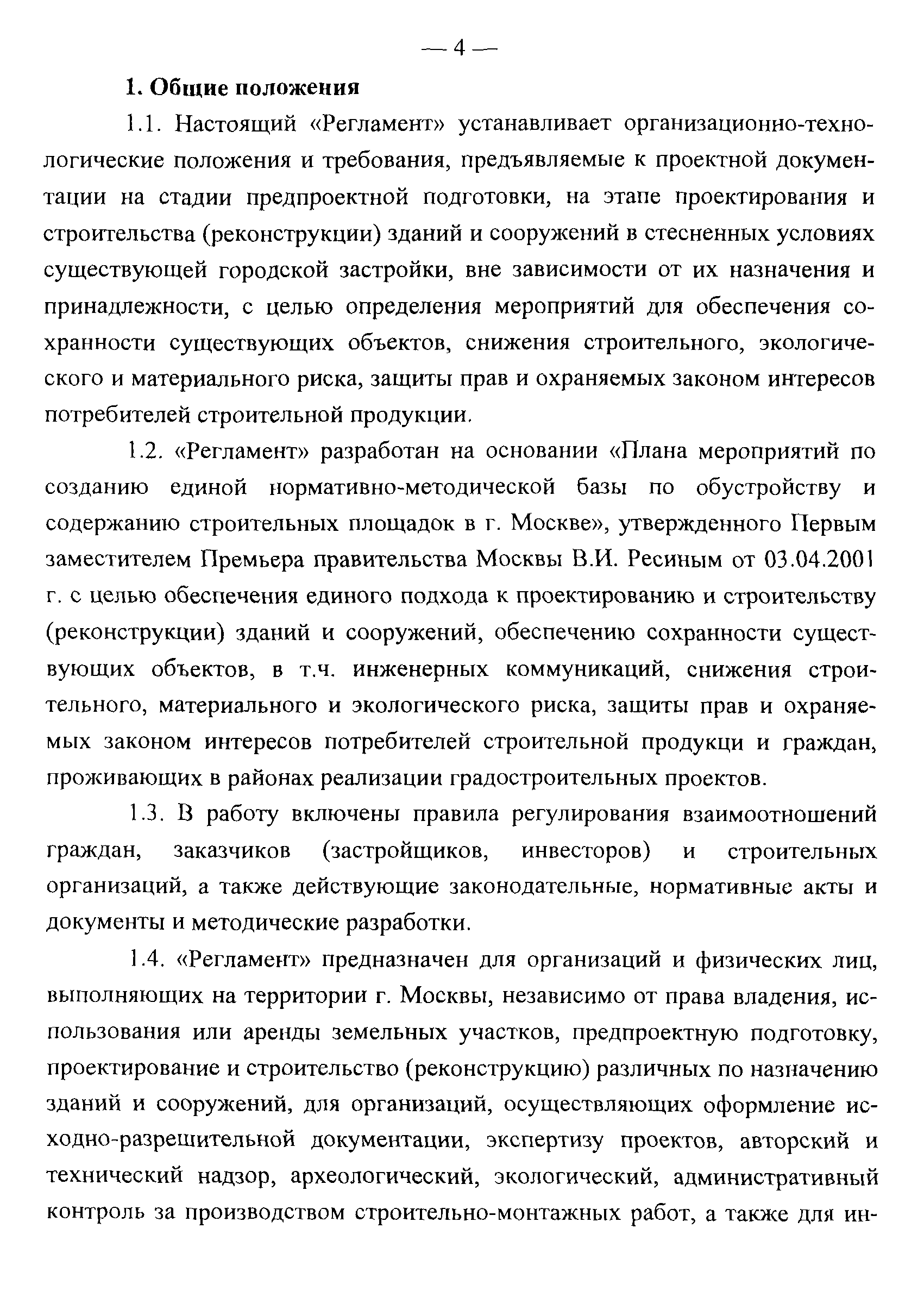 | Область применения: | Регламент разработан с целью определения мероприятий для обеспечения сохранности существующих объектов, снижения строительного, экологического и материального риска, защиты прав и охраняемых законом интересов потребителей строительной продукции и граждан, проживающих в районе реализации градостроительных объектов. |