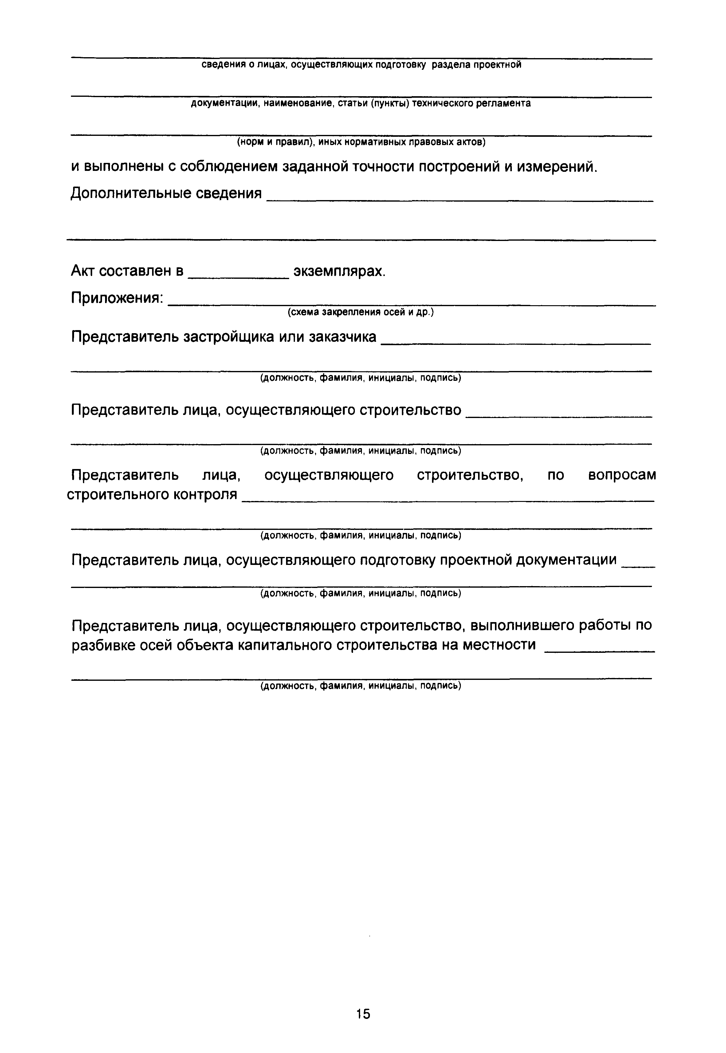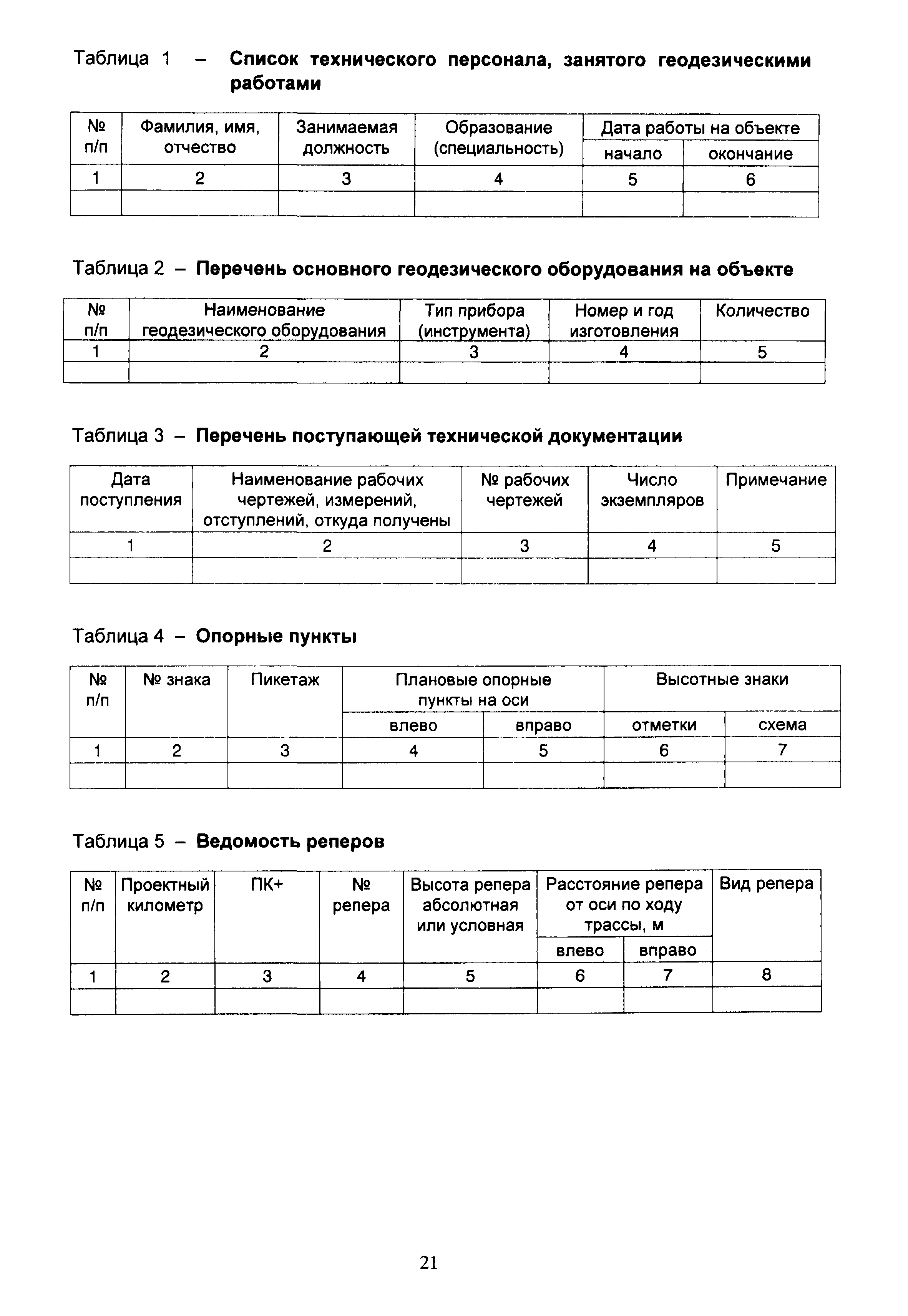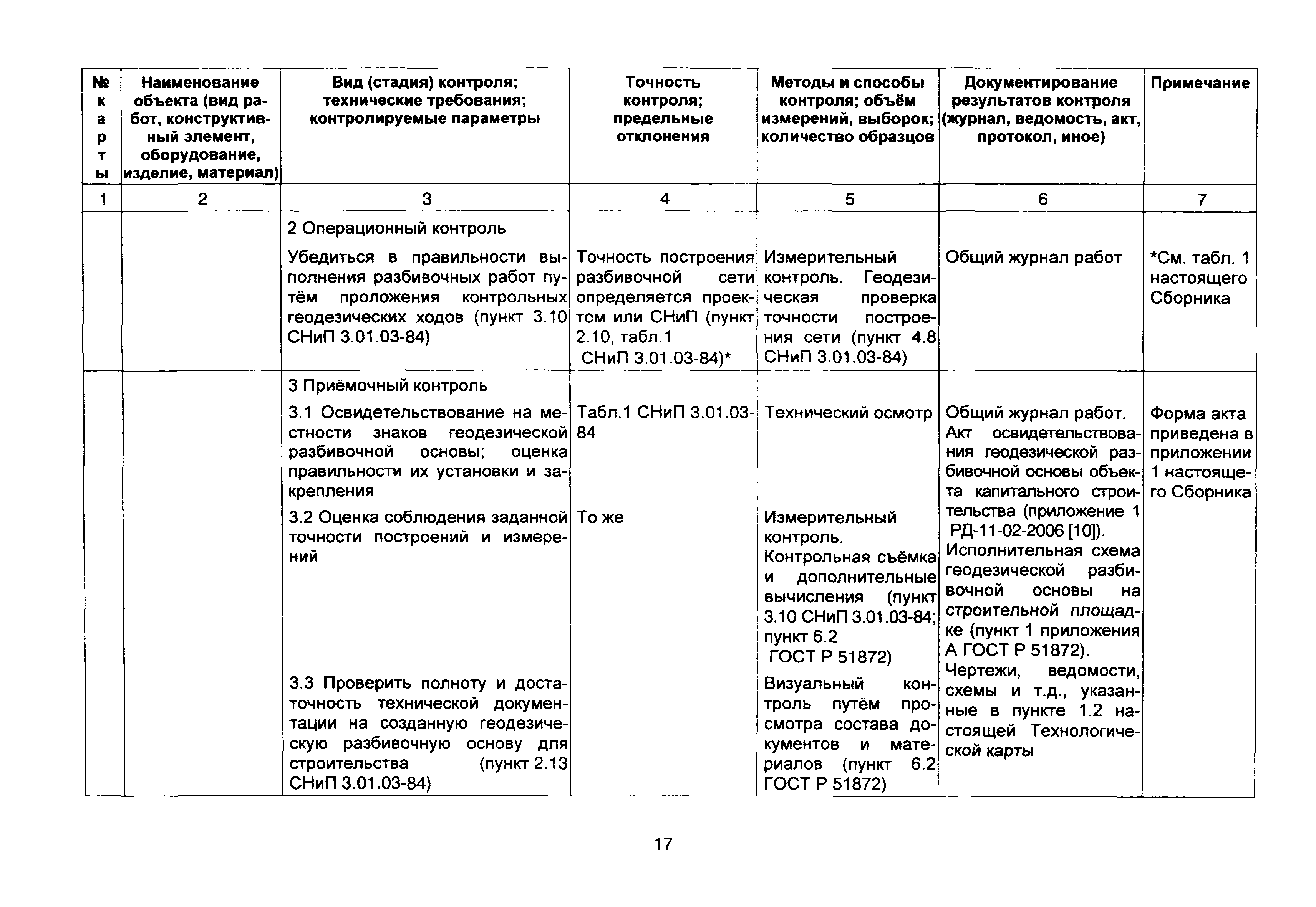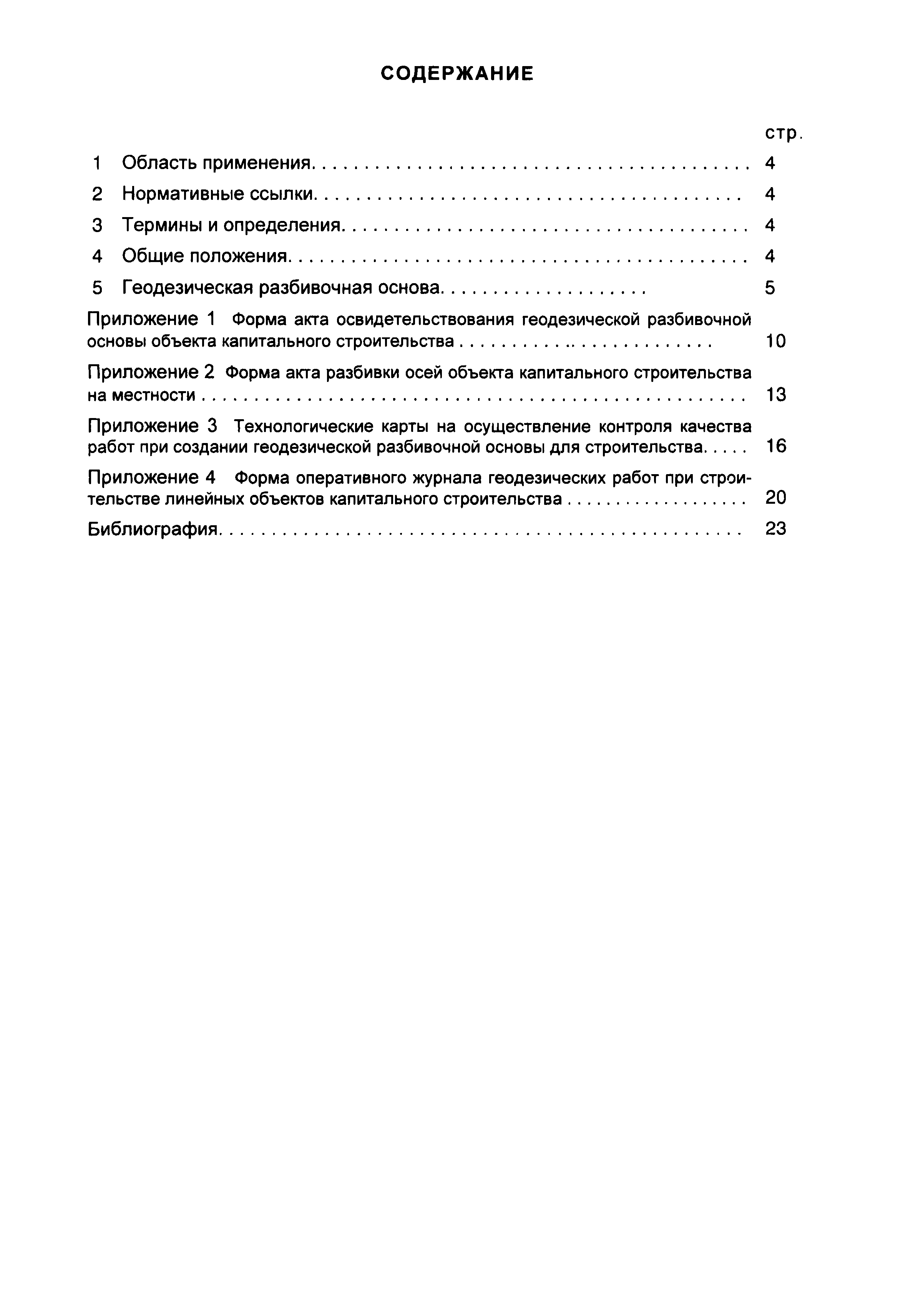 | Оглавление: | 1 Область применения 2 Нормативные ссылки 3 Термины и определения 4 Общие положения 5 Геодезическая разбивочная основа Приложение 1. Форма акта освидетельствования геодезической разбивочной основы объекта капитального строительства Приложение 2. Форма акта разбивки осей объекта капитального строительства на местности Приложение 3. Технологические карты на осуществление контроля качества работ при создании геодезической разбивочной основы для строительства Приложение 4. Форма оперативного журнала геодезических работ при строительстве линейных объектов капитального строительства Библиография |