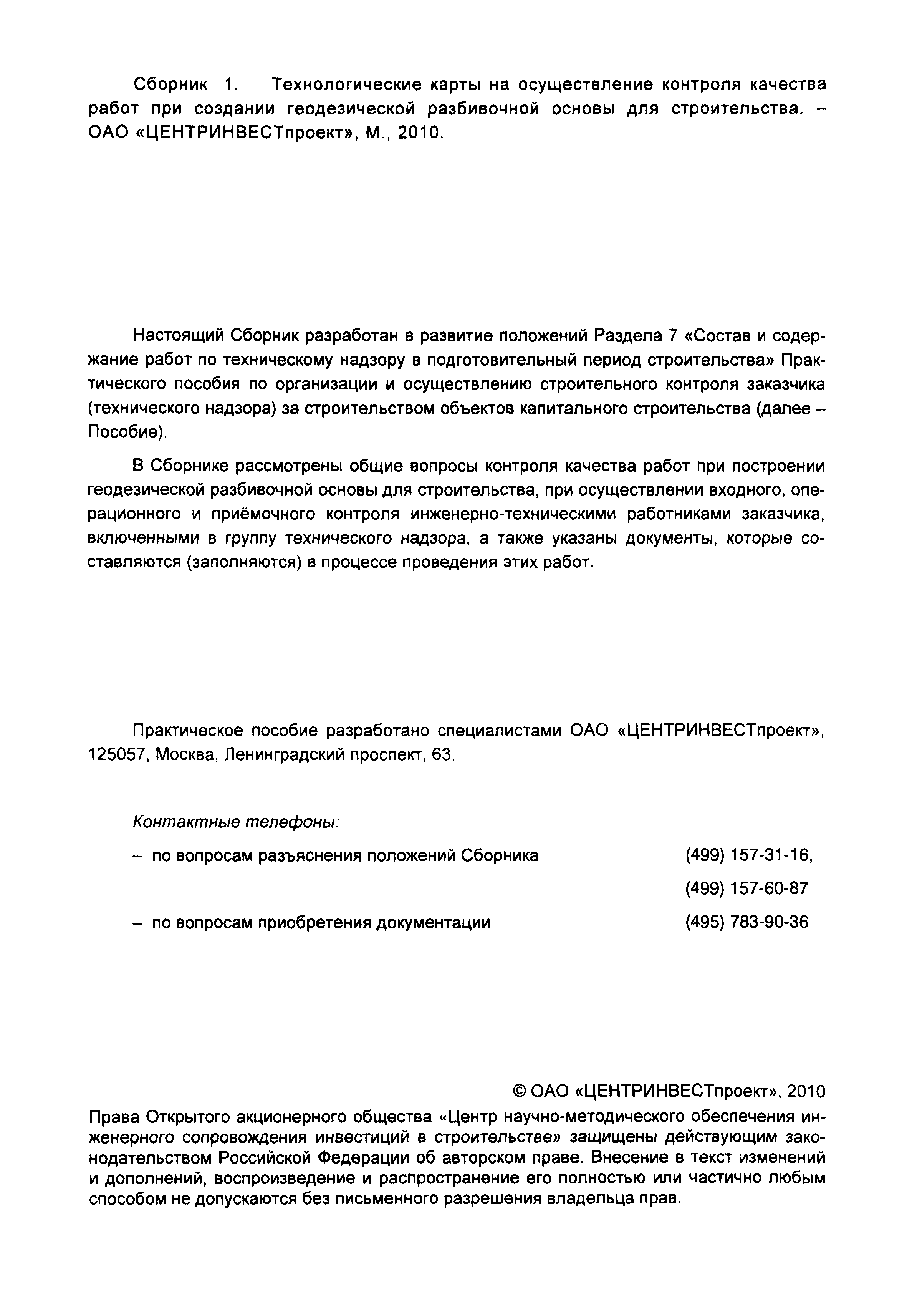 | Название рус.: | Сборник 1. Технологические карты на осуществление контроля качества работ при создании геодезической разбивочной основы для строительства (к Практическому пособию по организации и осуществлению строительного контроля заказчика (технического надзора) за строительством объектов капитального строительства) |