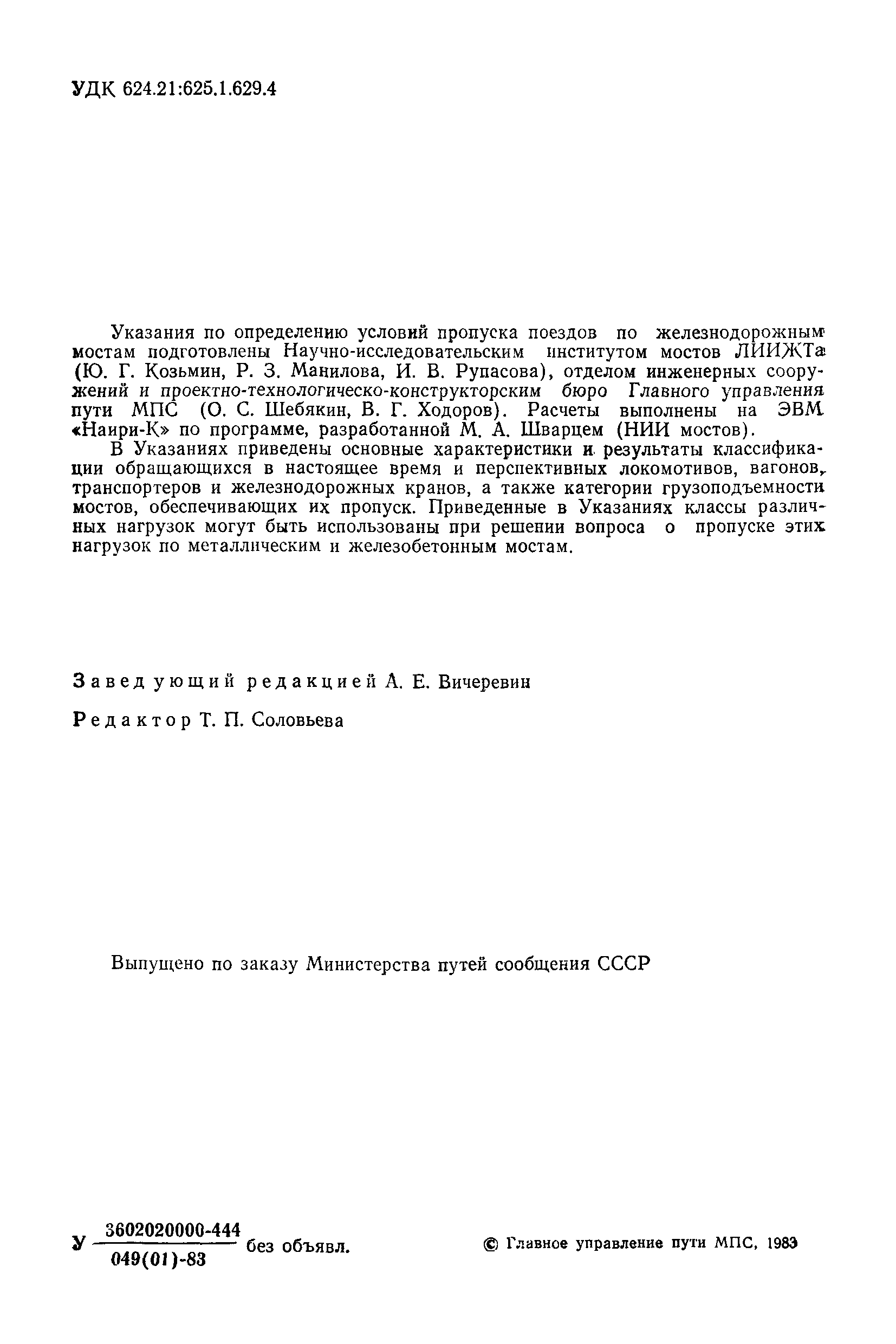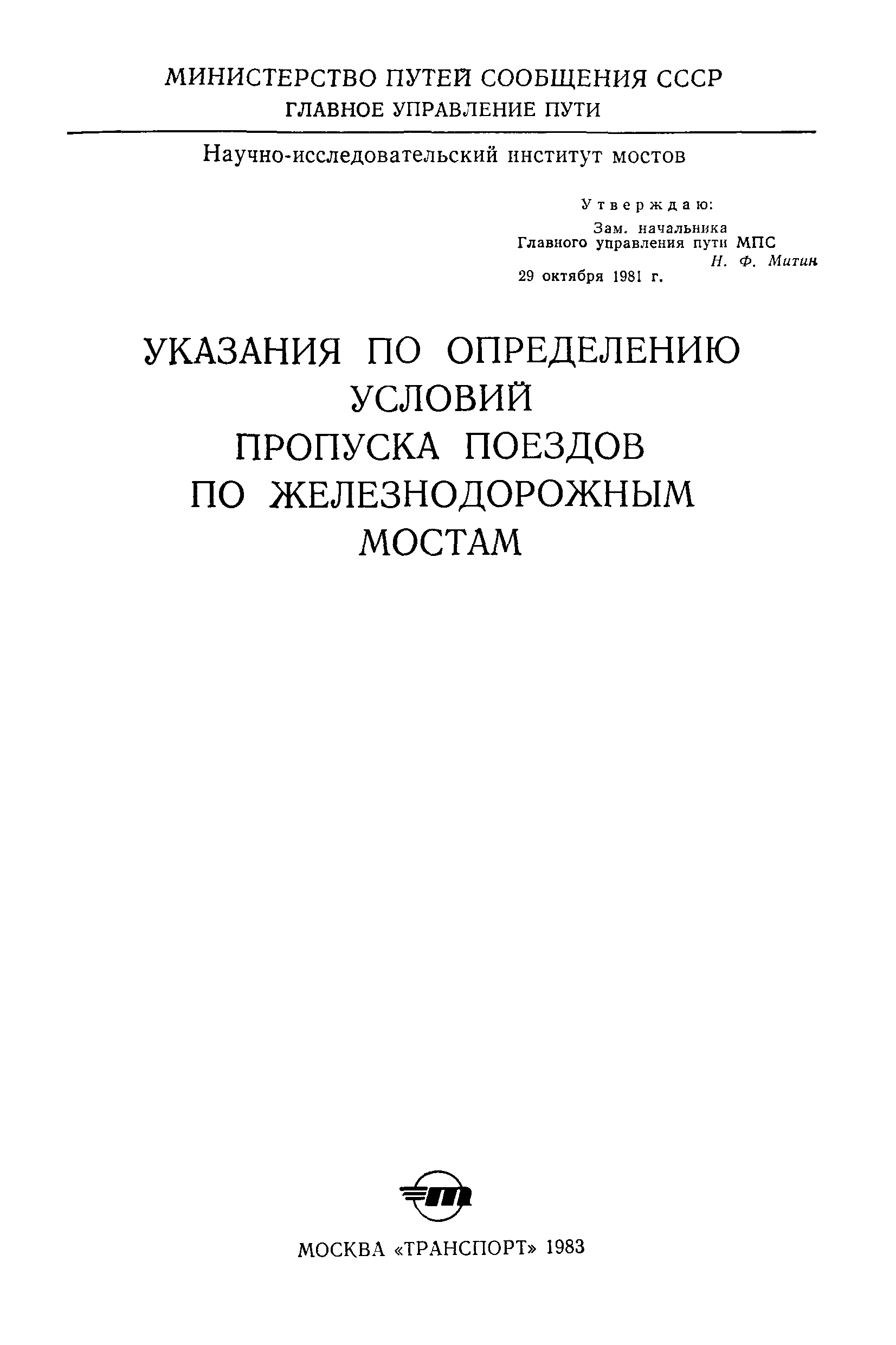 | Название рус.: | Указания по определению условий пропуска поездов по железнодорожным мостам |