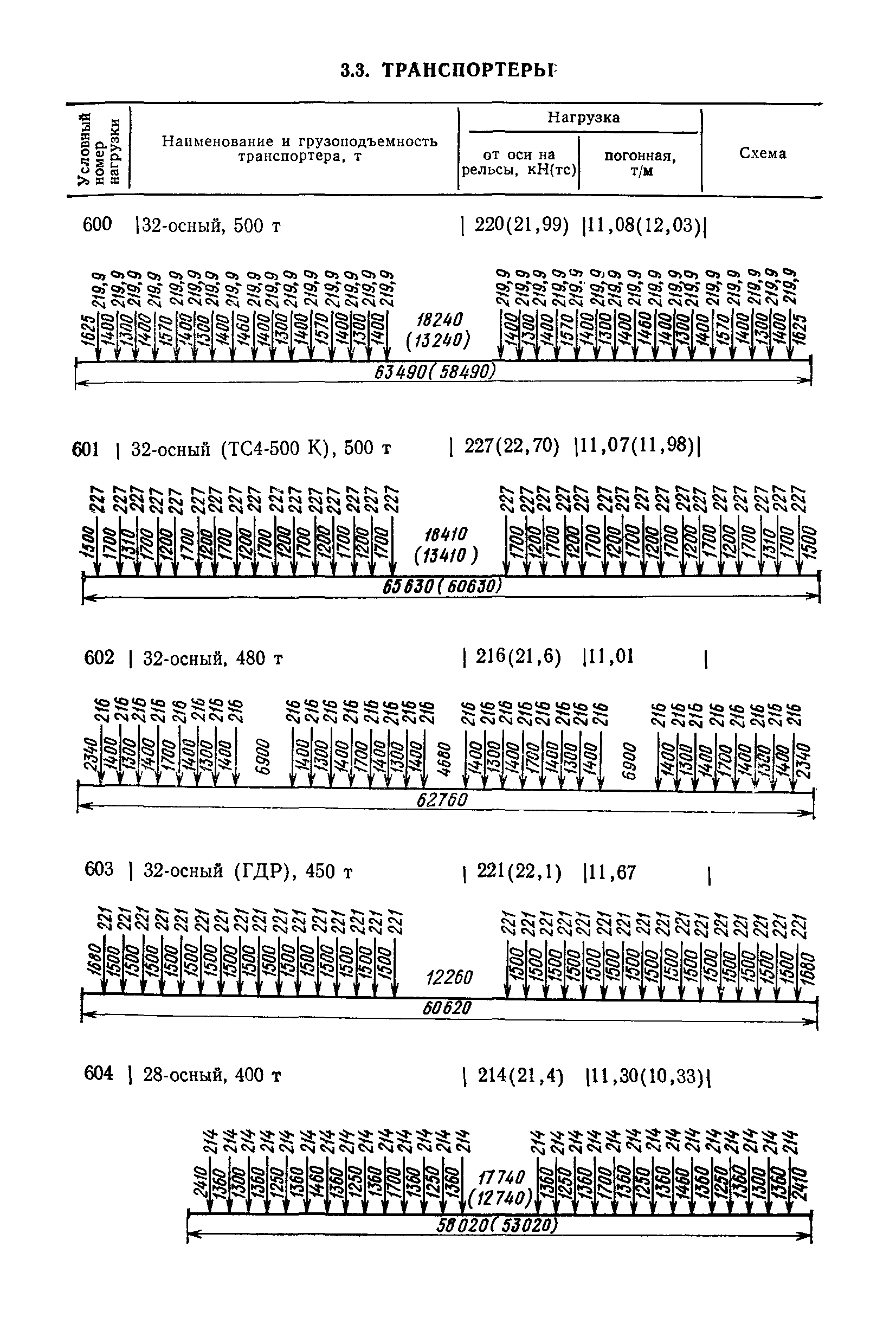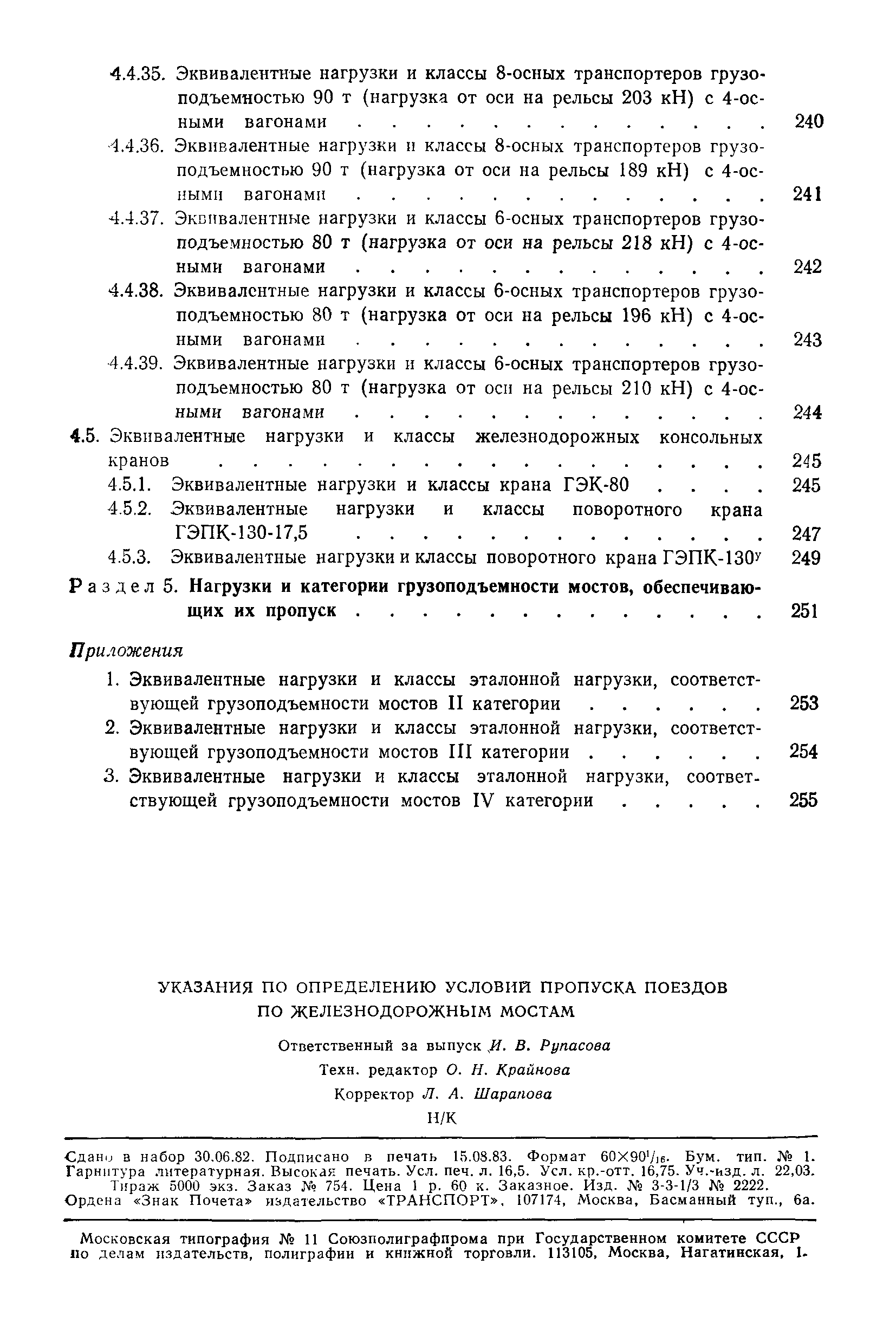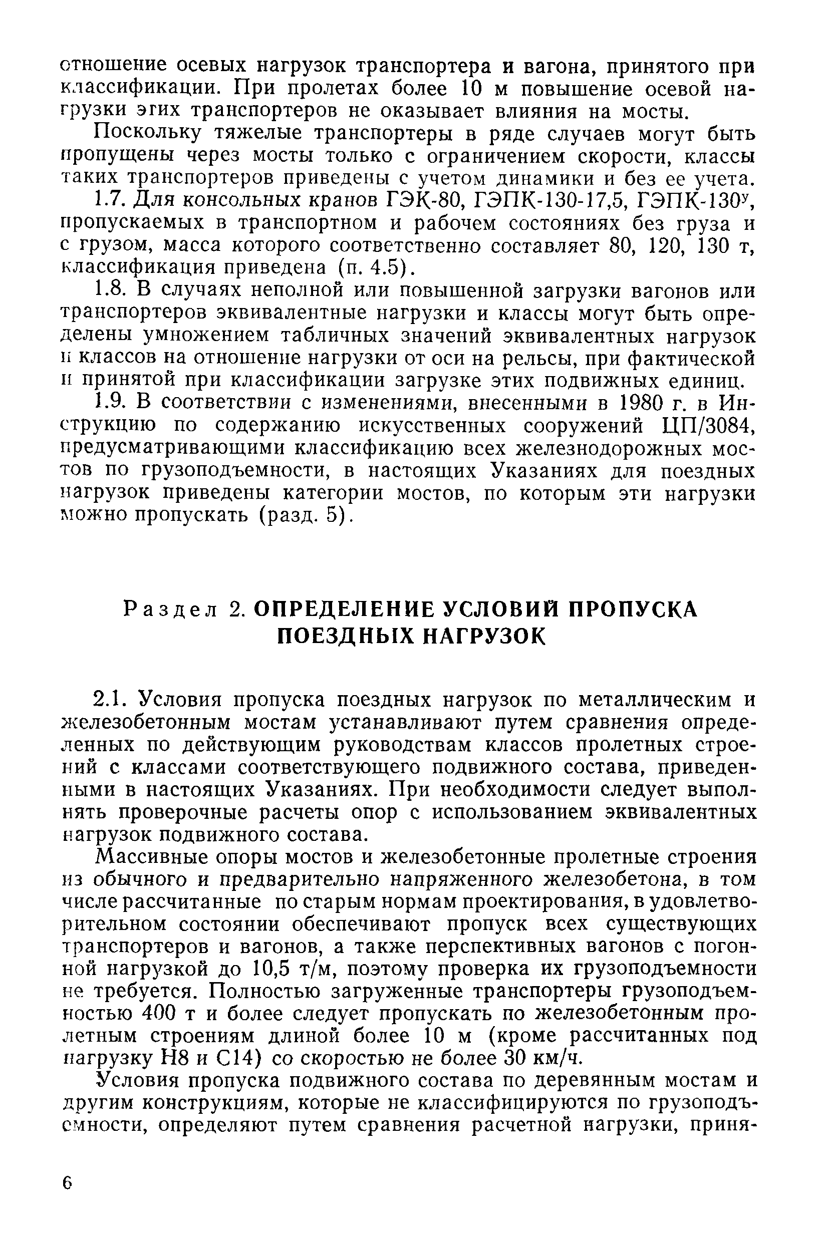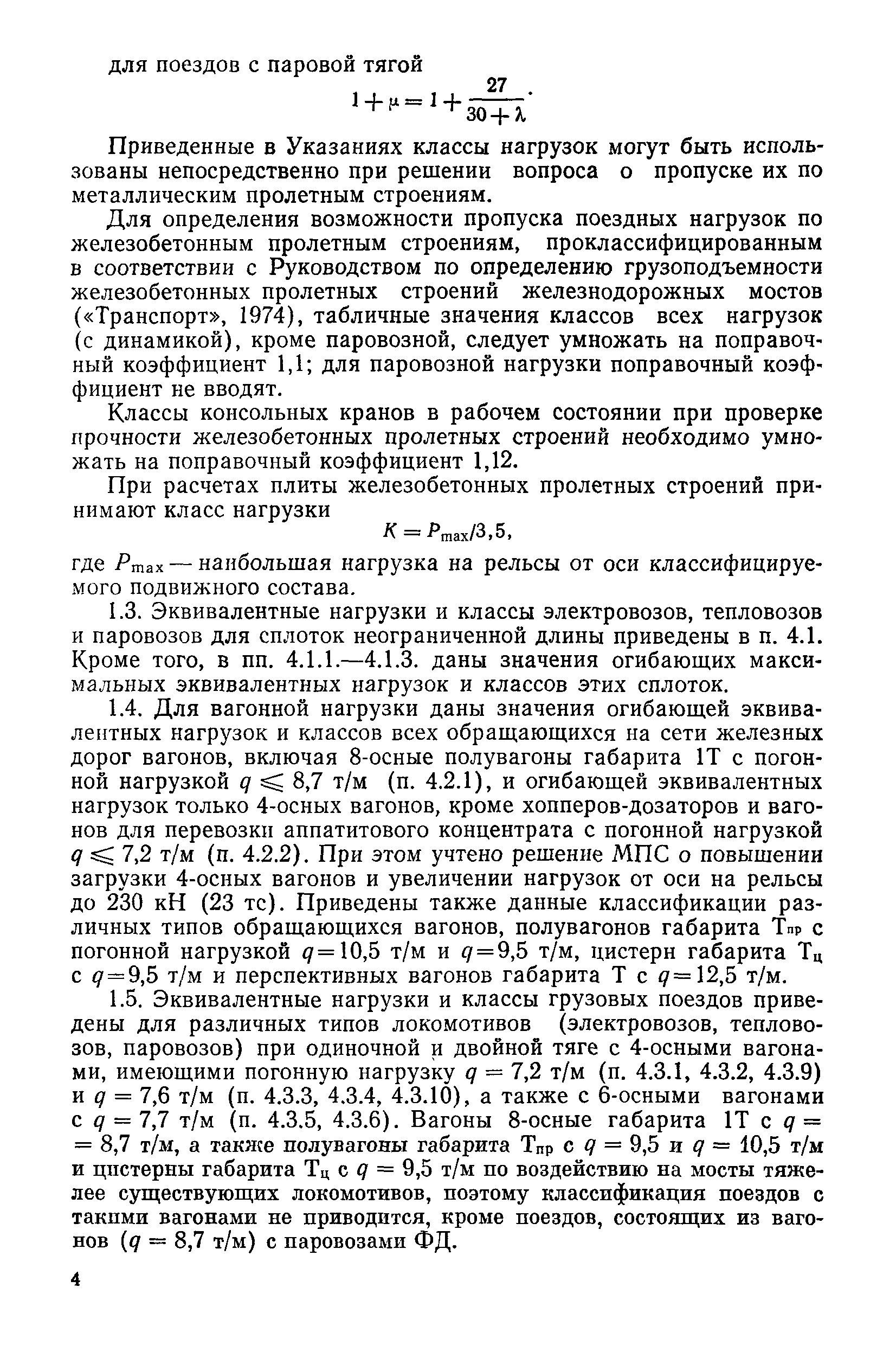 | Оглавление: | Раздел 1. Общие положения Раздел 2. Определение условий пропуска поездных нагрузок Раздел 3. Характеристики существующего и перспективного подвижного состава сети железных дорог СССР 3.1 Локомотивы 3.2 Вагоны 3.3 Транспортеры 3.4 Консольные железнодорожные краны Раздел 4. Классификация нагрузок Раздел 5. Нагрузки и категории грузоподъемности мостов, обеспечивающих их пропуск Приложения |