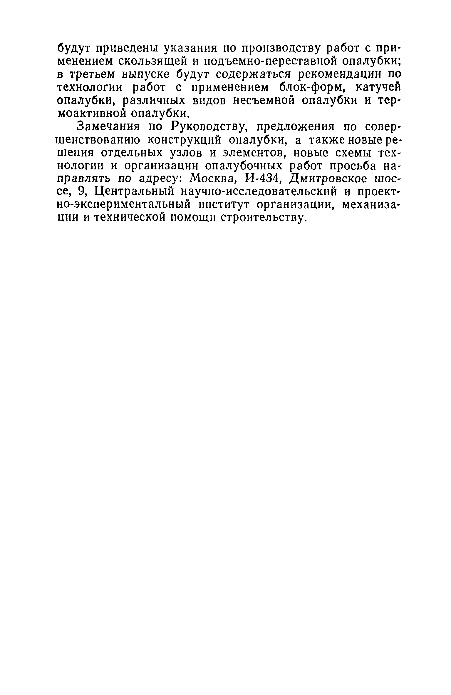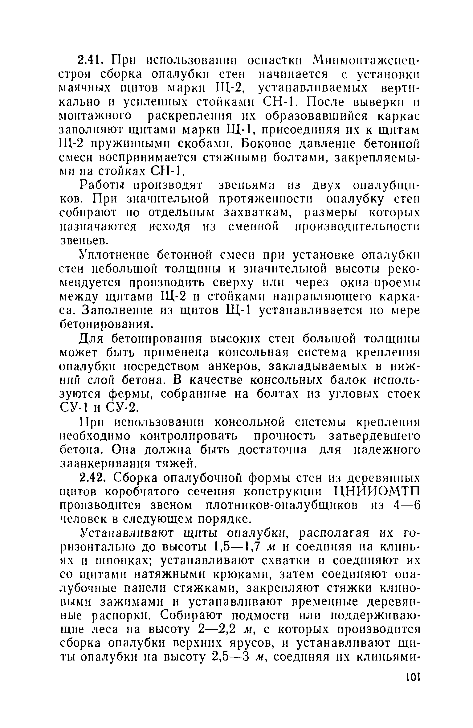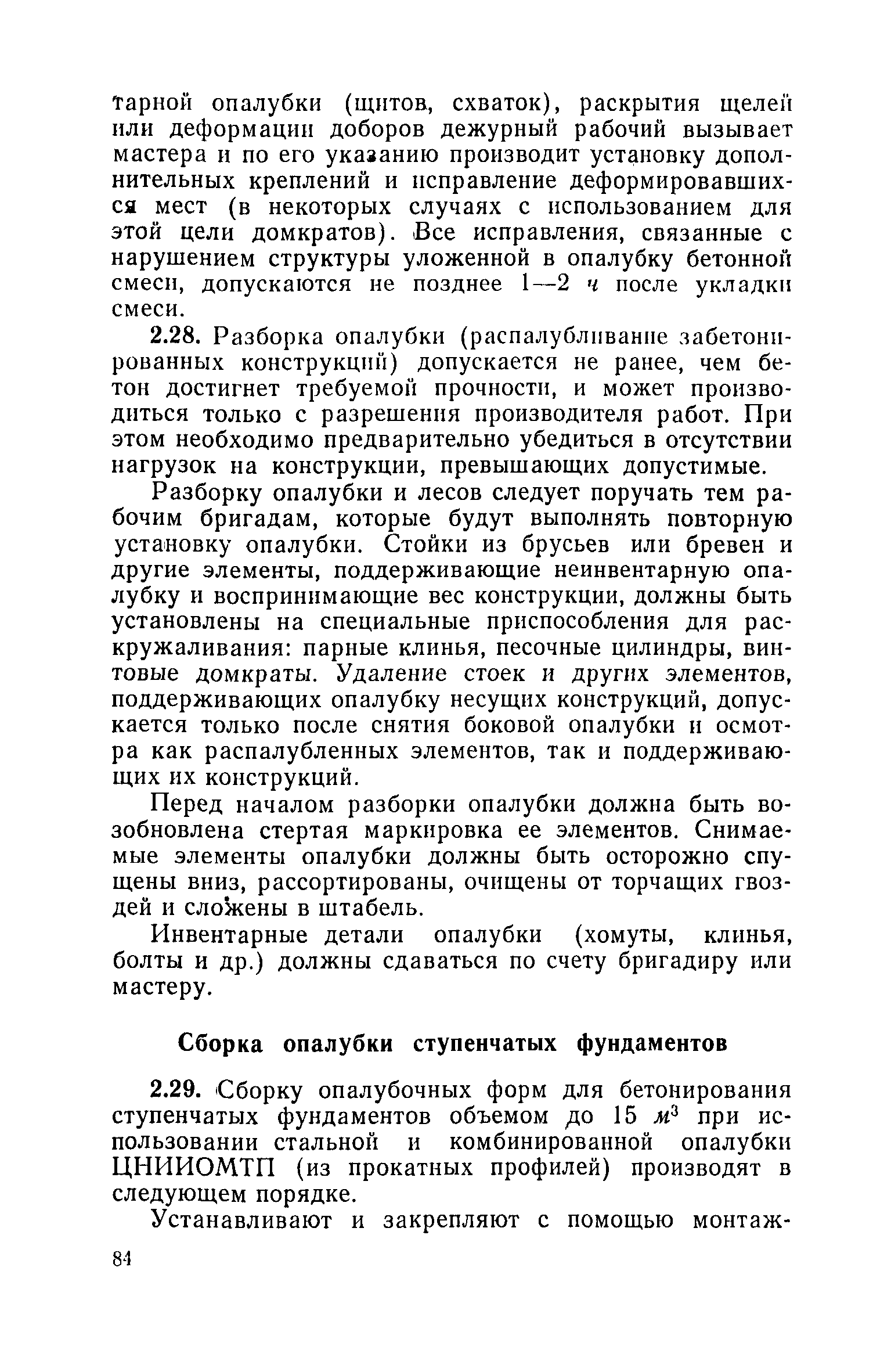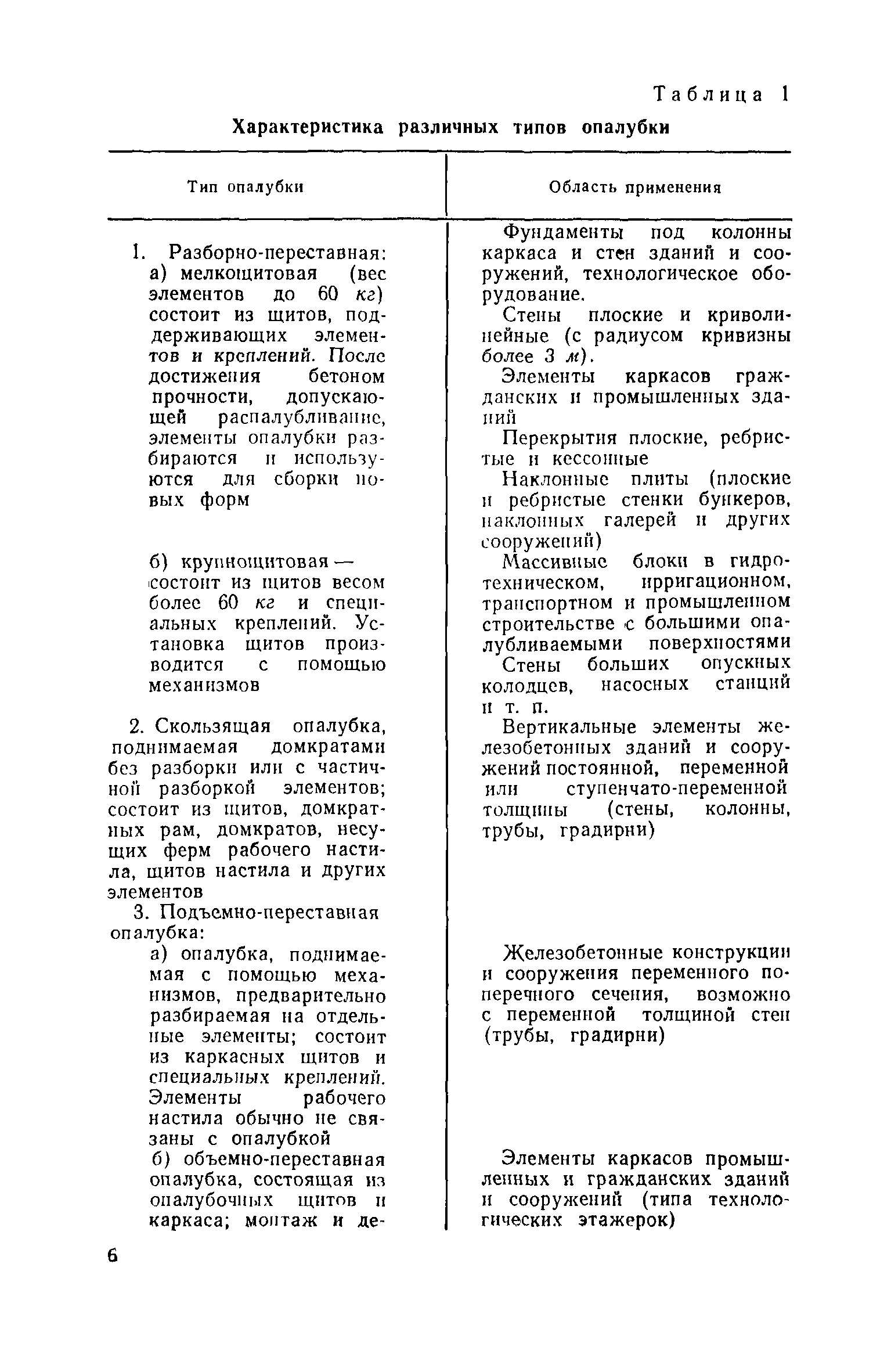 Руководство по применению опалубки для монолитных железобетонных конструкций. Выпуск 1. Разборно-переставная опалубка| Статус: | не действует | | Название рус.: | Руководство по применению опалубки для монолитных железобетонных конструкций. Выпуск 1. Разборно-переставная опалубка | | Дата добавления в базу: | 01.09.2013 | | Дата актуализации: | 01.01.2021 | | Область применения: | В первом выпуске приведены общие данные, касающиеся расчета опалубки и материалов, используемых для изготовления ее элементов. Описана технология сборки разборно-переставной опалубки фундаментов под каркасы зданий и технологическое оборудование, опалубки колонн, ригелей, перекрытий, бункеров и других конструкций и сооружений. | | Оглавление: | Предисловие Глава 1. Общие положения Типы опалубки Материалы для изготовления опалубки Основные данные по расчету опалубки и рекомендации по конструированию Требования к проектированию технологии и организации опалубочных работ Глава 2. Разборно-переставная опалубка Инструменты и приспособления для производства опалубочных работ Сборка опалубки ступенчатых фундаментов Установка опалубки ленточных фундаментов Установка опалубки фундаментов под технологическое оборудование Устройство опалубки стен, маслопроводов, резервуаров Устройство опалубки каркасов рамного типа Устройство опалубки перекрытий Установка опалубки бункеров Установка опалубки сборно-монолитных конструкций Установка опалубки механизированным способом Уход за опалубкой и смазка опалубки Правила техники безопасности и производственной санитарии Приложение I Приложение II Приложение III Приложение IV | | Разработан: | ЦНИИОМТП
