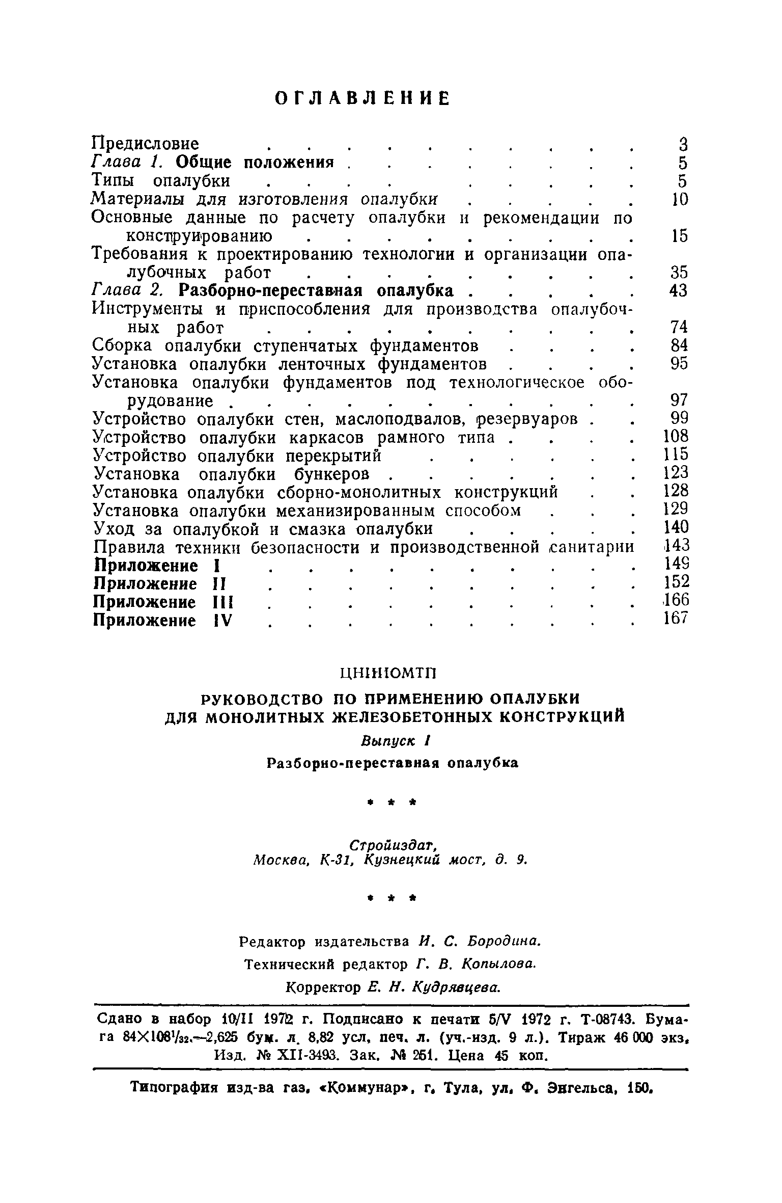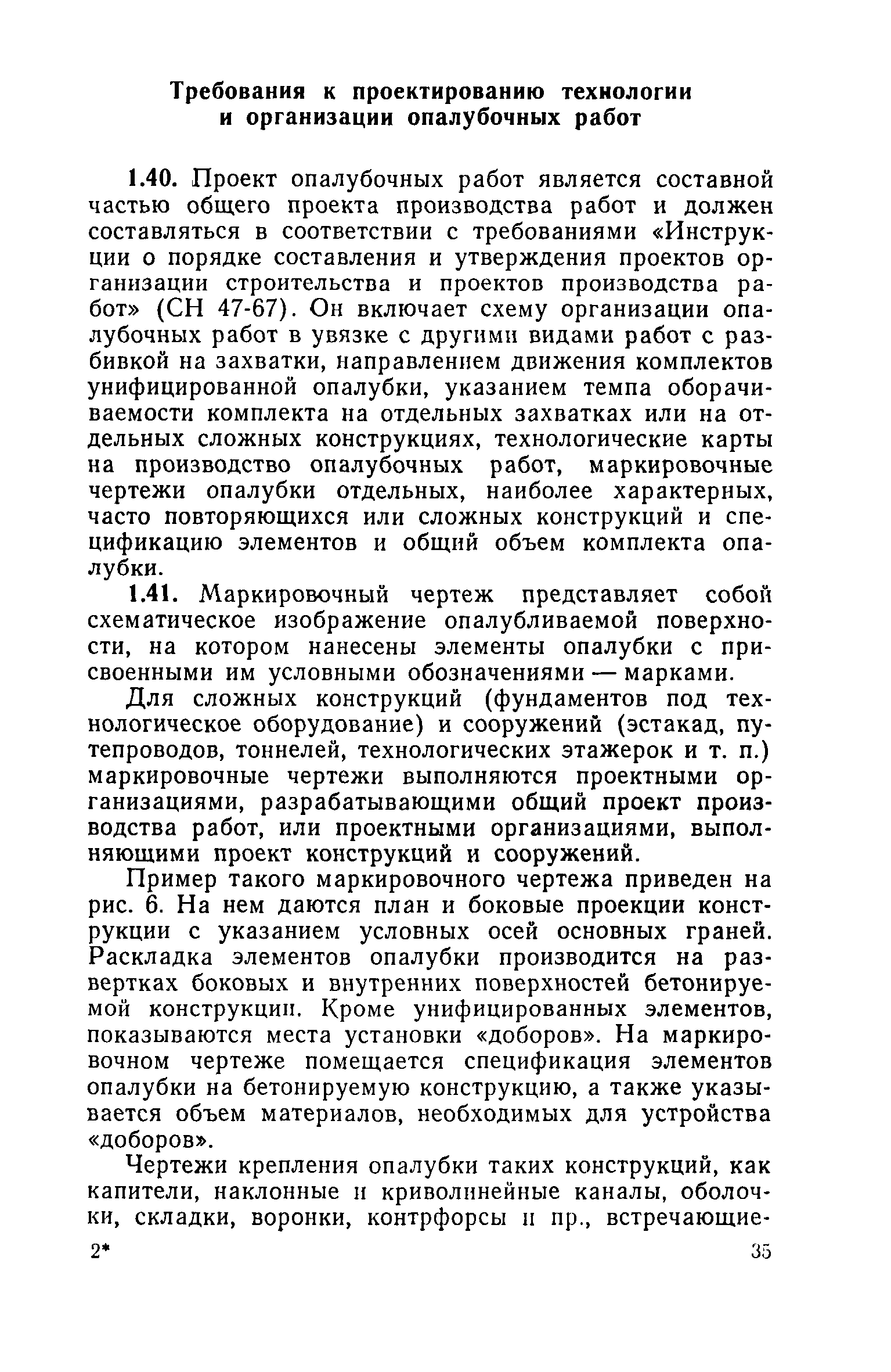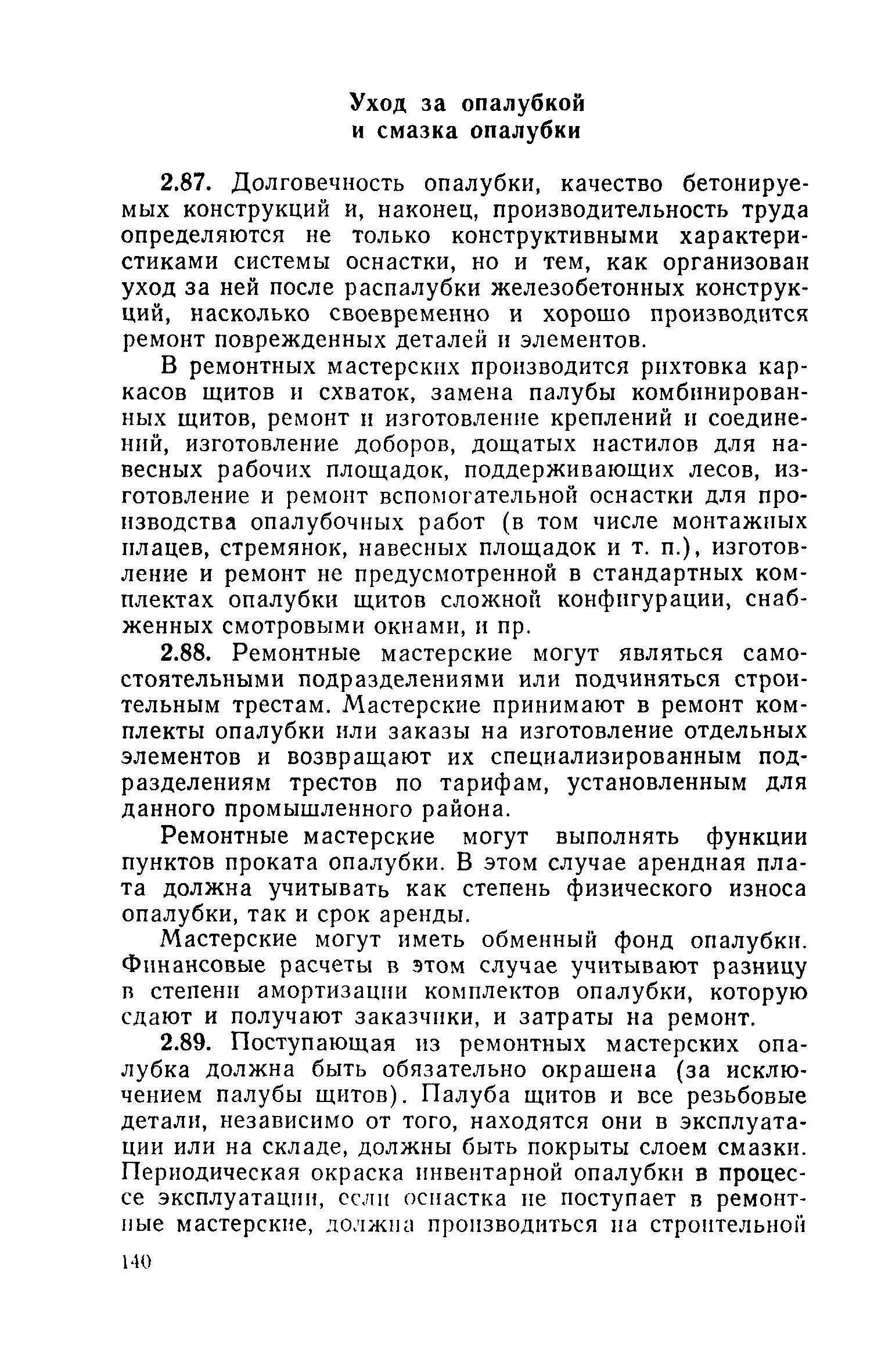 Руководство по применению опалубки для монолитных железобетонных конструкций. Выпуск 1. Разборно-переставная опалубка| Статус: | не действует | | Название рус.: | Руководство по применению опалубки для монолитных железобетонных конструкций. Выпуск 1. Разборно-переставная опалубка | | Дата добавления в базу: | 01.09.2013 | | Дата актуализации: | 01.01.2021 | | Область применения: | В первом выпуске приведены общие данные, касающиеся расчета опалубки и материалов, используемых для изготовления ее элементов. Описана технология сборки разборно-переставной опалубки фундаментов под каркасы зданий и технологическое оборудование, опалубки колонн, ригелей, перекрытий, бункеров и других конструкций и сооружений. | | Оглавление: | Предисловие Глава 1. Общие положения Типы опалубки Материалы для изготовления опалубки Основные данные по расчету опалубки и рекомендации по конструированию Требования к проектированию технологии и организации опалубочных работ Глава 2. Разборно-переставная опалубка Инструменты и приспособления для производства опалубочных работ Сборка опалубки ступенчатых фундаментов Установка опалубки ленточных фундаментов Установка опалубки фундаментов под технологическое оборудование Устройство опалубки стен, маслопроводов, резервуаров Устройство опалубки каркасов рамного типа Устройство опалубки перекрытий Установка опалубки бункеров Установка опалубки сборно-монолитных конструкций Установка опалубки механизированным способом Уход за опалубкой и смазка опалубки Правила техники безопасности и производственной санитарии Приложение I Приложение II Приложение III Приложение IV | | Разработан: | ЦНИИОМТП