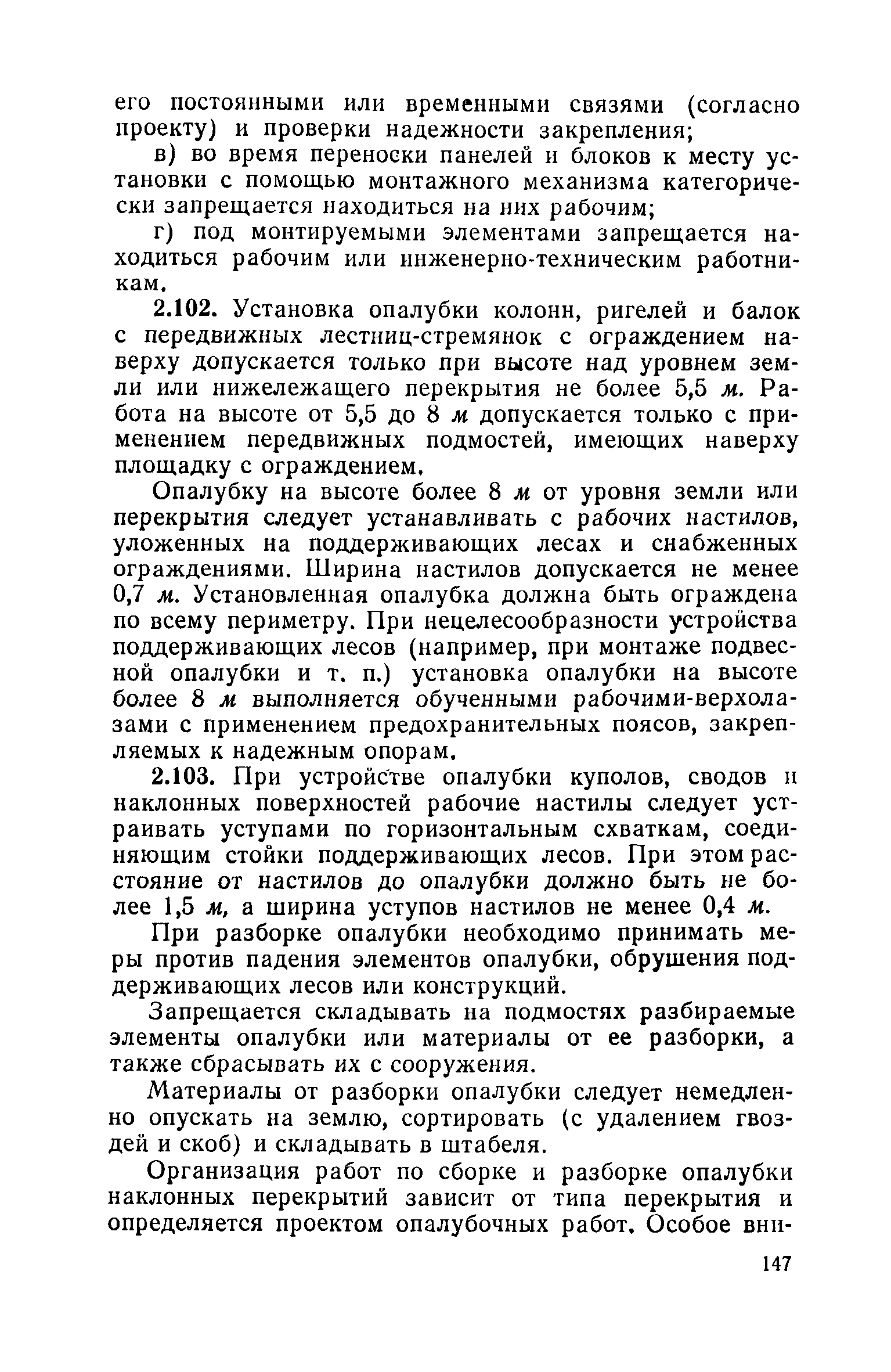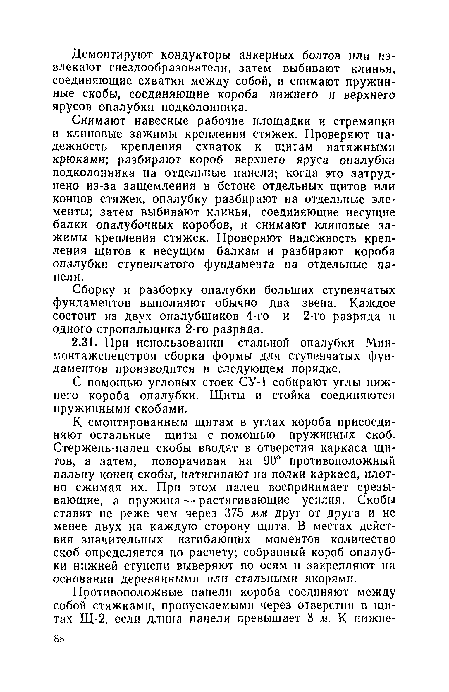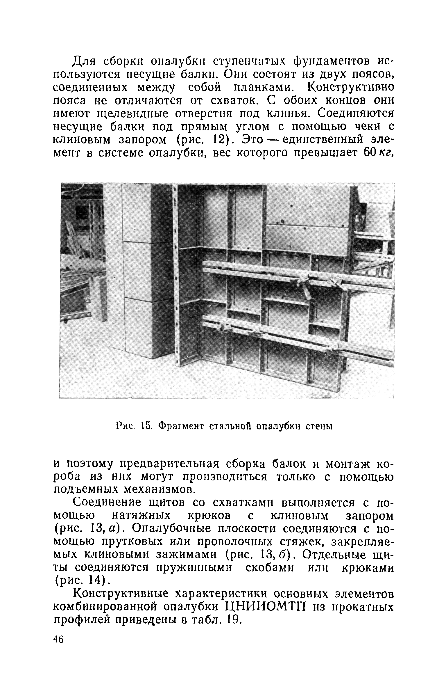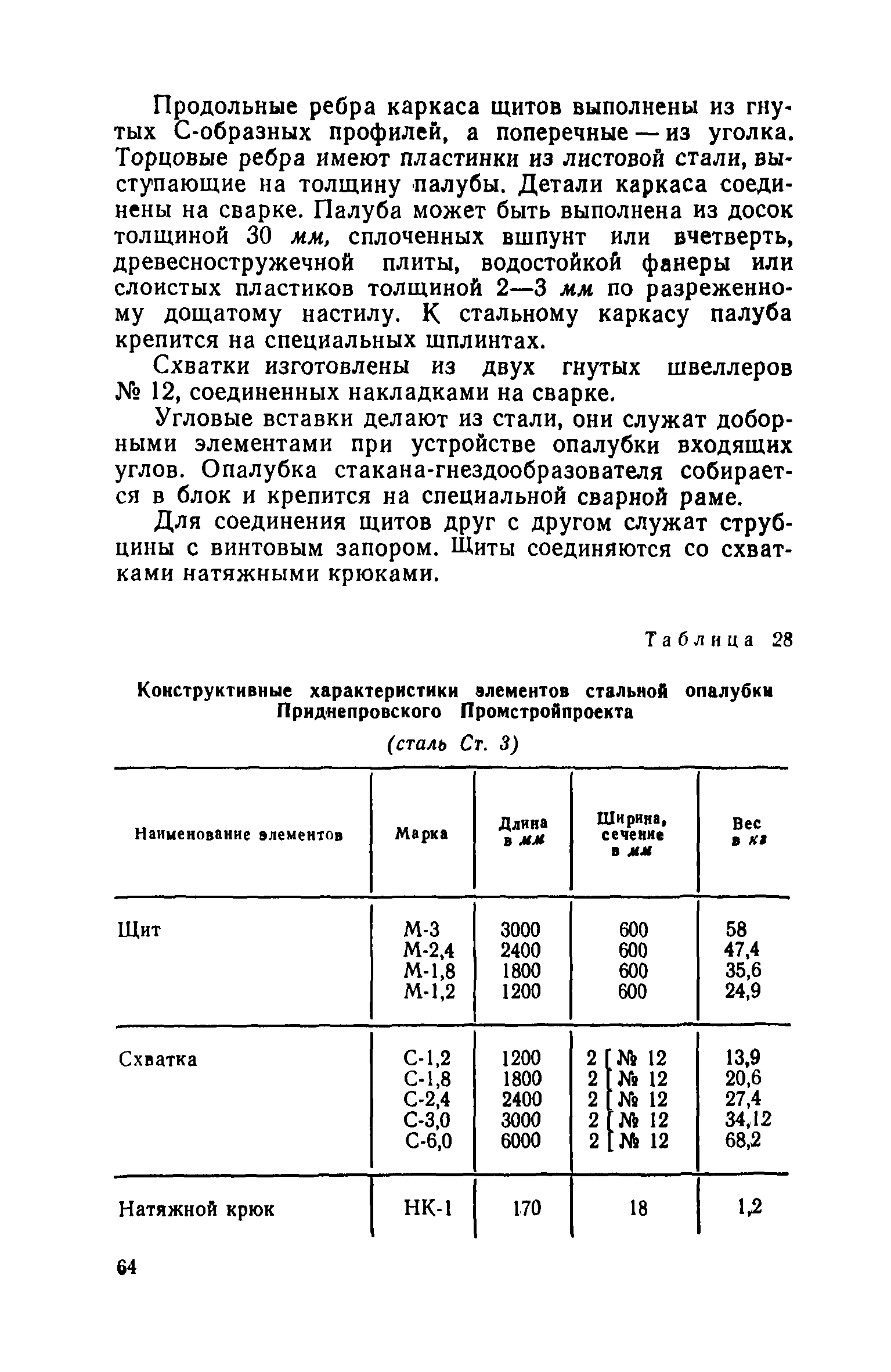 Руководство по применению опалубки для монолитных железобетонных конструкций. Выпуск 1. Разборно-переставная опалубка| Статус: | не действует | | Название рус.: | Руководство по применению опалубки для монолитных железобетонных конструкций. Выпуск 1. Разборно-переставная опалубка | | Дата добавления в базу: | 01.09.2013 | | Дата актуализации: | 01.01.2021 | | Область применения: | В первом выпуске приведены общие данные, касающиеся расчета опалубки и материалов, используемых для изготовления ее элементов. Описана технология сборки разборно-переставной опалубки фундаментов под каркасы зданий и технологическое оборудование, опалубки колонн, ригелей, перекрытий, бункеров и других конструкций и сооружений. | | Оглавление: | Предисловие Глава 1. Общие положения Типы опалубки Материалы для изготовления опалубки Основные данные по расчету опалубки и рекомендации по конструированию Требования к проектированию технологии и организации опалубочных работ Глава 2. Разборно-переставная опалубка Инструменты и приспособления для производства опалубочных работ Сборка опалубки ступенчатых фундаментов Установка опалубки ленточных фундаментов Установка опалубки фундаментов под технологическое оборудование Устройство опалубки стен, маслопроводов, резервуаров Устройство опалубки каркасов рамного типа Устройство опалубки перекрытий Установка опалубки бункеров Установка опалубки сборно-монолитных конструкций Установка опалубки механизированным способом Уход за опалубкой и смазка опалубки Правила техники безопасности и производственной санитарии Приложение I Приложение II Приложение III Приложение IV | | Разработан: | ЦНИИОМТП