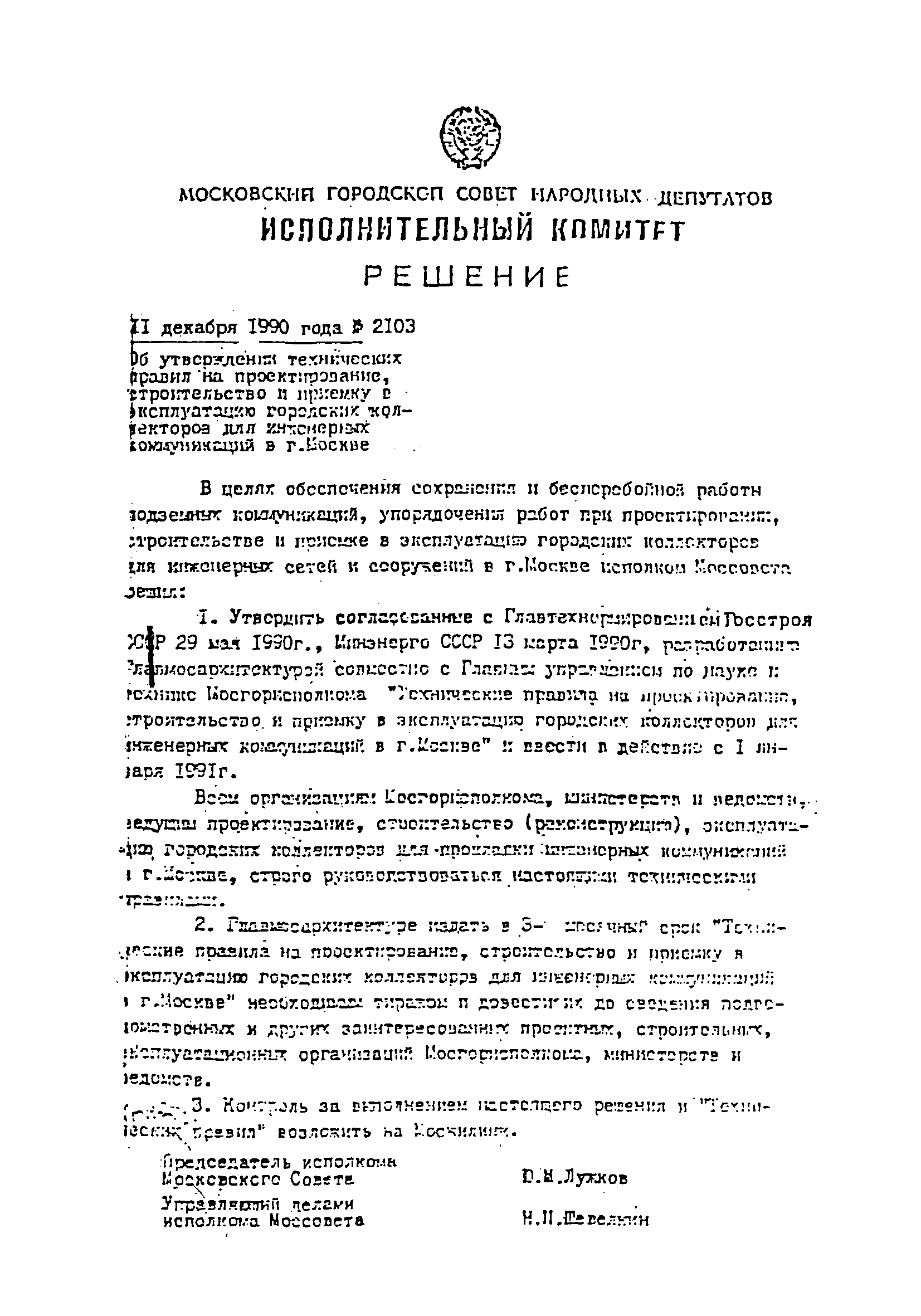 | Утверждён: | 11.12.1990 Исполком Моссовета (Mossoviet Ispolkom 2103)