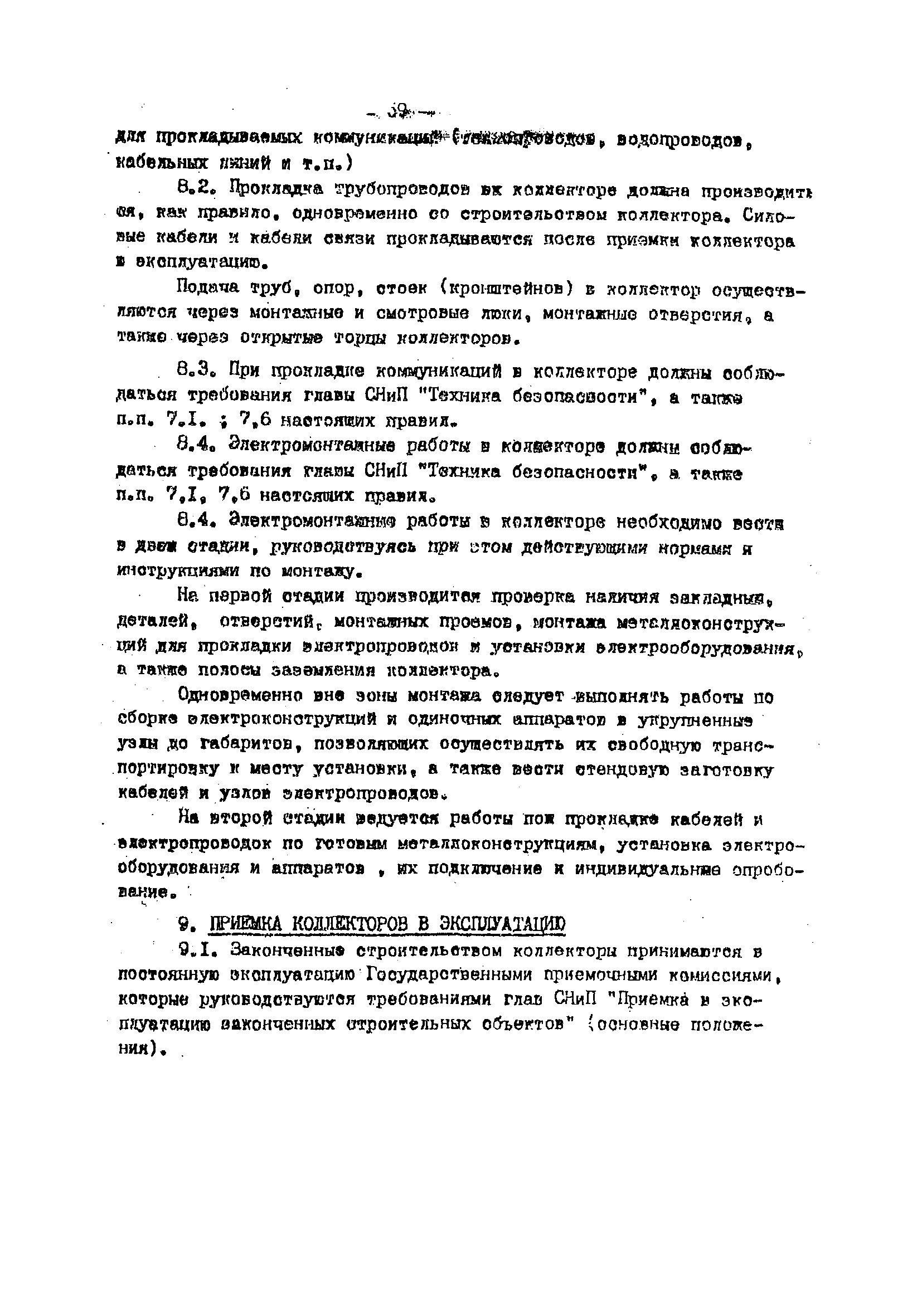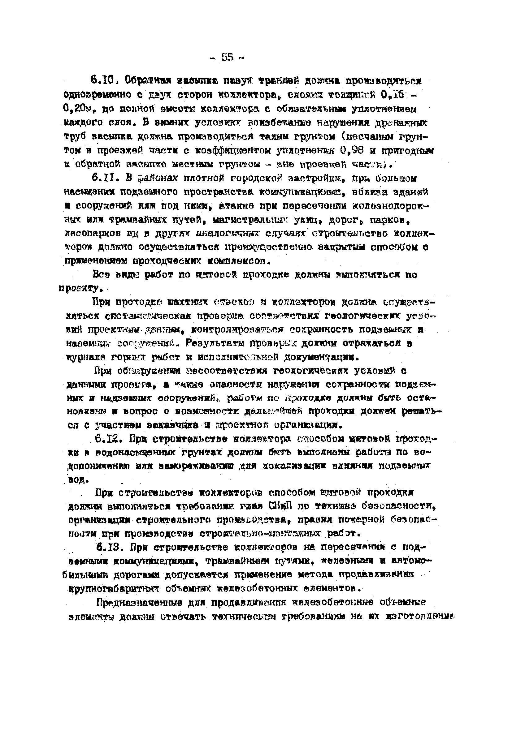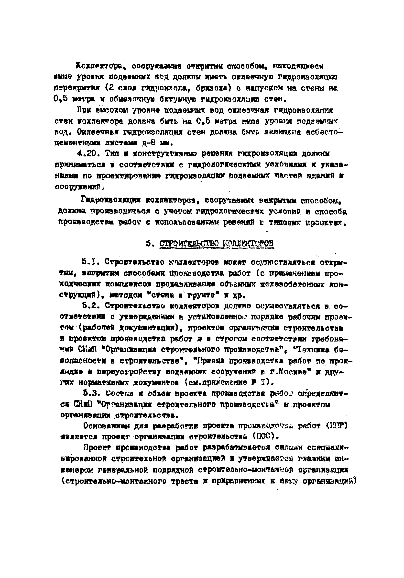 | Оглавление: | 1. Общая часть 2. Проектирование коллекторов 3. Размещение инженерных коммуникаций в коллекторах 4. Строительные конструкции городских коллекторов 5. Защита строительных конструкций от грунтовых вод и коррозии 5. Строительство коллекторов 6. Производство земляных работ, устройство дренажей и оснований под коллекторы 7. Монтаж конструкций коллектора 8. Прокладка коммуникаций в коллекторе 9. Приемка коллекторов в эксплуатацию Приложение 1. Нагрузки и основные расчетные положения Приложение 2. Перечень нормативных документов Приложение 3. Акты государственной и рабочей комиссий Акт освидетельствования скрытых работ |