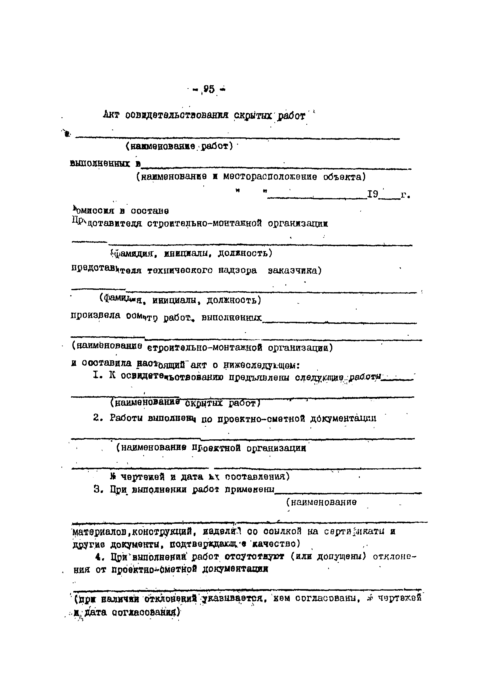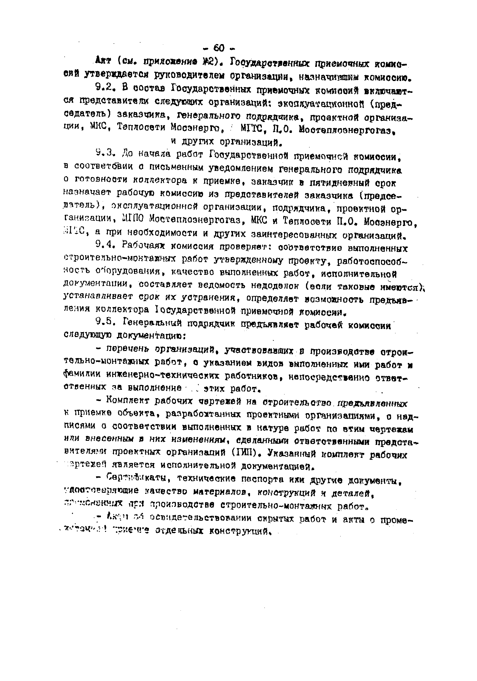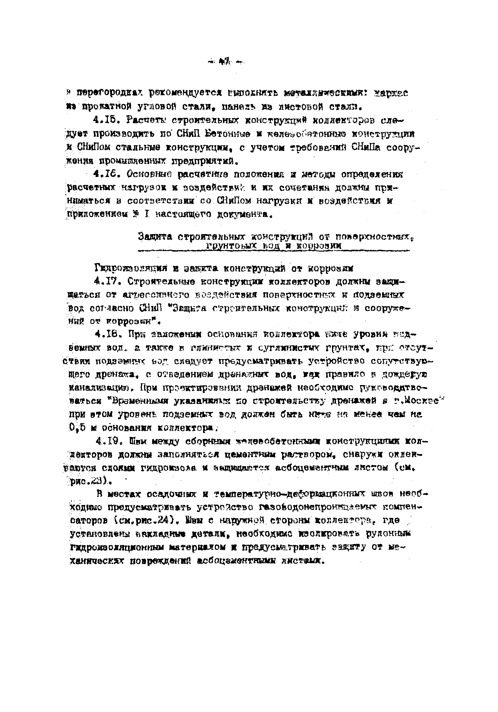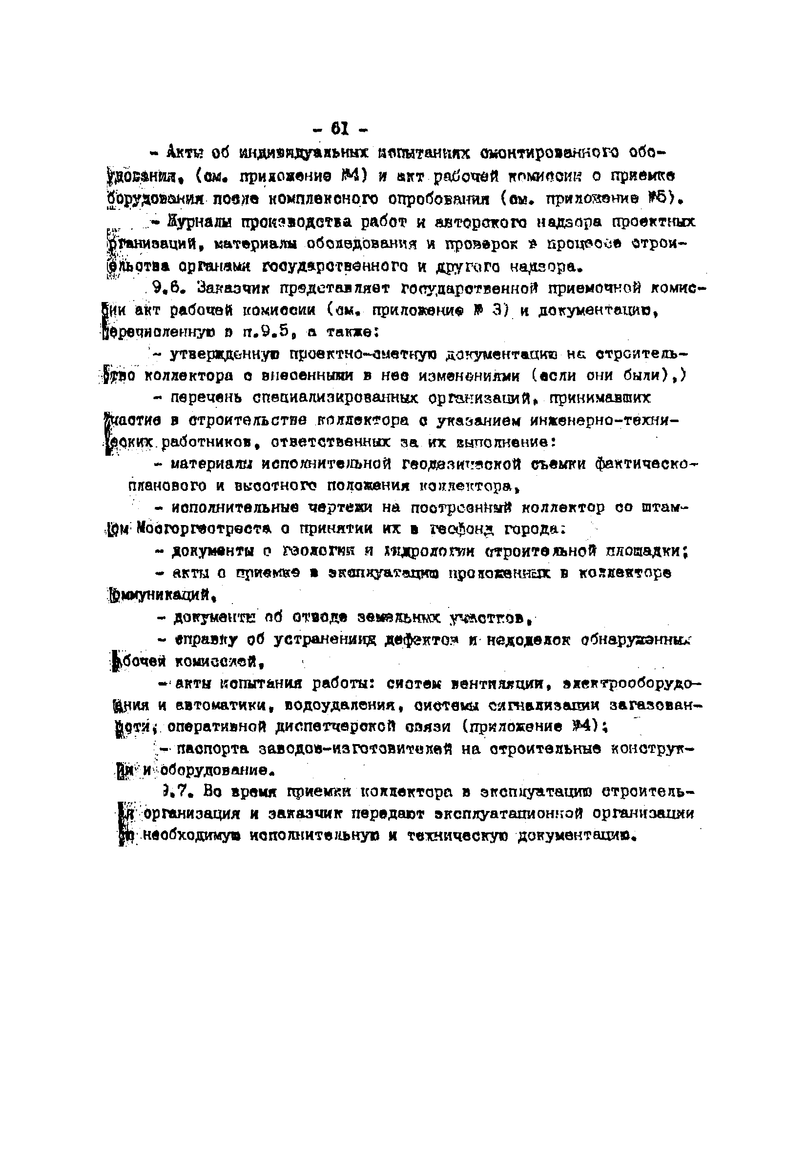 | Оглавление: | 1. Общая часть 2. Проектирование коллекторов 3. Размещение инженерных коммуникаций в коллекторах 4. Строительные конструкции городских коллекторов 5. Защита строительных конструкций от грунтовых вод и коррозии 5. Строительство коллекторов 6. Производство земляных работ, устройство дренажей и оснований под коллекторы 7. Монтаж конструкций коллектора 8. Прокладка коммуникаций в коллекторе 9. Приемка коллекторов в эксплуатацию Приложение 1. Нагрузки и основные расчетные положения Приложение 2. Перечень нормативных документов Приложение 3. Акты государственной и рабочей комиссий Акт освидетельствования скрытых работ |
