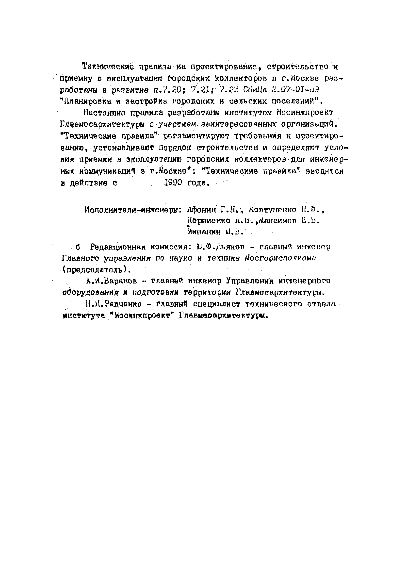 | Область применения: | Технические правила являются обязательными для всех организаций, осуществляющих проектирование, строительство и приемку в эксплуатацию городских коллекторов для инженерных коммуникаций в г. Москве.