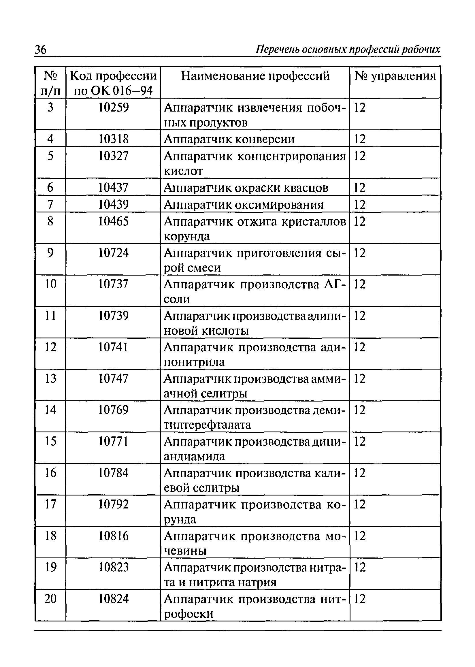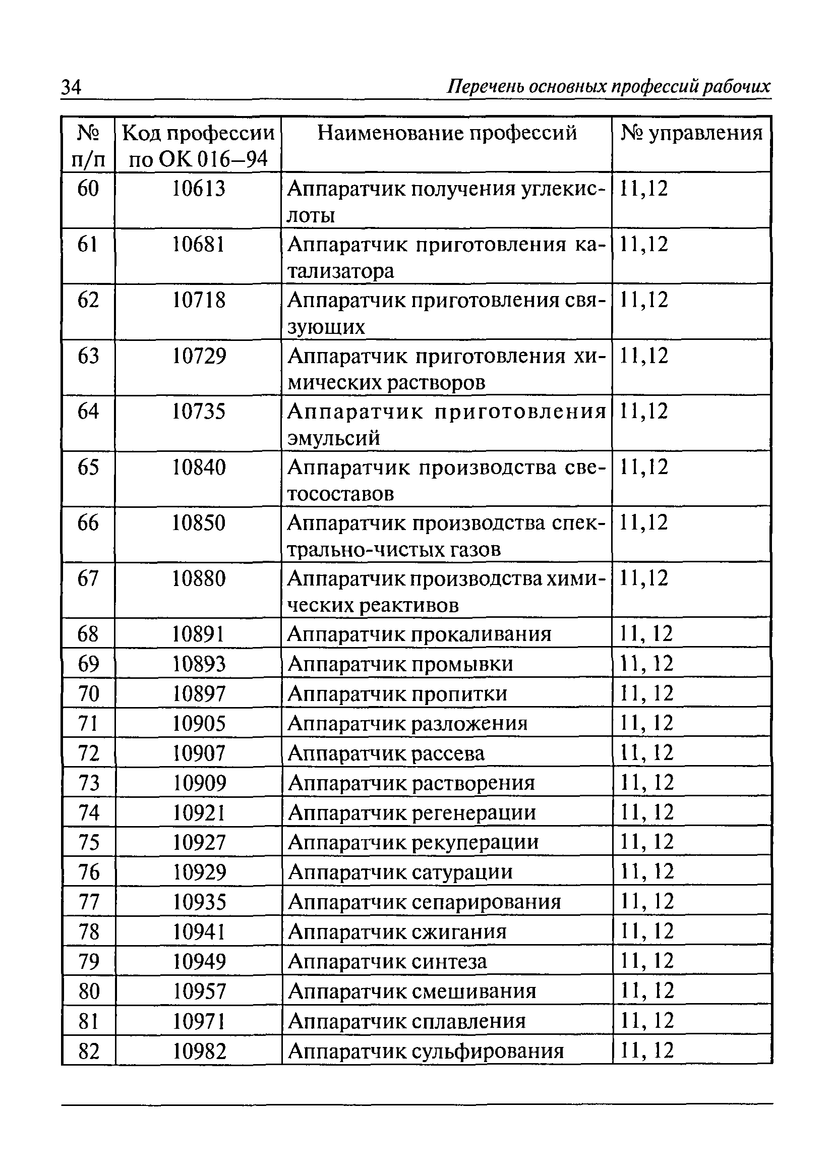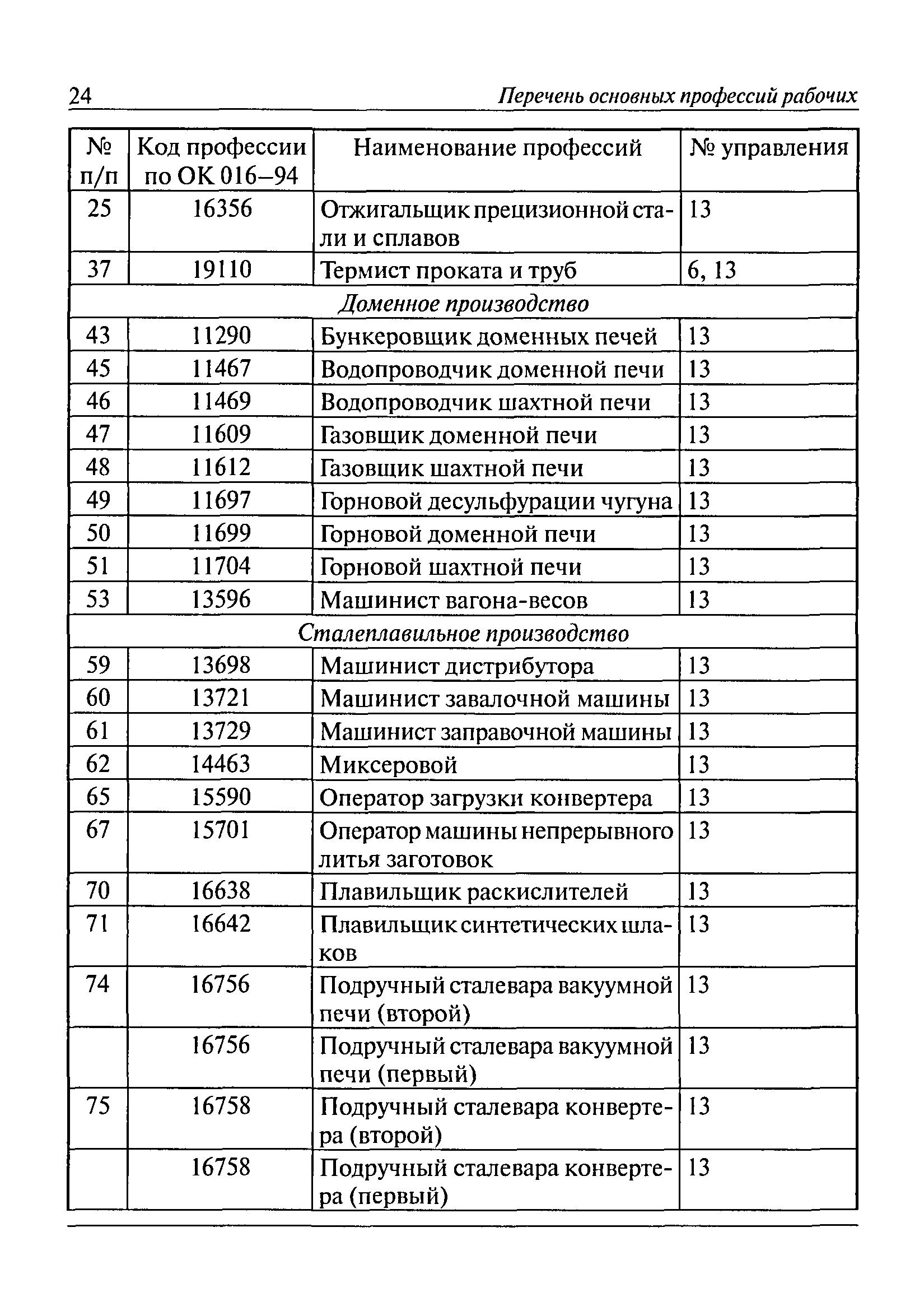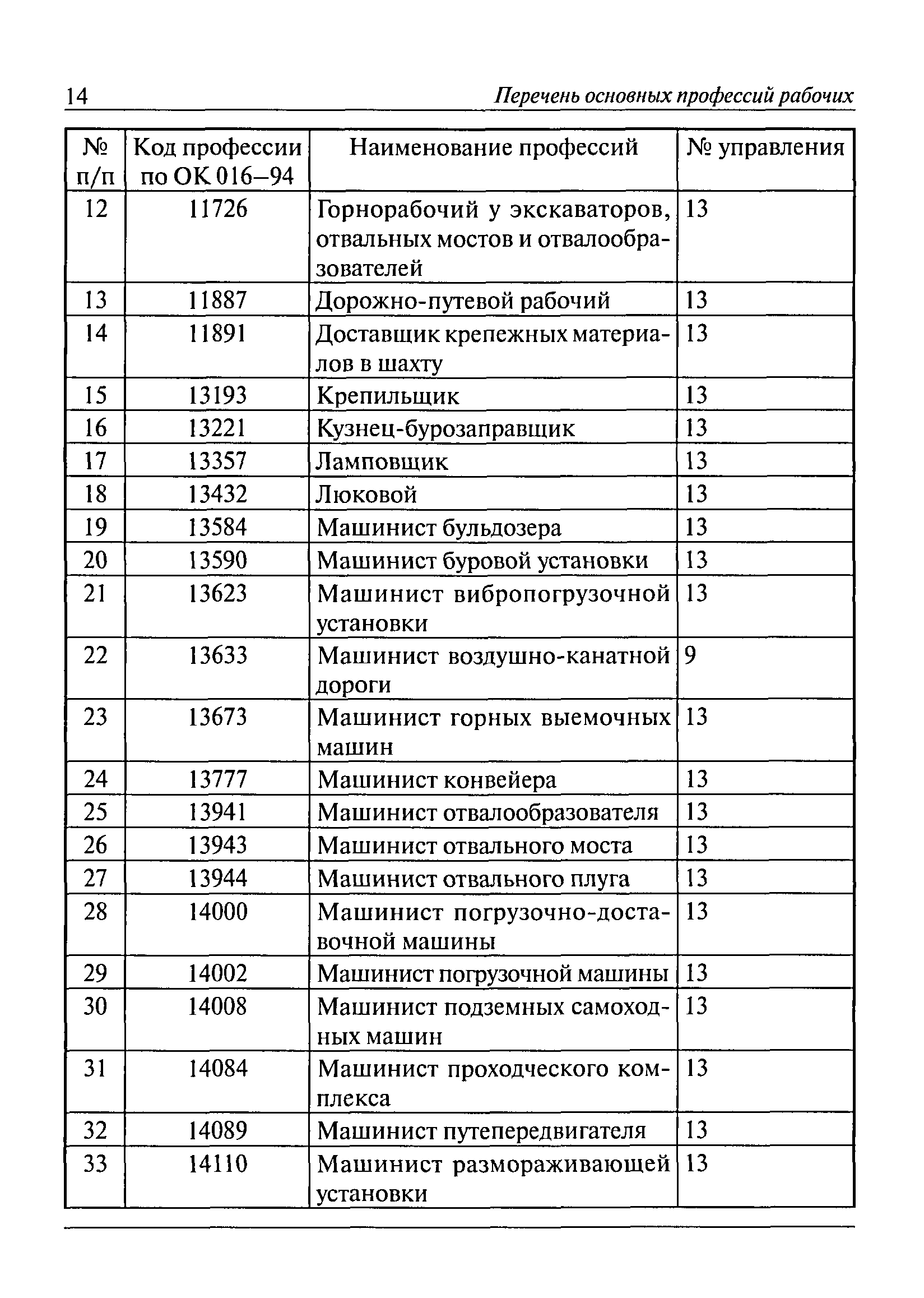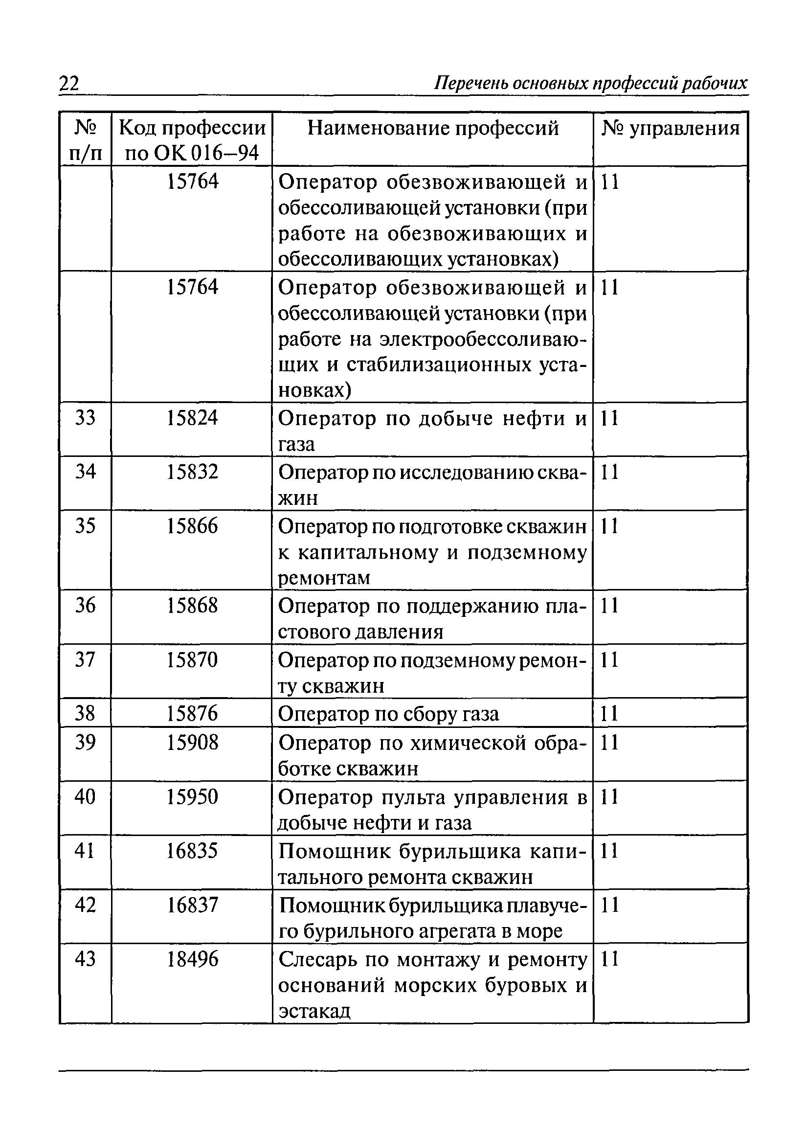 Перечень основных профессий рабочих промышленных производств (объектов), программы обучения которых должны согласовываться с органами федеральной службы по экологическому, технологическому и атомному надзору| Статус: | утратил силу | | Название рус.: | Перечень основных профессий рабочих промышленных производств (объектов), программы обучения которых должны согласовываться с органами федеральной службы по экологическому, технологическому и атомному надзору | | Дата добавления в базу: | 01.09.2013 | | Дата актуализации: | 01.01.2021 | | Дата введения: | 29.12.2006 | | Дата окончания срока действия: | 19.08.2015 | | Область применения: | Перечень разработан в целях систематизации деятельности в области профессионального обучения. Перечень приведен в соответствии с действующими нормативными правовыми актами, определяющими сферу деятельности Федеральной службы по экологическому, технологическому и атомному надзору. | | Оглавление: | ЕТКС. Выпуск 01. Профессии рабочих, общие для всех отраслей экономики ЕТКС. Выпуск 02. ЕТКС. Выпуск 03. Строительные, монтажные и ремонтно-строительные работы ЕТКС. Выпуск 04. Горные работы ЕТКС. Выпуск 06. Добыча нефти и газа ЕТКС. Выпуск 07. Черная металлургия ЕТКС. Выпуск 08. Цветная металлургия ЕТКС. Выпуск 09. Эксплуатация оборудования электростанций и сетей и др. ЕТКС. Выпуск 17. Производство абразивов ЕТКС. Выпуск 19. Электротехническое производство ЕТКС. Выпуск 22. Производство и ремонт летательных аппаратов ЕТКС. Выпуск 23. Судостроение ЕТКС. Выпуск 24. Химическое производство ЕТКС. Выпуск 25. Азотное производство ЕТКС. Выпуск 26. Анилинокрасочное производство ЕТКС. Выпуск 27. Производство синтетических смол и др. ЕТКС. Выпуск 28 (28, 29). Производство стекловолокон и др. ЕТКС. Выпуск 29. (30, 31). Гидролизное производство ЕТКС. Выпуск 30. (32). Производство синтетических каучуков и др. ЕТКС. Выпуск 31. (33). Производство резиновых изделий ЕТКС. Выпуск 32 (34). Химико-фотографическое производство ЕТКС. Выпуск 33 (35). Производство искусственной кожи ЕТКС. Выпуск 34 (36). Переработка нефти ЕТКС. Выпуск 36 (38). Производство асбестовых технических изделий ЕТКС. Выпуск 37 (39). Лесозаготовительные работы ЕТКС. Выпуск 39 (41). Производство целлюлозы и др. ЕТКС. Выпуск 40 (42, 43). Производство строительных материалов ЕТКС. Выпуск 41 (44). Производство стекла стеклоизделий ЕТКС. Выпуск 42 (45). Производство керамических, фарфоровых и других изделий ЕТКС. Выпуск 44 (47). Производство текстиля ЕТКС. Выпуск 45 (48). Легкая промышленность ЕТКС. Выпуск 48 (51). Производство пищевой продукции ЕТКС. Выпуск 49 (52). Производства мясных, молочных и других продуктов ЕТКС. Выпуск 51 (53, 55). Производства: алкогольной и безалкогольной продукции; хлебопекарно-макаронное; сахара; табака; эфирномасляничное; чая; консервов; парфюмерно-косметическое; поваренной соли; общественное питание и торговля и др. ЕТКС. Выпуск 52 (56). Транспорт (железнодорожный, автомобильный, городской, морской, речной, метрополитен) ЕТКС. Выпуск 54 (58). Связь ЕТКС. Выпуск 63 (69). Газовое, водопроводно-канализационное и зеленое хозяйства Категория 73 Наименования управлений | | Утверждён: | 29.12.2006 Федеральная служба по экологическому, технологическому и атомному надзору (1154)