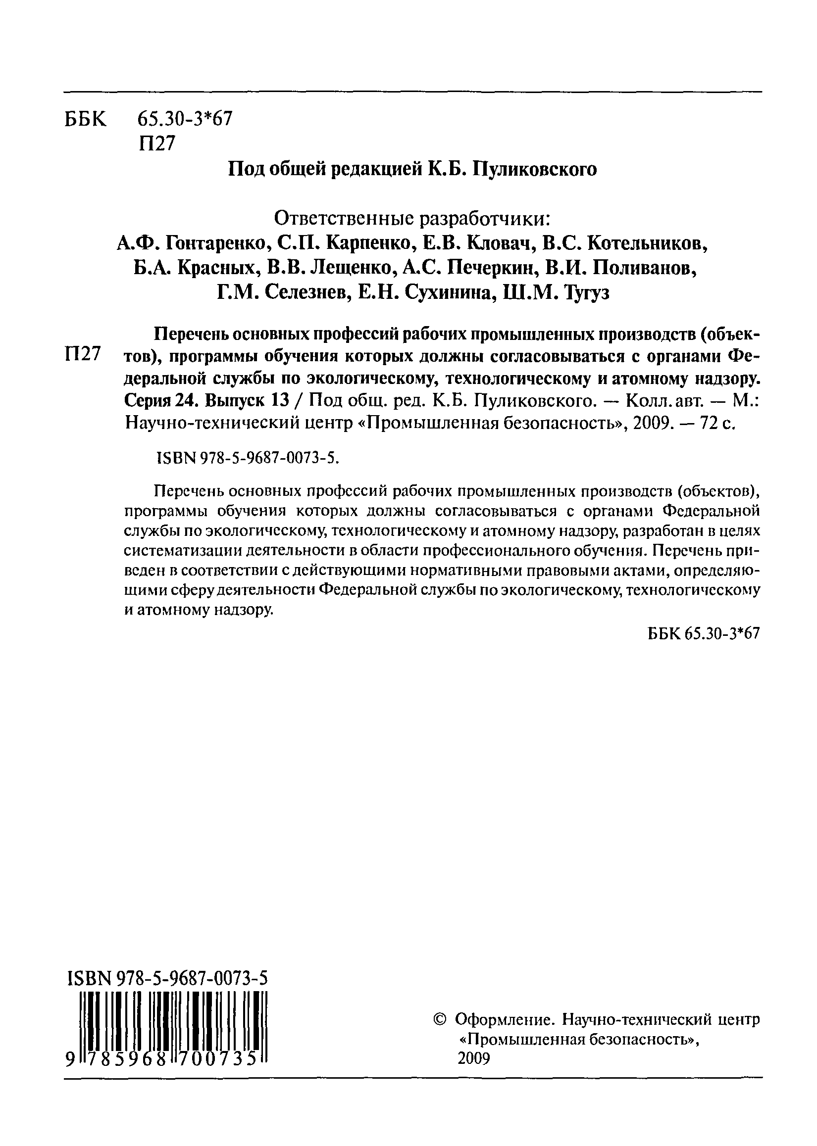 | | Издан: | НТЦ Промышленная безопасность (2009 г. ) Журнал Энергонадзор и энергобезопасность (2007 г. (2))