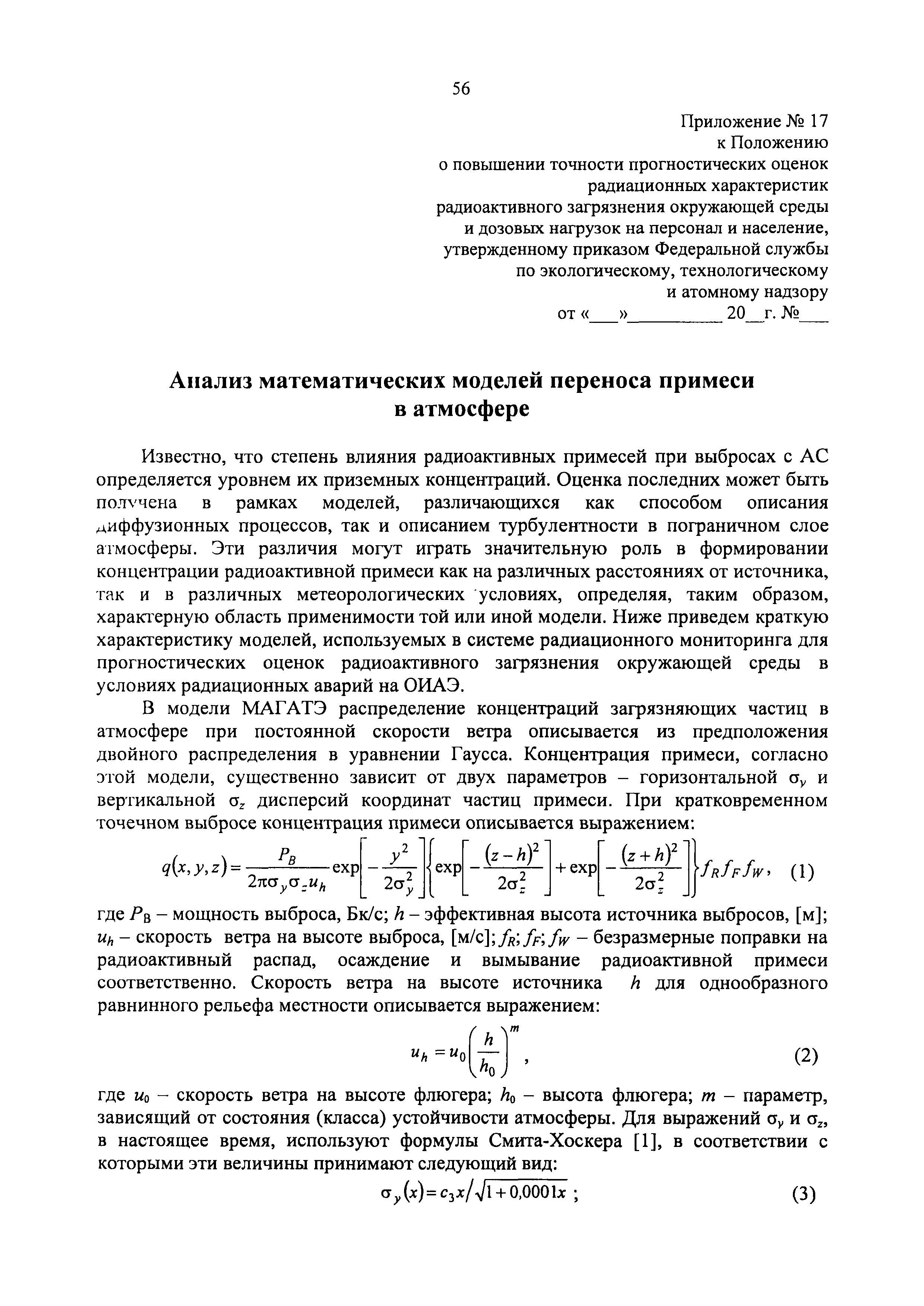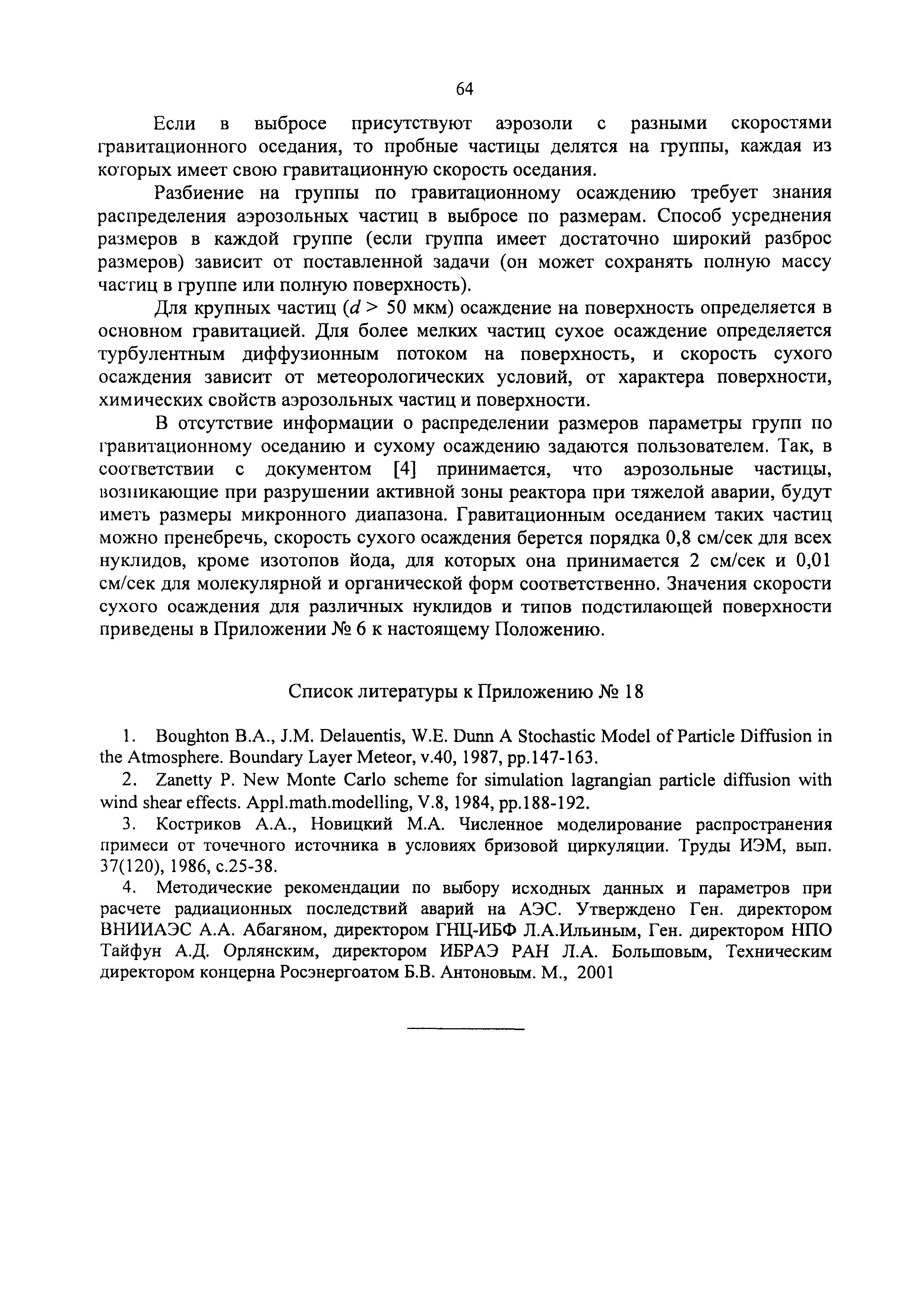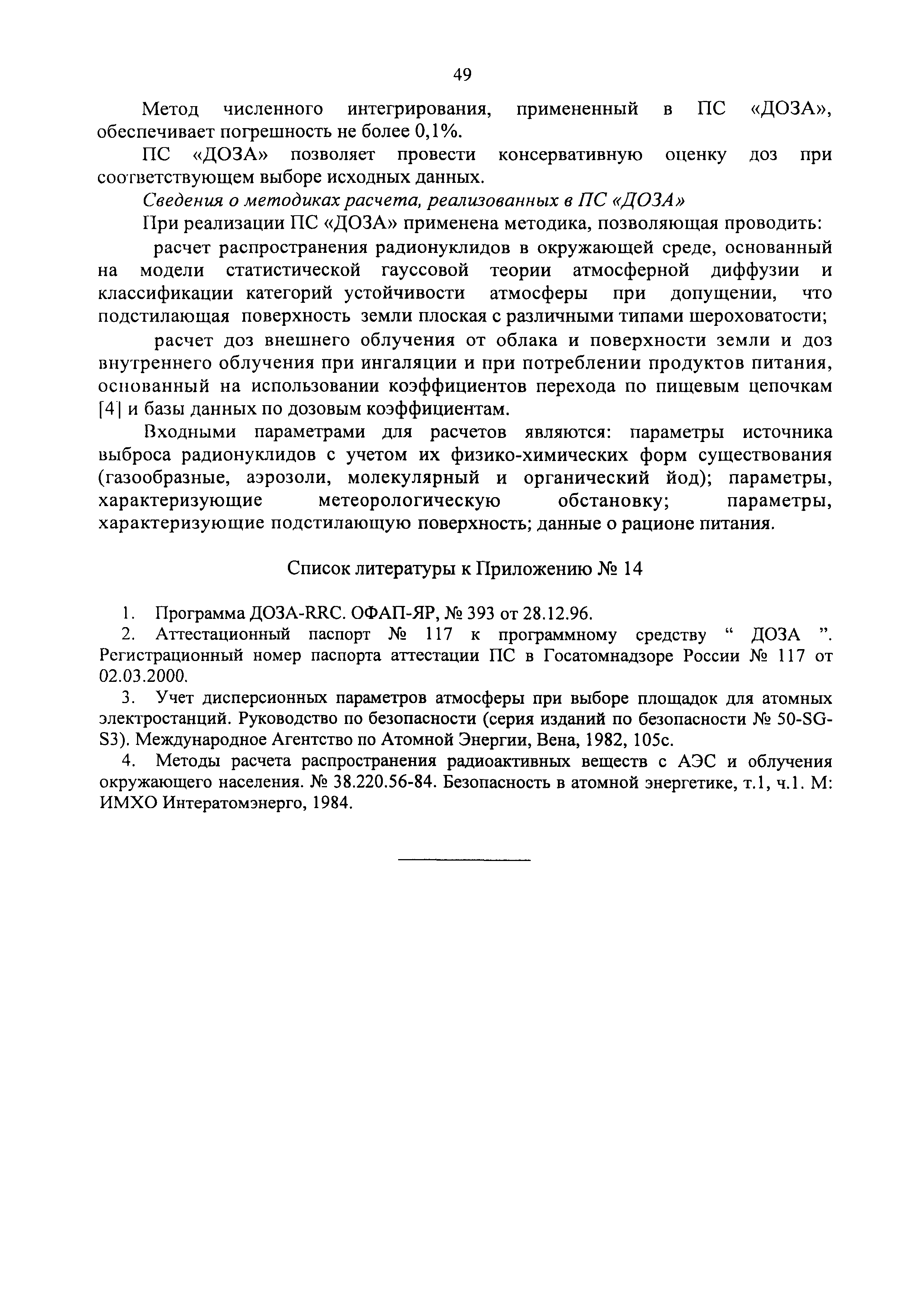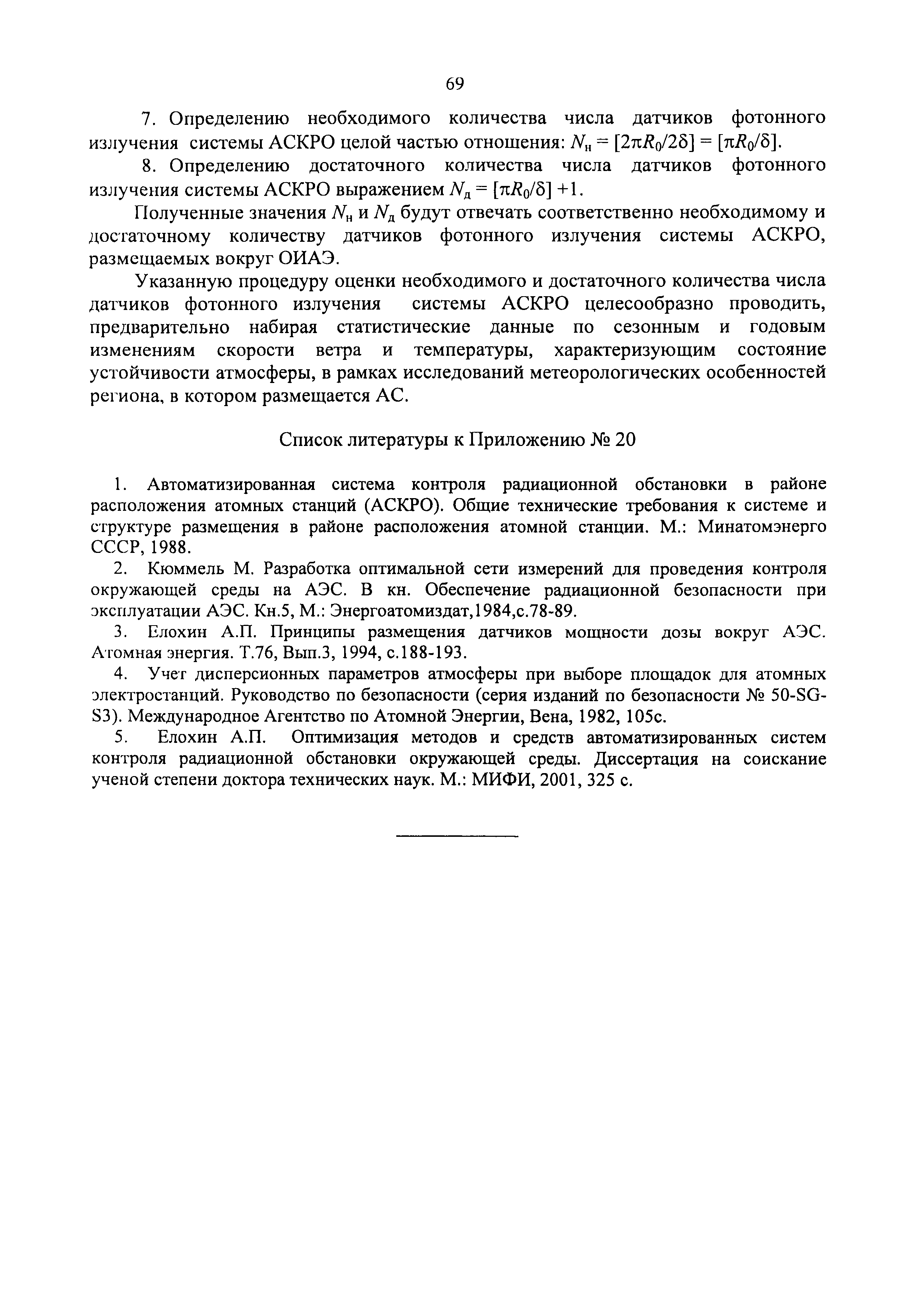 | Оглавление: | 1. Назначение и область применения 2. Рекомендации к составу и условиям работы АСКРО 3. Определение метеорологических параметров для оценки условий формирования радиационной обстановки на местности 4. Рекомендации по использованию моделей переноса радиоактивной примеси в атмосфере 5. Параметры модели 6. Методы прогнозирования 7. Условия необходимого и достаточного количества датчиков АСКРО, размещаемых на промплощадке и в СЗЗ ОИАЭ 8. Принцип размещения детекторов фотонного излучения АСКРО на промплощадке ив СЗЗ ОИАЭ 9. Уточнение величины Pв 10. Выбор датчика для уточнения величины Pв Приложение 1. Шероховатость подстилающей поверхности Приложение 2. Структурная схема состав АСКРО Приложение 3. Критерии, отвечающие условиям размещения постов радиационного контроля на промплощадке и в СЭЭ ОИАЭ Приложение 4. Методика обработки градиентных наблюдений Приложение 5. Модель пограничного слоя атмосферы Приложение 6. Скорость сухого осаждения Приложение 7. Постоянная вымывания осадками радиоактивной примеси Приложение 8. Постоянная распада радиоактивной примеси Приложение 9. Скорость гравитационного осаждения Приложение 10. Требования, предъявляемые к датчикам метеопараметров Приложение 11. ПС "RECASS" Приложение 12. ПС "SULTAN" Приложение 13. ПС "НОСТРАДАМУС" Приложение 14. ПС "ДОЗА" Приложение 15. ПС "GENGAUS" Приложение 16. Физические основы переноса примеси в атмосфере Приложение 17. Анализ математических моделей переноса примеси в атмосфере Приложение 18. Дифференциальная модель распространения радионуклидов в атмосфере Приложение 19. Нетрадиционные методы оценки радиоактивного загрязнения окружающей среды Приложение 20. Метод определения необходимого и достаточного количества датчиков АСКРО, размещаемых на промплощадке и в СЗЗ ОИАЭ Приложение 21. Принцип размещения детекторов фотонного излучения АСКРО на промплощадке и в СЗЗ ОИАЭ Приложение 22. Метод уточнения величины мощности выброса Приложение 23. Метод выбора наиболее оптимального датчика для нормировки |