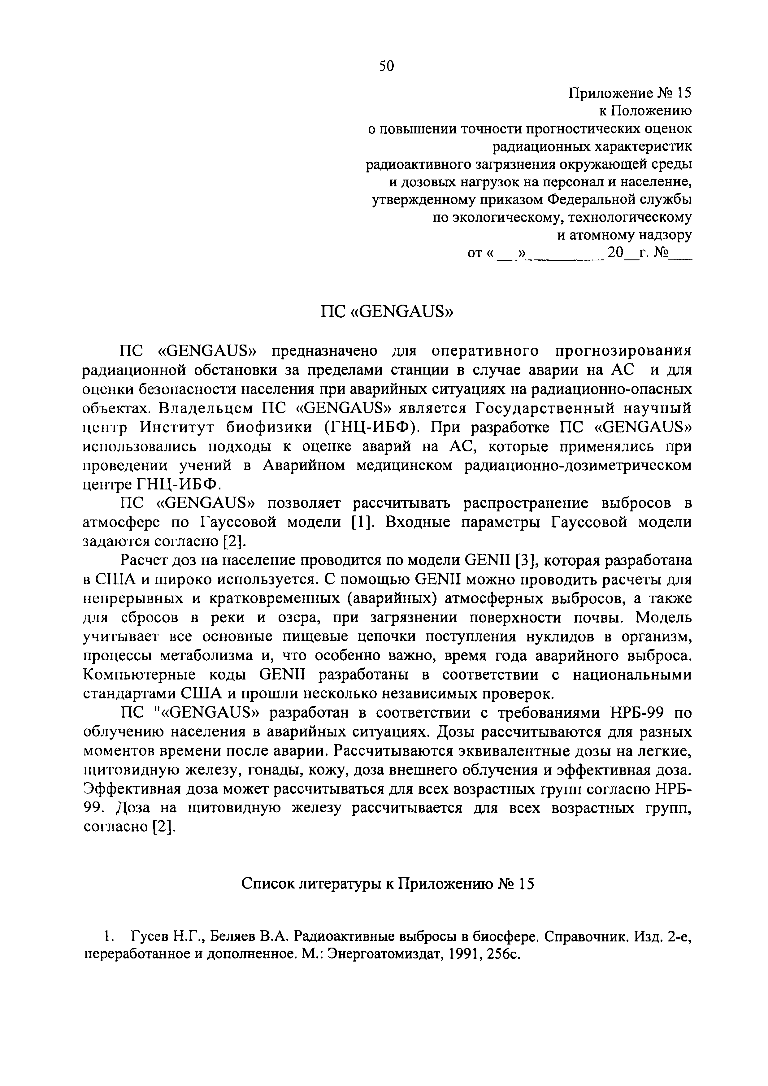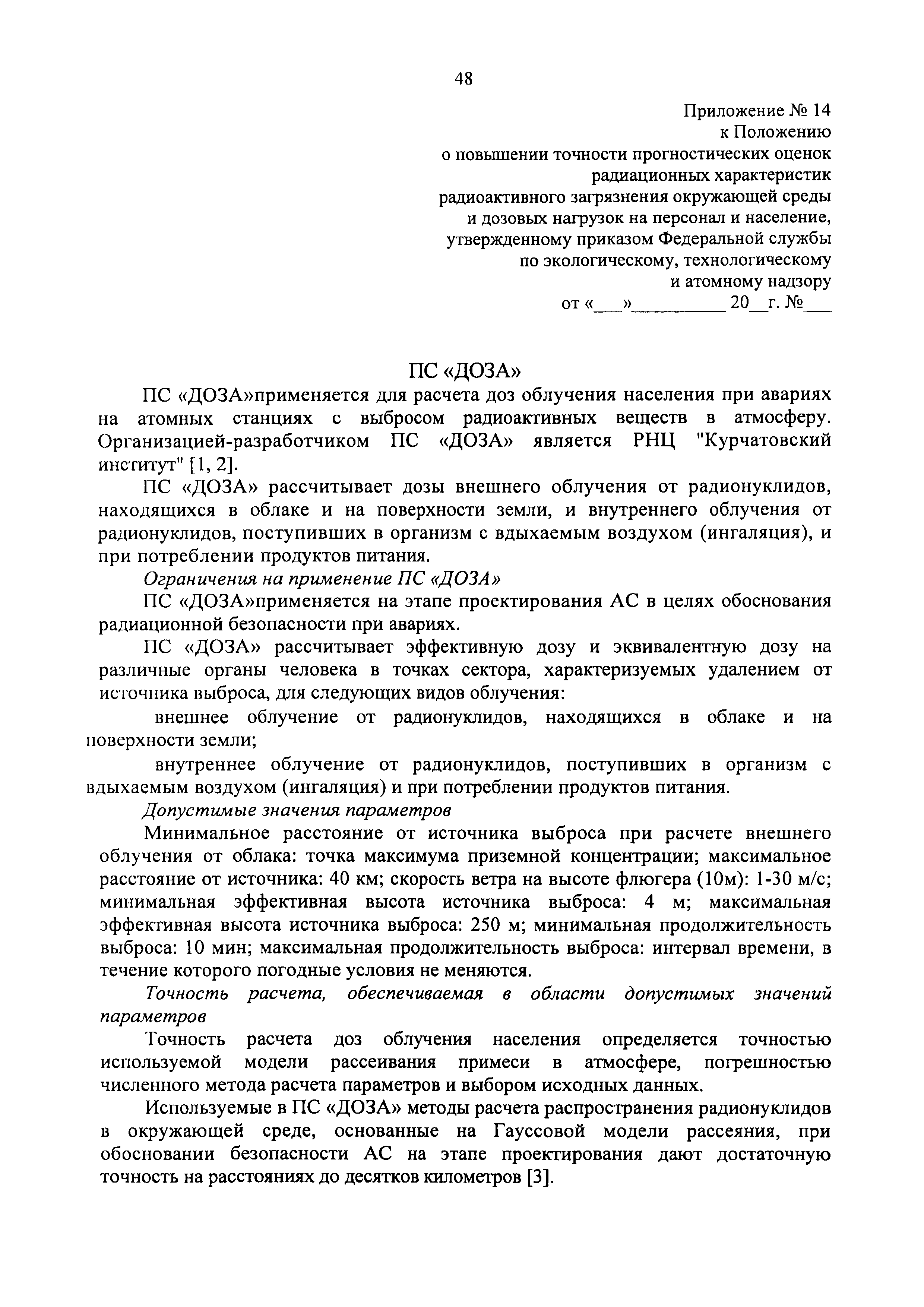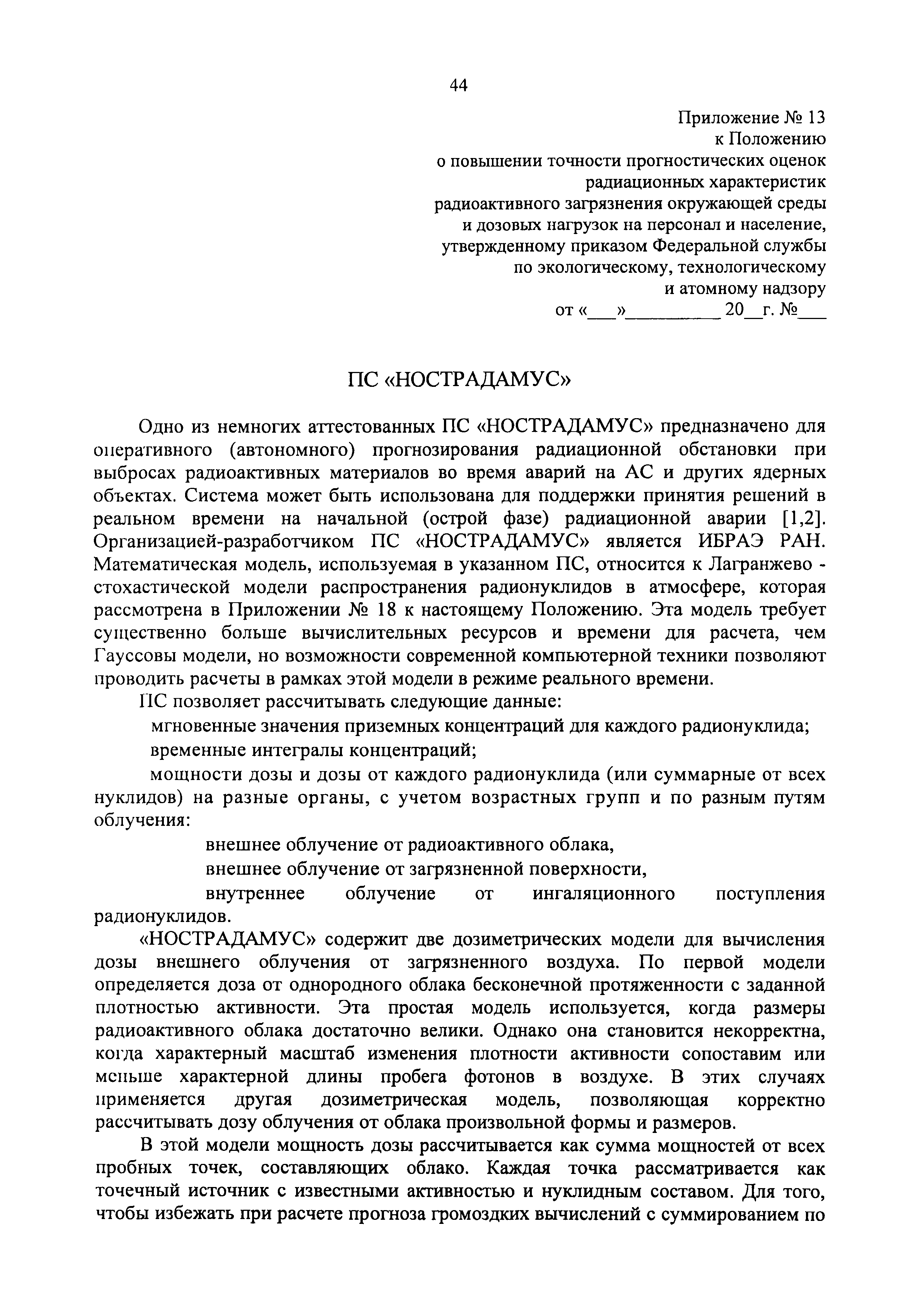 | Название рус.: | Положение о повышении точности прогностических оценок радиационных характеристик радиоактивного загрязнения окружающей среды и дозовых нагрузок на персонал и население |