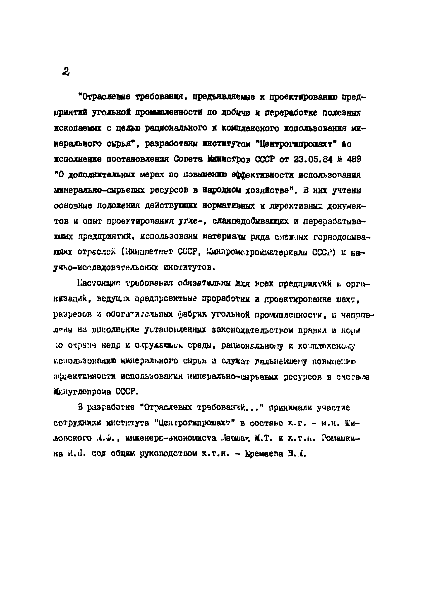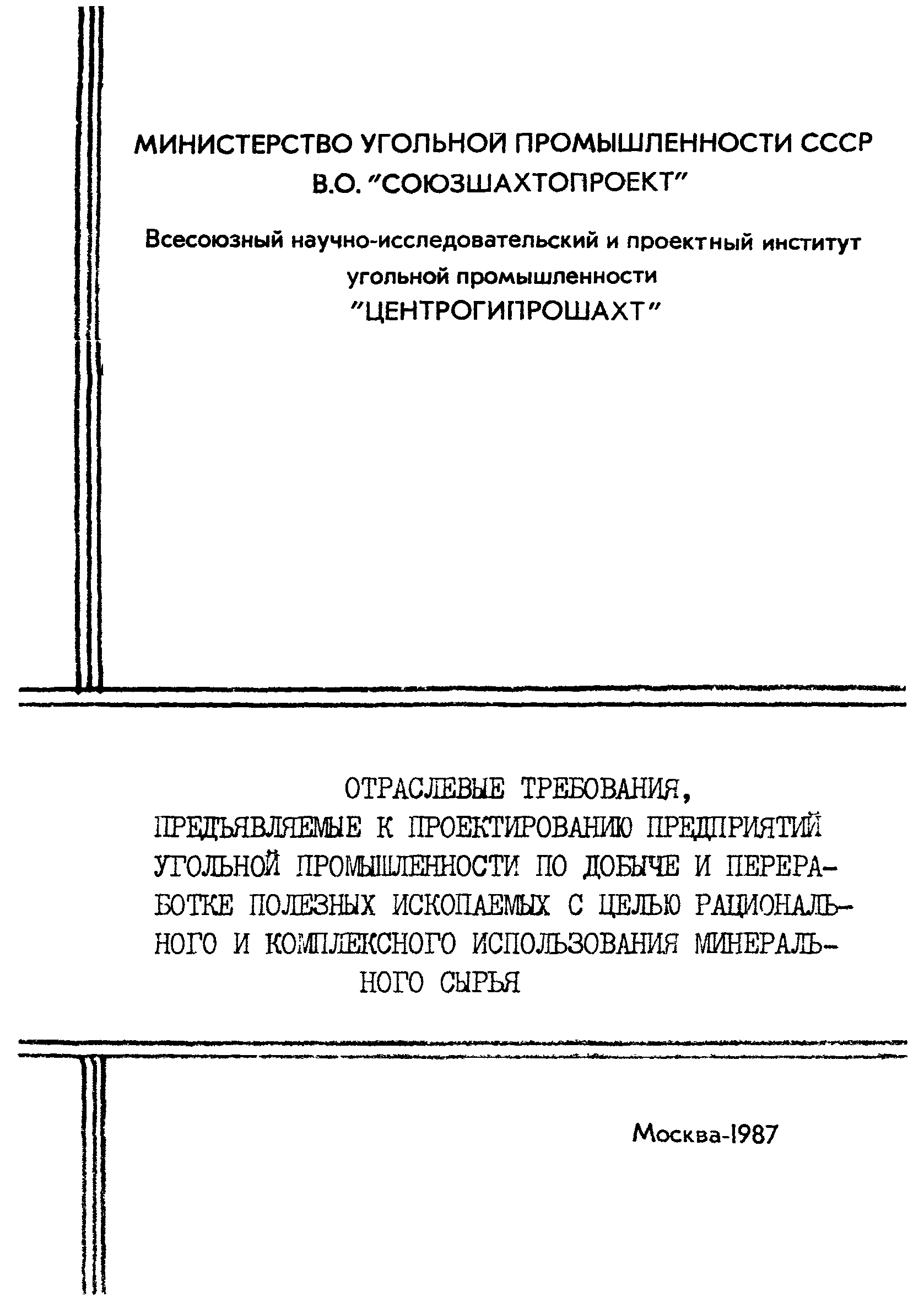 | Название рус.: | Отраслевые требования, предъявляемые к проектированию предприятий угольной промышленности по добыче и переработке полезных ископаемых с целью рационального и комплексного использования минерального сырья |