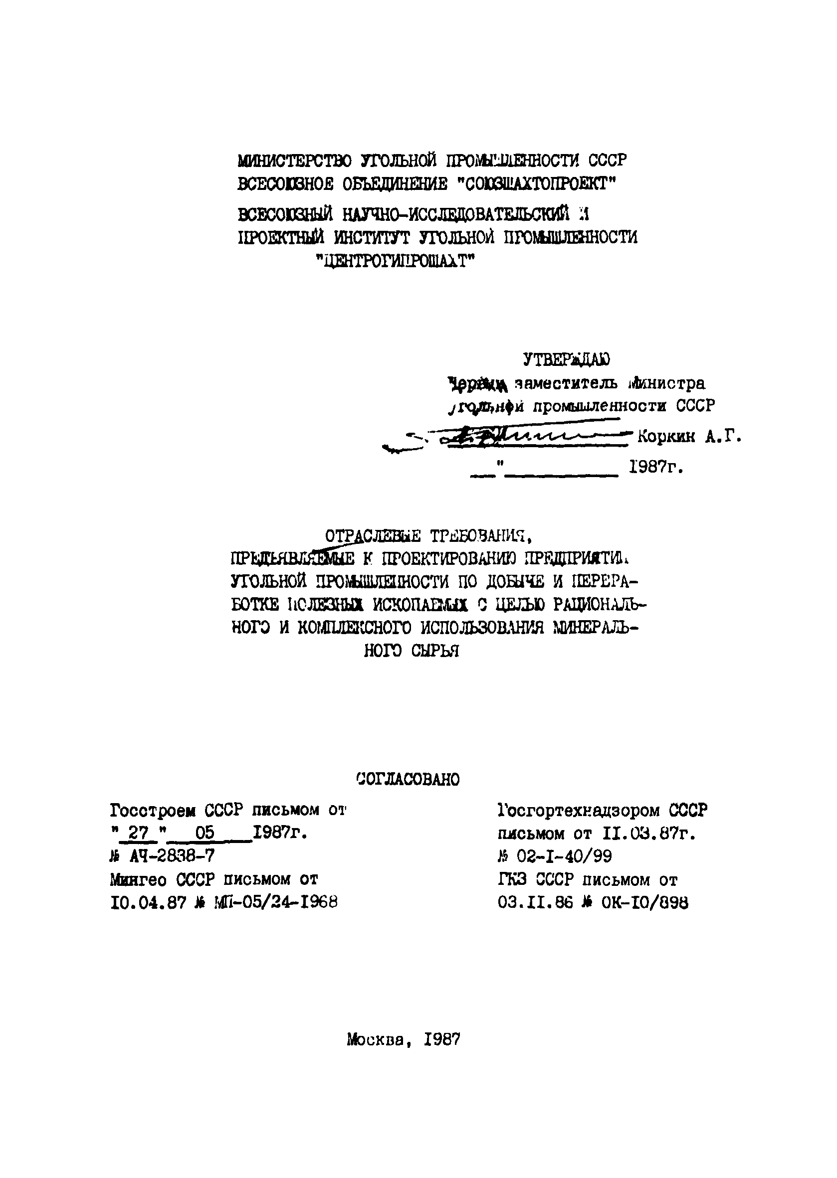 | Утверждён: | Министерство угольной промышленности СССР (USSR Ministry of the Coal Industry )