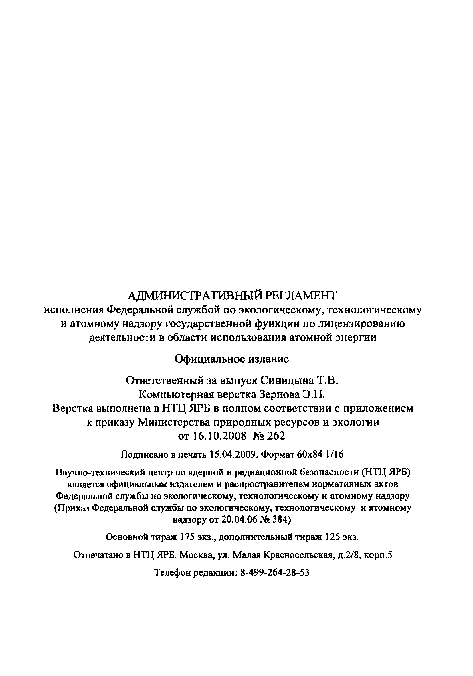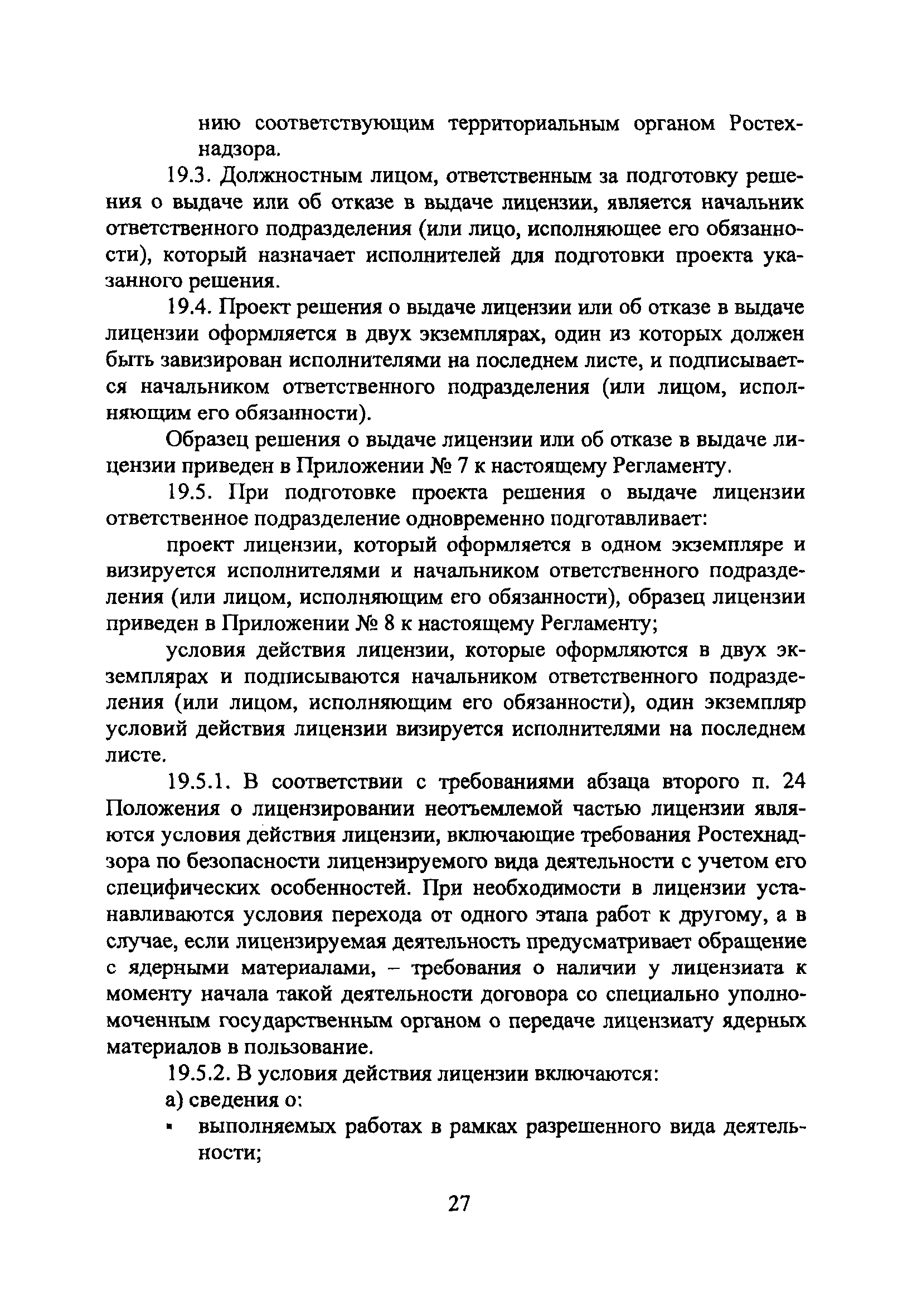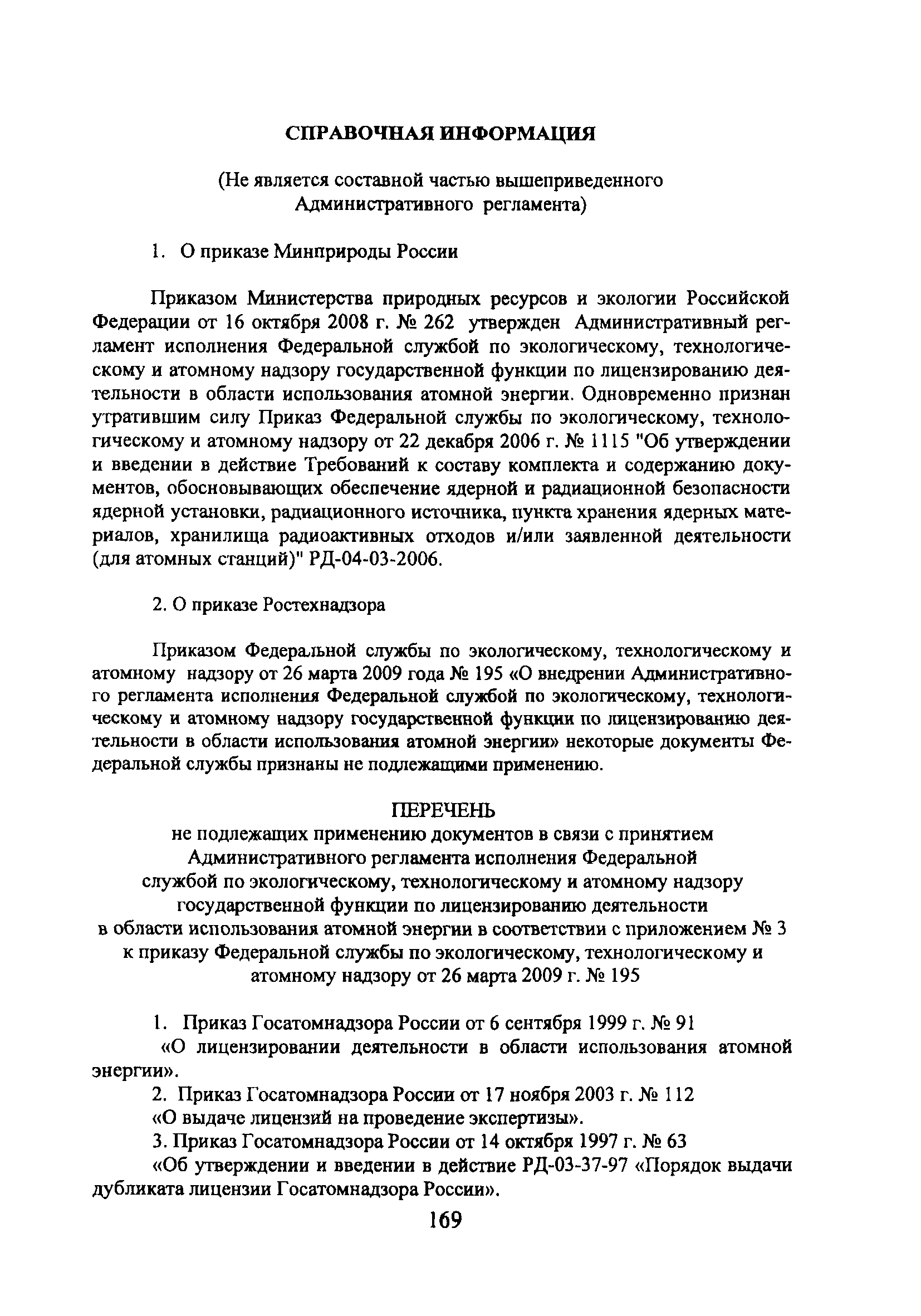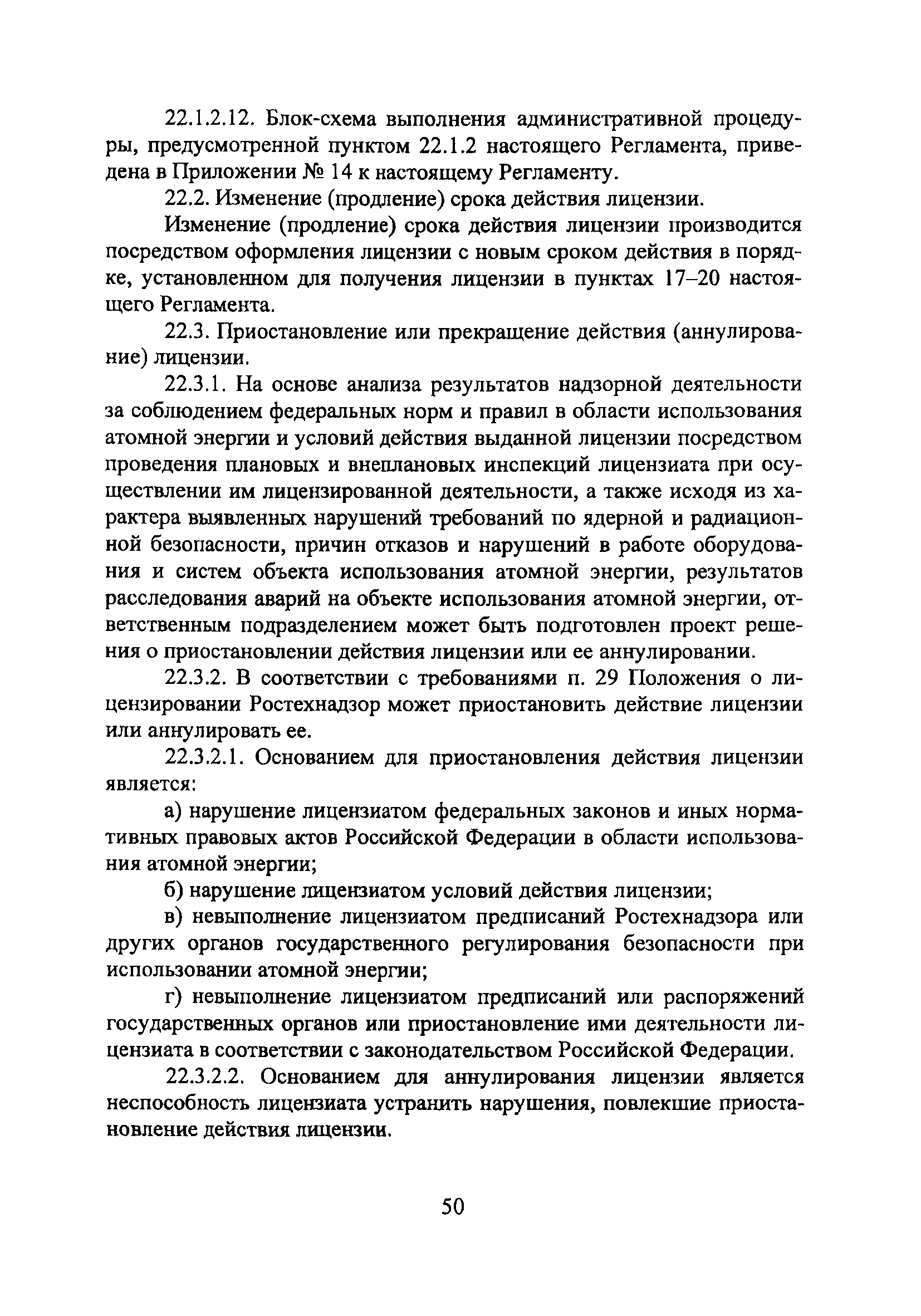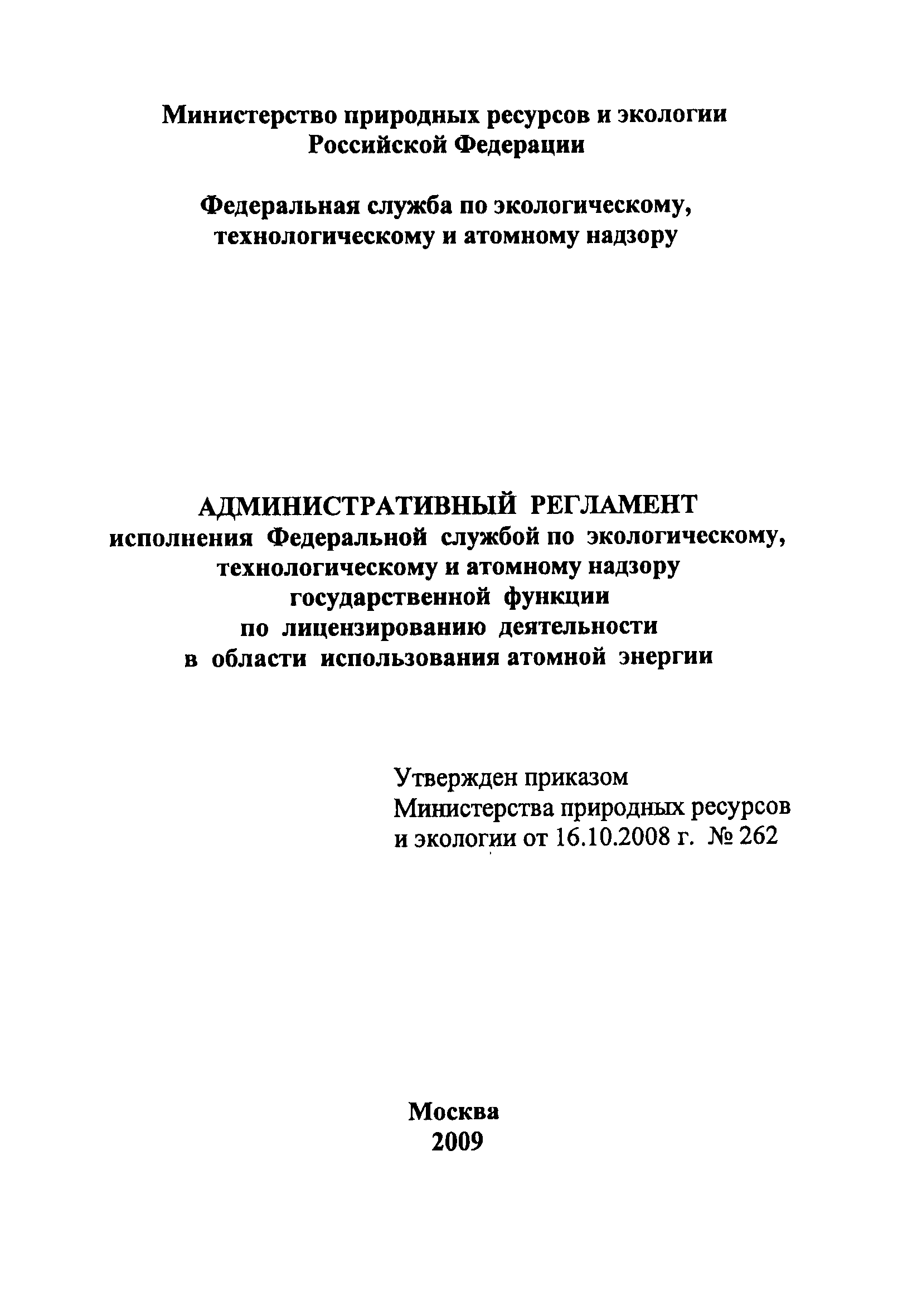 | Название рус.: | Административный регламент исполнения Федеральной службой по экологическому, технологическому и атомному надзору государственной функции по лицензированию деятельности в области использования атомной энергии |