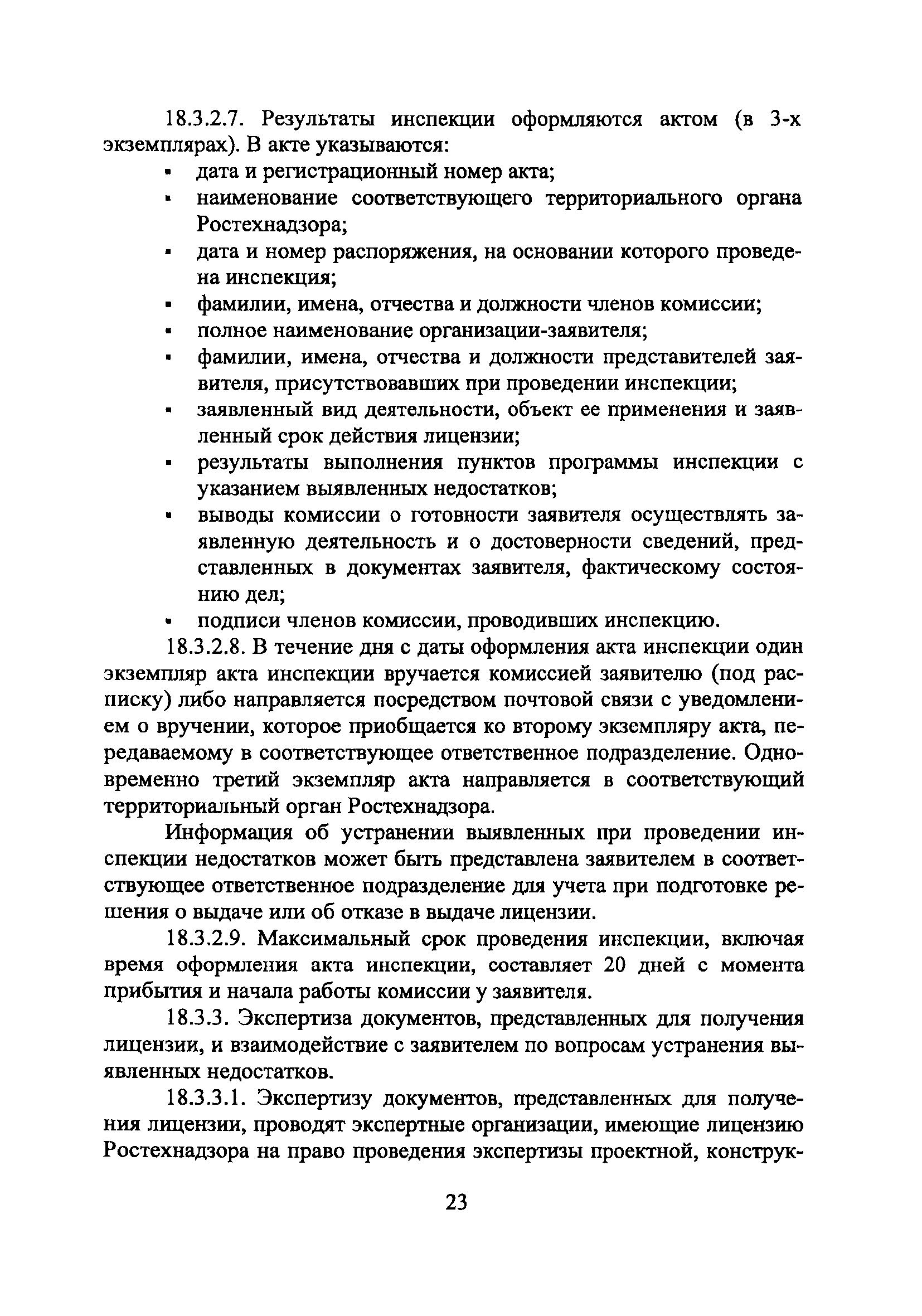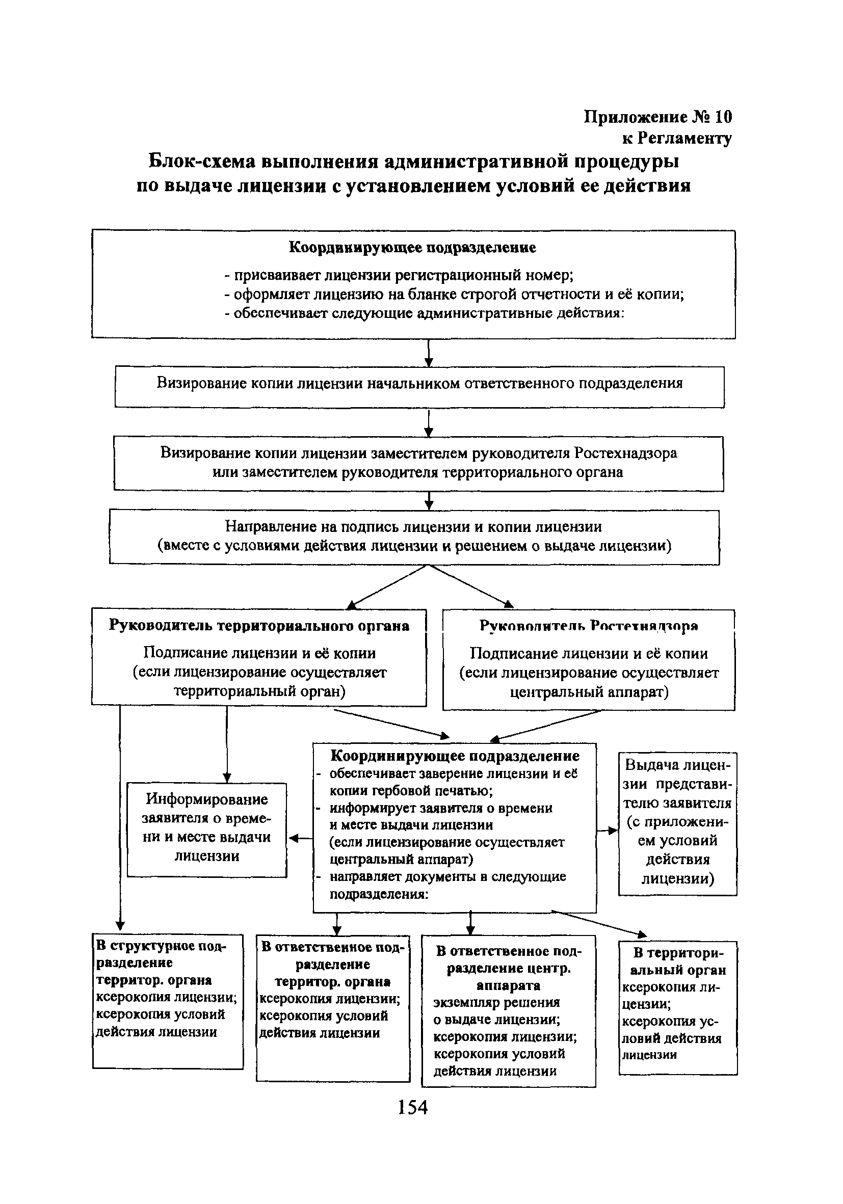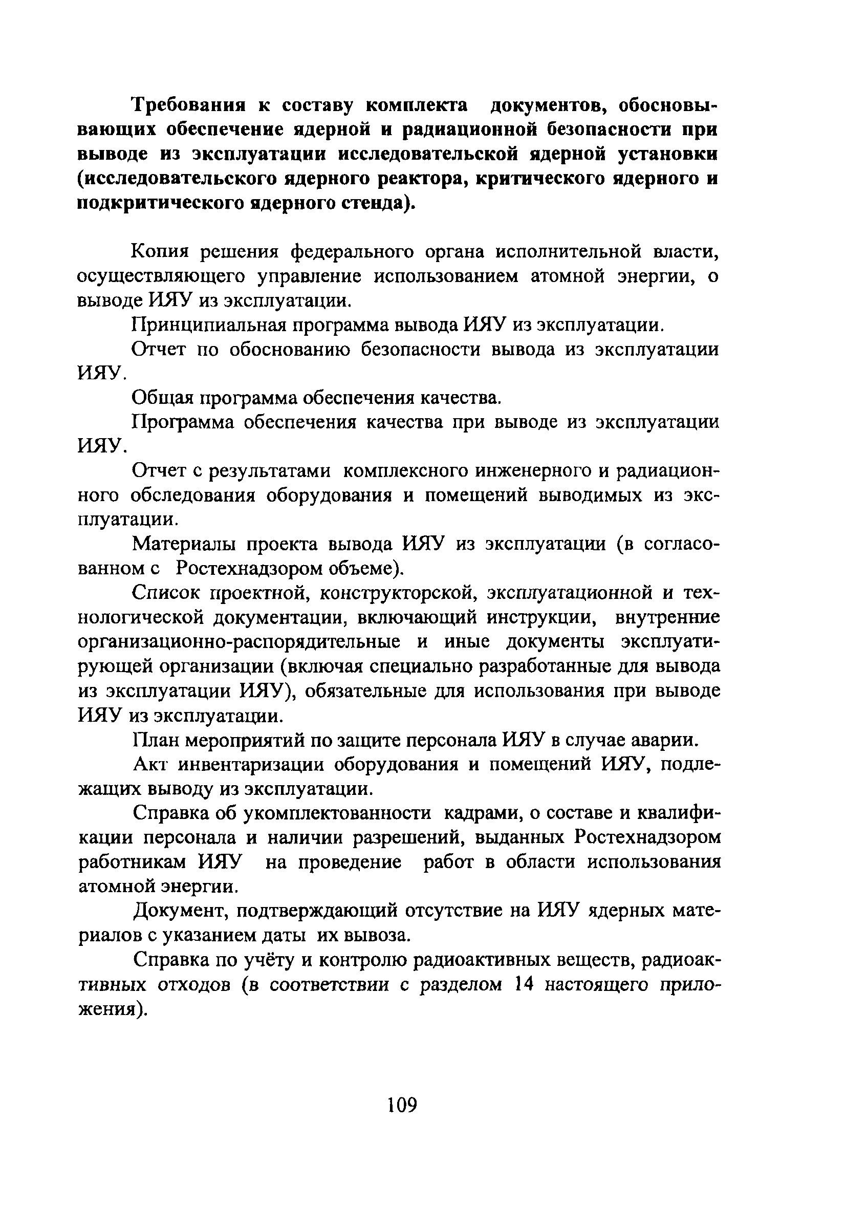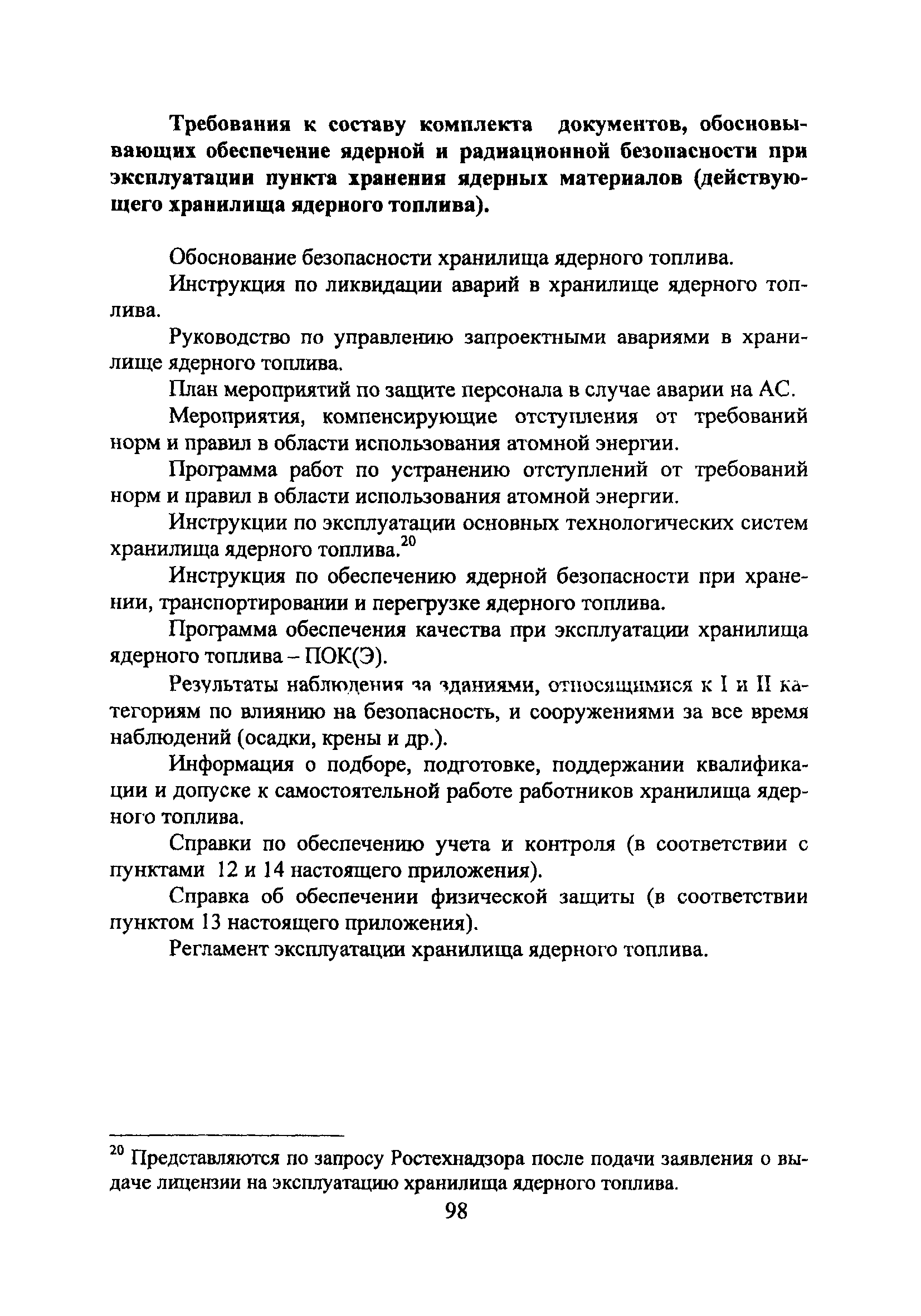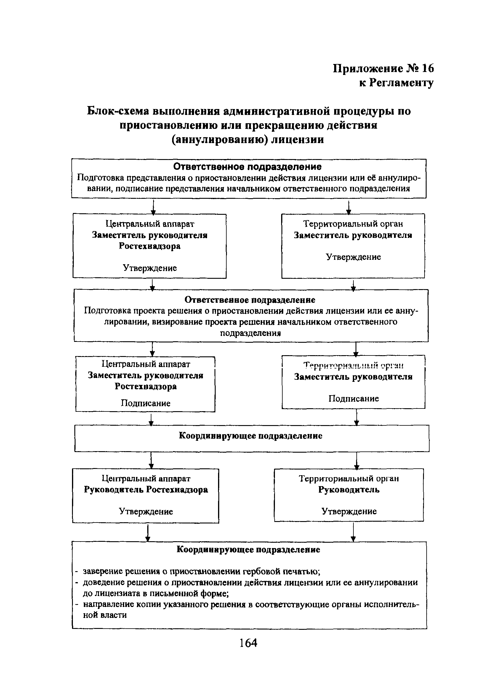 | Оглавление: | I. Общие положения II. Требования к порядку исполнения государственной функции по лицензированию деятельности в области использования атомной энергии III. Административные процедуры IV. Порядок и формы контроля за исполнением государственной функции V. Порядок обжалования действий (бездействия) должностного лица, а также принимаемого им решения при исполнении государственной функции по лицензированию деятельности в области использования атомной энергии Приложение № 1 Разграничение полномочий между центральным аппаратом Ростехнадзора и его территориальными органами при исполнении государственной функции по лицензированию деятельности в области использования атомной энергии и максимальные сроки проведения экспертизы документов, представленных для получения лицензии Приложение № 2 Перечень субъектов Российской Федерации, на территории которых территориальные органы Ростехнадзора исполняют государственную функцию по лицензированию деятельности в области использования атомной энергии Приложение № 3 Обобщенная информация о ходе рассмотрения заявлений на получение лицензий Приложение № 4 Требования к составу комплекта документов, обосновывающих обеспечение ядерной и радиационной безопасности ядерной установки, радиационного источника, пункта хранения и (или) заявленной деятельности, определенные Федеральной службой по экологическому, технологическому и атомному надзору в соответствии с п. 11 ж) Положения о лицензировании деятельности в области использования атомной энергии Приложение № 5 Блок-схема выполнения административной процедуры по рассмотрению заявления о выдаче лицензии и проведению предварительной проверки документов Приложение № 6 Блок-схема выполнения административной процедуры по рассмотрению документов, представленных для получения лицензии Приложение № 7 Образец решения о выдаче лицензии (об отказе в выдаче лицензии) Приложение № 8 Образец лицензии Приложение № 9 Блок-схема выполнения административной процедуры по принятию решения о выдаче или отказе в выдаче лицензии Приложение № 10 Блок-схема выполнения административной процедуры по выдаче лицензии с установлением условий ее действия Приложение № 11 Блок-схема выполнения административной процедуры по сопровождению выданной лицензии путем проведения инспекции с целью проверки выполнения условий действия лицензии Приложение № 12 Образец решения о внесении или об отказе во внесении изменения в условия действия лицензии Приложение № 13 Образец изменения условий действия лицензии Приложение № 14 Блок-схема выполнения административной процедуры по изменению условий действия лицензии Приложение № 15 Образец решения о приостановлении или прекращении действия (аннулировании) лицензии Приложение № 16 Блок-схема выполнения административной процедуры по приостановлению или прекращению действия (аннулированию) лицензии Приложение № 17 Образец решения о возобновлении лицензии Приложение № 18 Блок-схема выполнения административной процедуры по возобновлению действия лицензии Приложение № 19 Блок-схема выполнения административной процедуры по выдаче дубликата лицензии Справочная информация (не является составной частью вышеприведенного Административного регламента) |