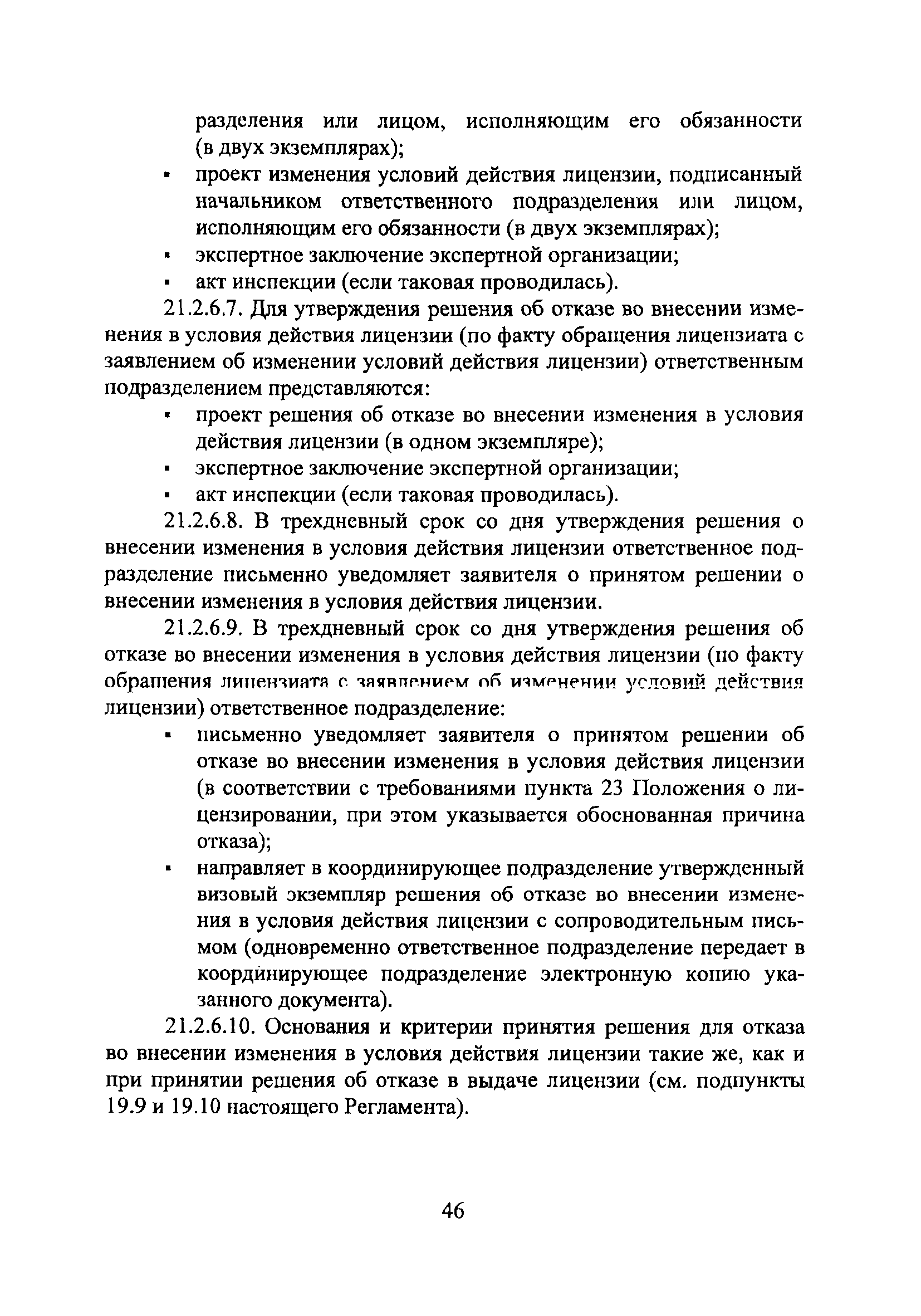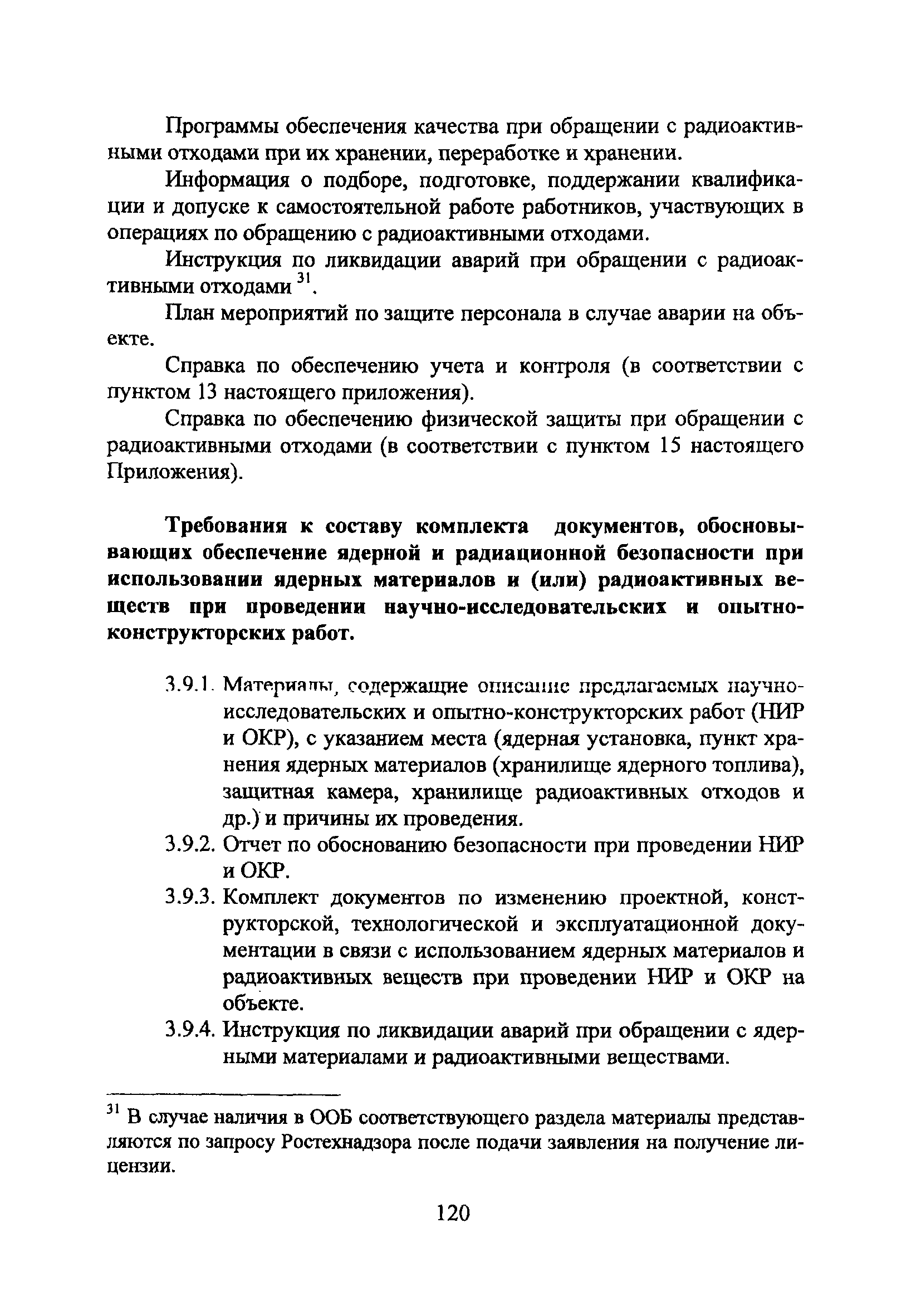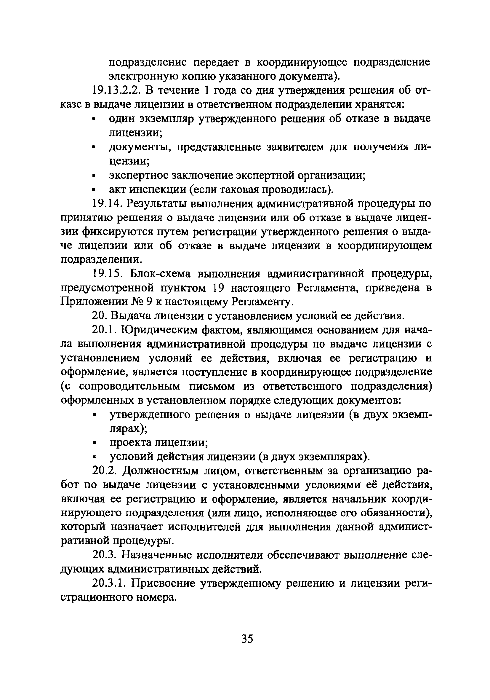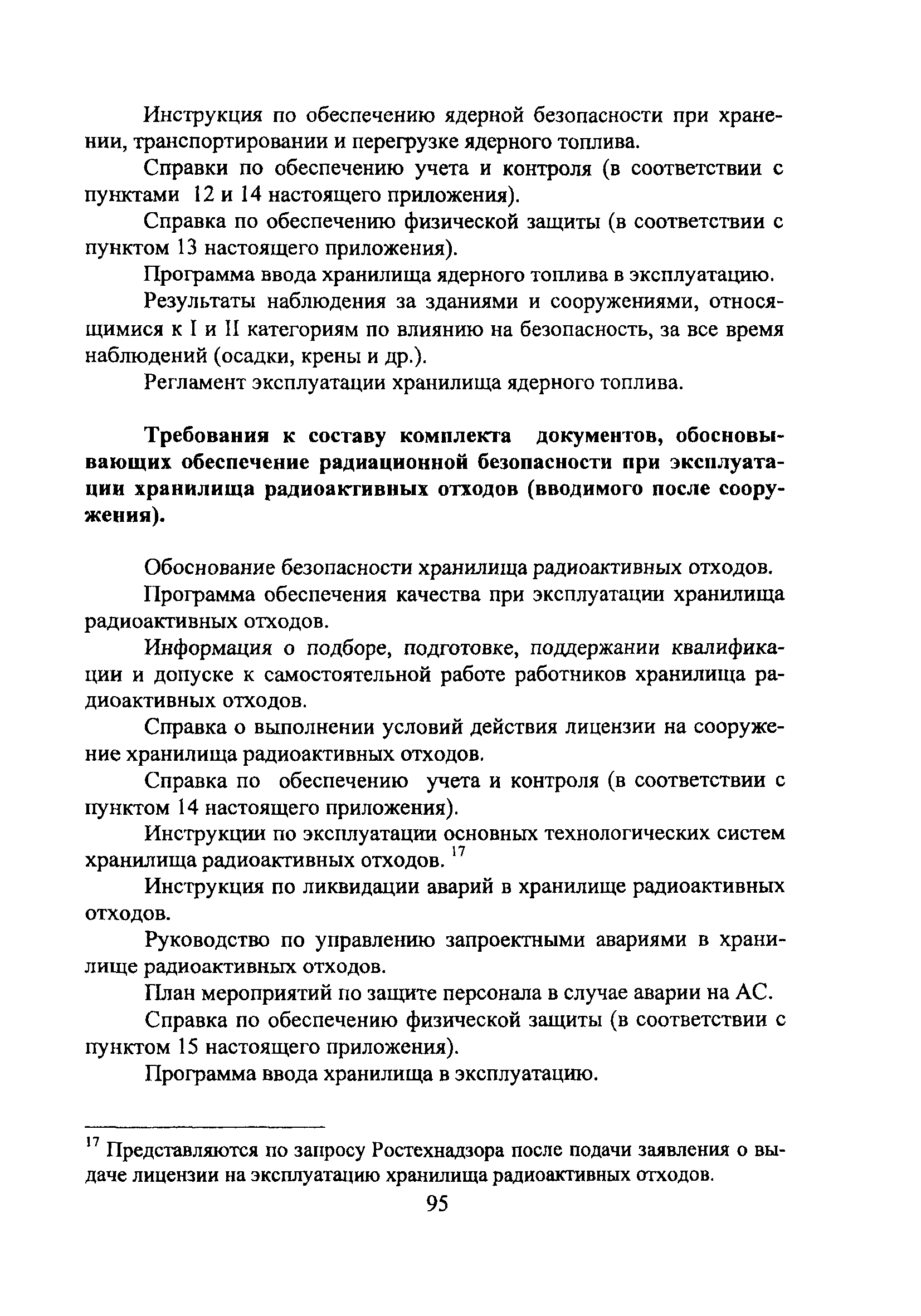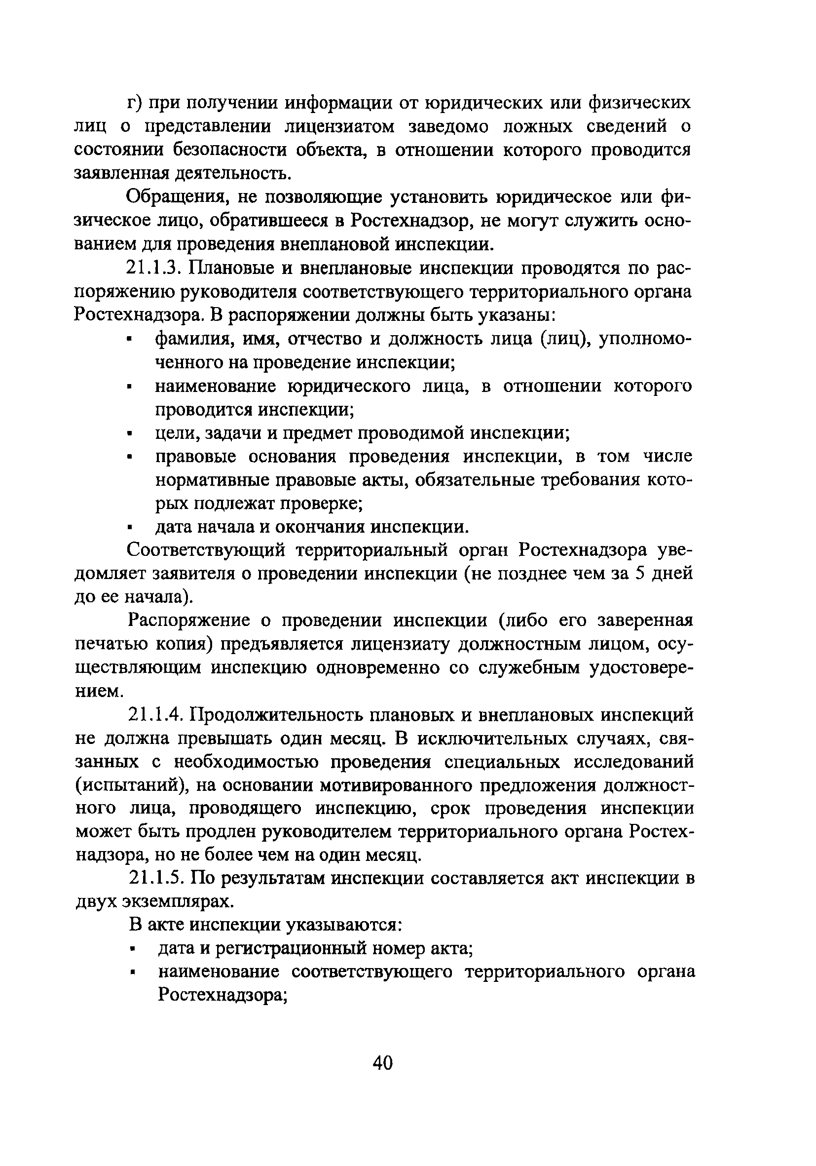 | Оглавление: | I. Общие положения II. Требования к порядку исполнения государственной функции по лицензированию деятельности в области использования атомной энергии III. Административные процедуры IV. Порядок и формы контроля за исполнением государственной функции V. Порядок обжалования действий (бездействия) должностного лица, а также принимаемого им решения при исполнении государственной функции по лицензированию деятельности в области использования атомной энергии Приложение № 1 Разграничение полномочий между центральным аппаратом Ростехнадзора и его территориальными органами при исполнении государственной функции по лицензированию деятельности в области использования атомной энергии и максимальные сроки проведения экспертизы документов, представленных для получения лицензии Приложение № 2 Перечень субъектов Российской Федерации, на территории которых территориальные органы Ростехнадзора исполняют государственную функцию по лицензированию деятельности в области использования атомной энергии Приложение № 3 Обобщенная информация о ходе рассмотрения заявлений на получение лицензий Приложение № 4 Требования к составу комплекта документов, обосновывающих обеспечение ядерной и радиационной безопасности ядерной установки, радиационного источника, пункта хранения и (или) заявленной деятельности, определенные Федеральной службой по экологическому, технологическому и атомному надзору в соответствии с п. 11 ж) Положения о лицензировании деятельности в области использования атомной энергии Приложение № 5 Блок-схема выполнения административной процедуры по рассмотрению заявления о выдаче лицензии и проведению предварительной проверки документов Приложение № 6 Блок-схема выполнения административной процедуры по рассмотрению документов, представленных для получения лицензии Приложение № 7 Образец решения о выдаче лицензии (об отказе в выдаче лицензии) Приложение № 8 Образец лицензии Приложение № 9 Блок-схема выполнения административной процедуры по принятию решения о выдаче или отказе в выдаче лицензии Приложение № 10 Блок-схема выполнения административной процедуры по выдаче лицензии с установлением условий ее действия Приложение № 11 Блок-схема выполнения административной процедуры по сопровождению выданной лицензии путем проведения инспекции с целью проверки выполнения условий действия лицензии Приложение № 12 Образец решения о внесении или об отказе во внесении изменения в условия действия лицензии Приложение № 13 Образец изменения условий действия лицензии Приложение № 14 Блок-схема выполнения административной процедуры по изменению условий действия лицензии Приложение № 15 Образец решения о приостановлении или прекращении действия (аннулировании) лицензии Приложение № 16 Блок-схема выполнения административной процедуры по приостановлению или прекращению действия (аннулированию) лицензии Приложение № 17 Образец решения о возобновлении лицензии Приложение № 18 Блок-схема выполнения административной процедуры по возобновлению действия лицензии Приложение № 19 Блок-схема выполнения административной процедуры по выдаче дубликата лицензии Справочная информация (не является составной частью вышеприведенного Административного регламента) |