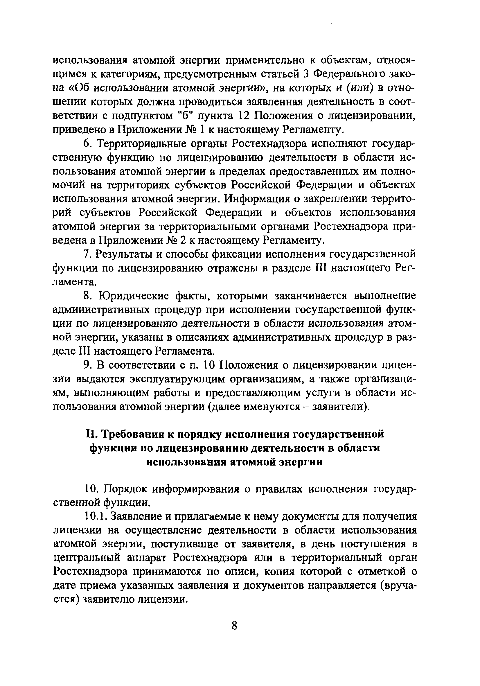 | Область применения: | Административный регламент устанавливает порядок исполнения государственной функции по лицензированию деятельности в области использования атомной энергии. |