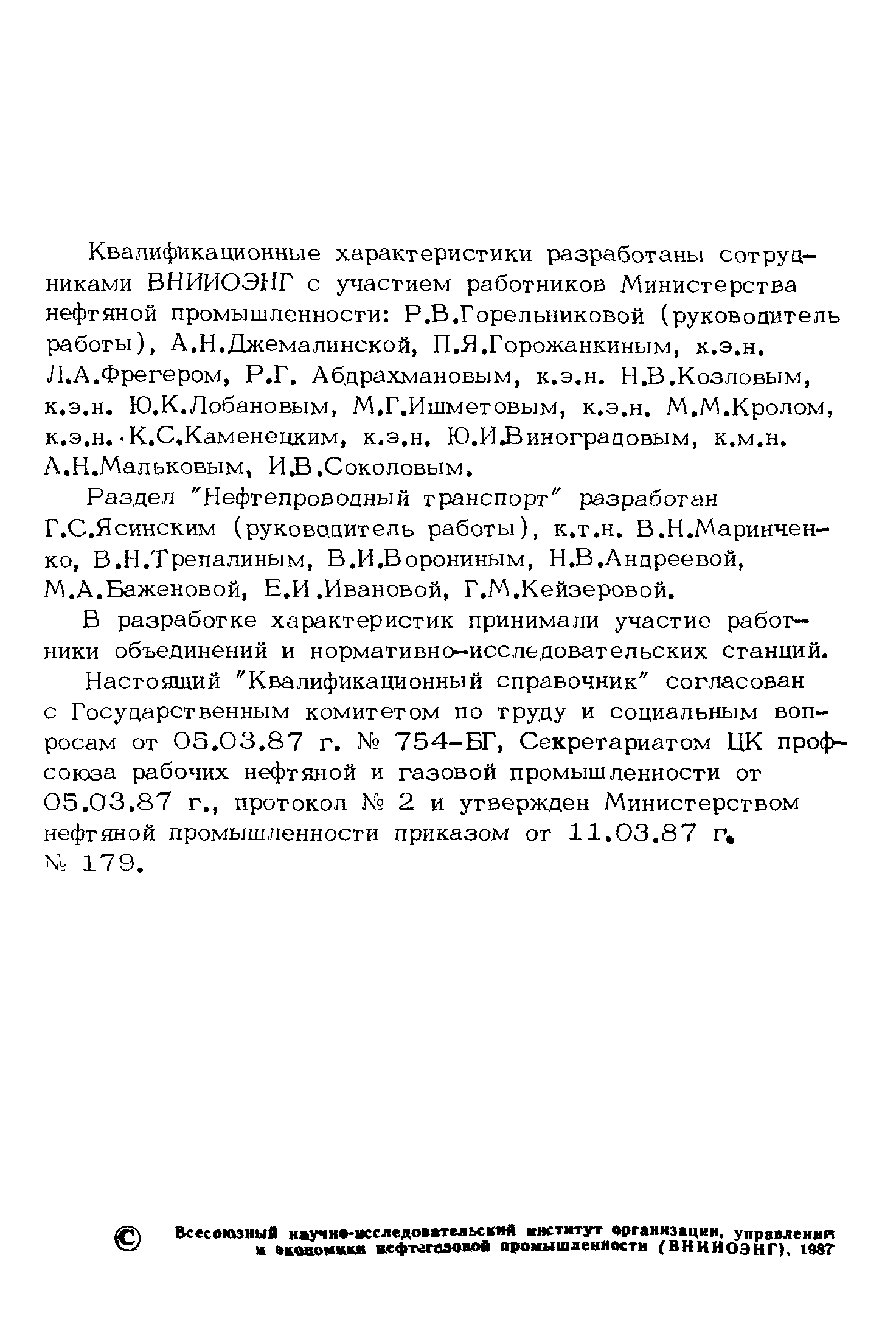 | Принят: | 05.03.1987 Государственный комитет по труду и социальным вопросам (754-БГ) 05.03.1987 Секретариат ЦК профсоюза рабочих нефтяной и газовой промышленности (2)