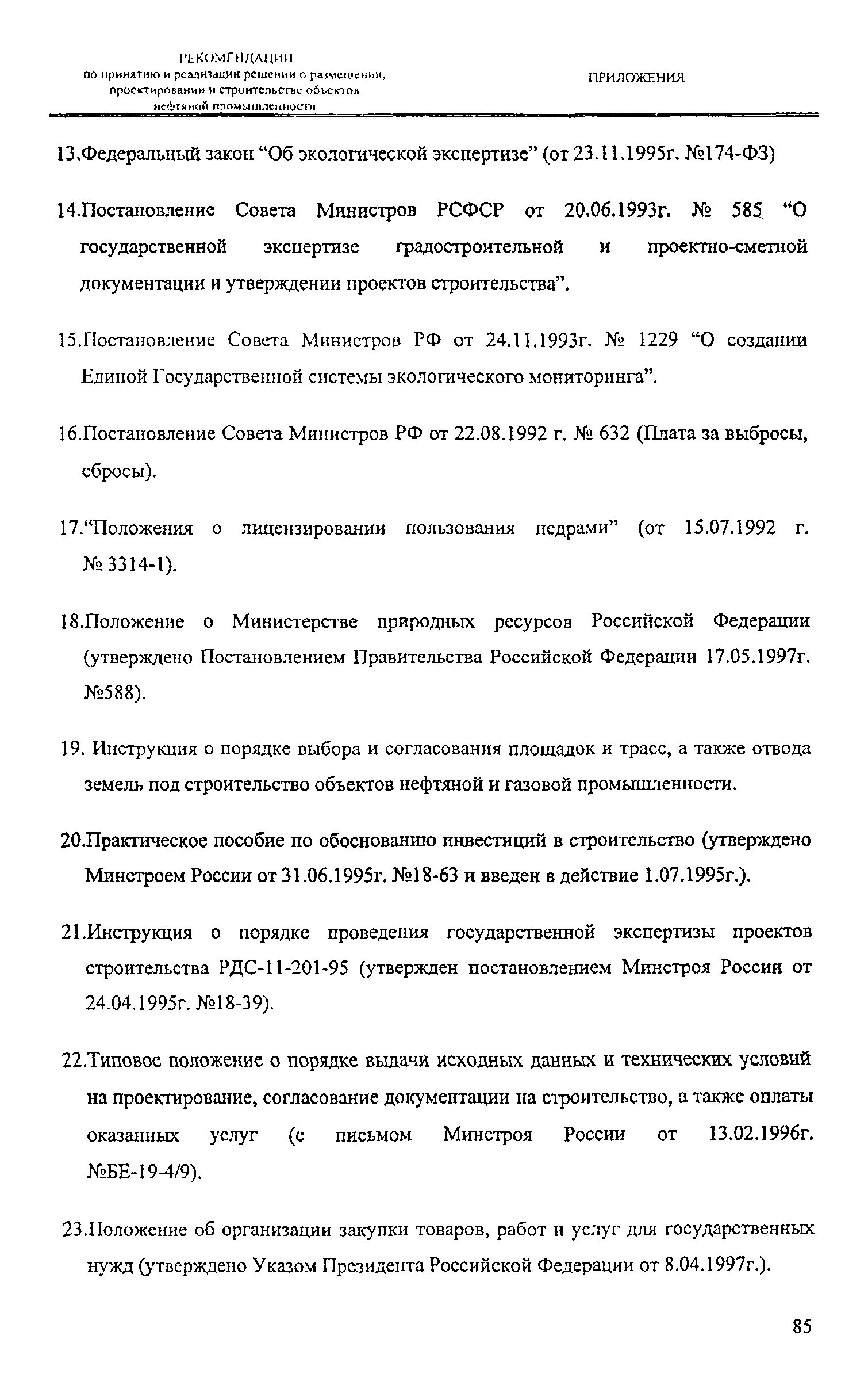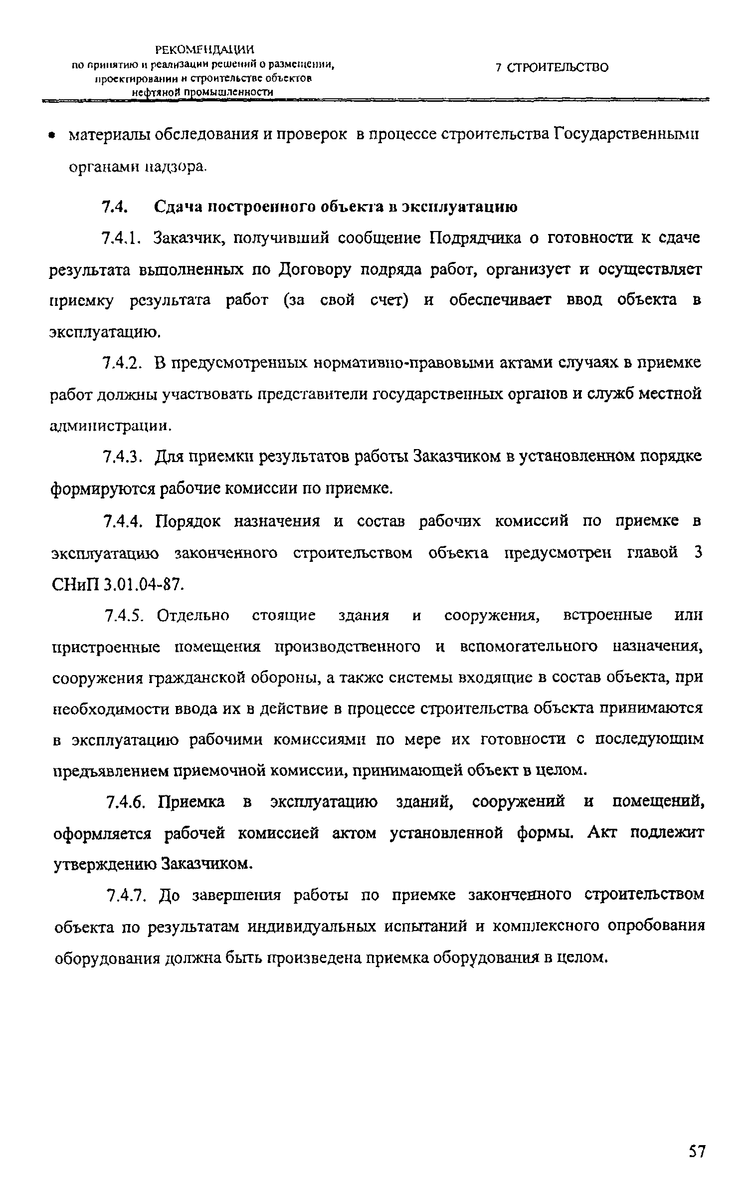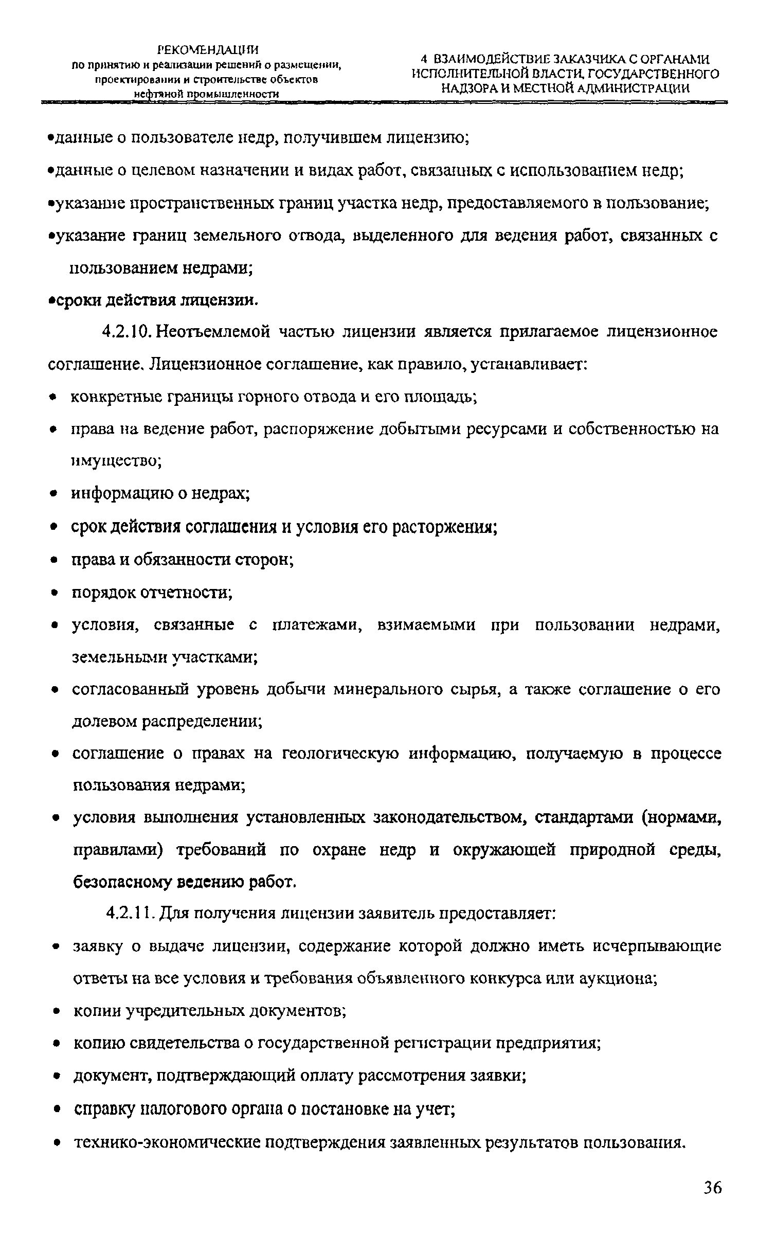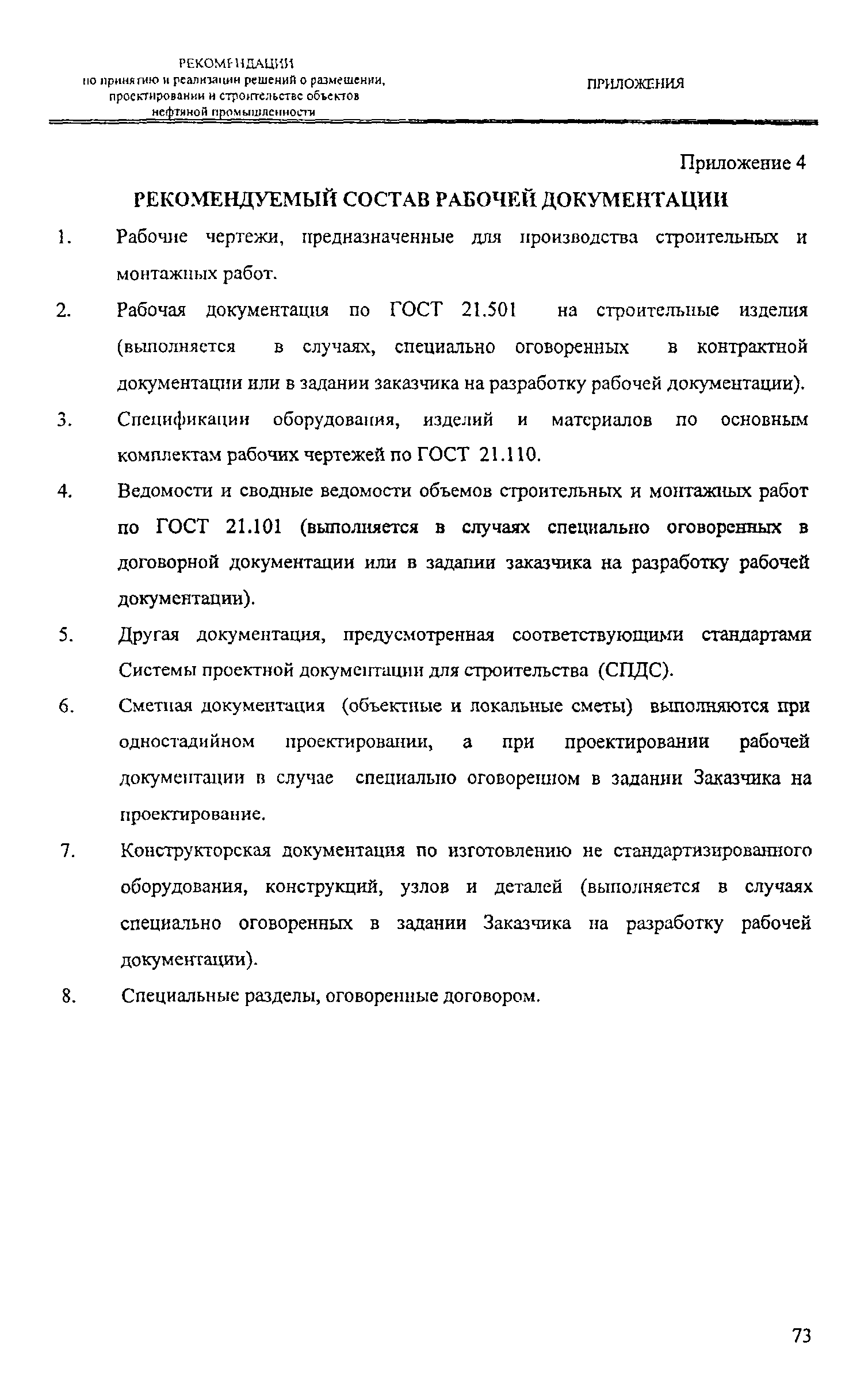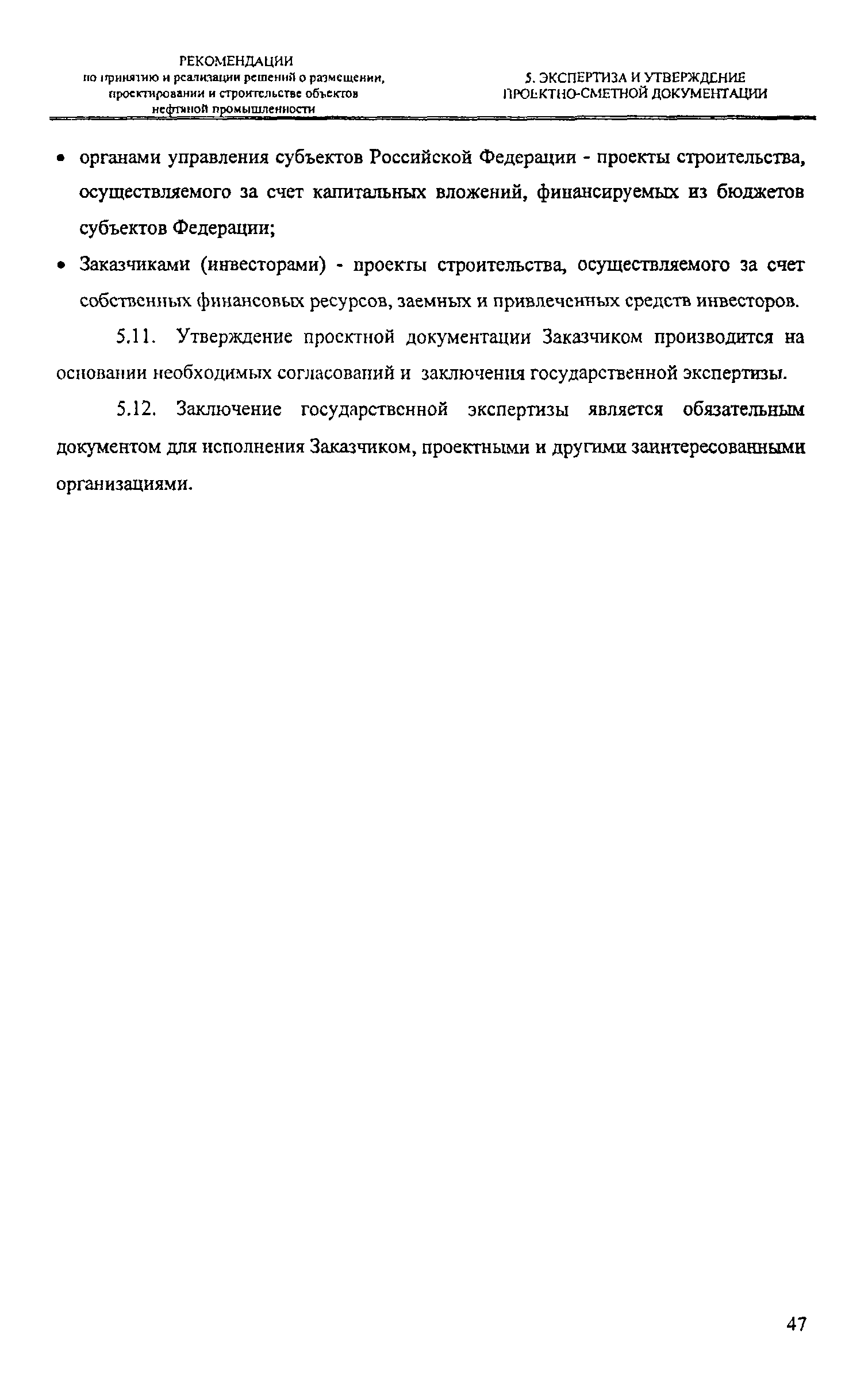 Временные рекомендации по принятию и реализации решений о размещении, проектировании и строительстве объектов нефтяной промышленности| Статус: | действует | | Название рус.: | Временные рекомендации по принятию и реализации решений о размещении, проектировании и строительстве объектов нефтяной промышленности | | Дата добавления в базу: | 01.09.2013 | | Дата актуализации: | 01.01.2021 | | Дата введения: | 01.01.1998 | | Область применения: | "Рекомендации" определяют порядок действий и состав работ, подлежащих выполнению на разных стадиях Заказчиком, Проектировщиком, Подрядчиком, иными юридическими и физическими лицами - участниками инвестиционного процесса в ходе реализации инвестиционных проектов по строительству объектов нефтедобычи и нефтепродуктообеспечения, независимо от их форм собственности и принадлежности. | | Оглавление: | Введение 1 Область применения 2 Общие положения 3 Проектная подготовка строительства 4 Взаимодействие Заказчика с органами исполнительной власти, государственного надзора и местной администрации 5 Экспертиза и утверждение проектно-сметной документации 6 Подрядны еторги (тендеры) 7 Строительство Приложение | | Разработан: | АО НГС-Оргпроектэкономика (NGS-Orgprojecteconomika AO )