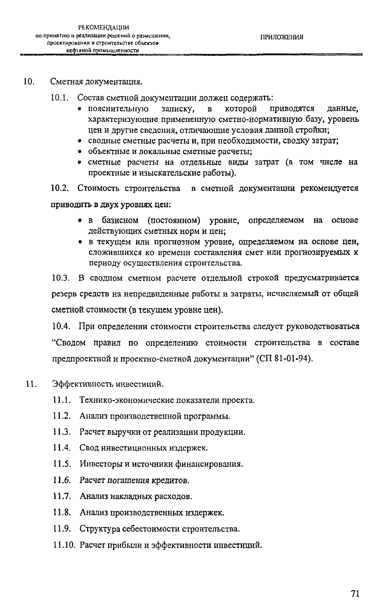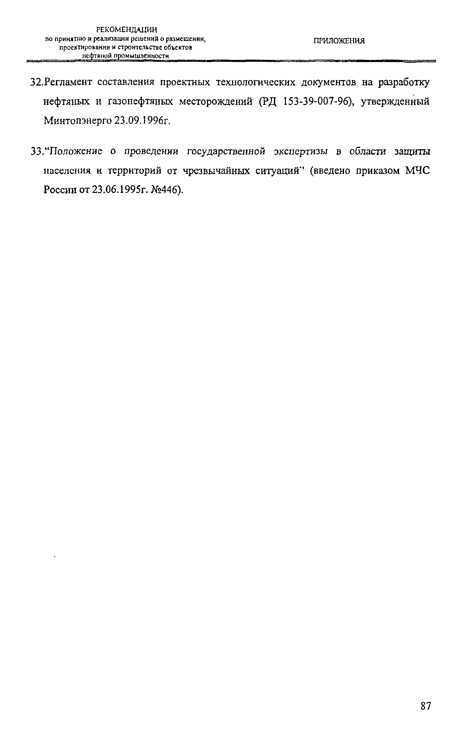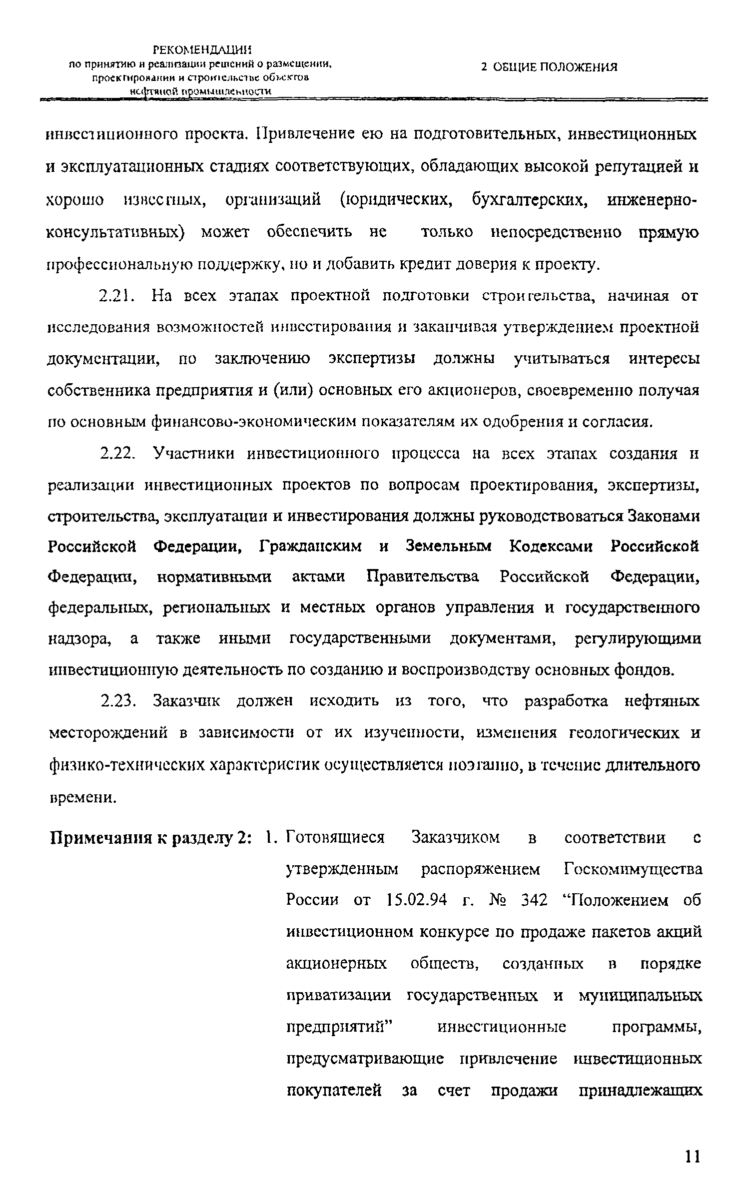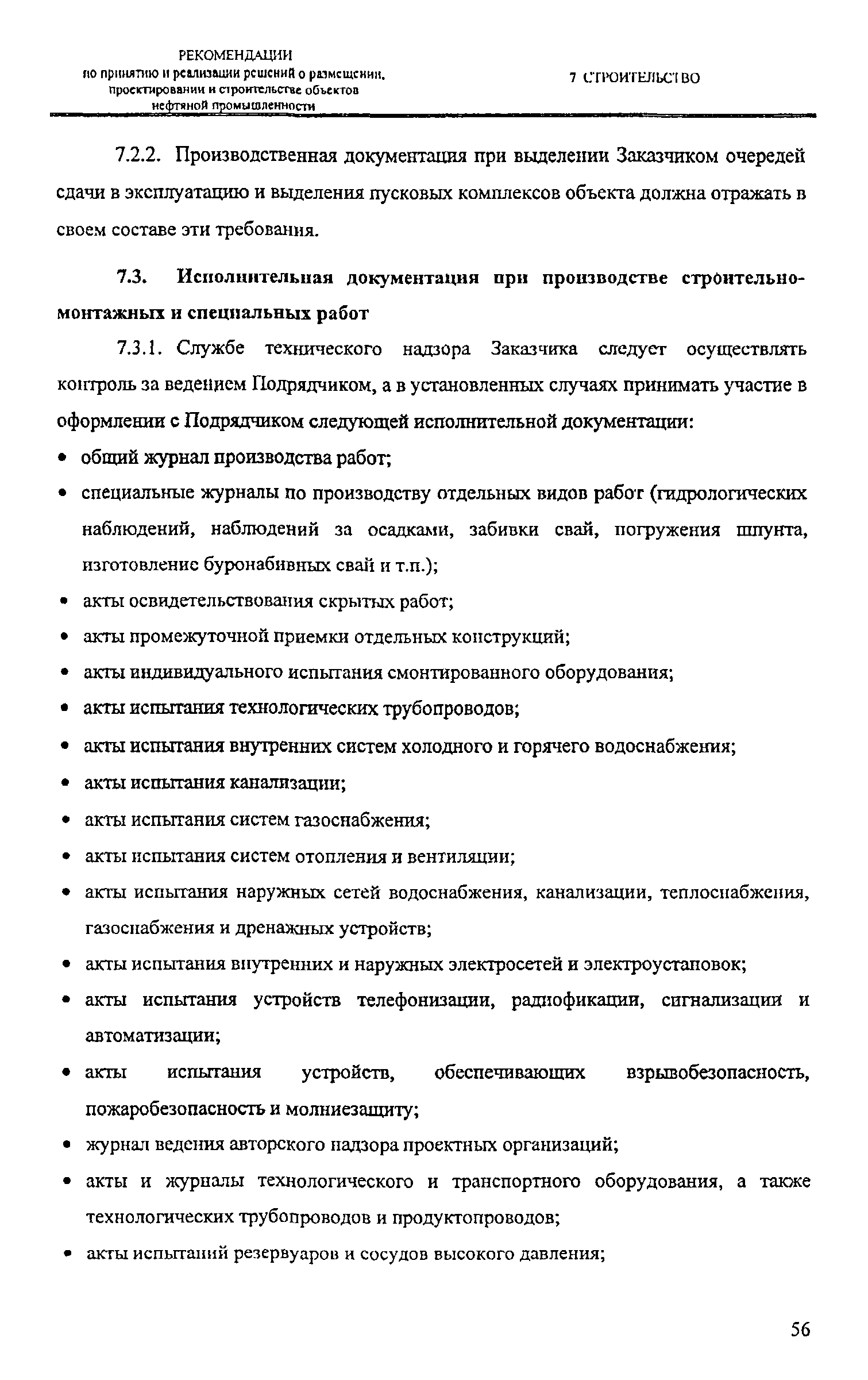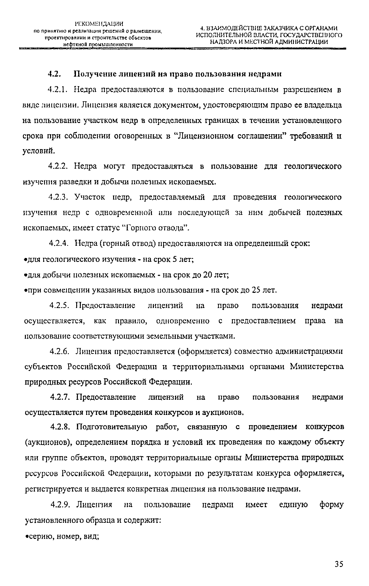 Временные рекомендации по принятию и реализации решений о размещении, проектировании и строительстве объектов нефтяной промышленности| Статус: | действует | | Название рус.: | Временные рекомендации по принятию и реализации решений о размещении, проектировании и строительстве объектов нефтяной промышленности | | Дата добавления в базу: | 01.09.2013 | | Дата актуализации: | 01.01.2021 | | Дата введения: | 01.01.1998 | | Область применения: | "Рекомендации" определяют порядок действий и состав работ, подлежащих выполнению на разных стадиях Заказчиком, Проектировщиком, Подрядчиком, иными юридическими и физическими лицами - участниками инвестиционного процесса в ходе реализации инвестиционных проектов по строительству объектов нефтедобычи и нефтепродуктообеспечения, независимо от их форм собственности и принадлежности. | | Оглавление: | Введение 1 Область применения 2 Общие положения 3 Проектная подготовка строительства 4 Взаимодействие Заказчика с органами исполнительной власти, государственного надзора и местной администрации 5 Экспертиза и утверждение проектно-сметной документации 6 Подрядны еторги (тендеры) 7 Строительство Приложение | | Разработан: | АО НГС-Оргпроектэкономика (NGS-Orgprojecteconomika AO )