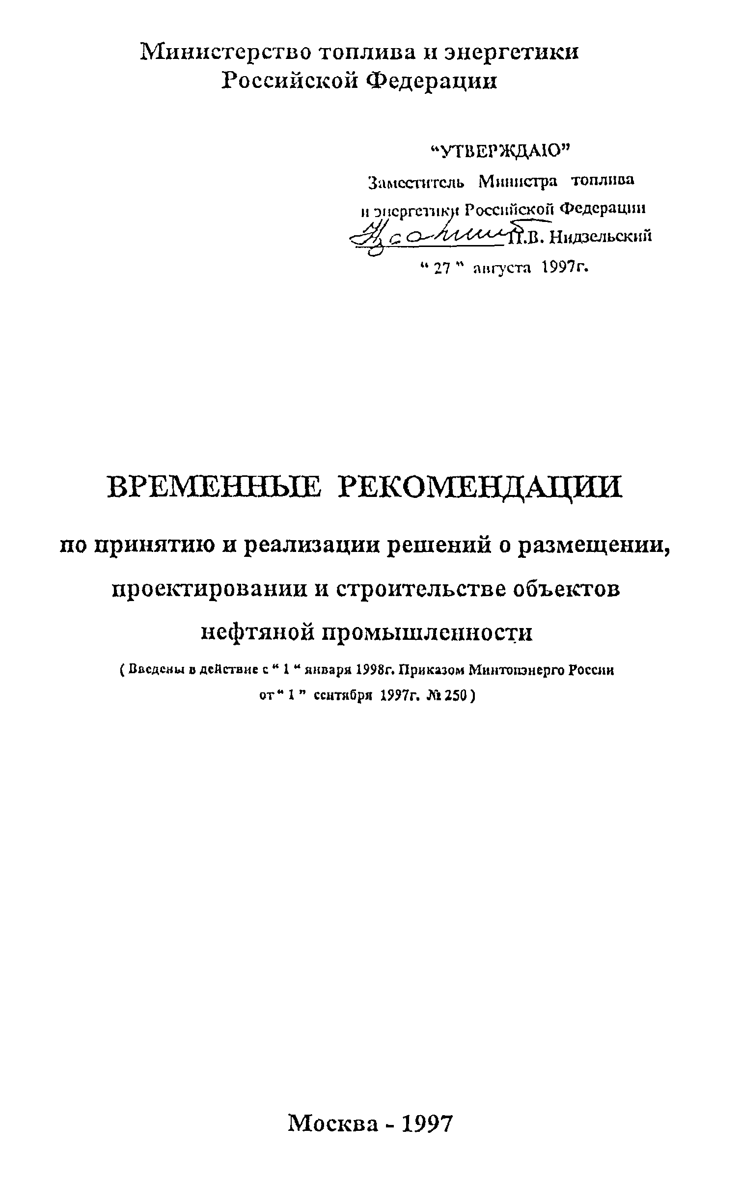 | | Утверждён: | 27.08.1997 Минтопэнерго России (Russian Federation Mintopenergo )