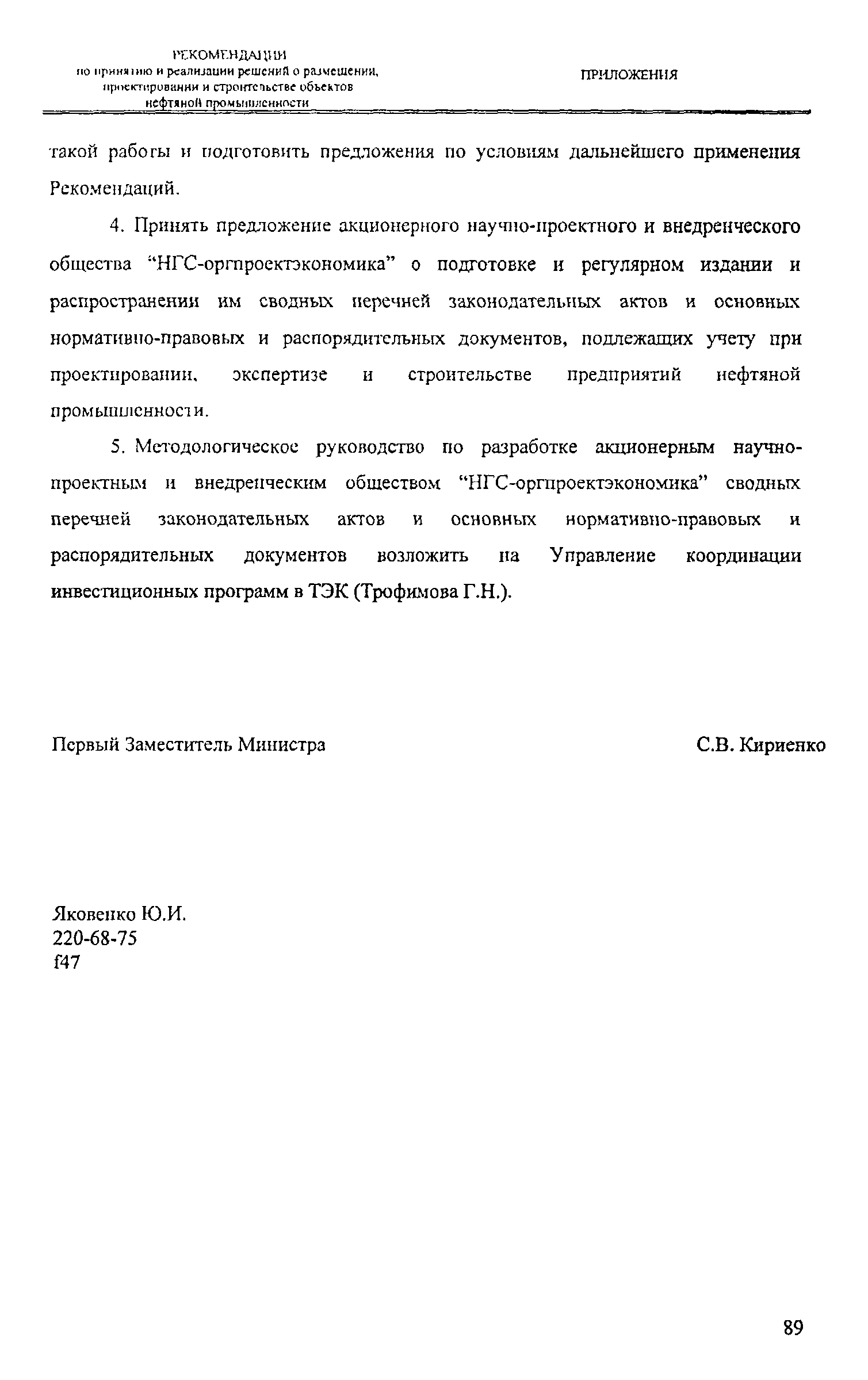 Скачать Временные рекомендации по принятию и реализации решений о размещении, проектировании и строительстве объектов нефтяной промышленностиДата актуализации: 01.01.2021