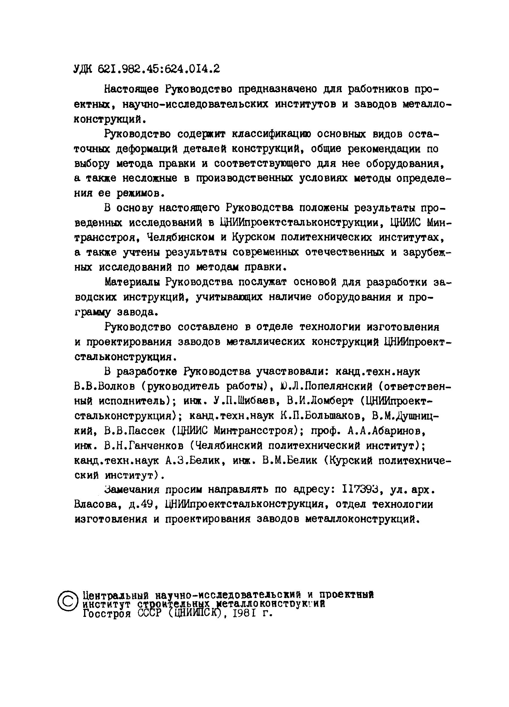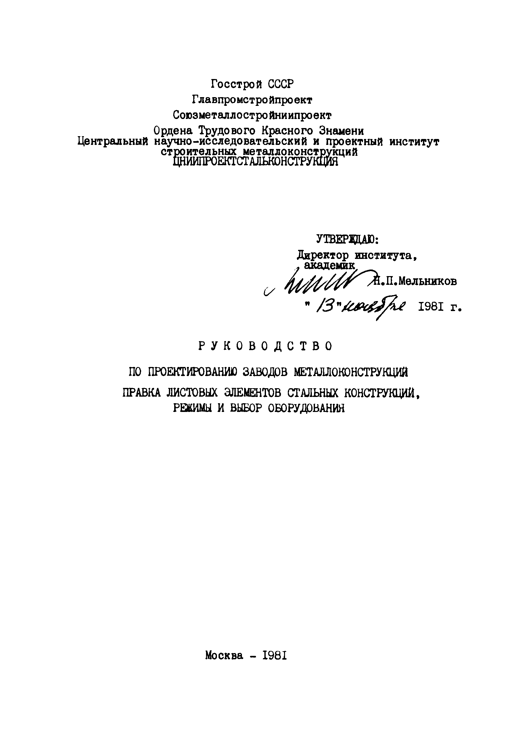| Утверждён: | 13.11.1981 ЦНИИпроектстальконструкция (TsNIIprojectstalkonstruktsiya )