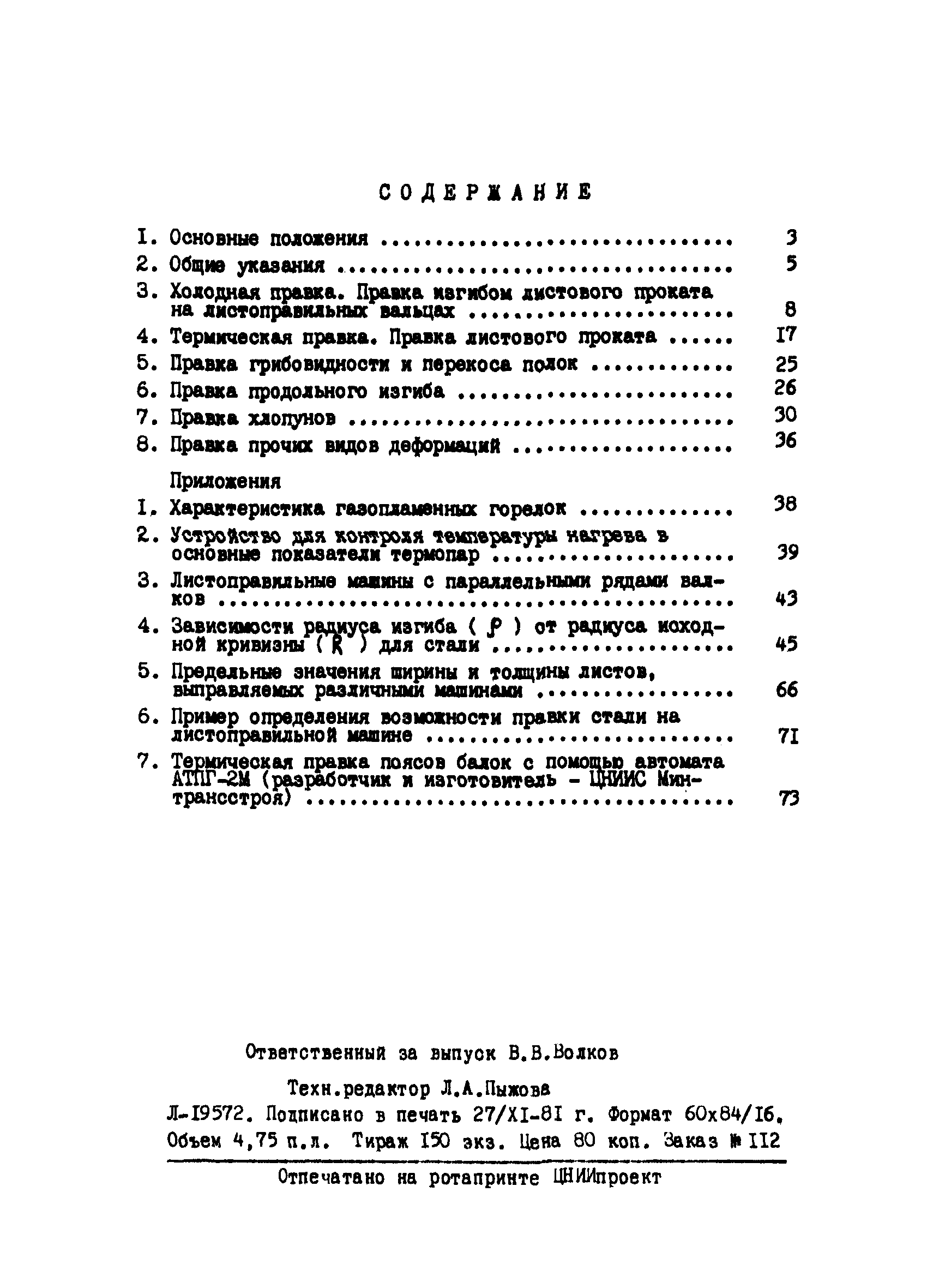 | Оглавление: | 1 Основные положения 2 Общие указания 3 Холодная правка. Правка изгибом листового проката на листоправильных вальцах 4 Термическая правка. Правка листового проката 5 Правка грибовидности и перекоса полок 6 Правка продольного изгиба 7 Правка хлопунов 8 Правка прочих видов деформаций Приложения |