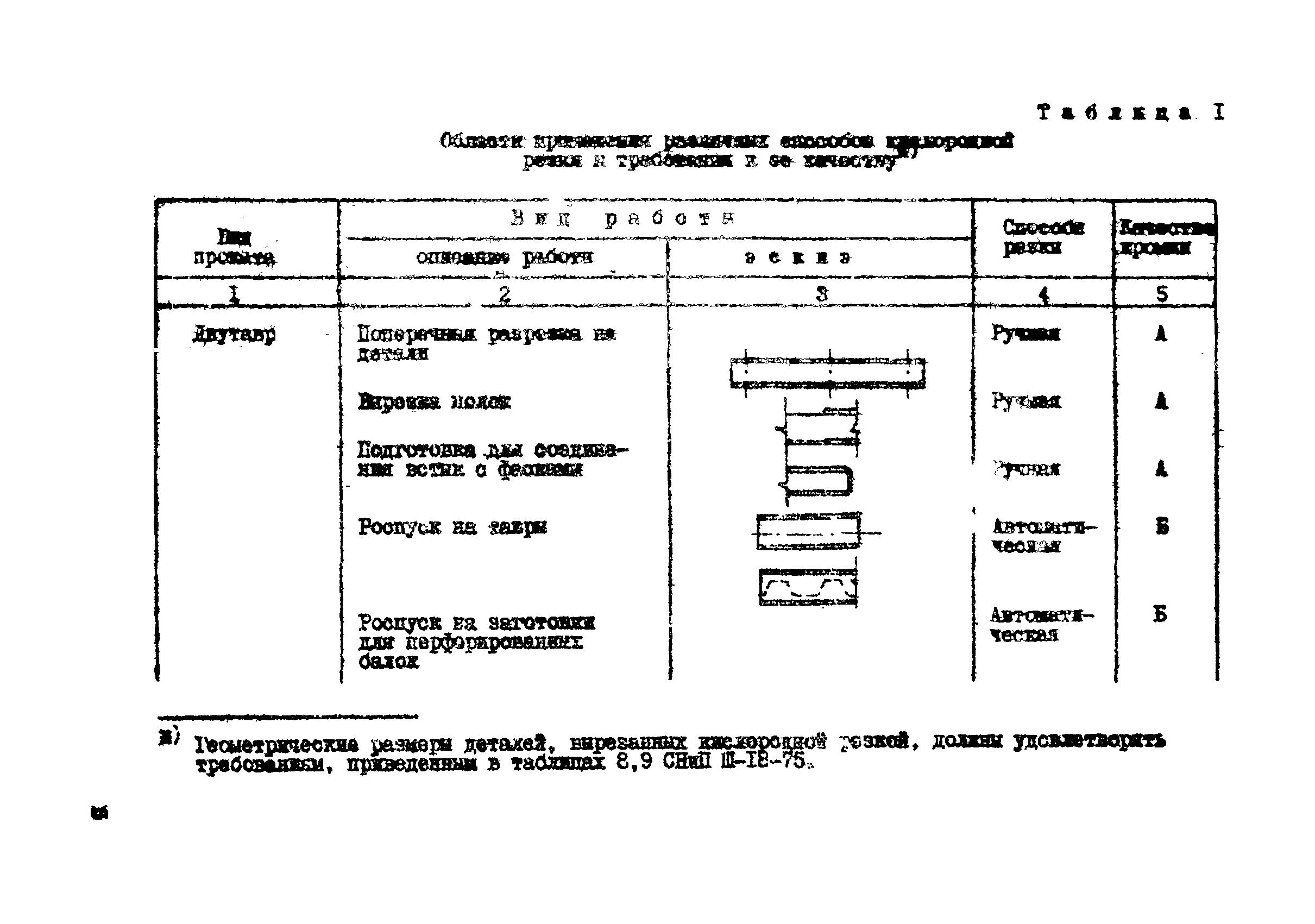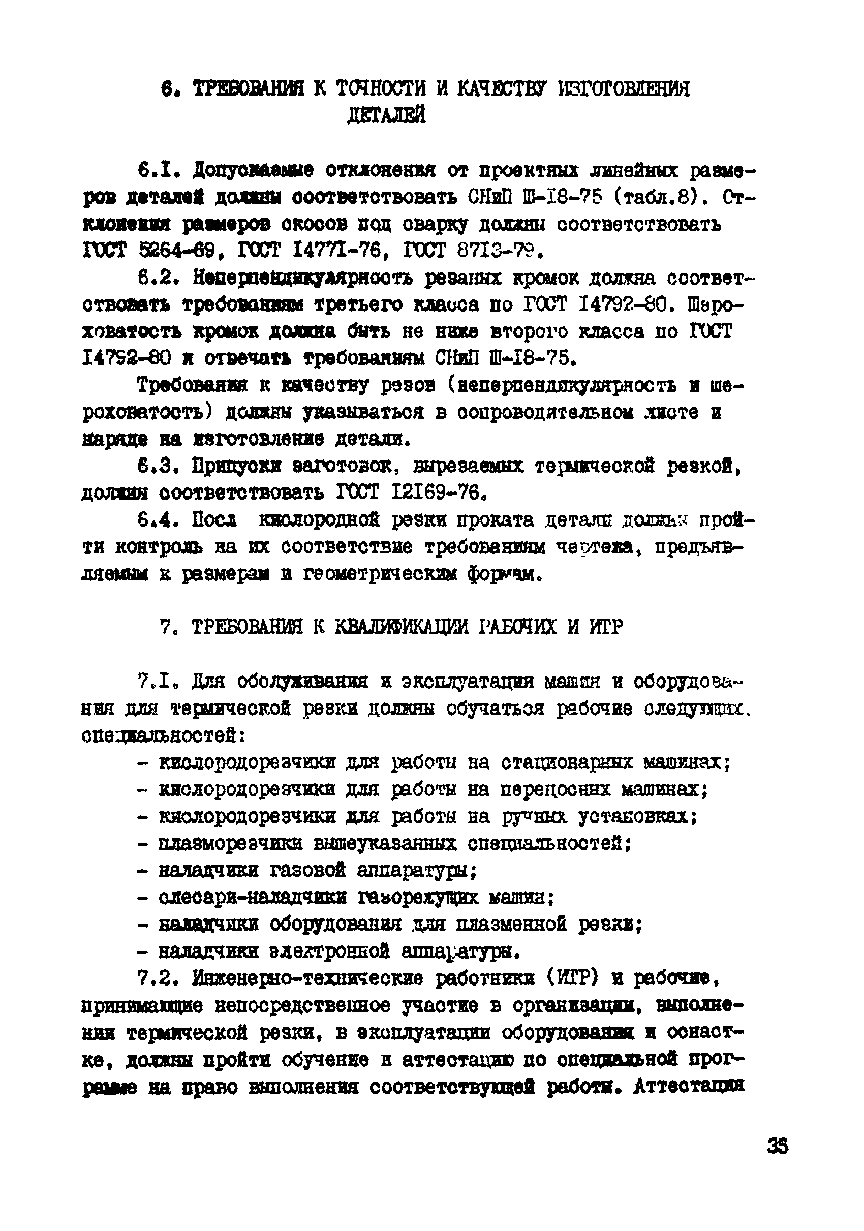 | Оглавление: | 1 Общие положения 2 Область применения различных способов термической резки 3 Требования и материалы 4 Требования к машинам, оборудованию и оснастке для термической резки 5 Технология термической резки 5.1 Кислородная резка 5.2 Воздушно-плазменная резка 6 Требования к точности и качеству изготовления деталей 7 Требования к квалификации рабочих и ИТР 8 Техника безопасности при термической резке |