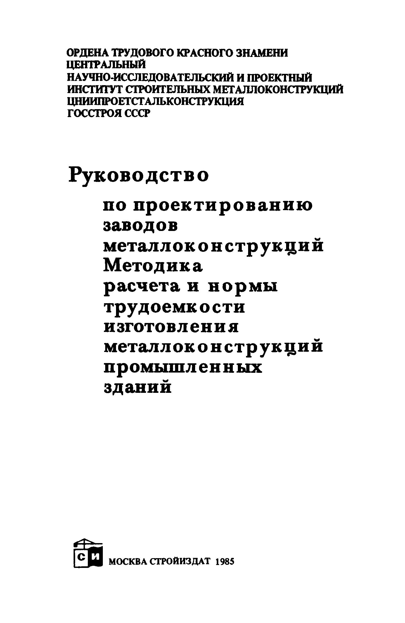 | Название рус.: | Руководство по проектированию заводов металлоконструкций. Методика расчета и нормы трудоемкости изготовления металлоконструкций промышленных зданий |