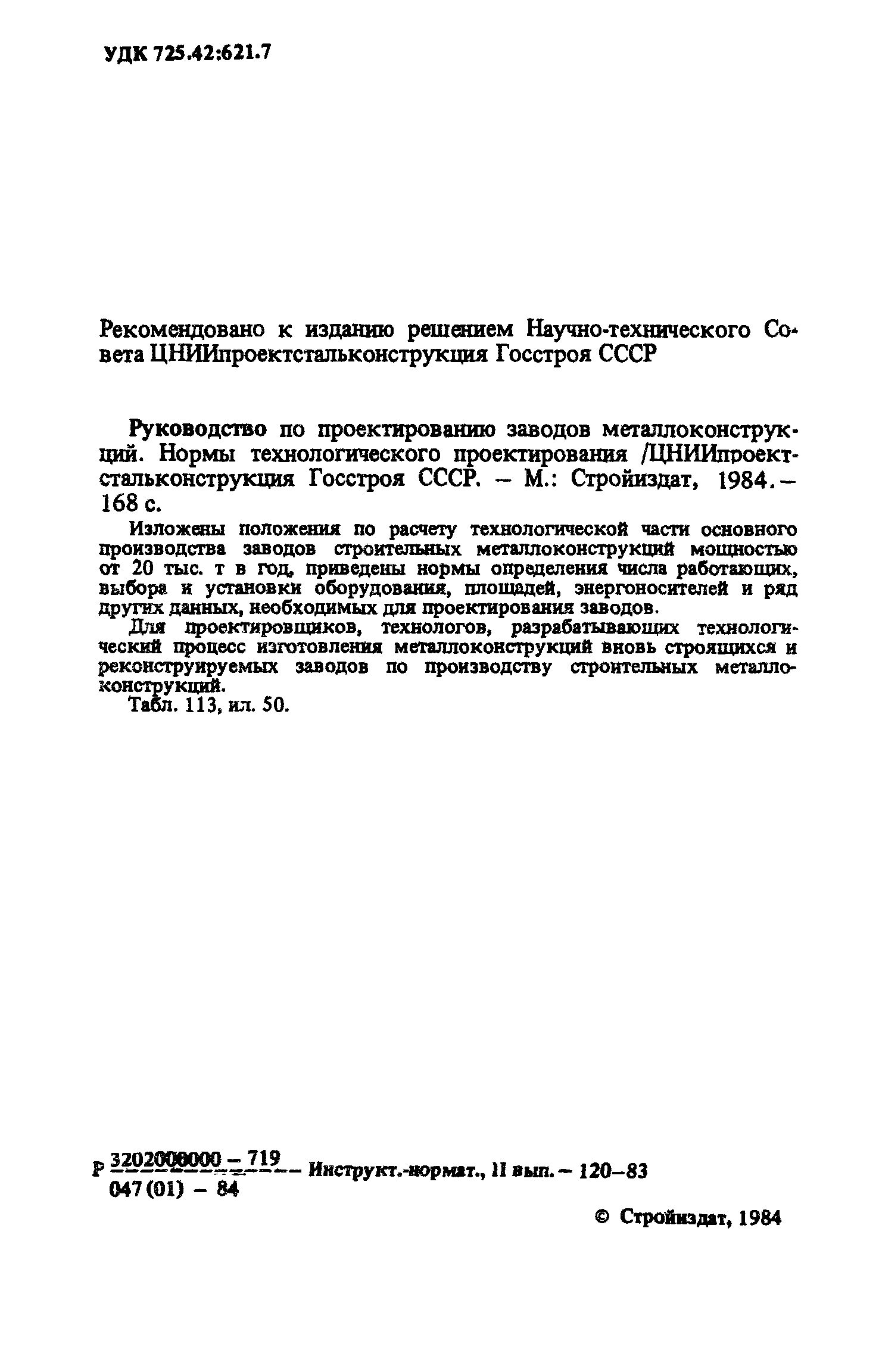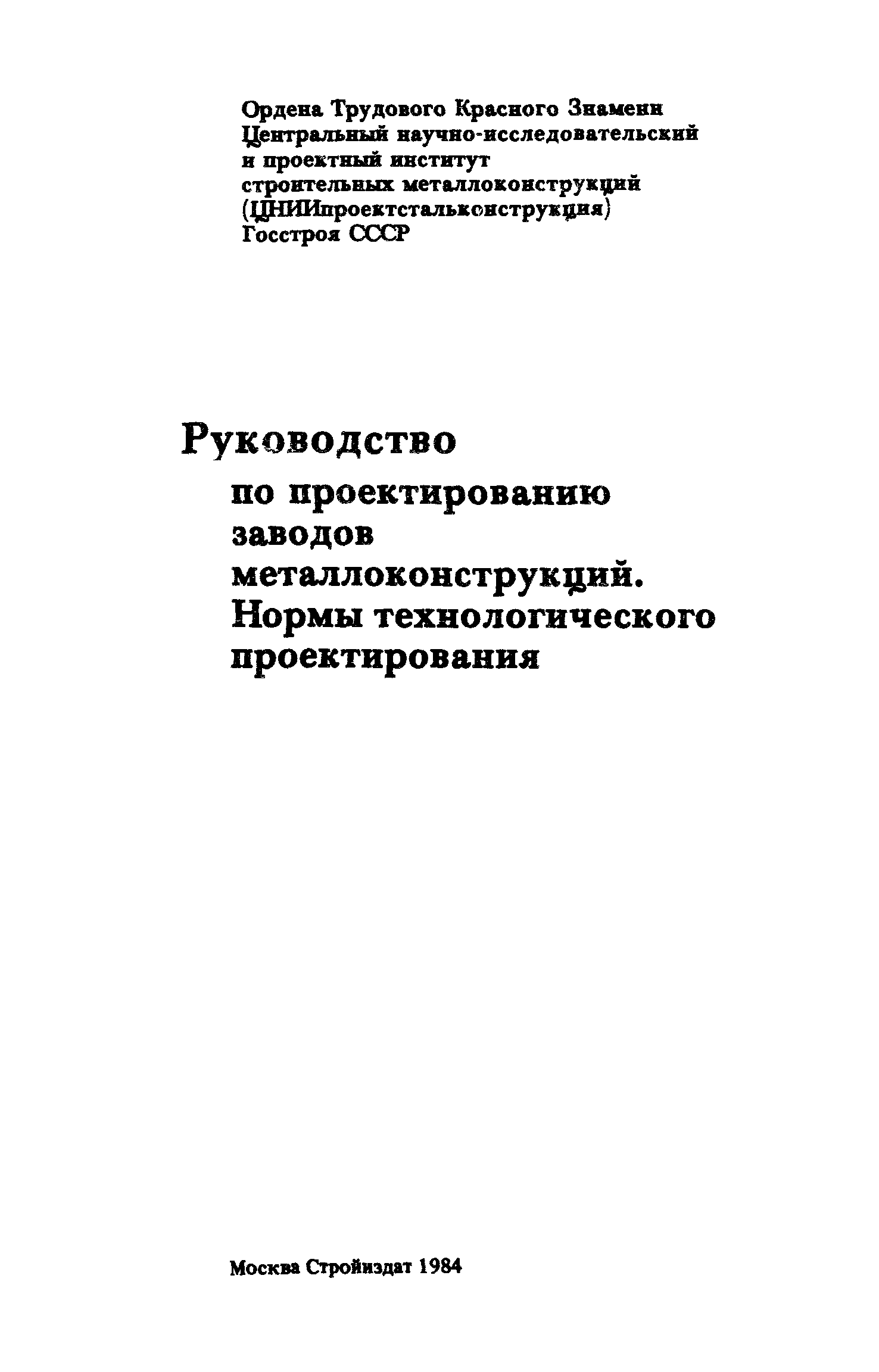 | Название рус.: | Руководство по проектированию заводов металлоконструкций. Нормы технологического проектирования |