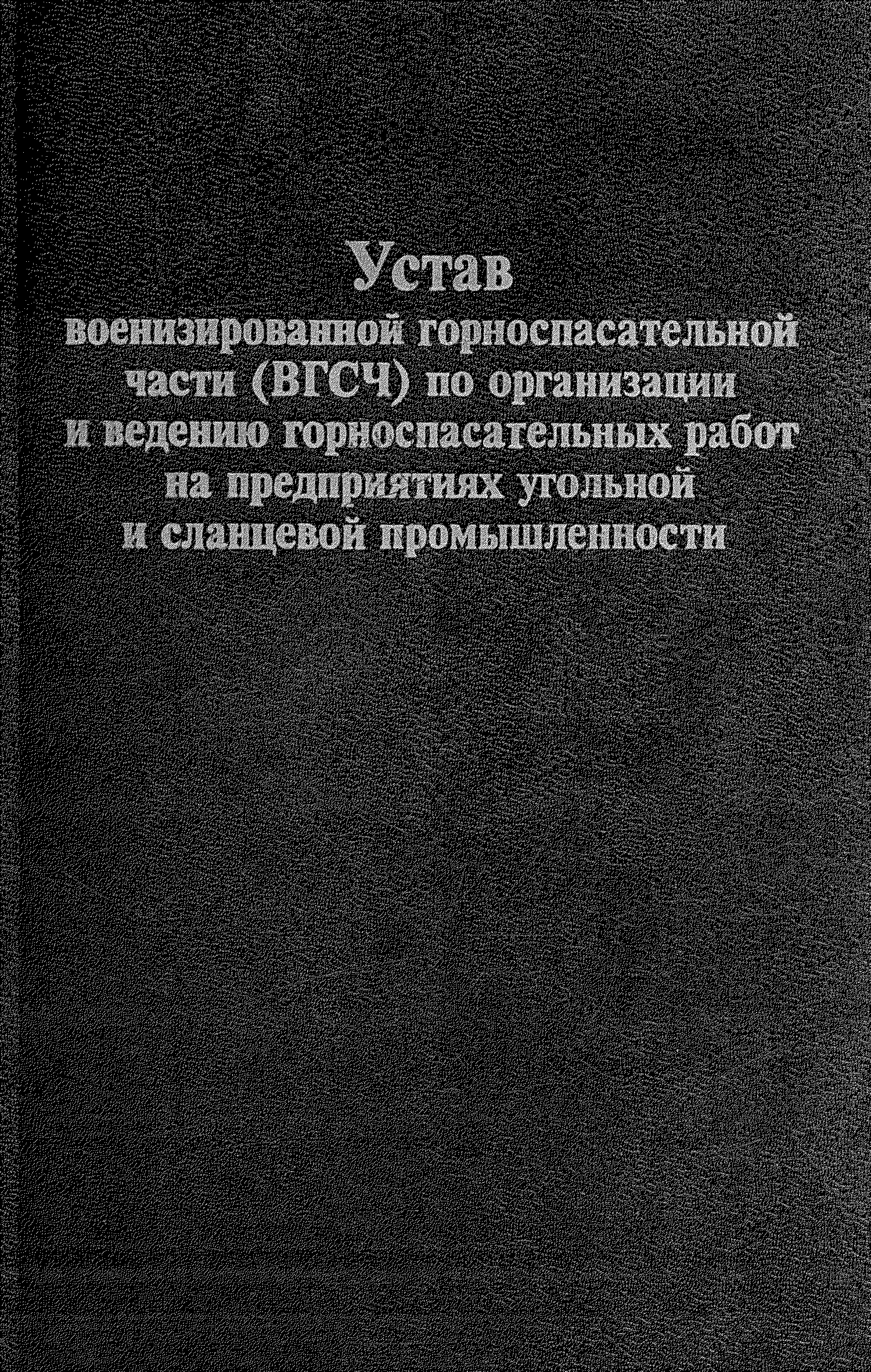 | Название рус.: | Устав военизированной горноспасательной части (ВГСЧ) по организации и ведению горноспасательных работ на предприятиях угольной и сланцевой промышленности |