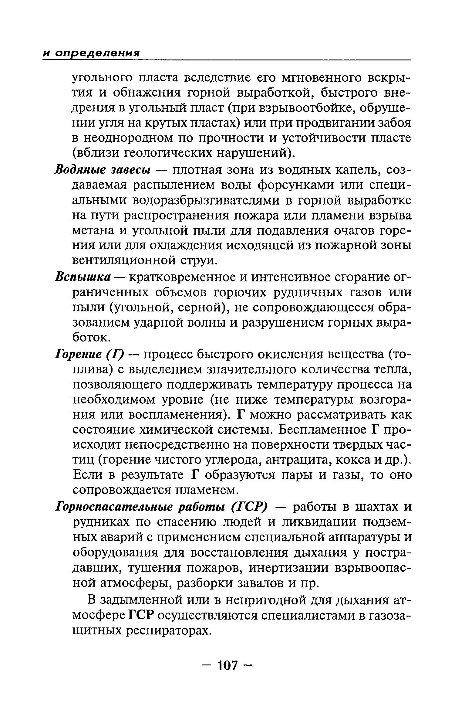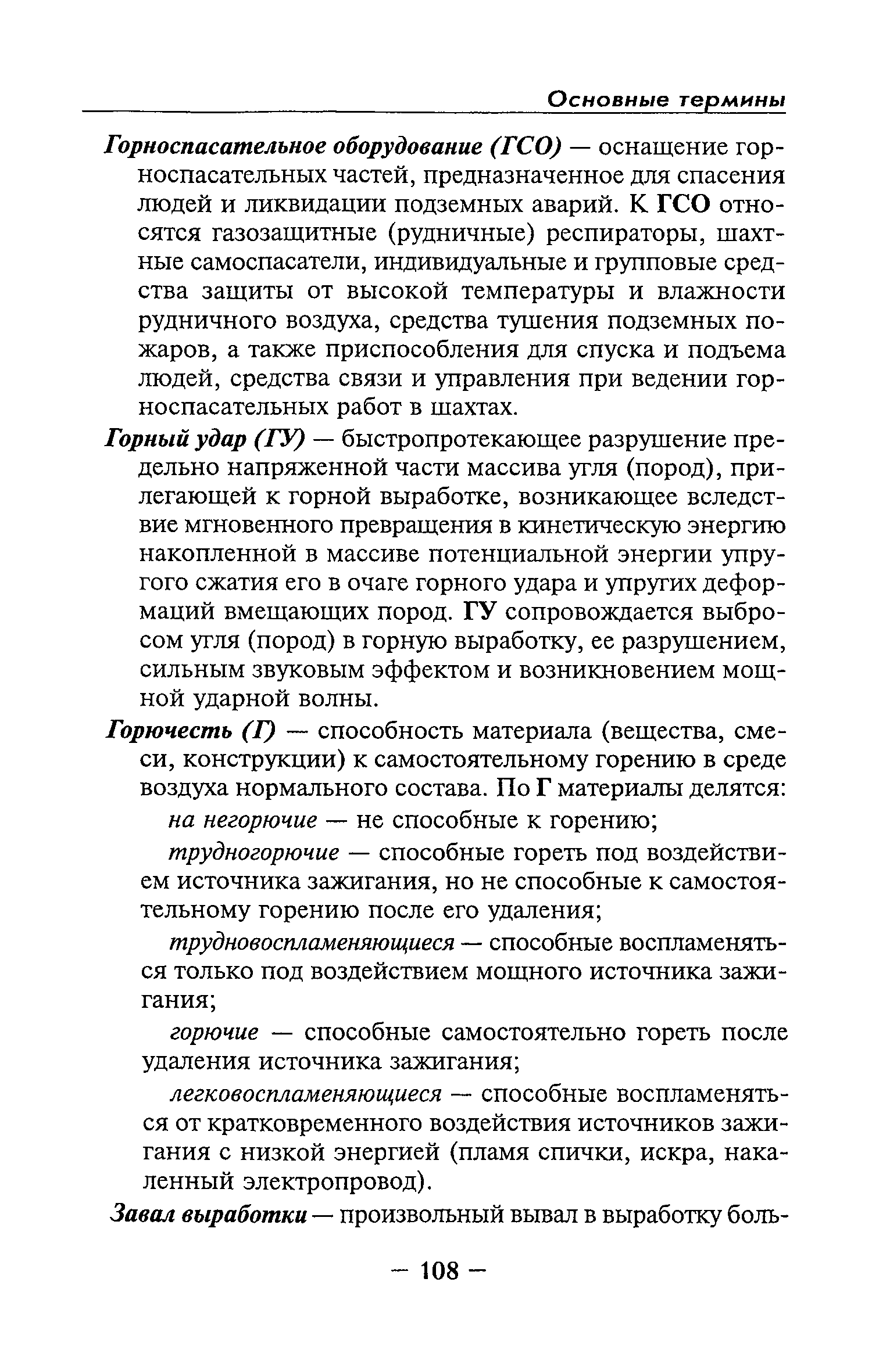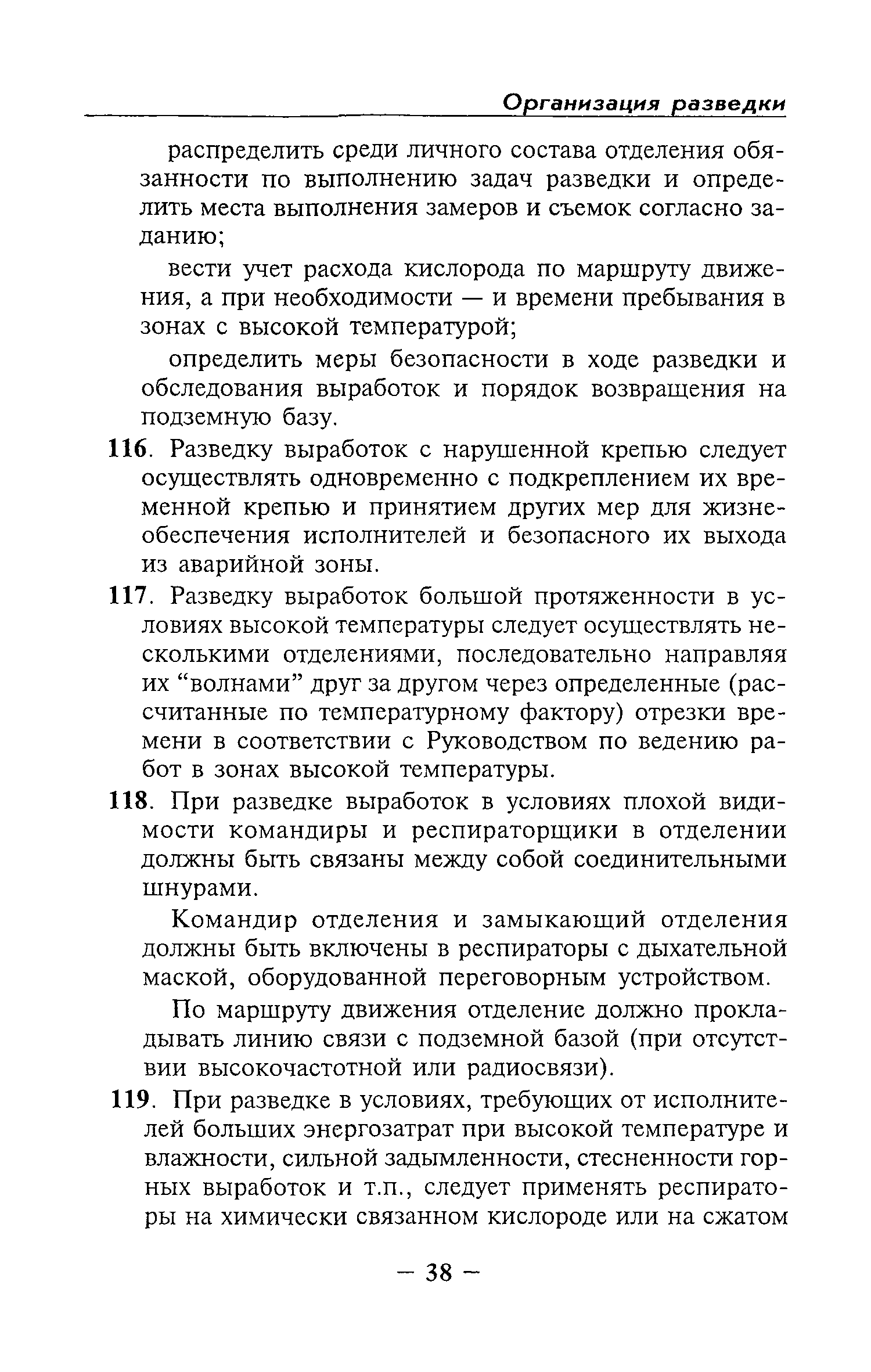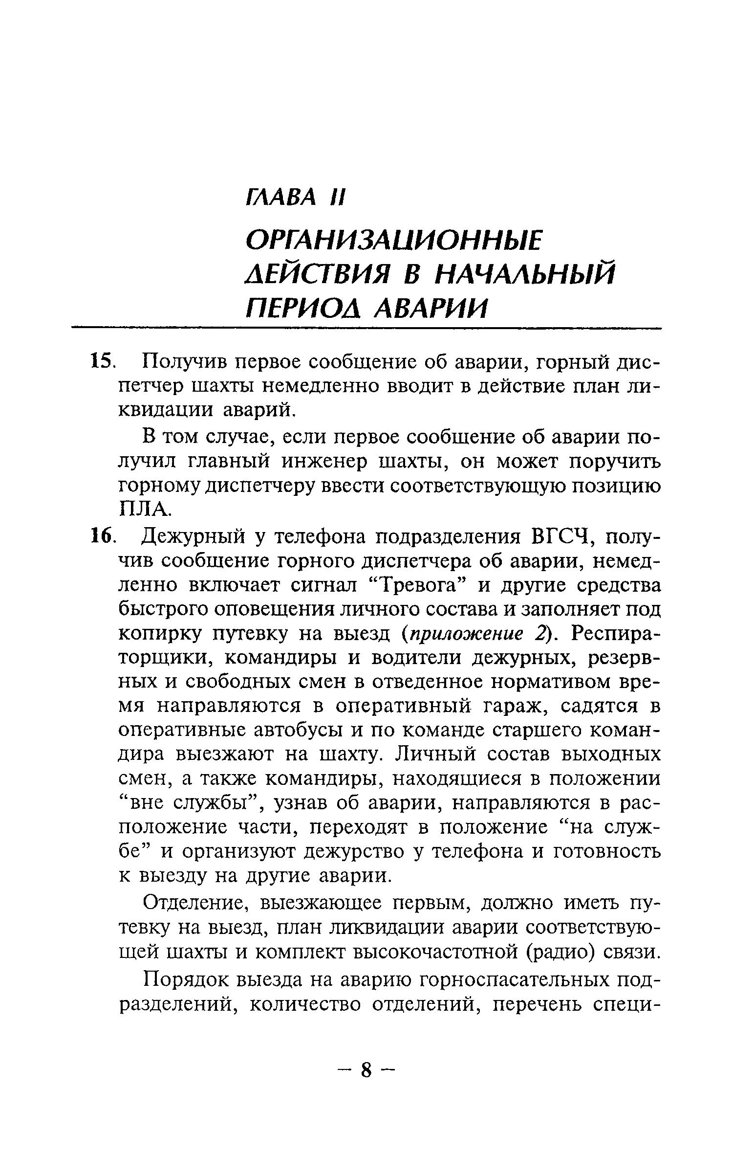 | Оглавление: | Глава I Общие положения Глава II Организационные действия в первоначальный период аварии Организация связи при горноспасательных работах Глава III Организация аварийно-спасательных работ Глава IV Действия вспомогательной горноспасательной службы Глава V Оперативные действия отделений ВГСЧ Глава VI Организация разведки и спасения людей Разведка с целью поиска людей и их спасения Разведка для выяснения обстановки Глава VII Горноспасательные работы в условиях высоких и низких температур Глава VIII Тушение подземных пожаров Вентиляционные режимы при тушении пожаров Тушение пожаров активным способом Изоляция пожарных участков Тушение пожаров в шахтах, опасных по газу и пыли Тушение пожаров в тупиковых горных выработках Тушение пожаров в наклонных горных выработках Тушение пожаров на ленточных конвейерах Тушение пожаров в горизонтальных выработках и камерах Тушение пожаров в надшахтных зданиях и вертикальных выработках Глава IХ Горноспасательные работы при ликвидации аварий других видов Ликвидация последствий взрывов метановоздушной смеси и угольной пыли Ликвидация первоочередных последствий внезапных выбросов угля и газа Ликвидация последствий проникновения в шахту ядовитых химических веществ Спасательные работы при обрушениях в горных выработках Спасательные работы при прорыве воды Ликвидация последствий прорыва плывунов и заиловочной пульпы Ликвидация аварий на разрезах, обогатительных фабриках и в кессонах Глава Х Выполнение технических работ Глава ХI Медицинское обеспечение горноспасательных работ и режим труда и отдыха горноспасателей Глава ХII Специальные службы при ликвидации аварий Глава ХIII Обязанности работников ВГСЧ при ликвидации аварий Приложение 1 к п. 14. Основные термины и определения Приложение 2 к п. 16. Форма путевки на выезд подразделения ВГСЧ Приложение 3 к п. 16. Диспозиция выездов Приложение 4 к п. 22. Оперативный журнал ВГСЧ Приложение 5 к п. 46. Оперативный план Приложение 6 к п. 78. Табель минимального оснащения отделения Приложение 7 к п. 103. Описание опознавательного жетона Приложение 8 к п. 107. Указания по организации связи с людьми, находящимися за завалом Приложение 9 к п. 114. Таблица скорости движения отделения в шахте Приложение 10 к п. 178. Методика расчета проемов в изолирующих перемычках Приложение 11 к п. 193. Методика определения взрываемости смеси горючих газов Приложение 12 к п. 195. Методика определения параметров воздушных ударных волн при взрывах газов и пыли в горных выработках Приложение 13 к п. 204. Параметры взрывоустойчивых гипсовых перемычек Приложение 14. Методические указания по расчету времени выхода включенных в самоспасатели людей по загазированным выработкам шахты Условные обозначения |