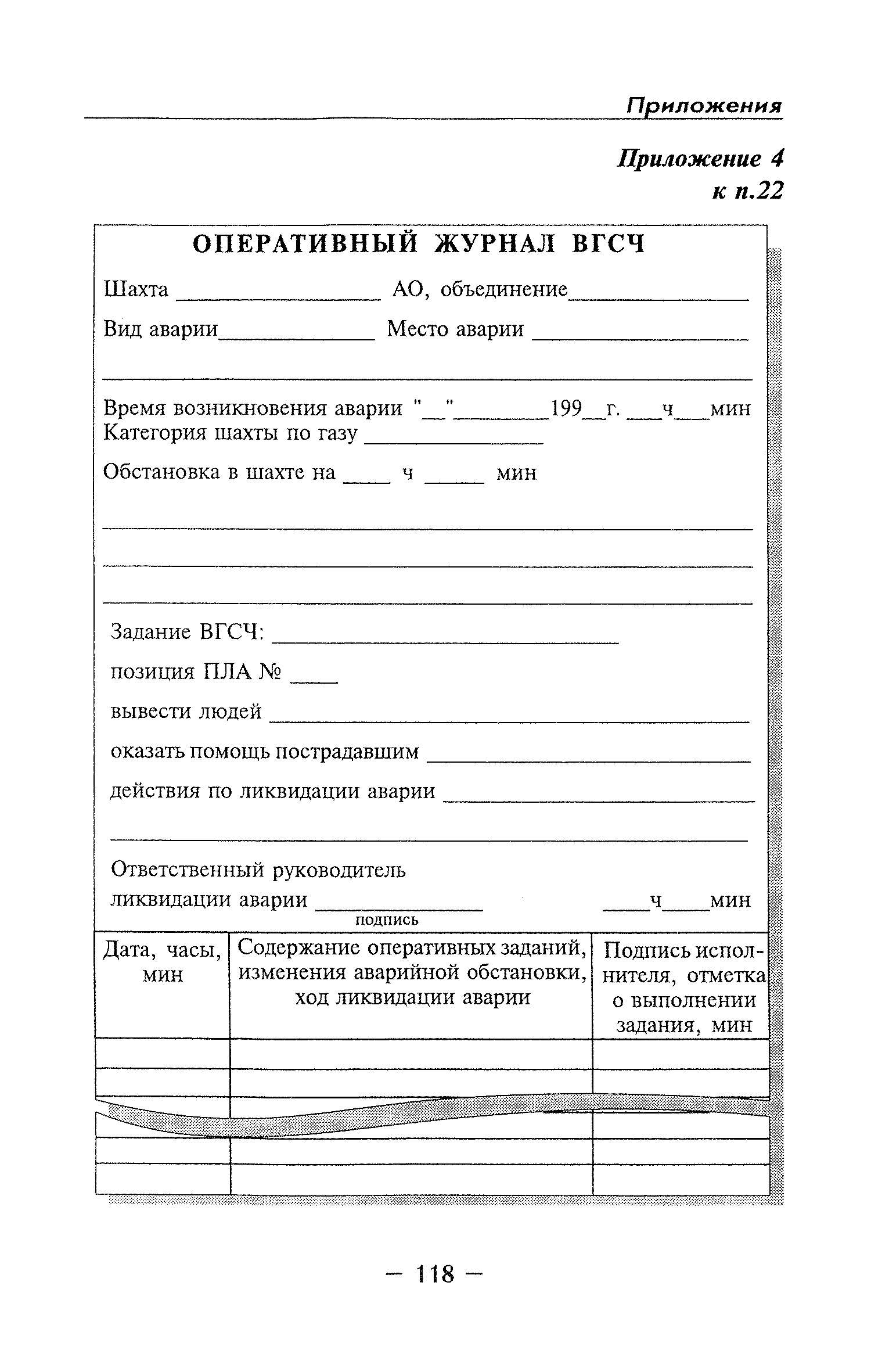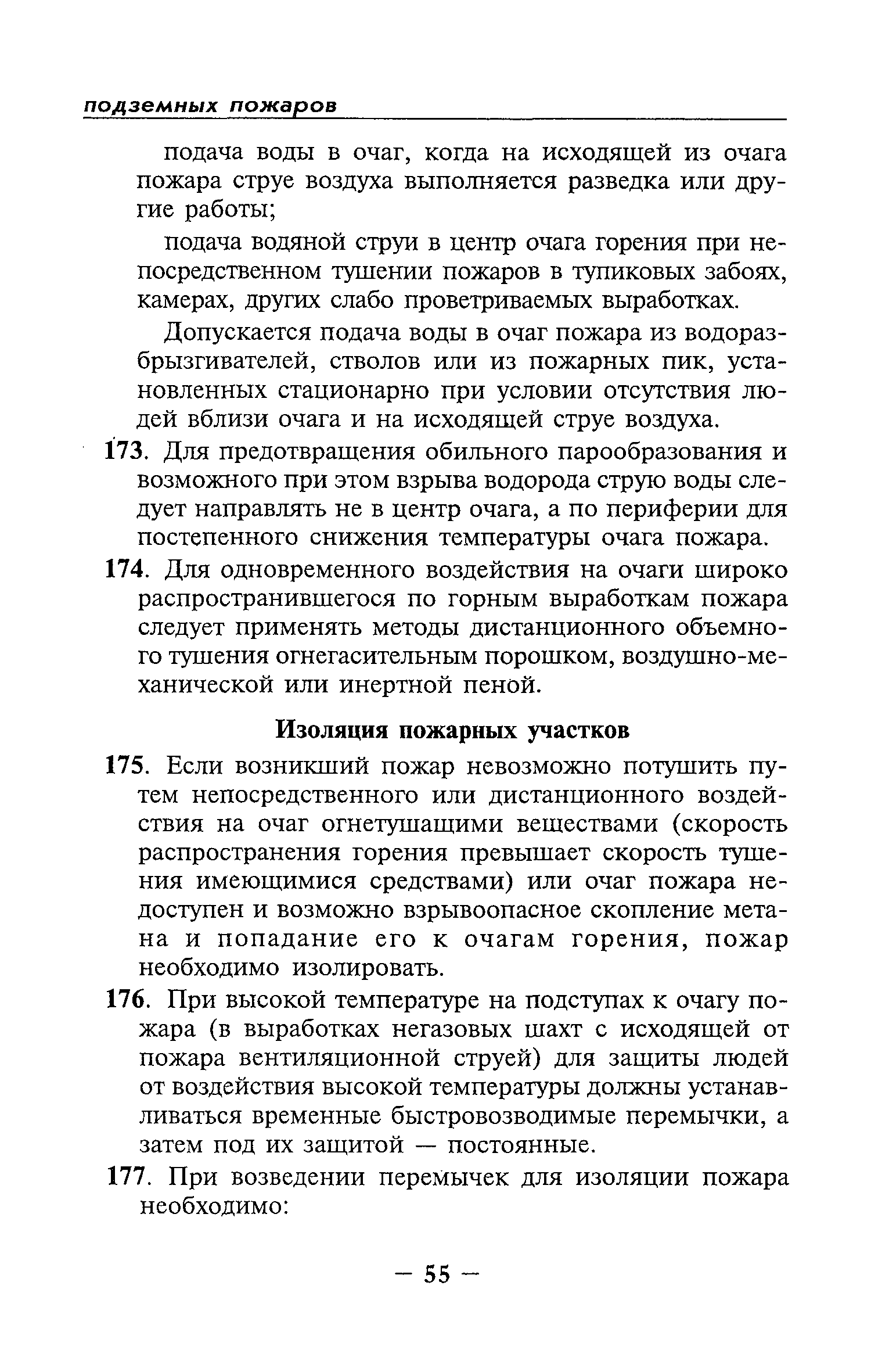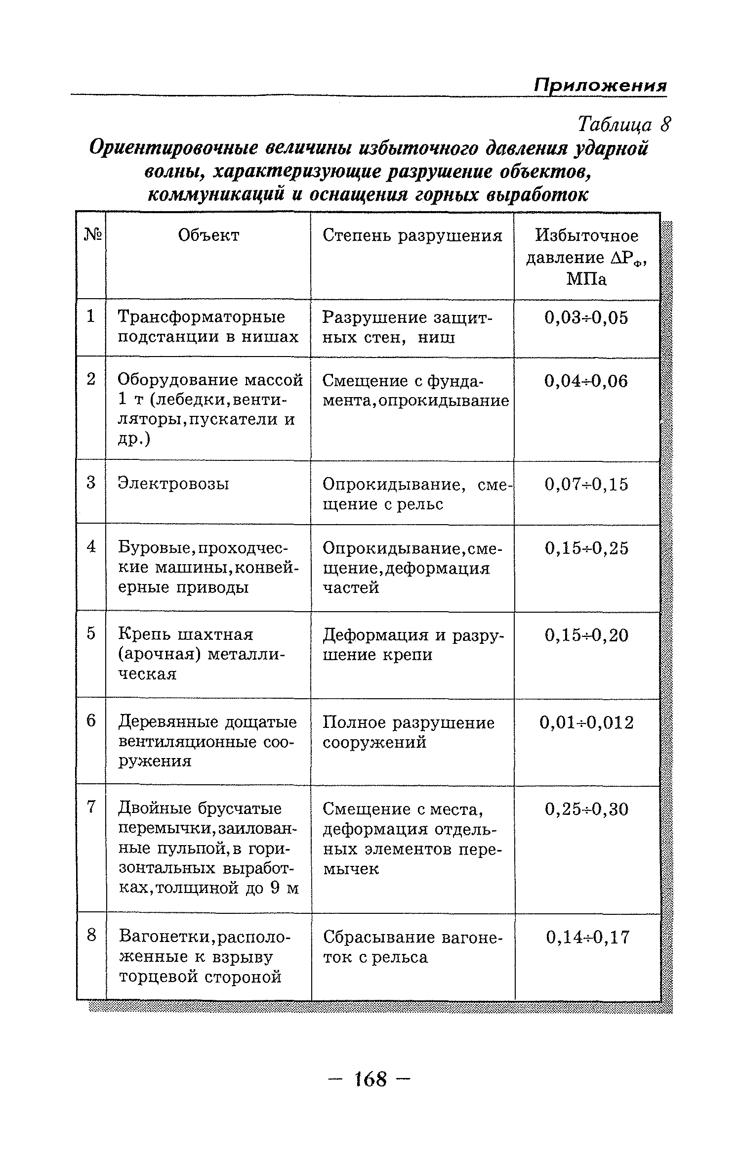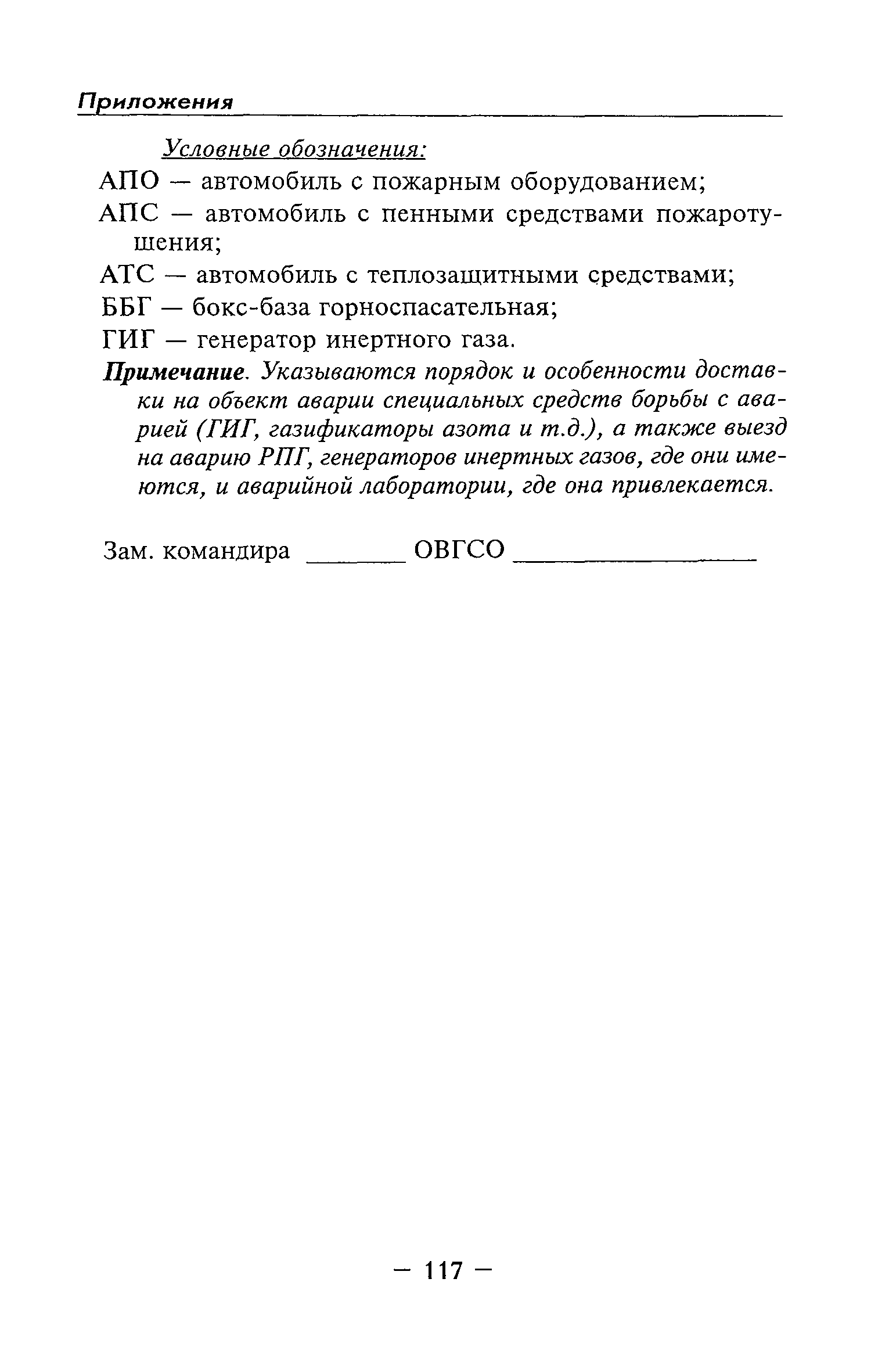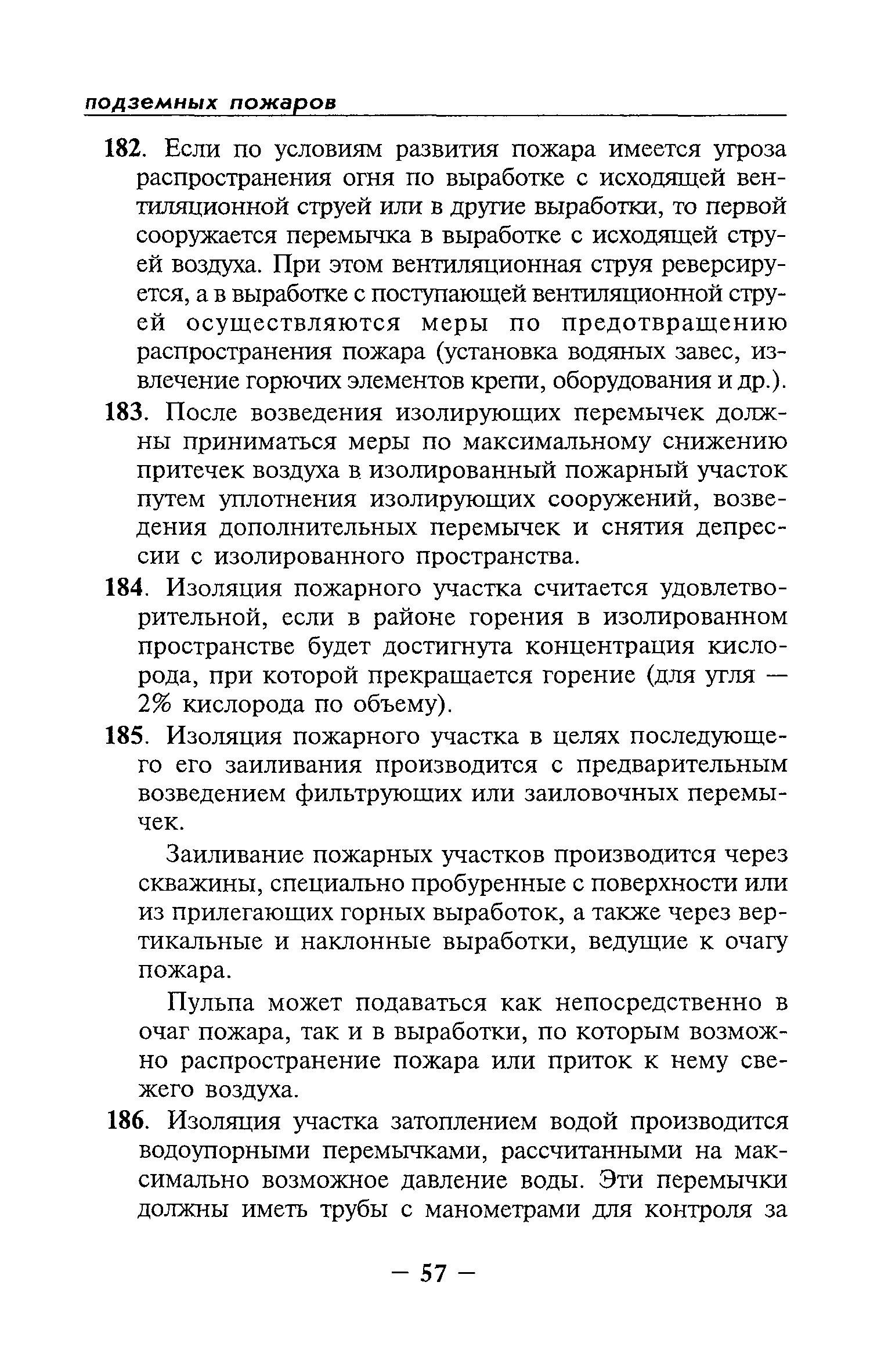| Оглавление: | Глава I Общие положения Глава II Организационные действия в первоначальный период аварии Организация связи при горноспасательных работах Глава III Организация аварийно-спасательных работ Глава IV Действия вспомогательной горноспасательной службы Глава V Оперативные действия отделений ВГСЧ Глава VI Организация разведки и спасения людей Разведка с целью поиска людей и их спасения Разведка для выяснения обстановки Глава VII Горноспасательные работы в условиях высоких и низких температур Глава VIII Тушение подземных пожаров Вентиляционные режимы при тушении пожаров Тушение пожаров активным способом Изоляция пожарных участков Тушение пожаров в шахтах, опасных по газу и пыли Тушение пожаров в тупиковых горных выработках Тушение пожаров в наклонных горных выработках Тушение пожаров на ленточных конвейерах Тушение пожаров в горизонтальных выработках и камерах Тушение пожаров в надшахтных зданиях и вертикальных выработках Глава IХ Горноспасательные работы при ликвидации аварий других видов Ликвидация последствий взрывов метановоздушной смеси и угольной пыли Ликвидация первоочередных последствий внезапных выбросов угля и газа Ликвидация последствий проникновения в шахту ядовитых химических веществ Спасательные работы при обрушениях в горных выработках Спасательные работы при прорыве воды Ликвидация последствий прорыва плывунов и заиловочной пульпы Ликвидация аварий на разрезах, обогатительных фабриках и в кессонах Глава Х Выполнение технических работ Глава ХI Медицинское обеспечение горноспасательных работ и режим труда и отдыха горноспасателей Глава ХII Специальные службы при ликвидации аварий Глава ХIII Обязанности работников ВГСЧ при ликвидации аварий Приложение 1 к п. 14. Основные термины и определения Приложение 2 к п. 16. Форма путевки на выезд подразделения ВГСЧ Приложение 3 к п. 16. Диспозиция выездов Приложение 4 к п. 22. Оперативный журнал ВГСЧ Приложение 5 к п. 46. Оперативный план Приложение 6 к п. 78. Табель минимального оснащения отделения Приложение 7 к п. 103. Описание опознавательного жетона Приложение 8 к п. 107. Указания по организации связи с людьми, находящимися за завалом Приложение 9 к п. 114. Таблица скорости движения отделения в шахте Приложение 10 к п. 178. Методика расчета проемов в изолирующих перемычках Приложение 11 к п. 193. Методика определения взрываемости смеси горючих газов Приложение 12 к п. 195. Методика определения параметров воздушных ударных волн при взрывах газов и пыли в горных выработках Приложение 13 к п. 204. Параметры взрывоустойчивых гипсовых перемычек Приложение 14. Методические указания по расчету времени выхода включенных в самоспасатели людей по загазированным выработкам шахты Условные обозначения |